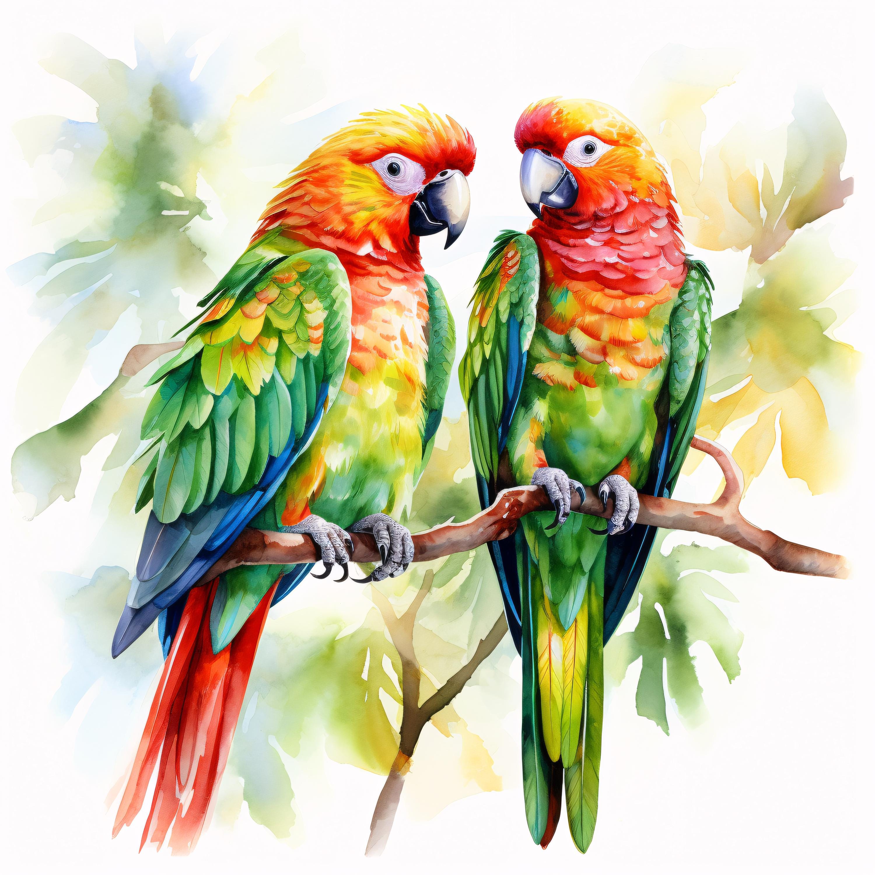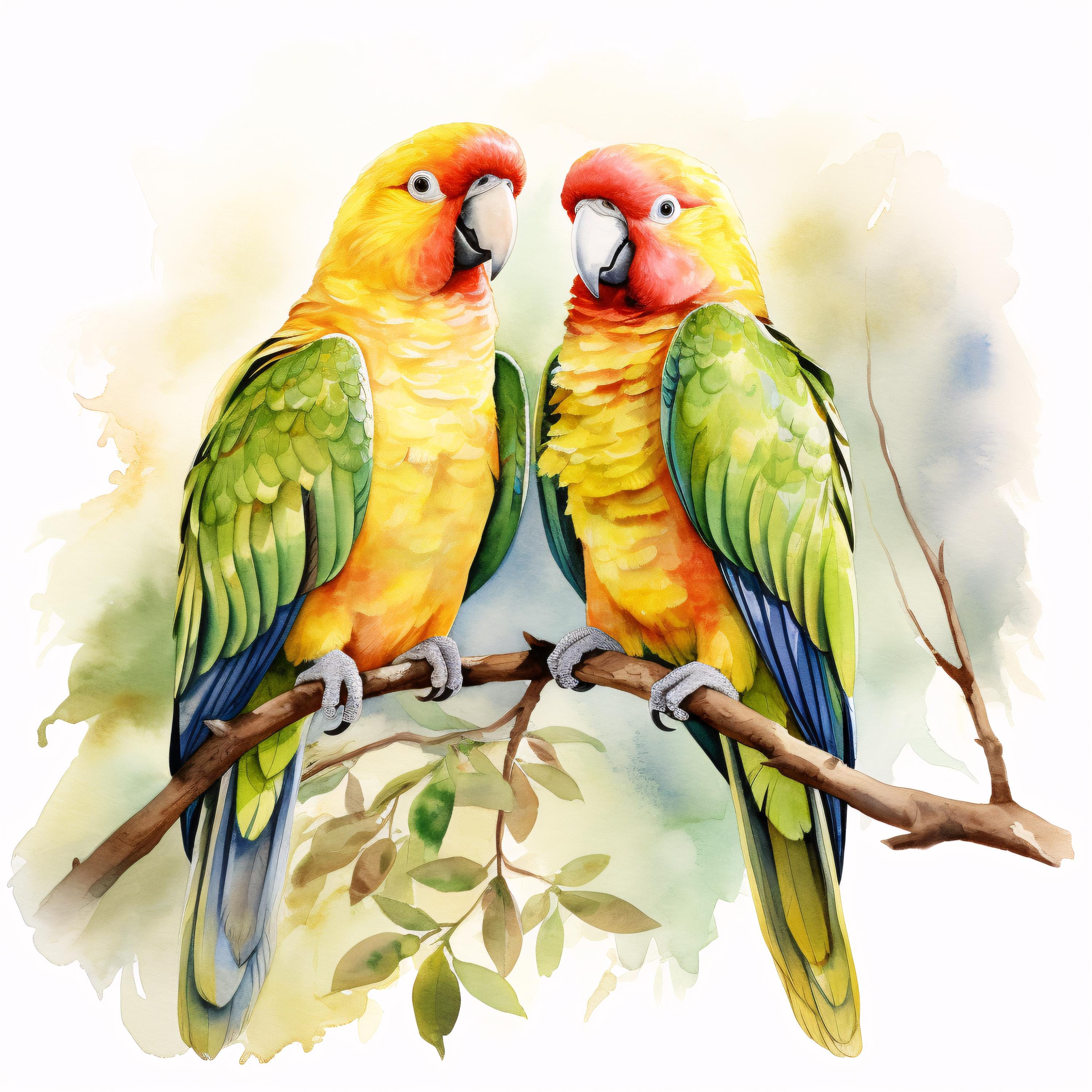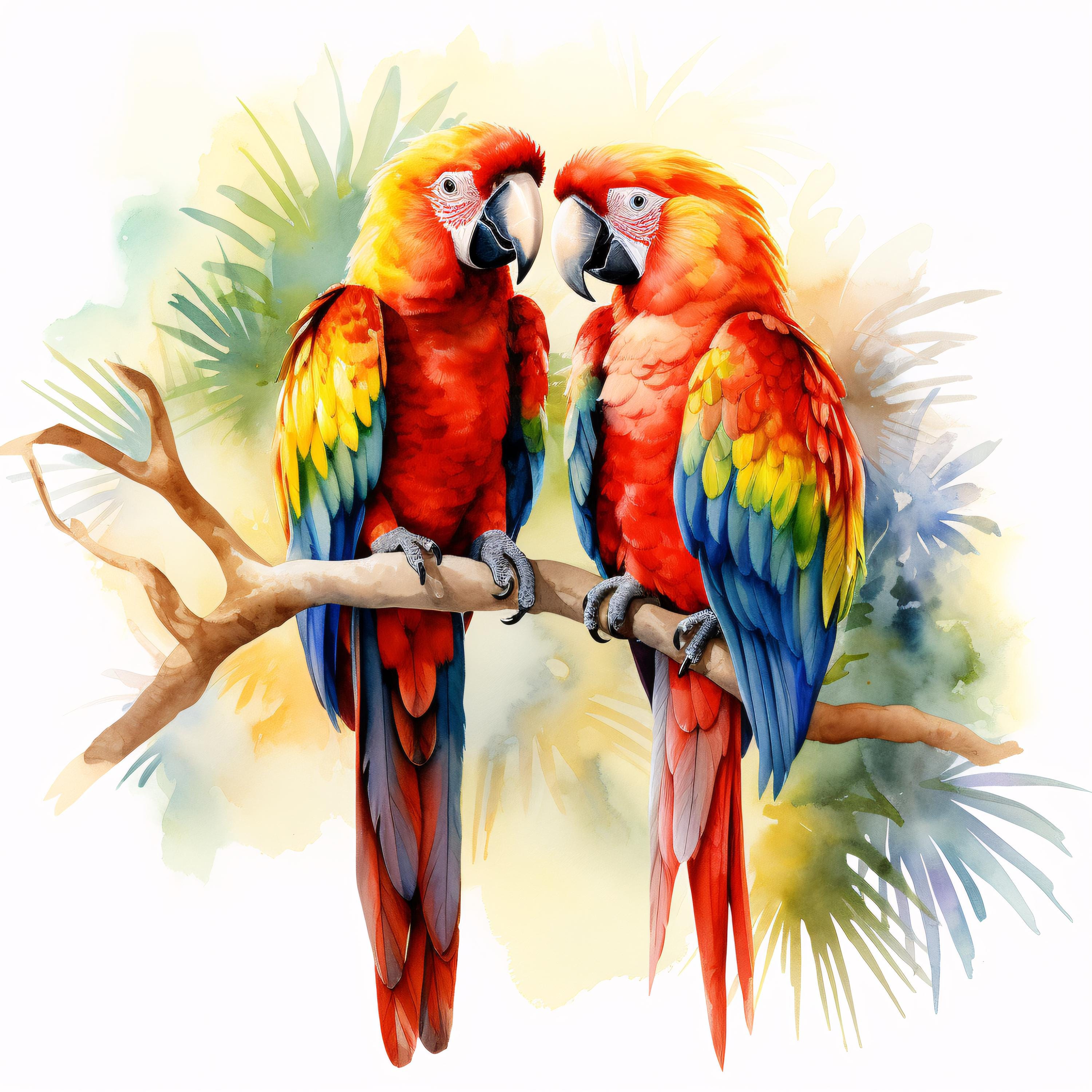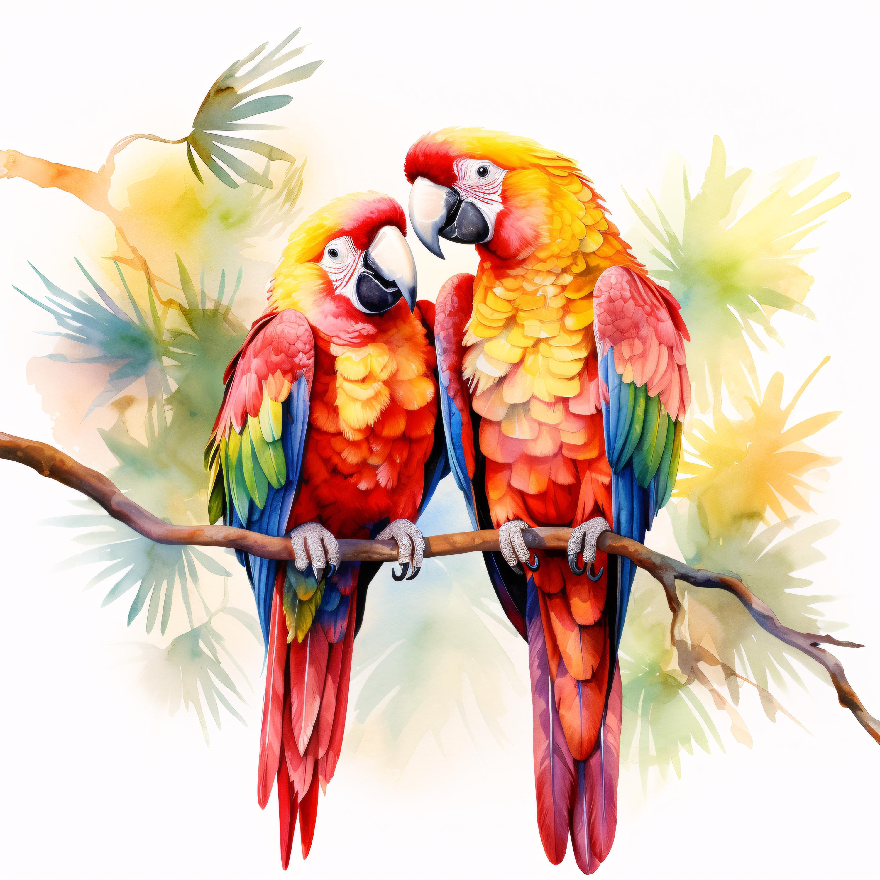 Parrot Couple Clipart, Tropical Bird Images, 10 Watercolor Clip Art, Printable JPGs, Instant Download, Commercial Use, Paper craft