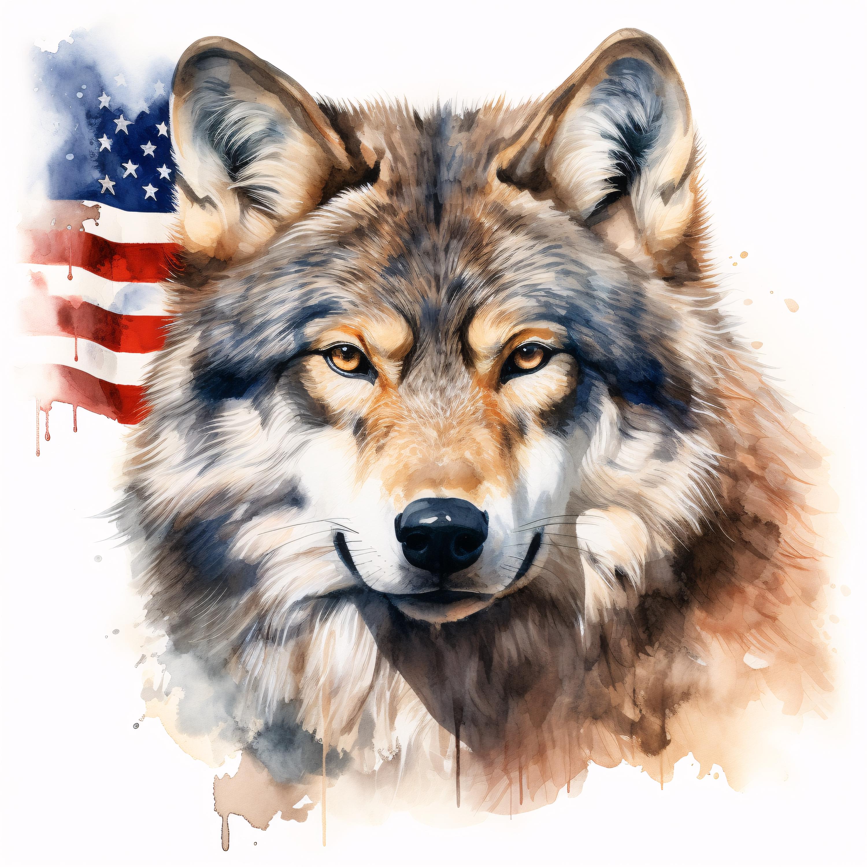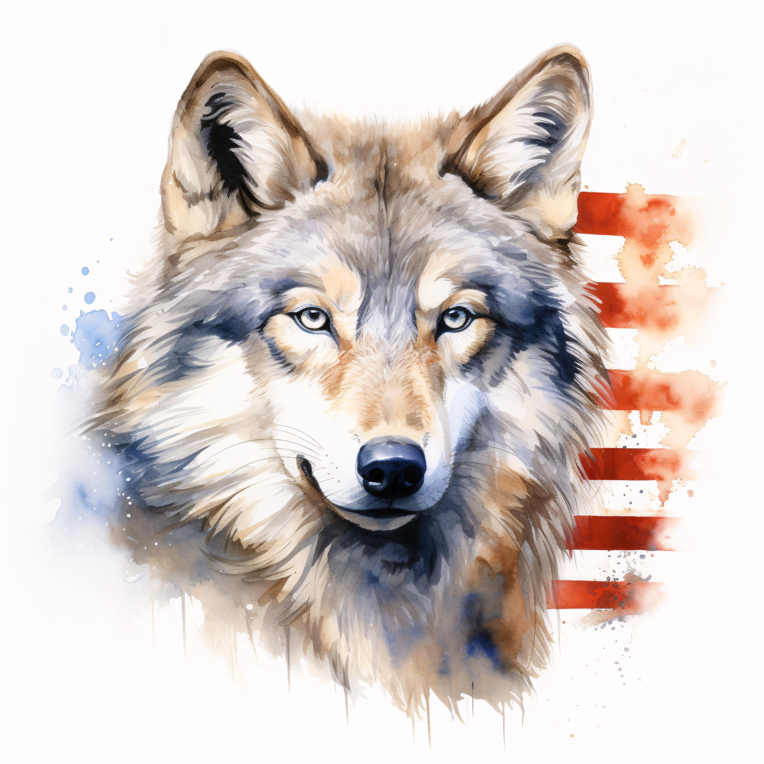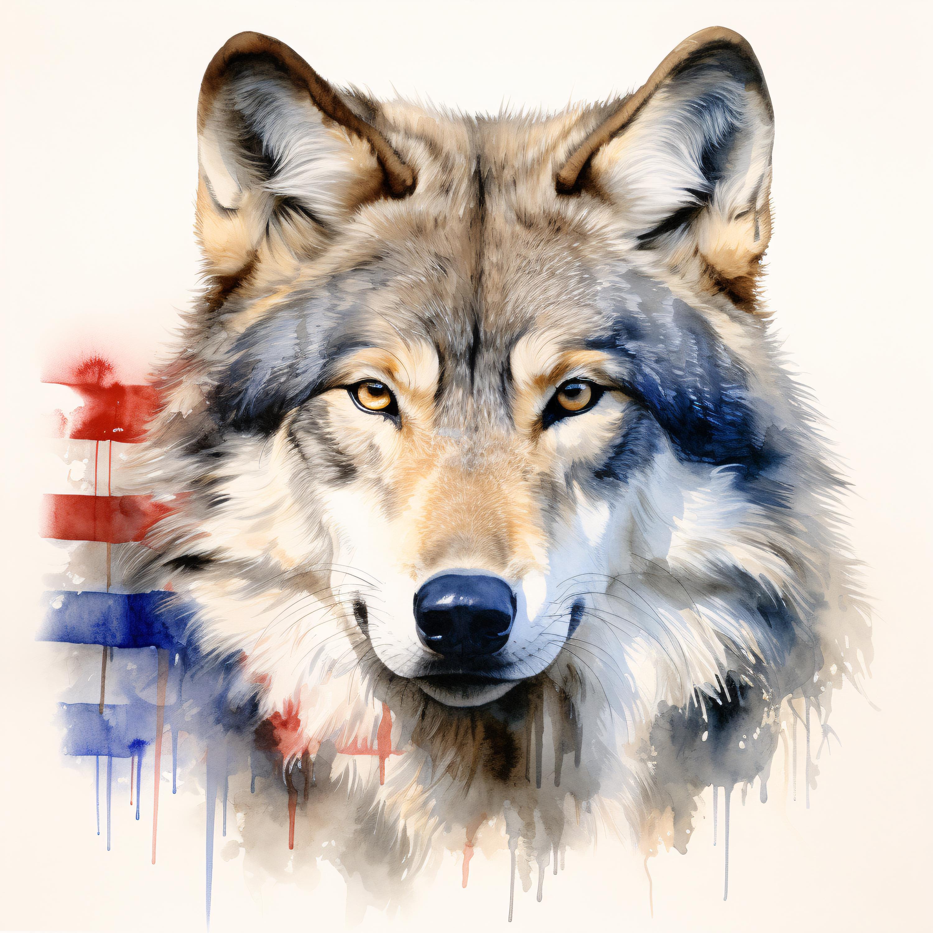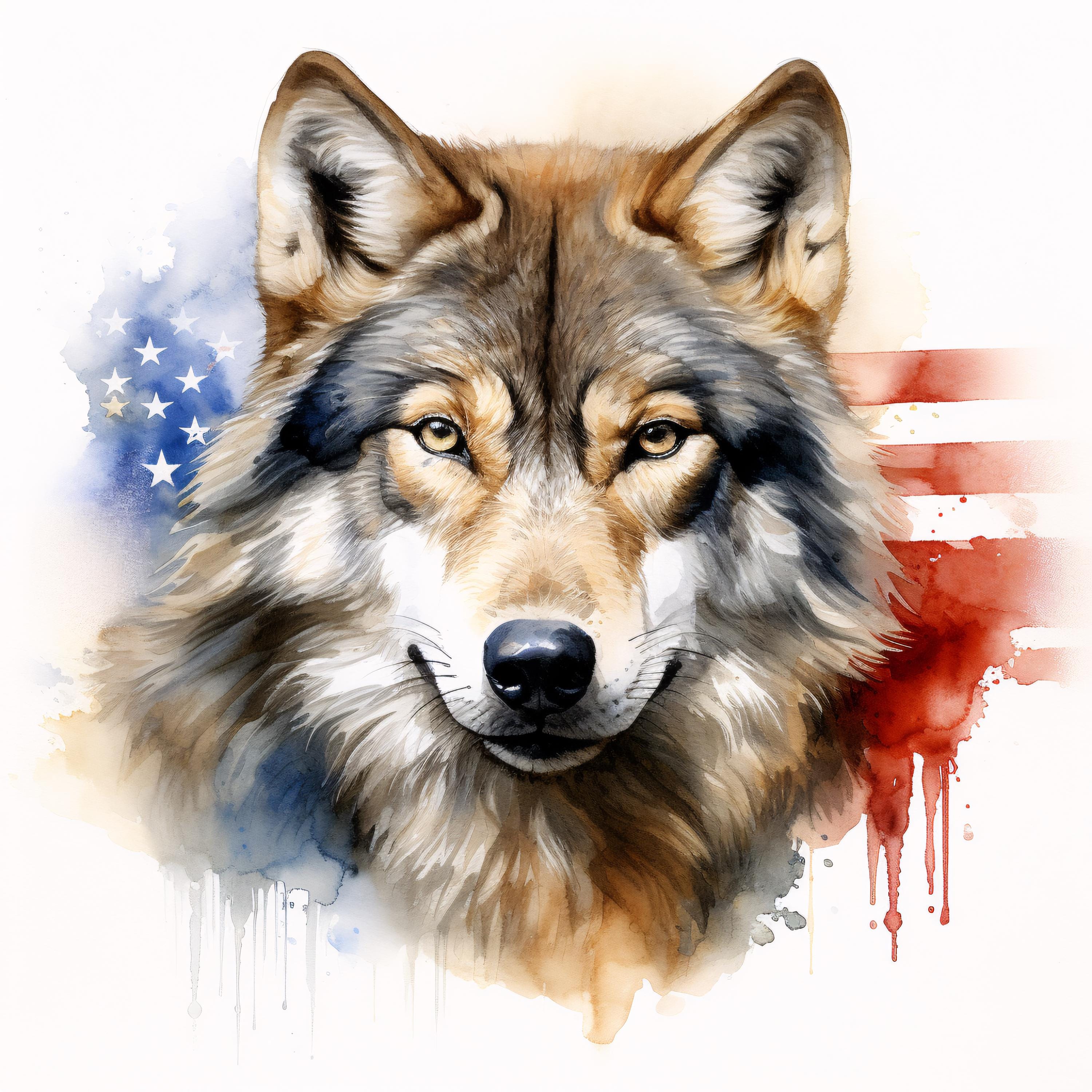 American Wolf Clipart, Patriotic Animal Images, 10 Watercolor Clip Art, Printable JPGs, Instant Download, Commercial Use, Paper craft