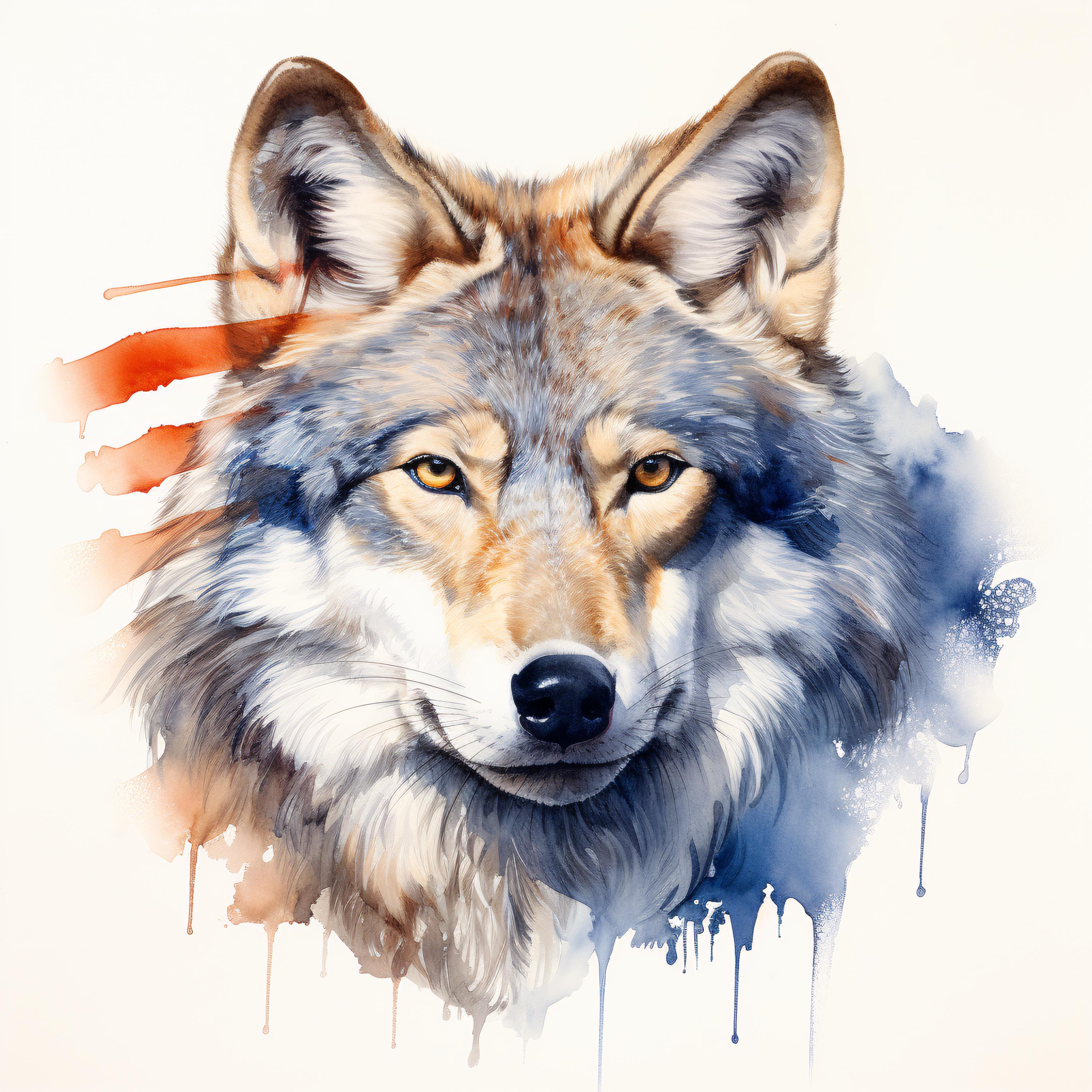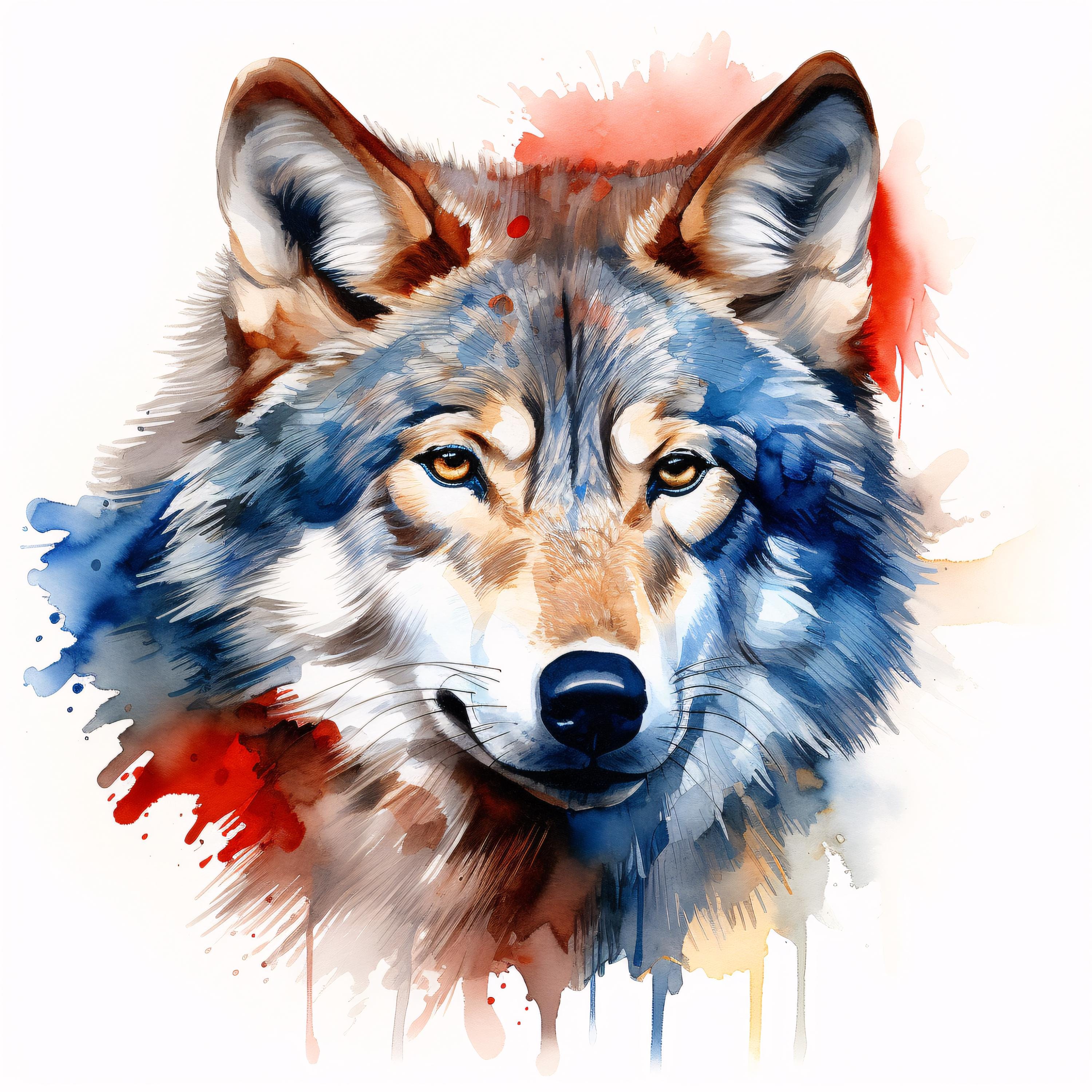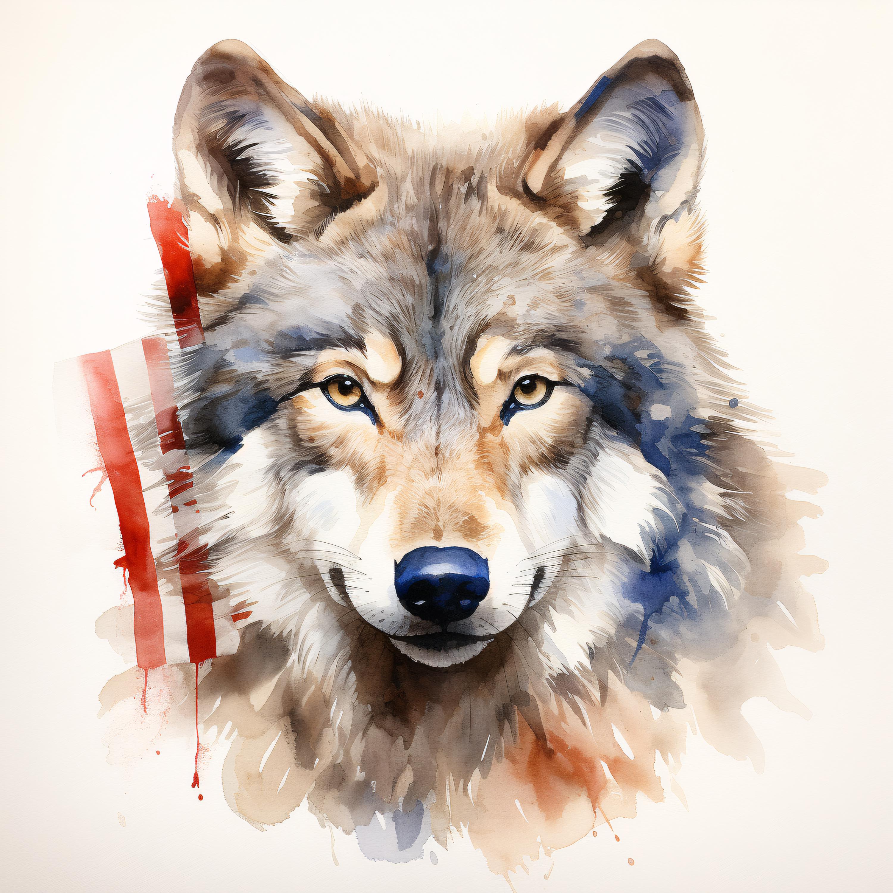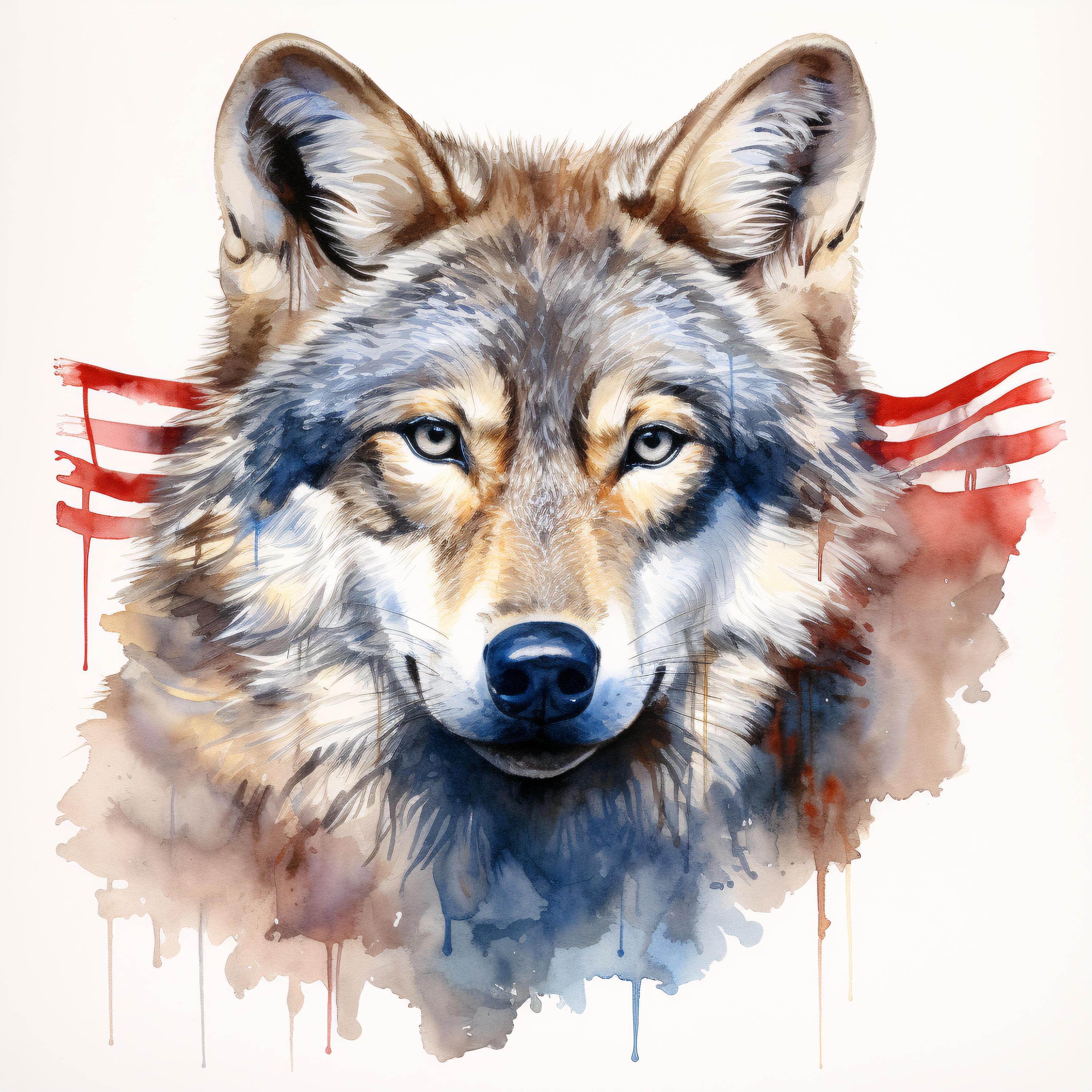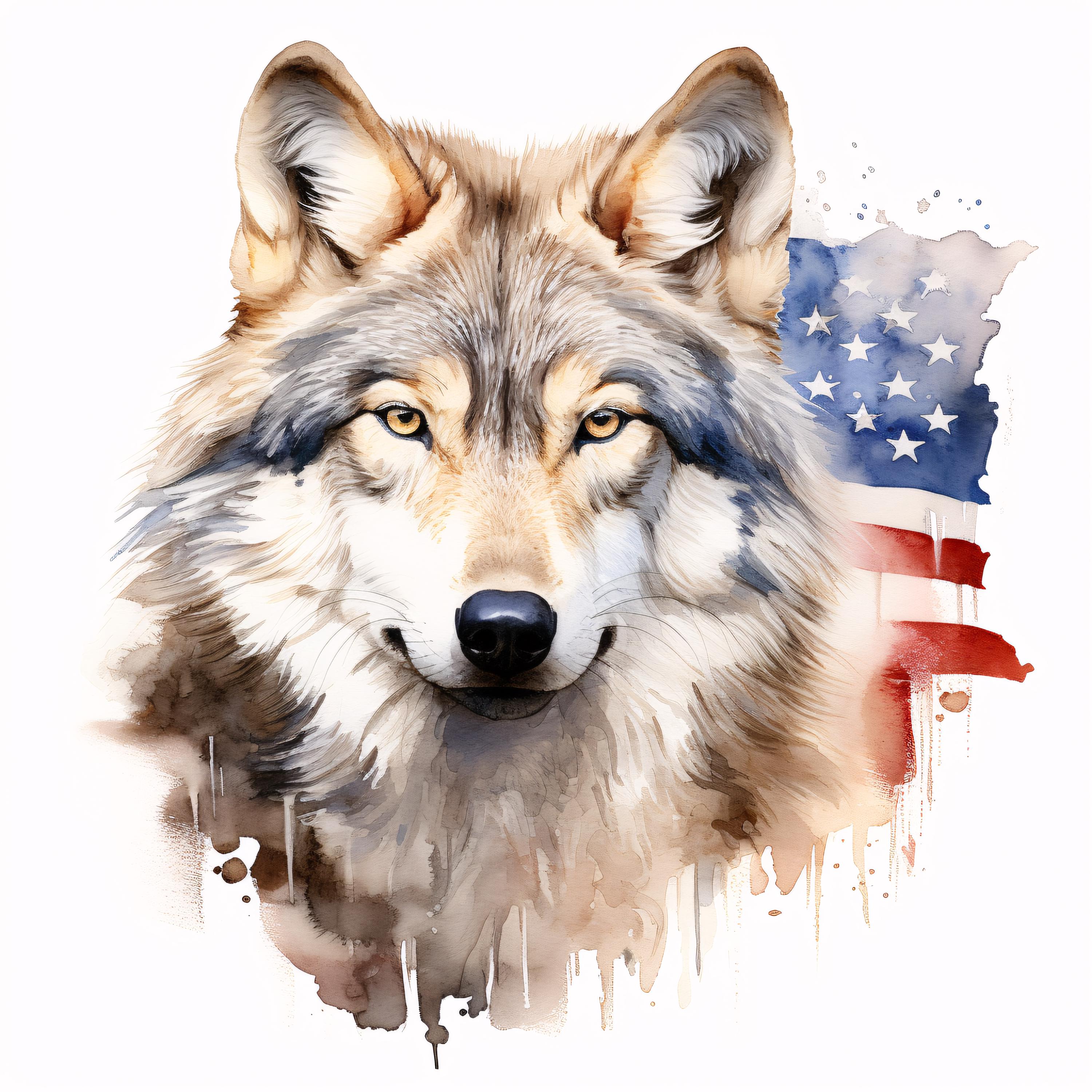 American Wolf Clipart, Patriotic Animal Images, 10 Watercolor Clip Art, Printable JPGs, Instant Download, Commercial Use, Paper craft