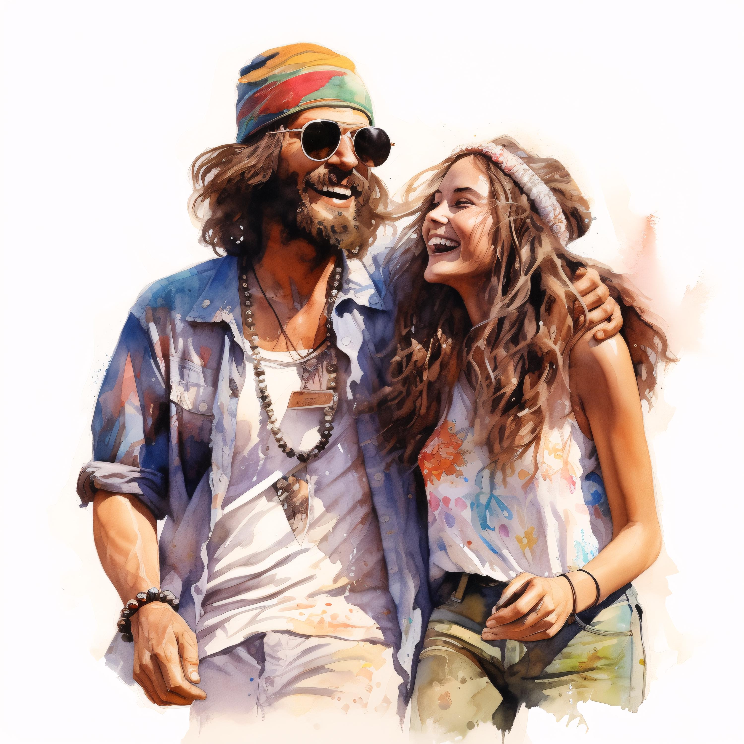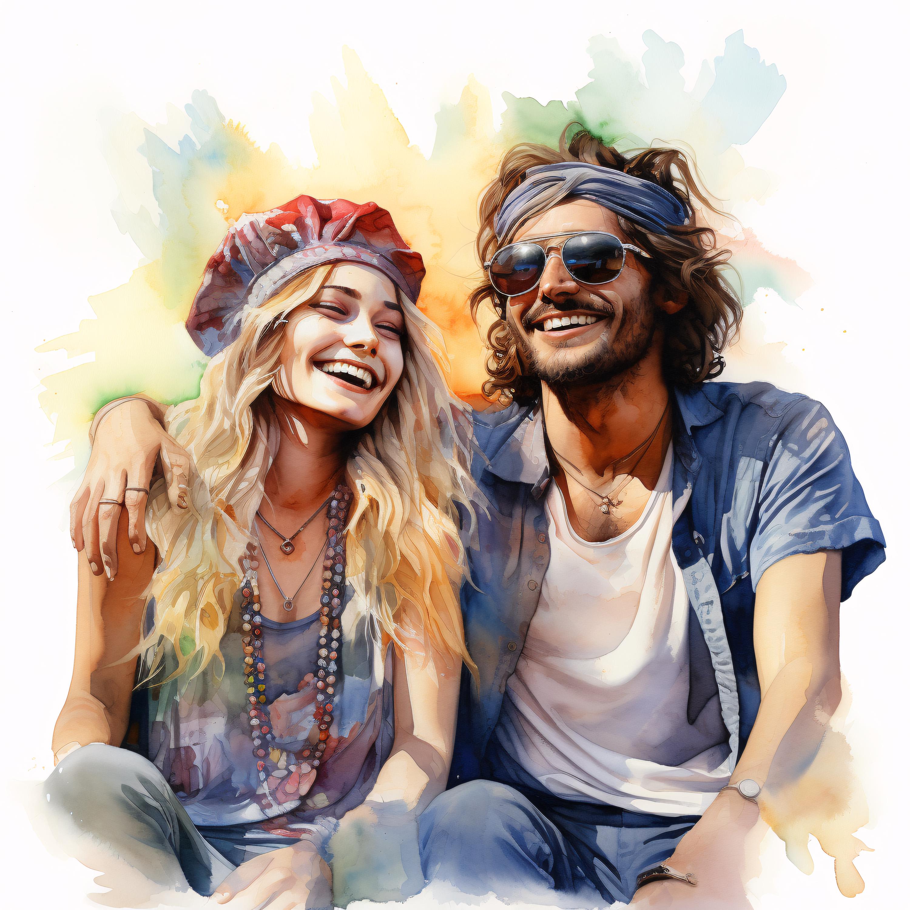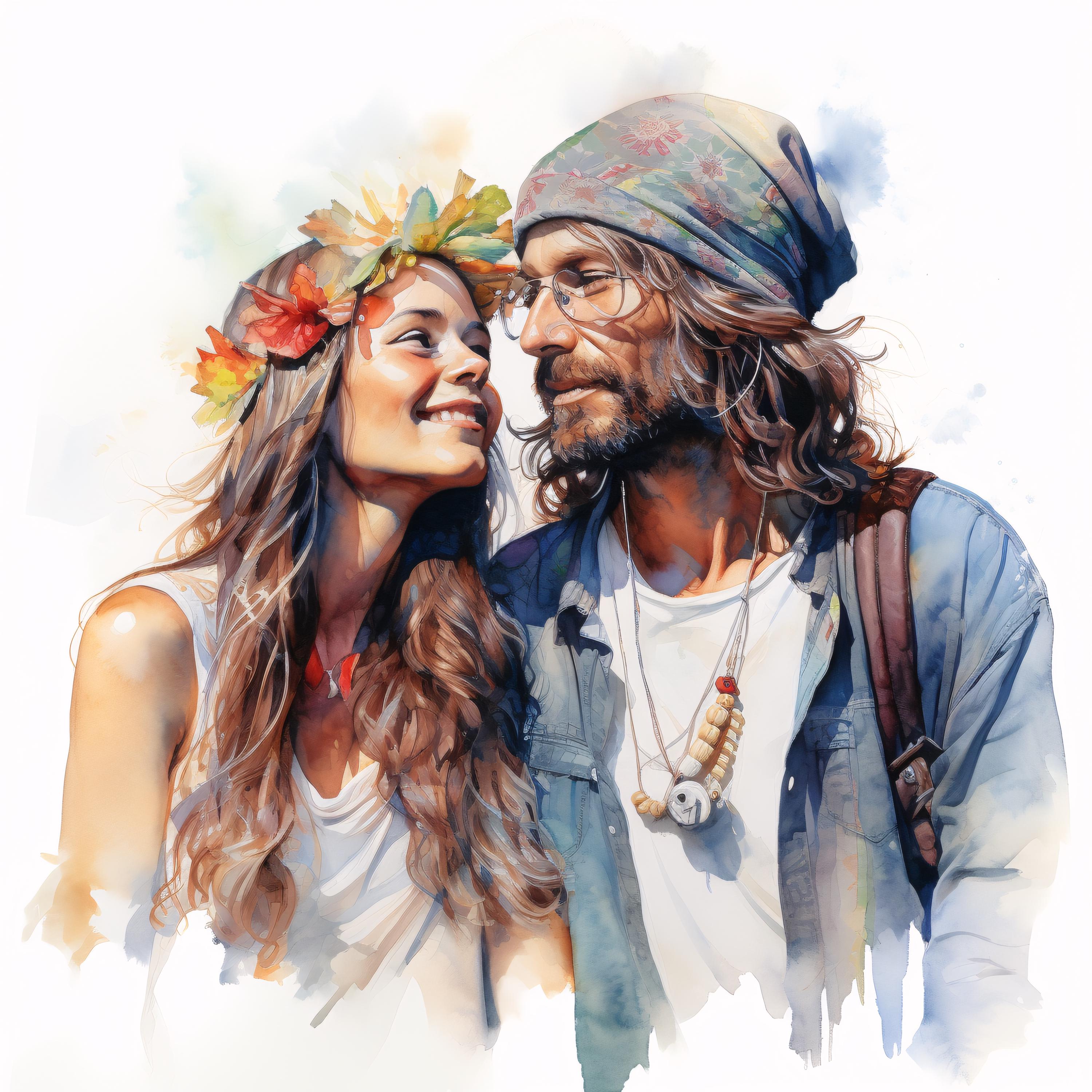 Hippie Couple Clipart, Boho Lifestyle Images, 10 Watercolor Clip Art, Printable JPGs, Instant Download, Commercial Use, Paper craft