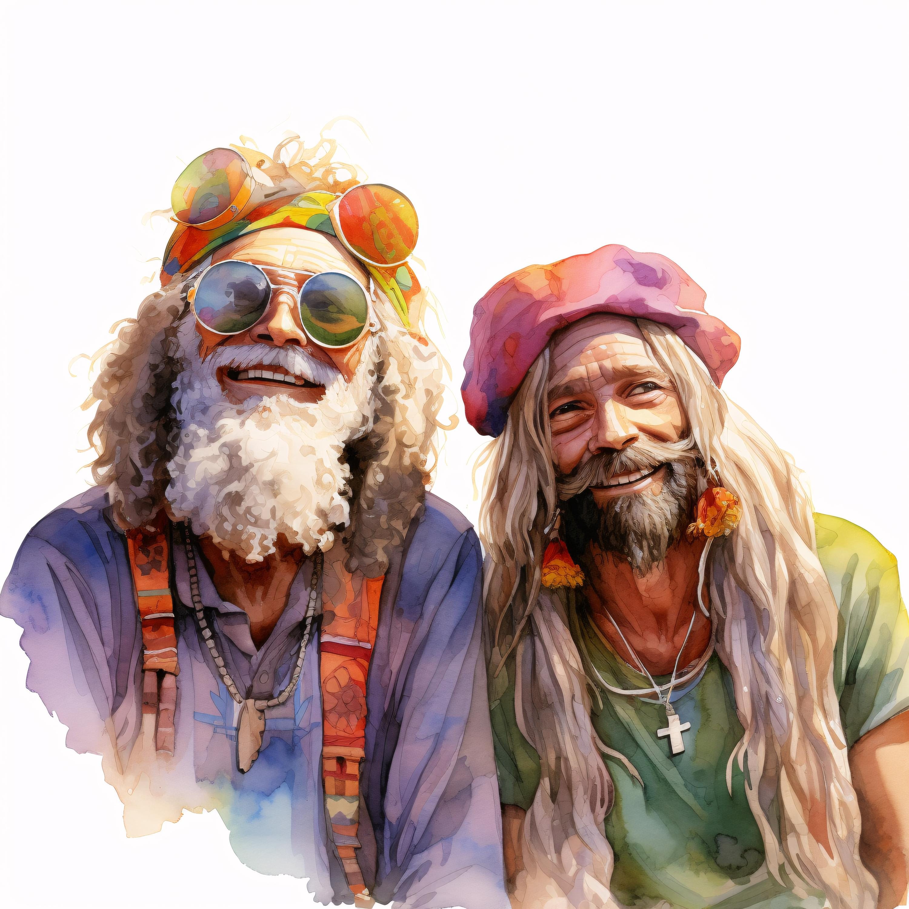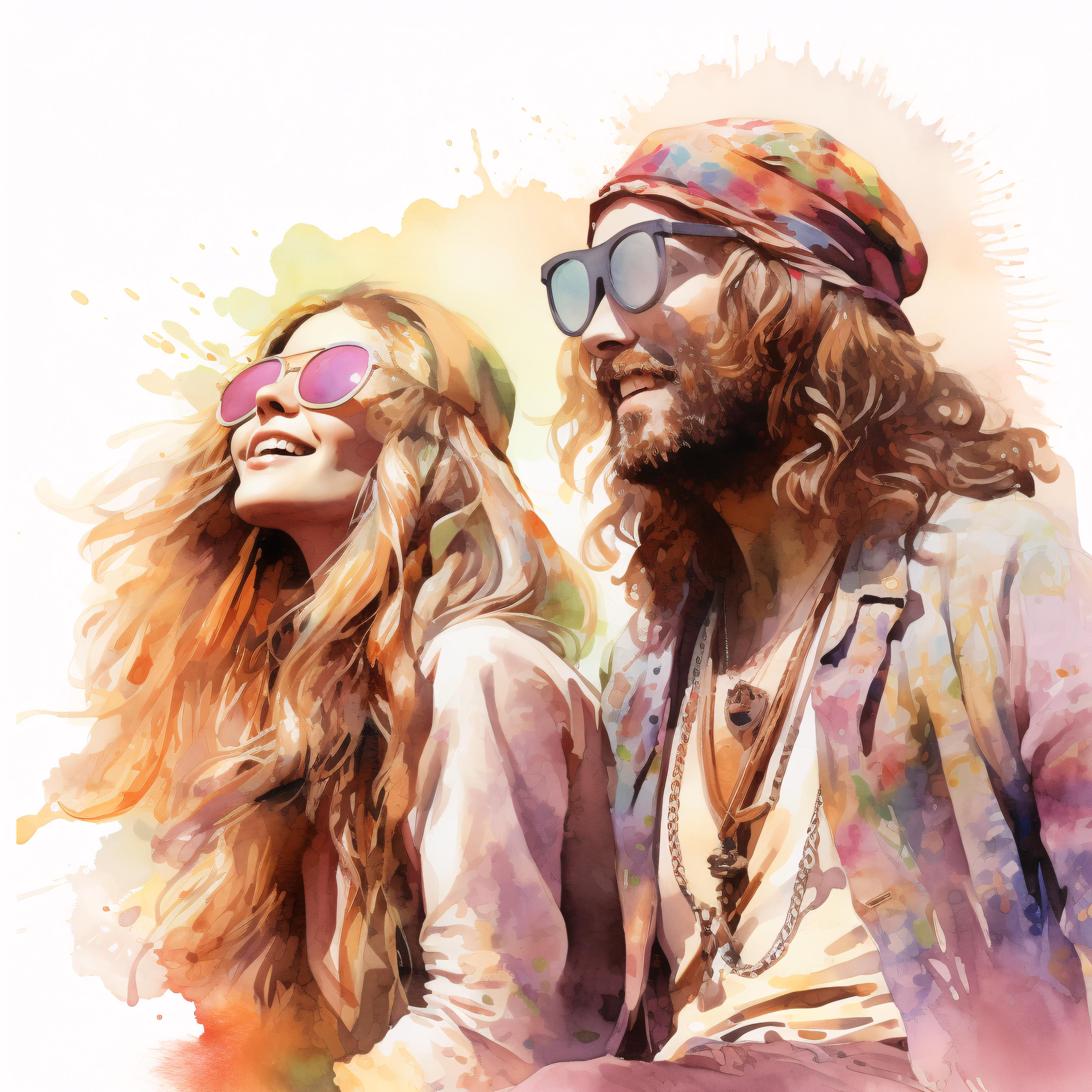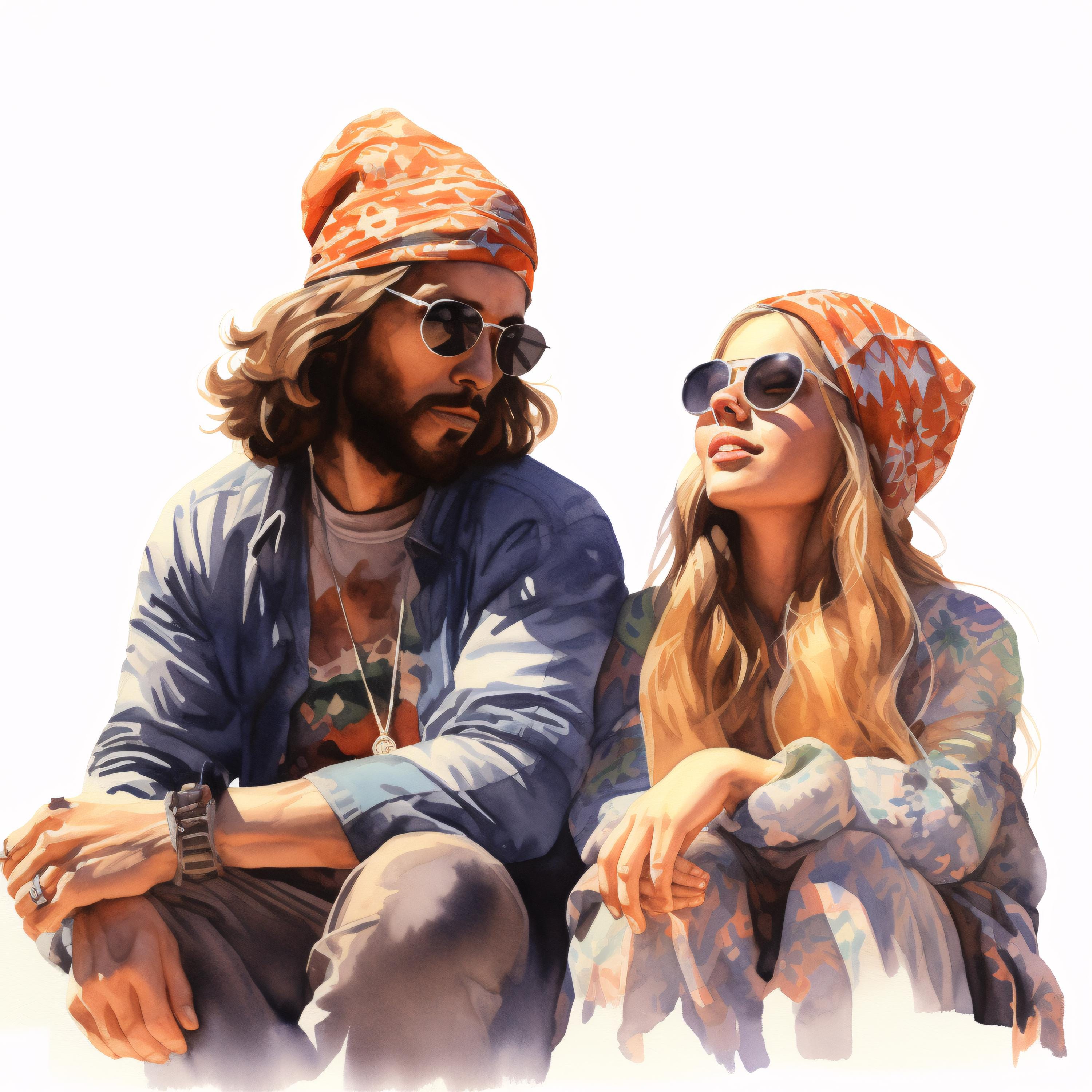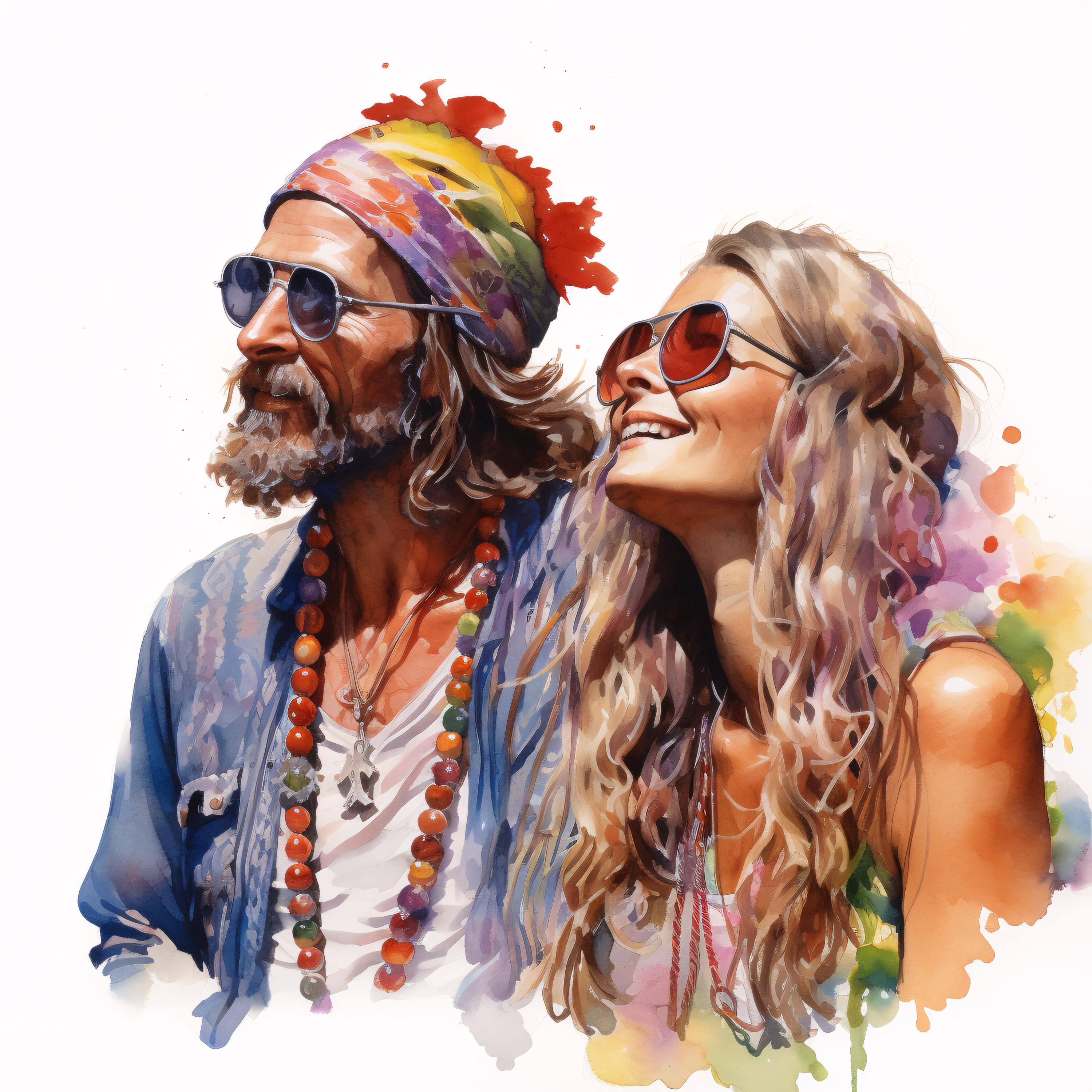 Hippie Couple Clipart, Boho Lifestyle Images, 10 Watercolor Clip Art, Printable JPGs, Instant Download, Commercial Use, Paper craft