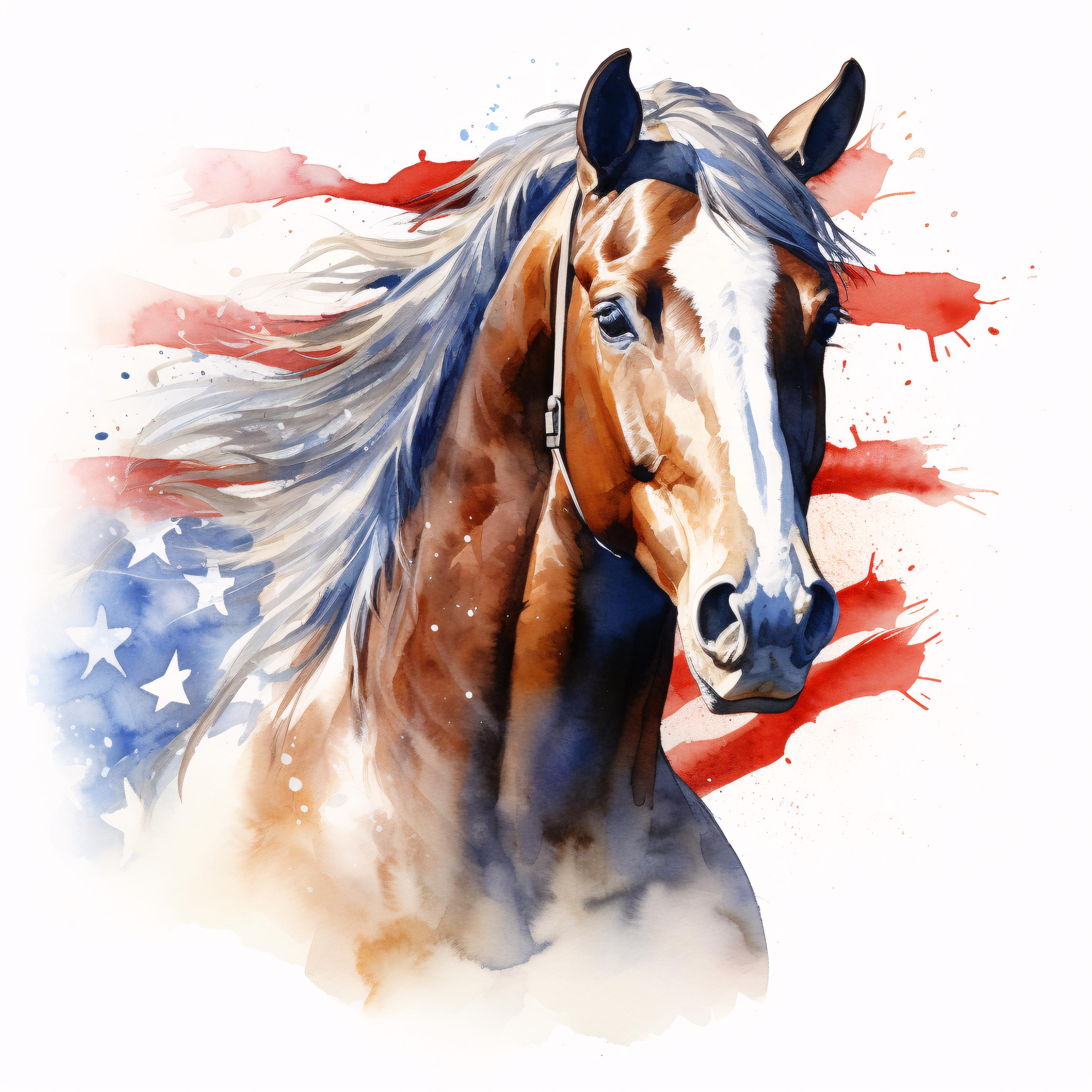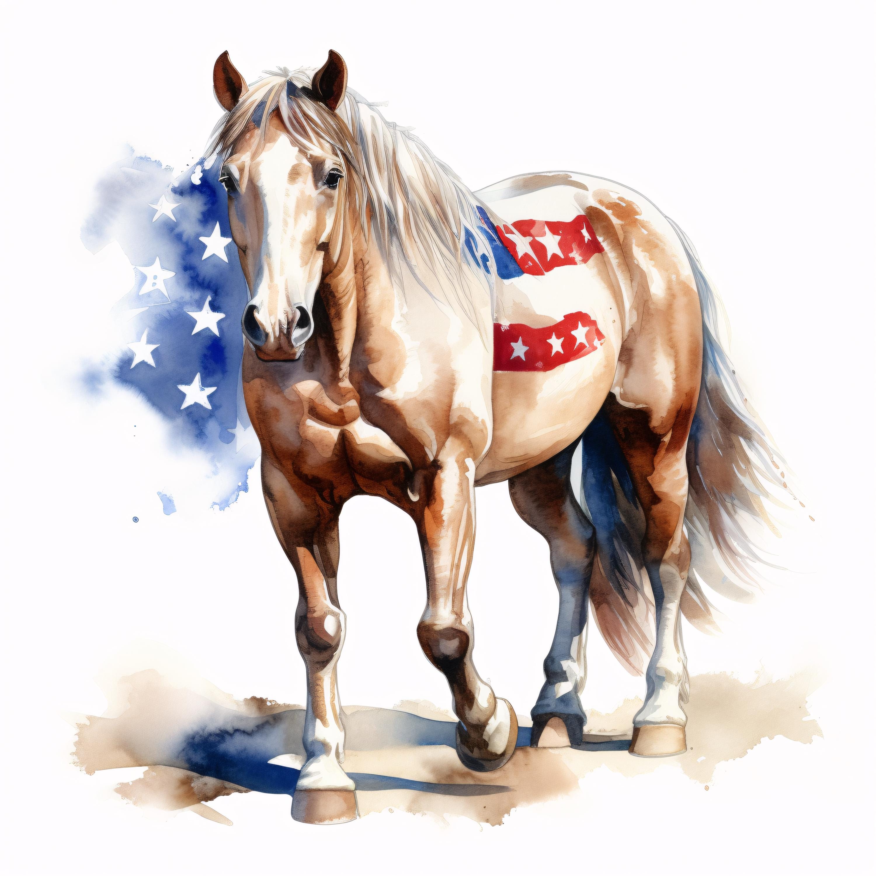 American Horse Clipart, Patriotic Animal Images, 10 Watercolor Clip Art, Printable JPGs, Instant Download, Commercial Use, Paper craft