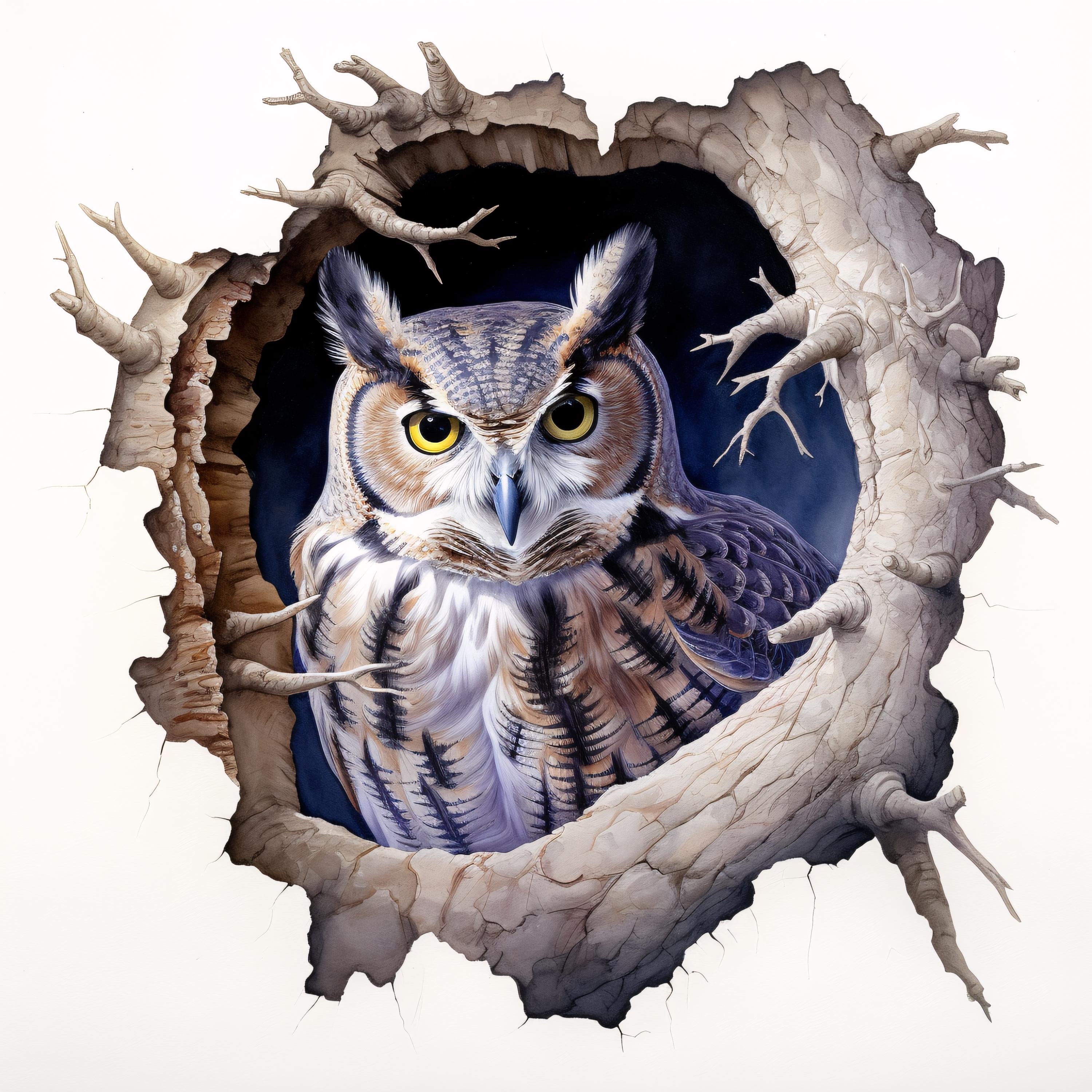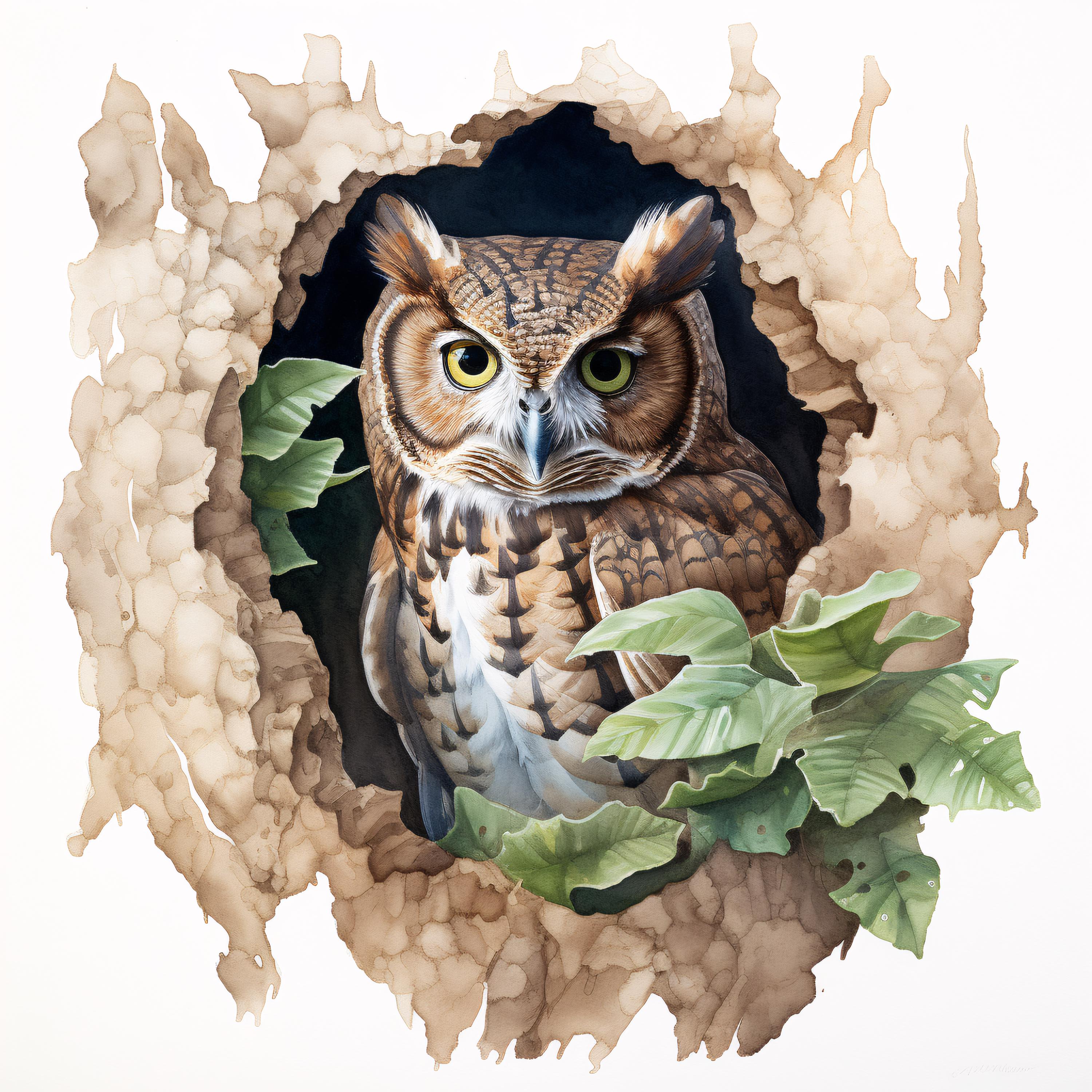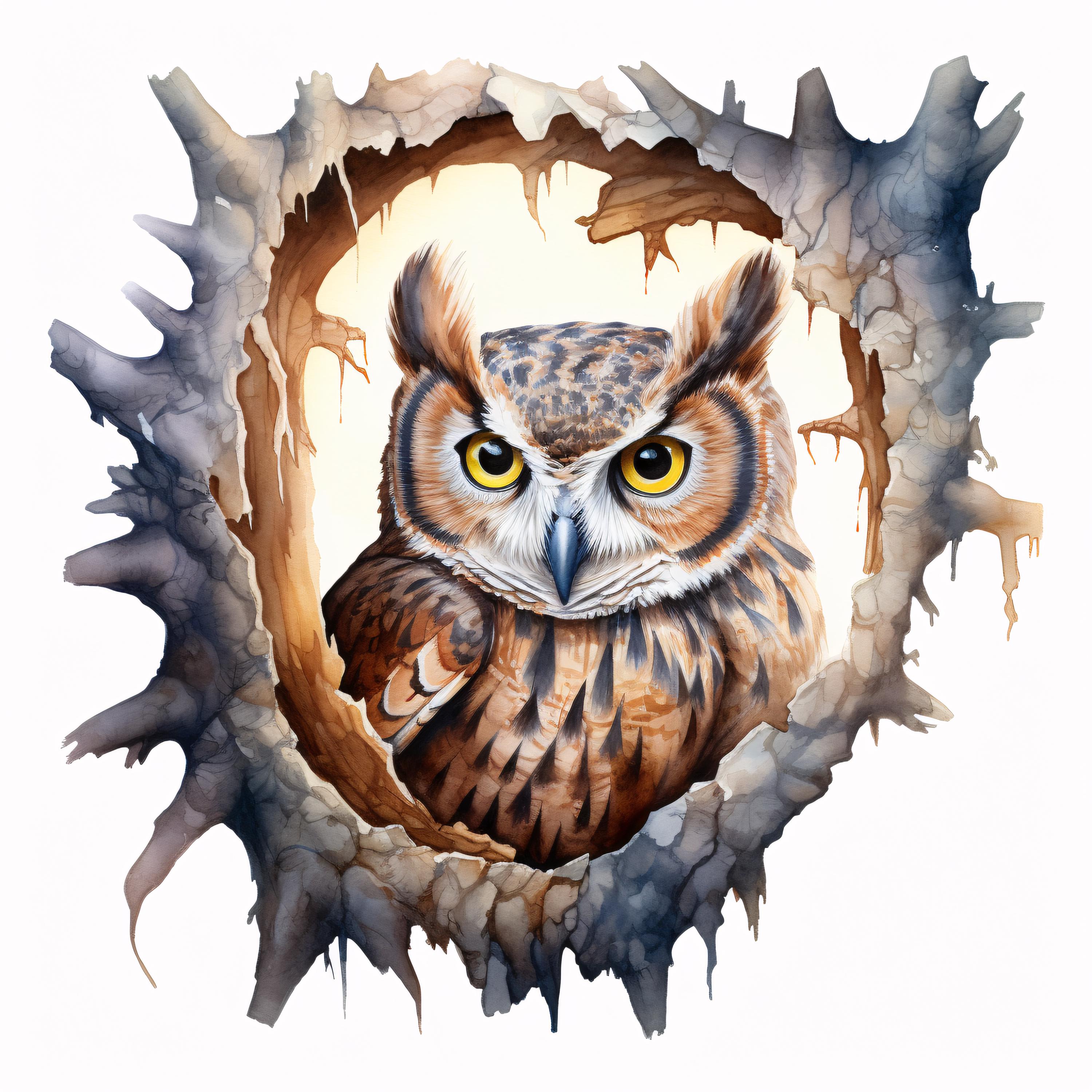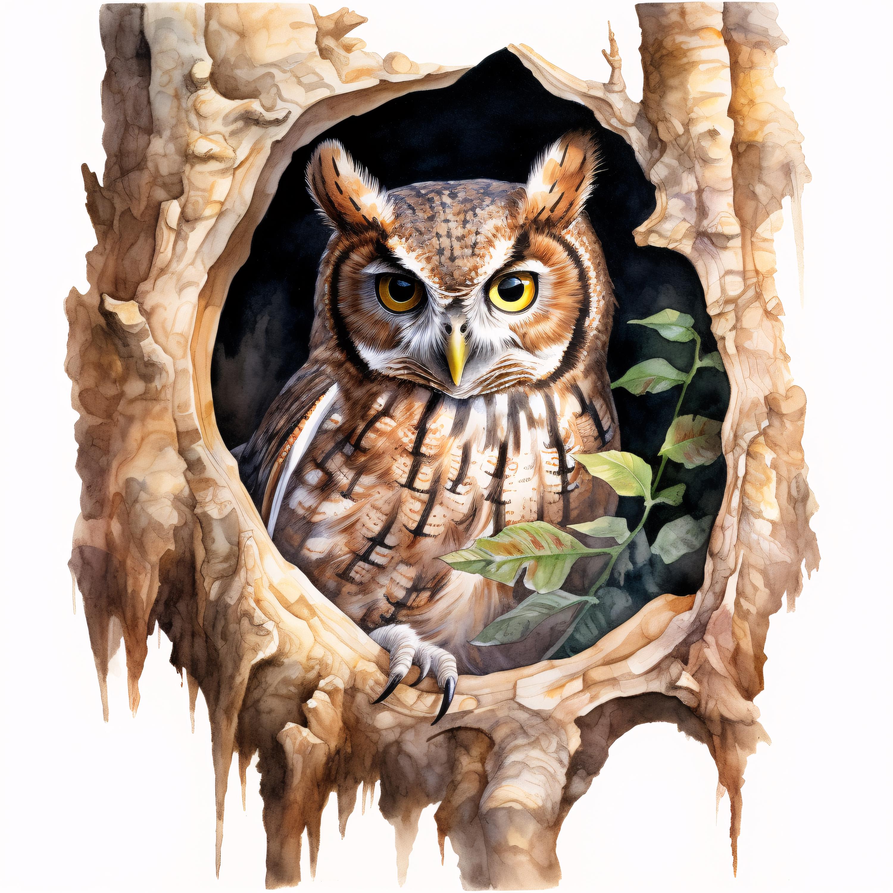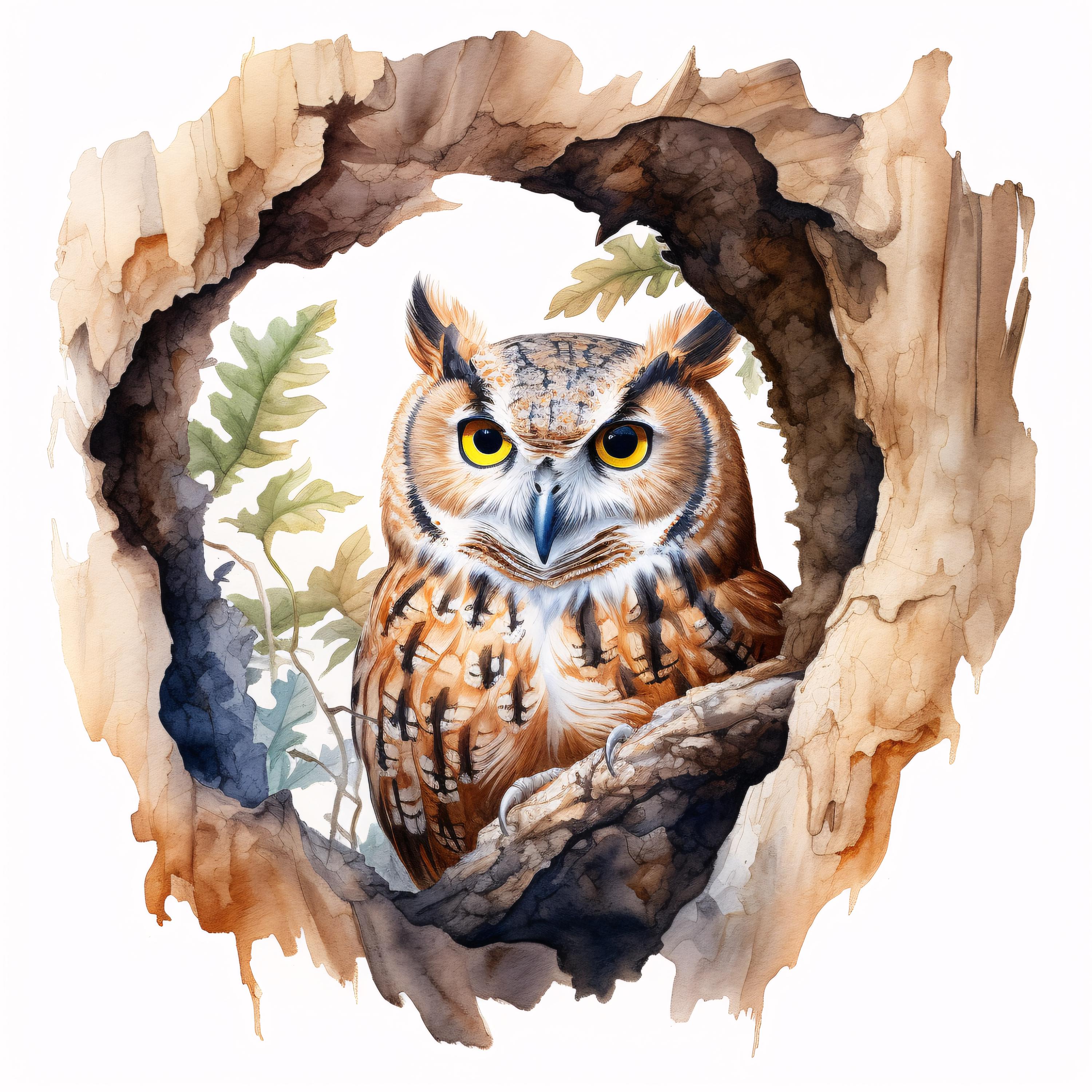 Owl in Tree Clipart, Woodland Bird Images, 10 Watercolor Clip Art, Printable JPGs, Instant Download, Commercial Use, Paper craft