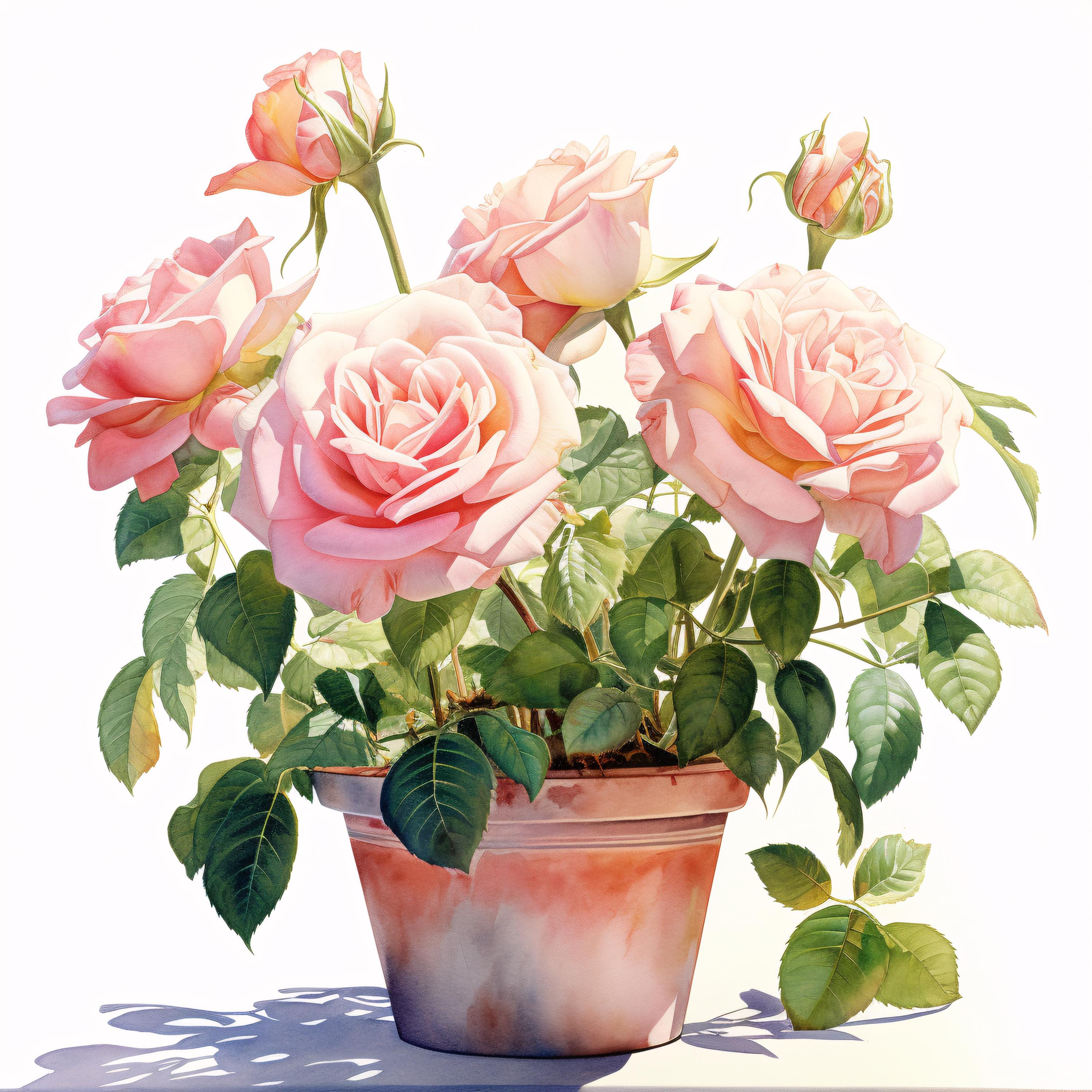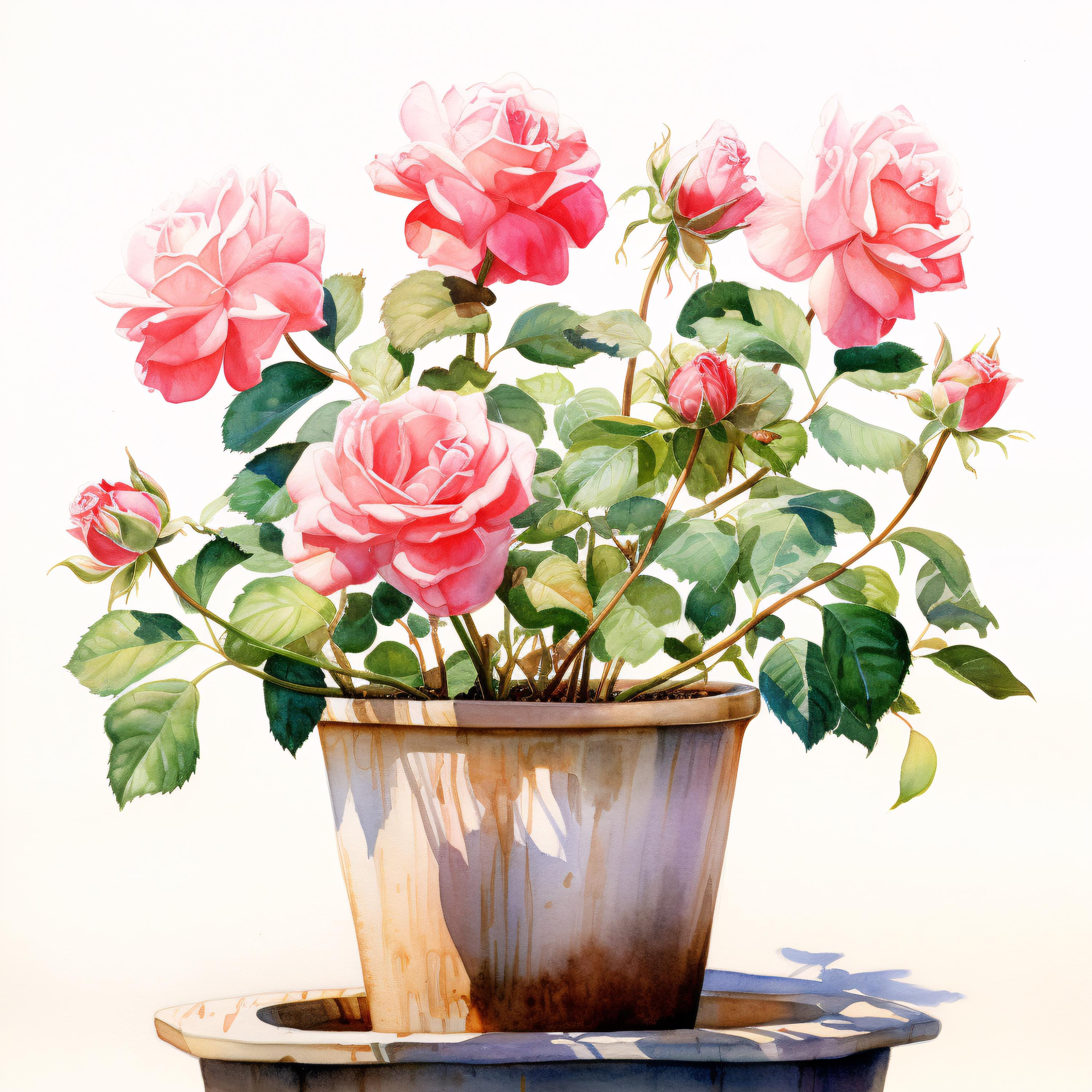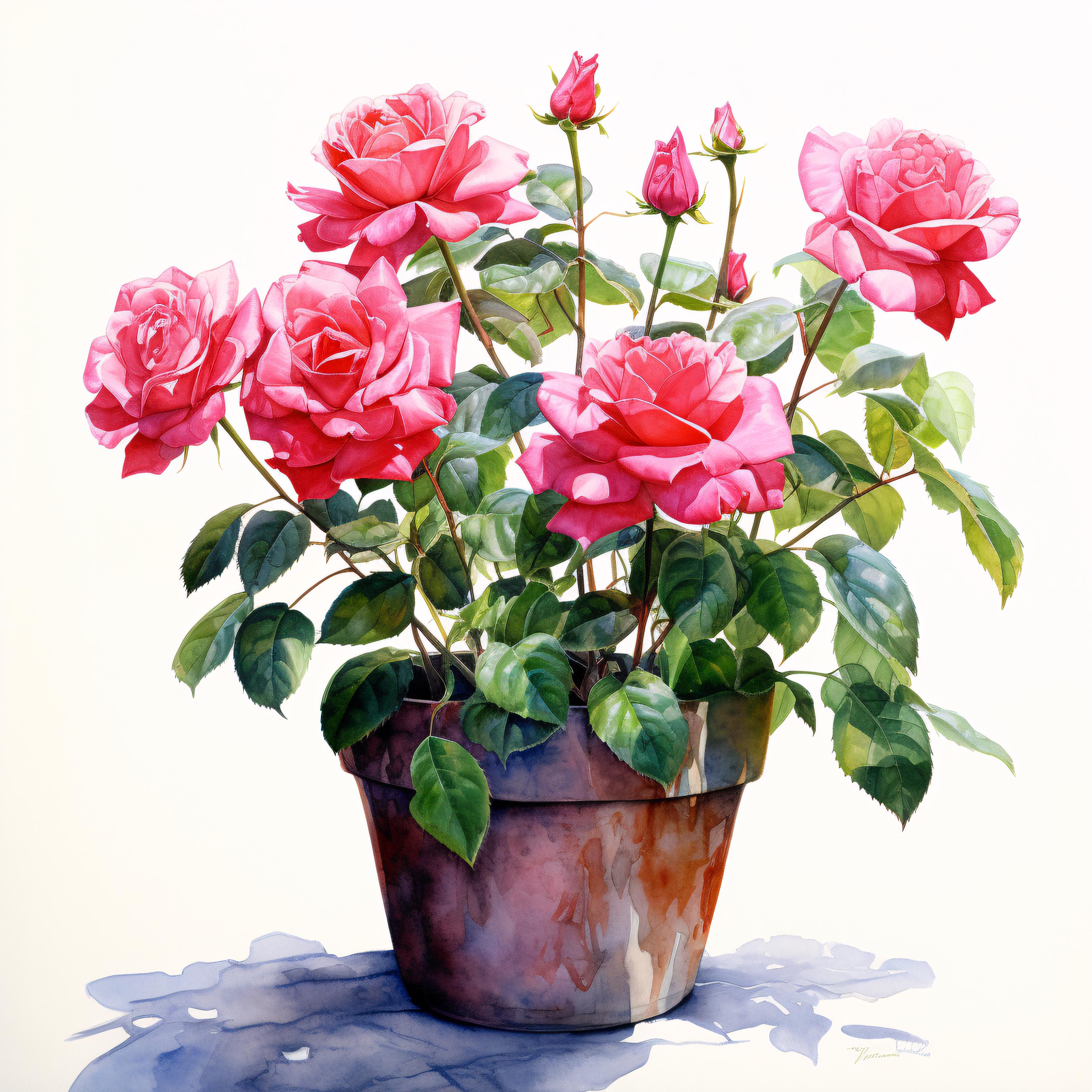 Potted Roses Clipart, Pink Flower Pot Images, 10 Watercolor Clip Art, Printable JPGs, Instant Download, Commercial Use, Paper craft
