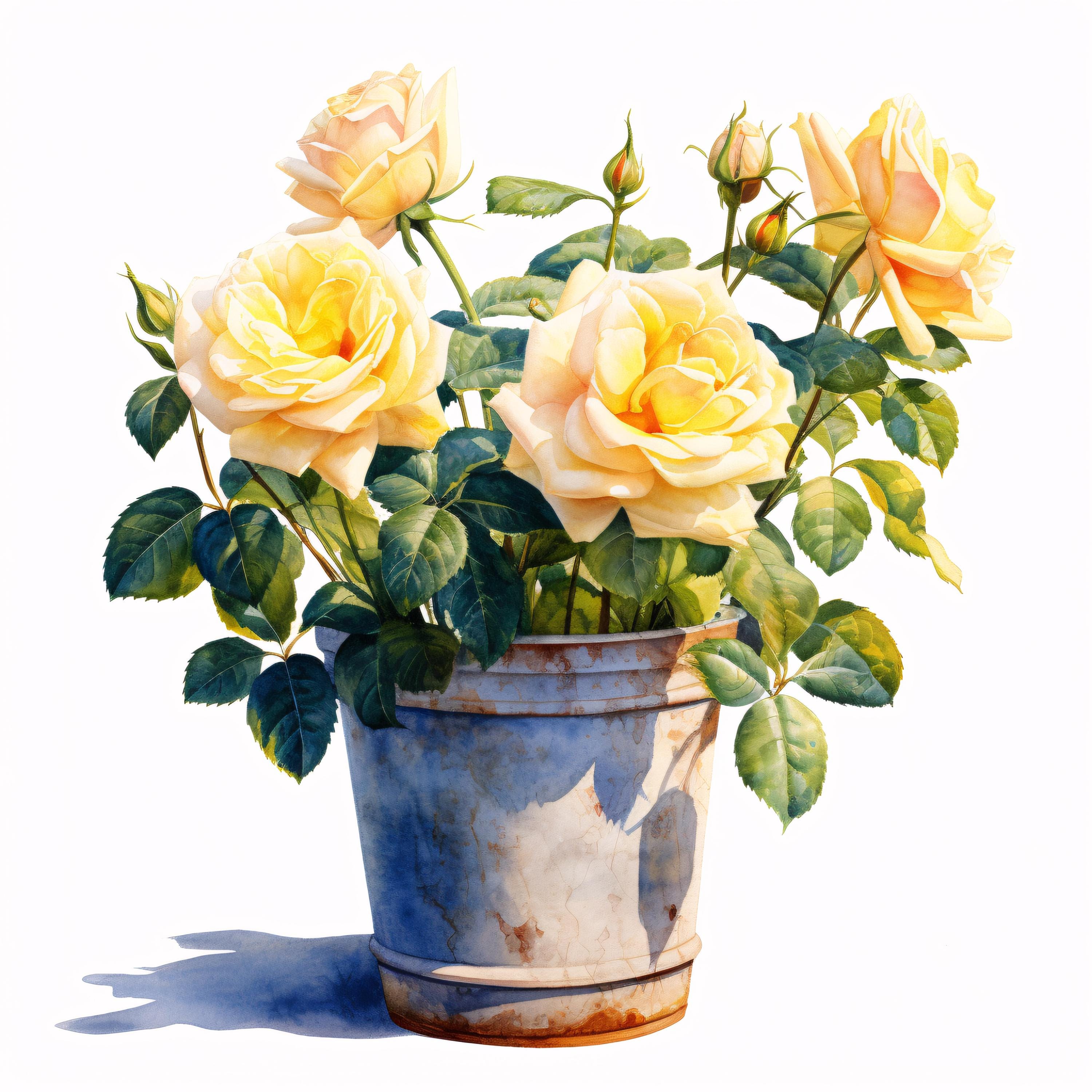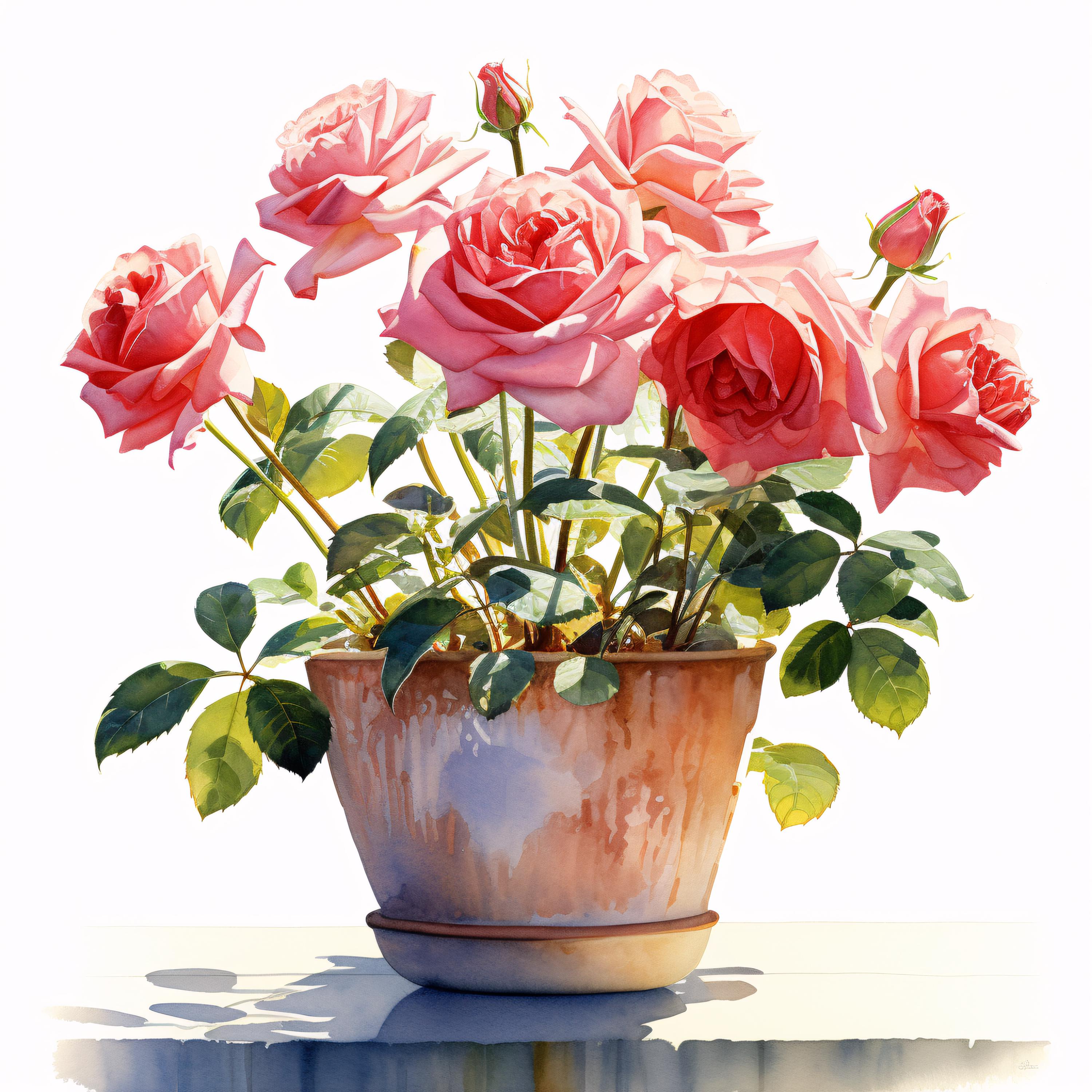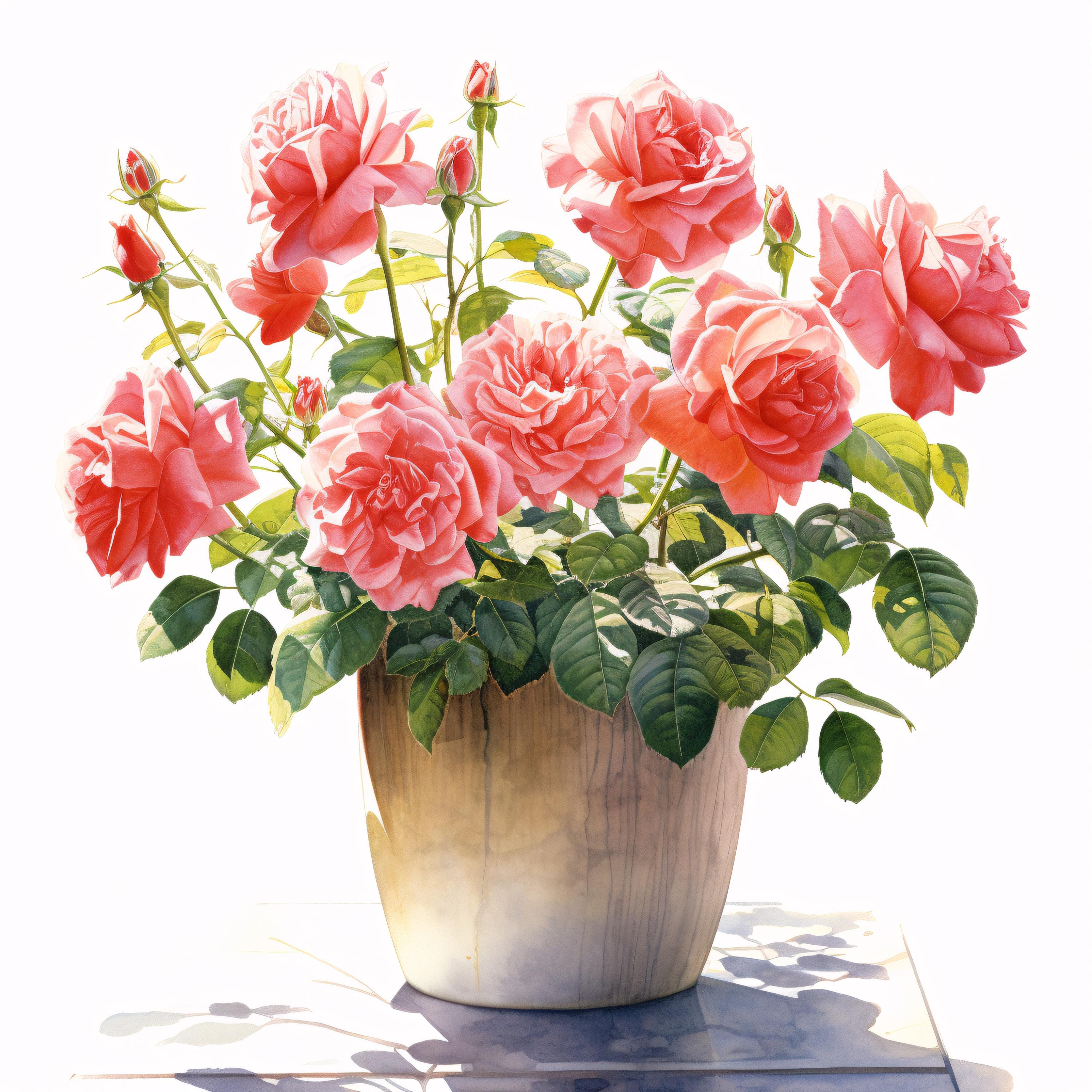 Potted Roses Clipart, Pink Flower Pot Images, 10 Watercolor Clip Art, Printable JPGs, Instant Download, Commercial Use, Paper craft