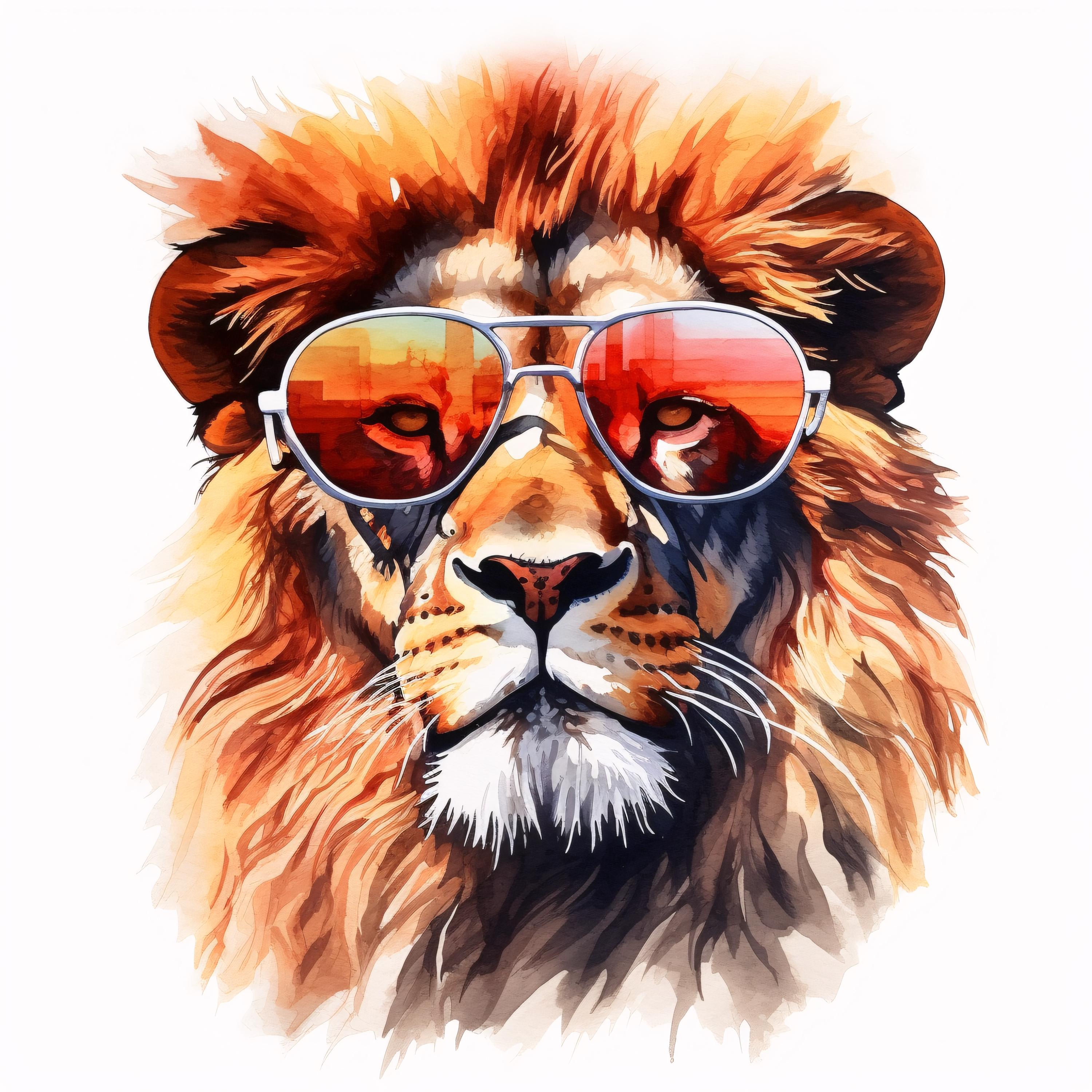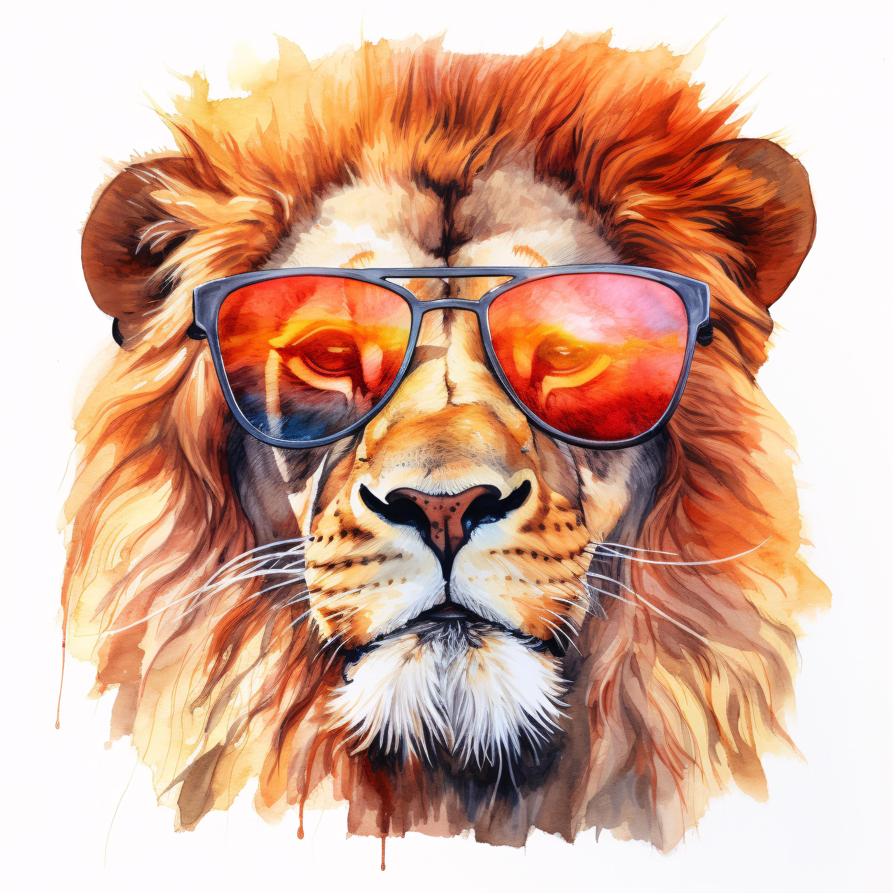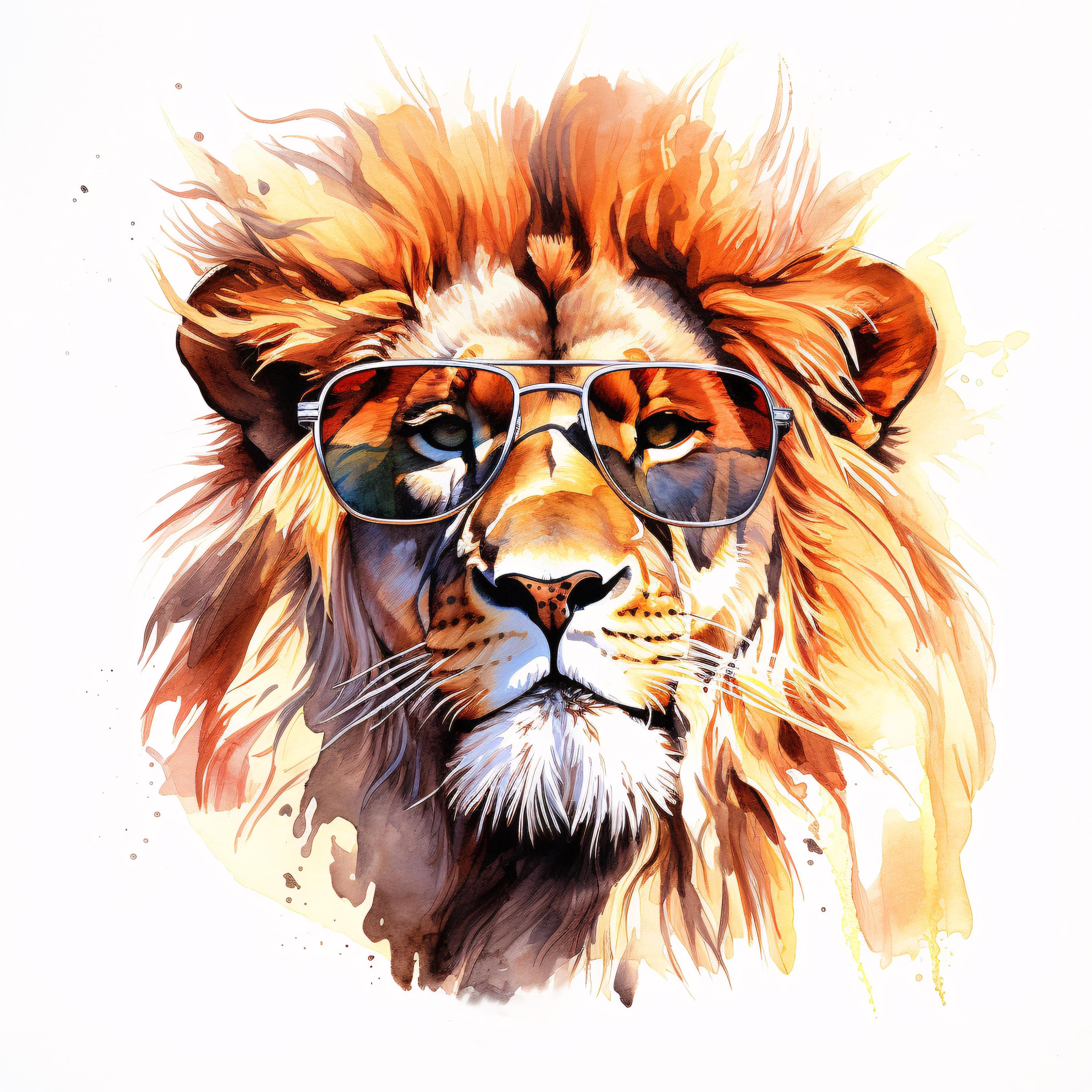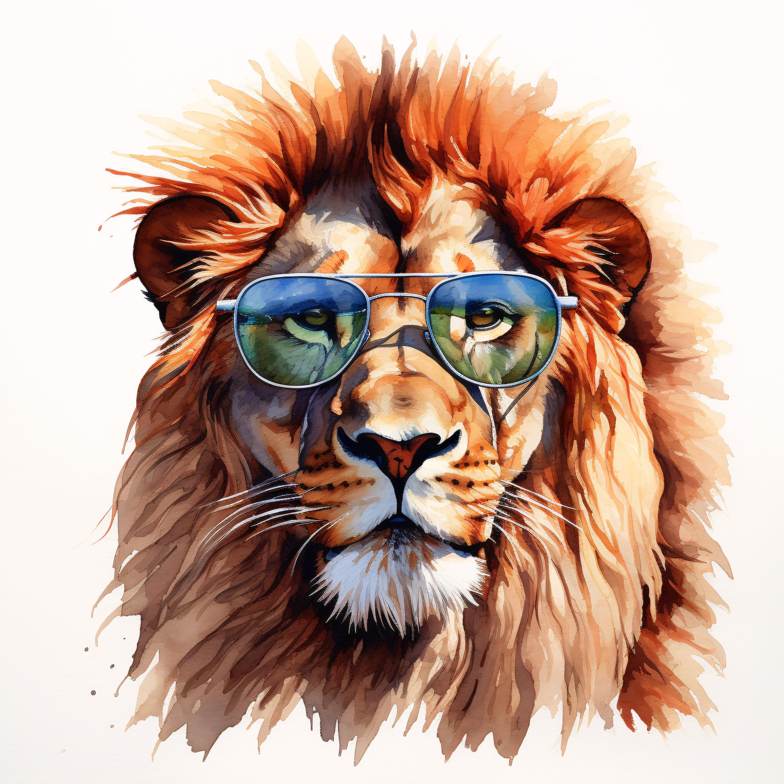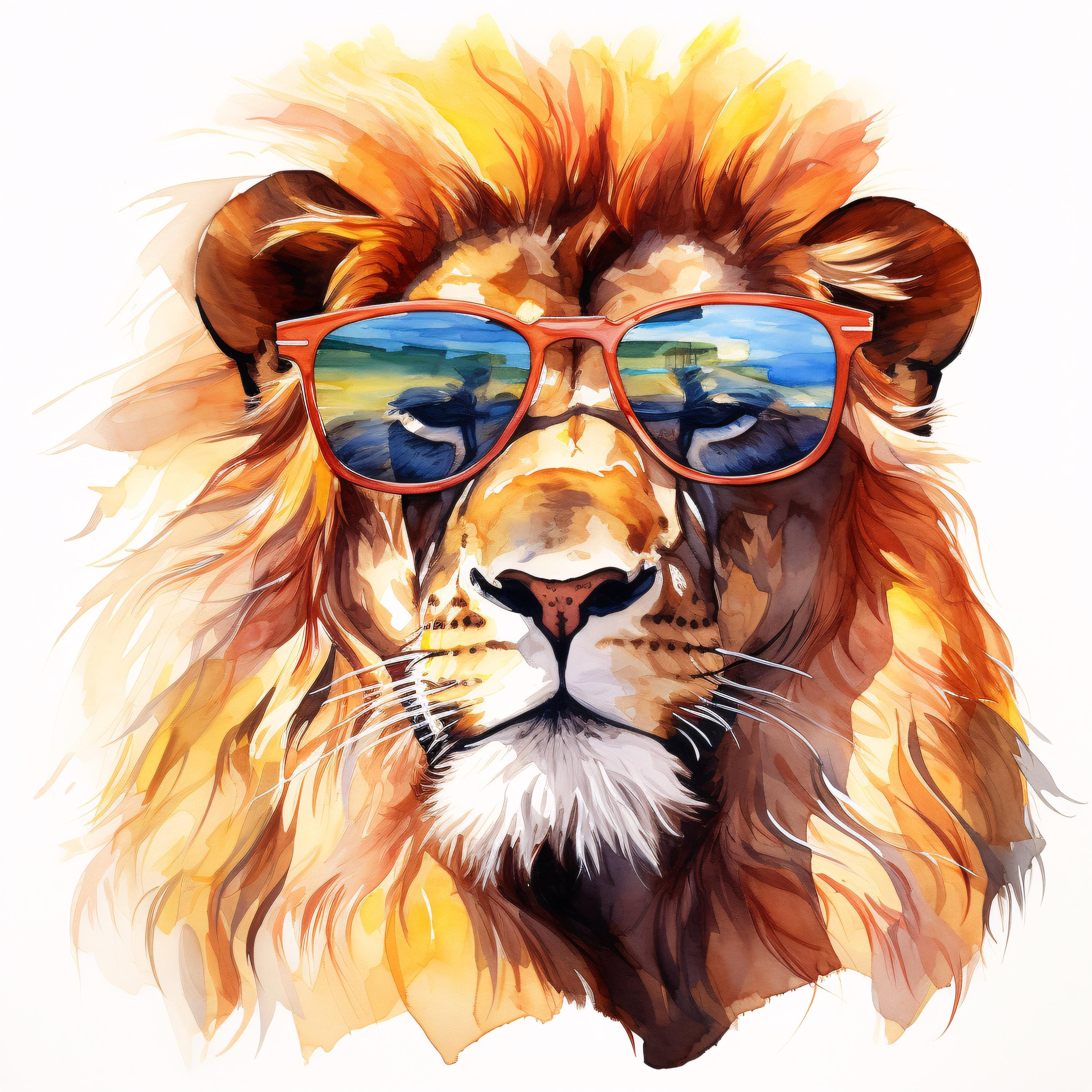 Cool Lion Clipart, Animal Portrait Images, 10 Watercolor Clip Art, Printable JPGs, Instant Download, Commercial Use, Paper craft