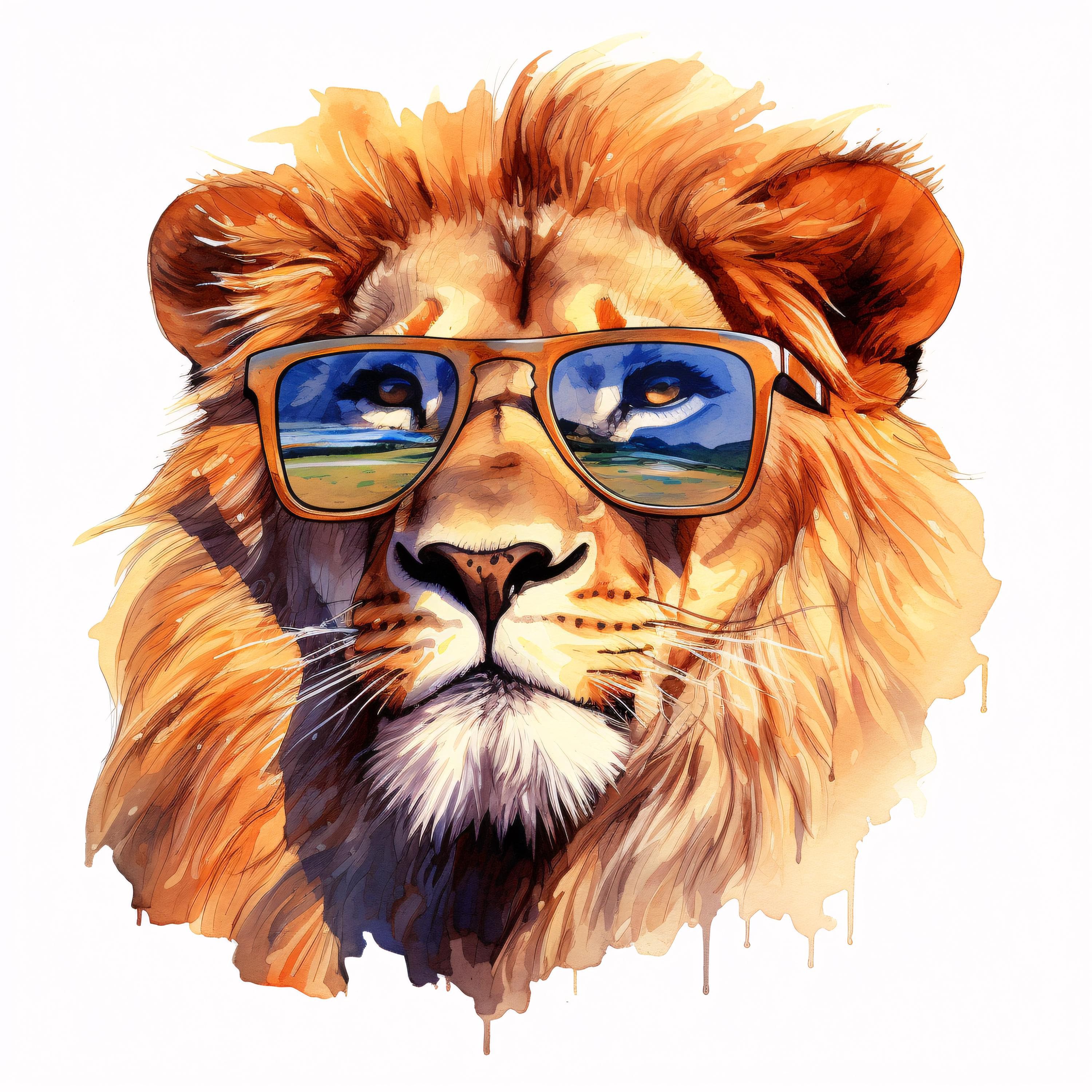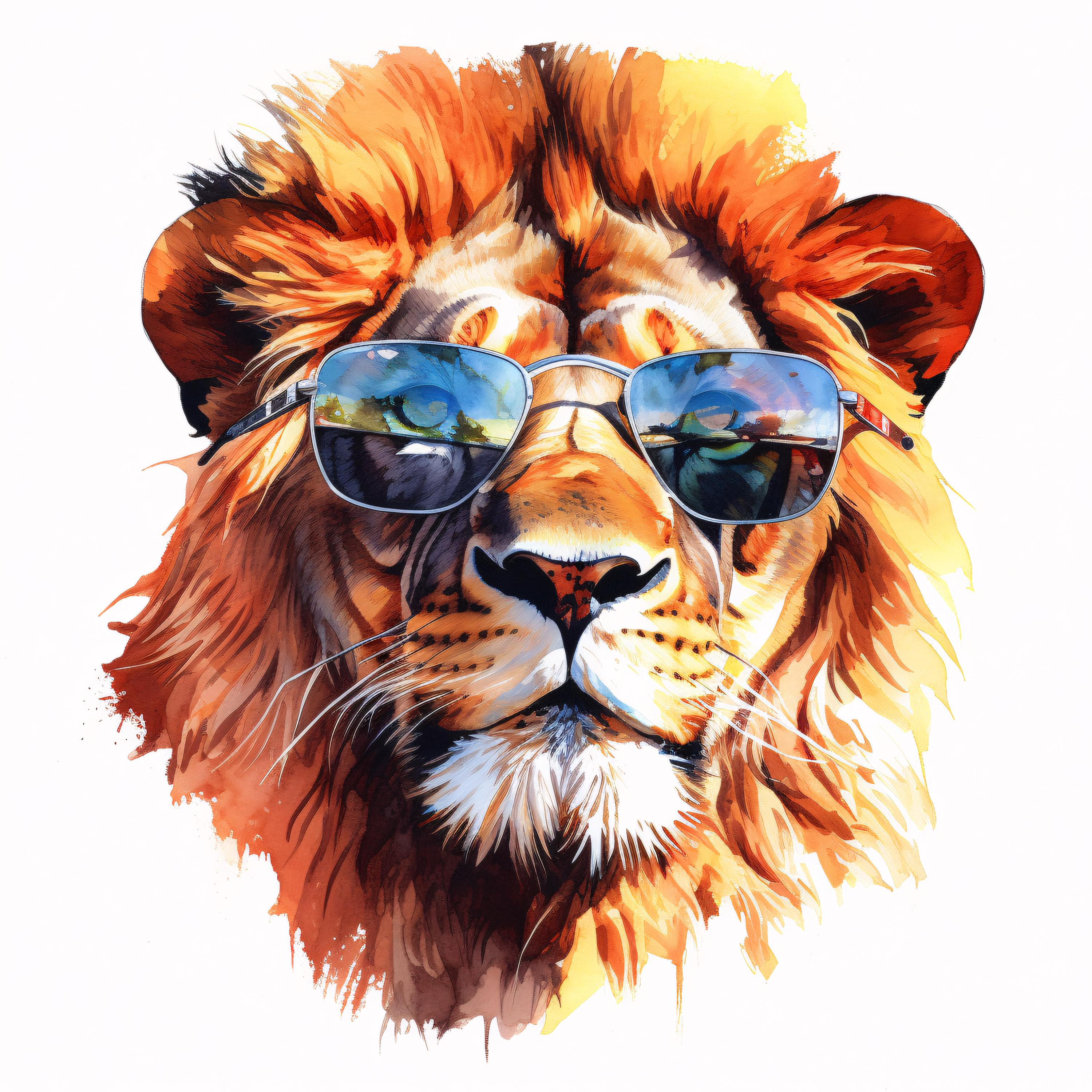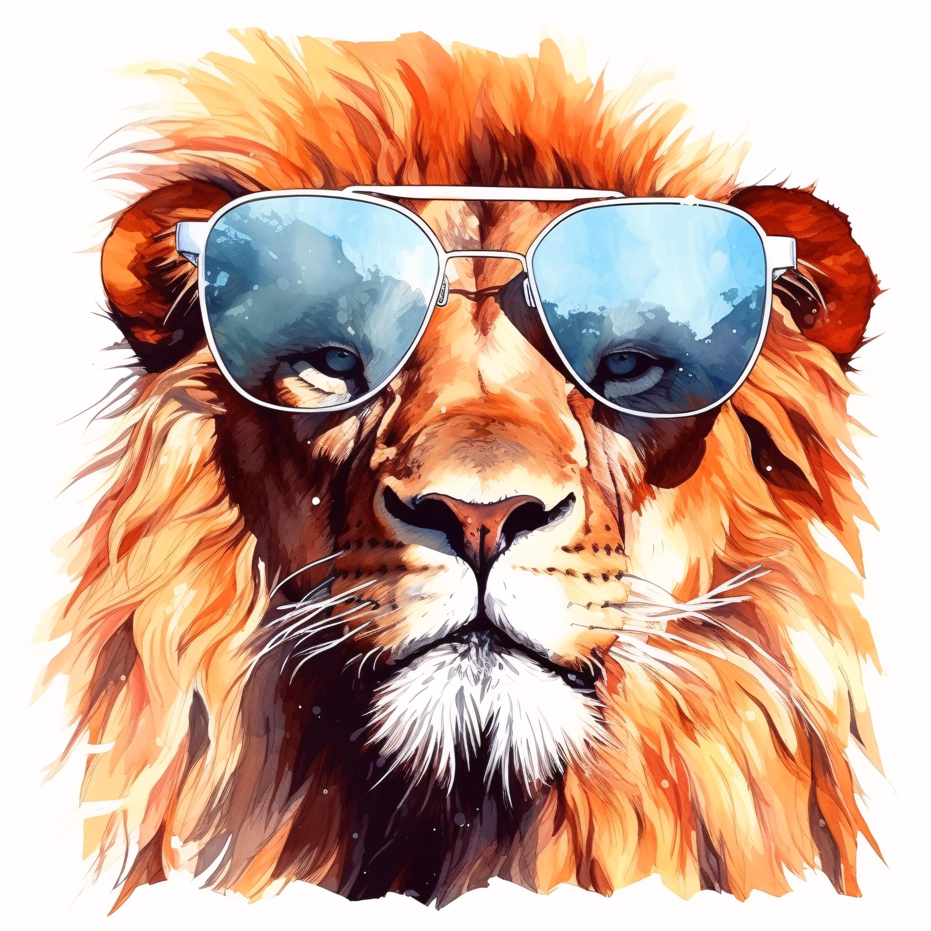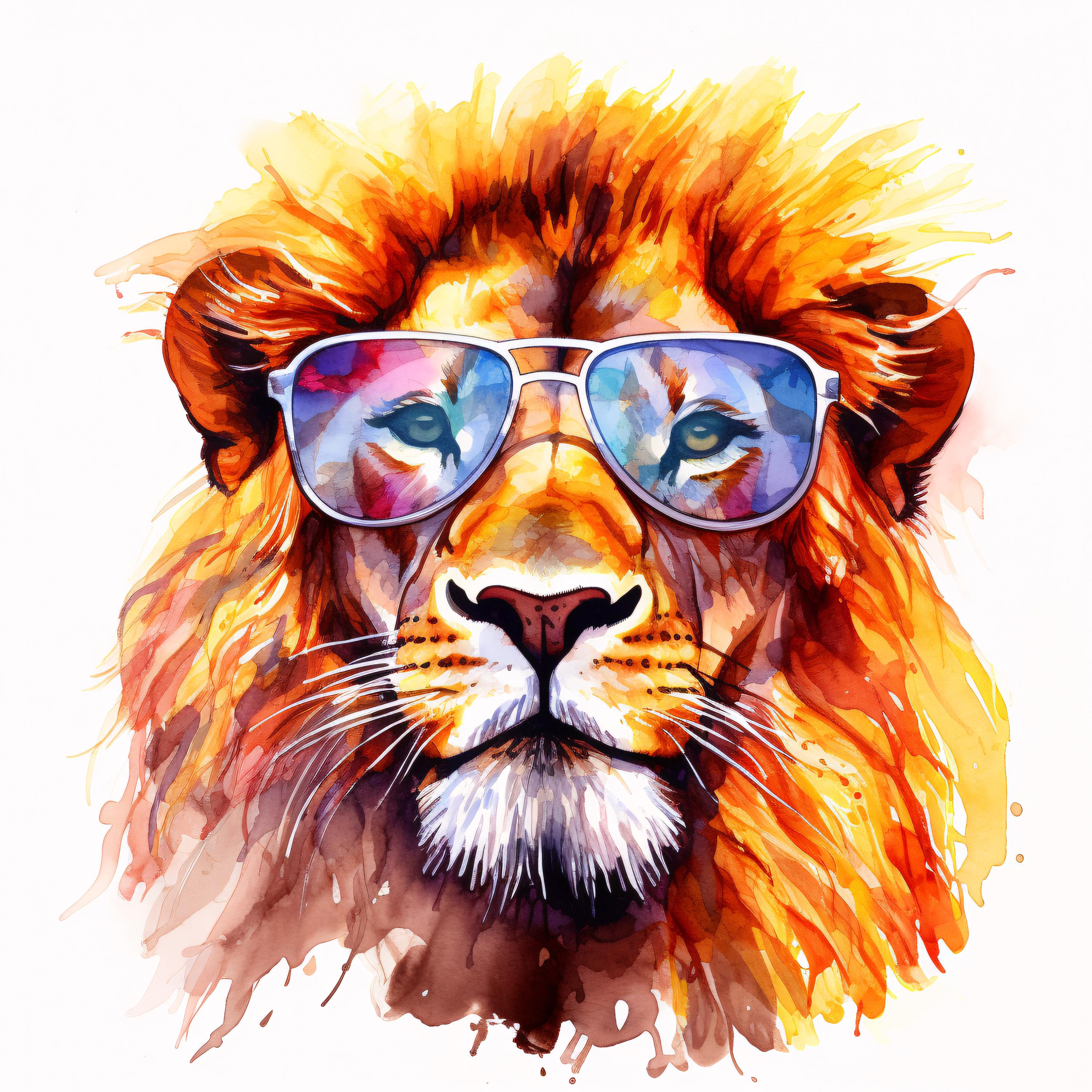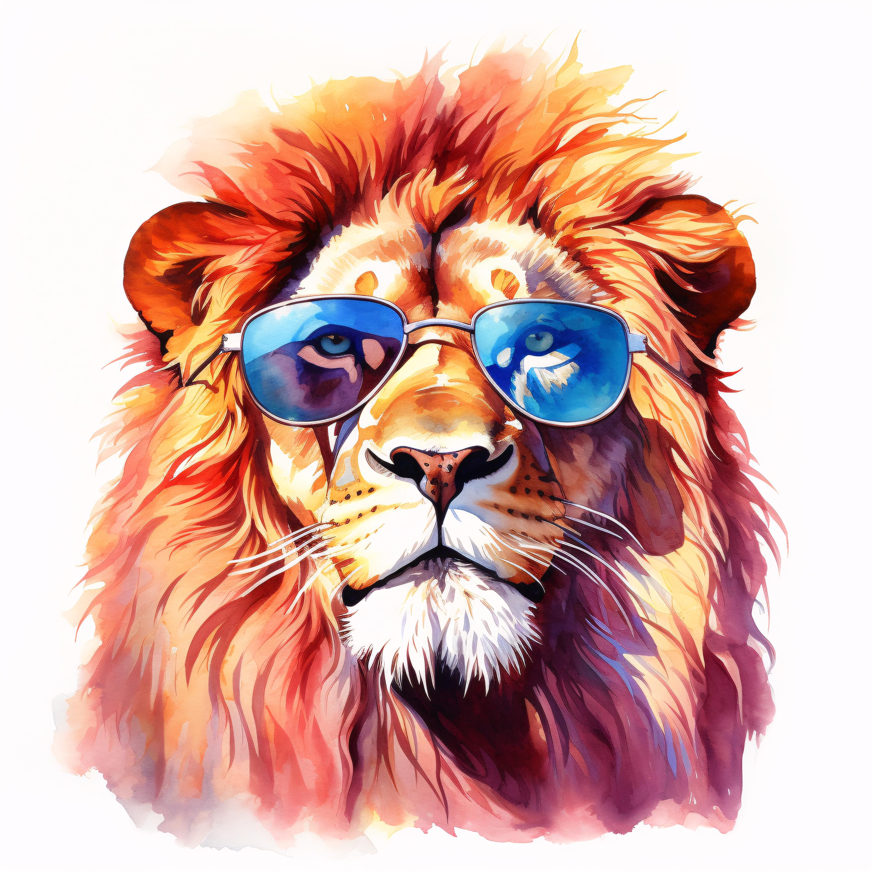 Cool Lion Clipart, Animal Portrait Images, 10 Watercolor Clip Art, Printable JPGs, Instant Download, Commercial Use, Paper craft