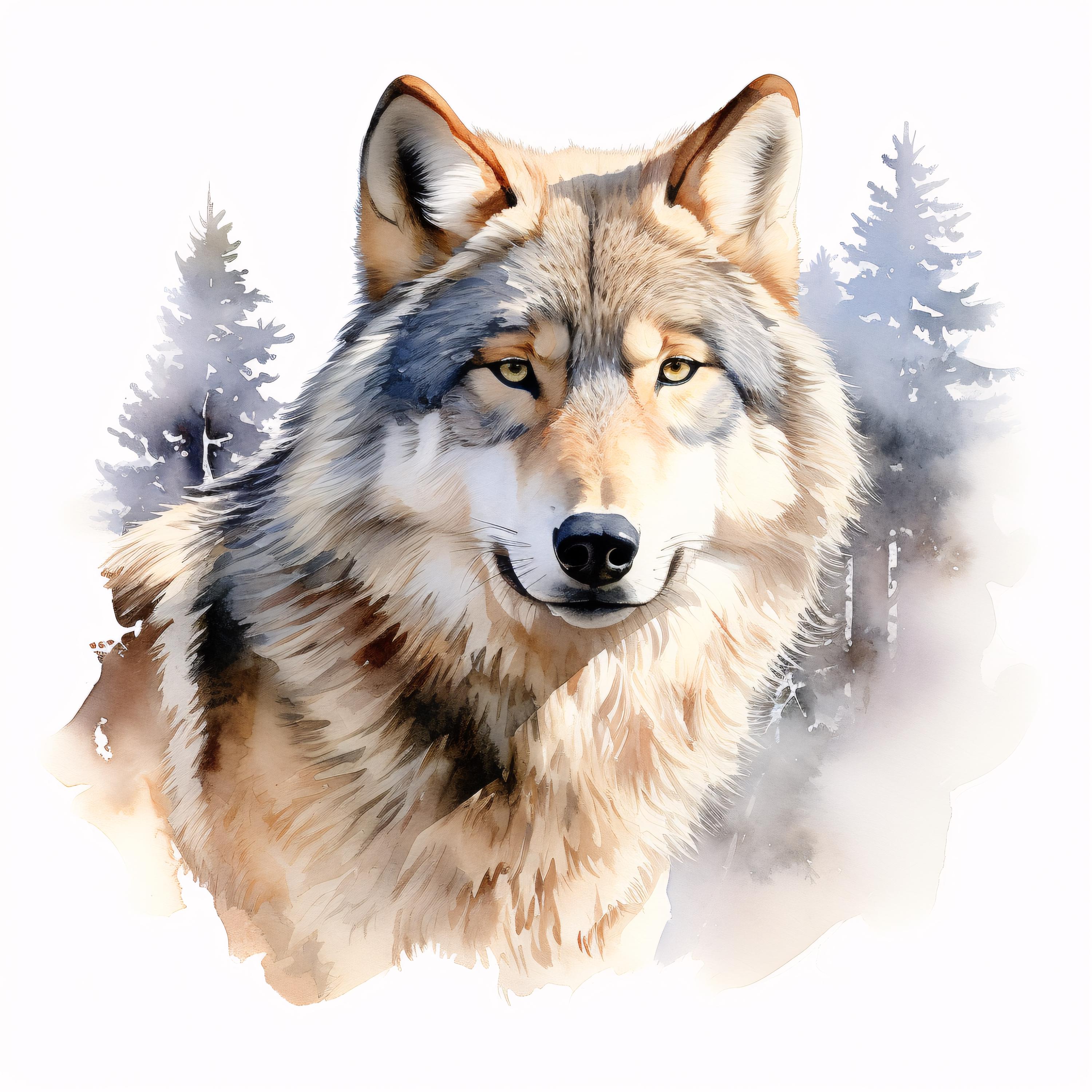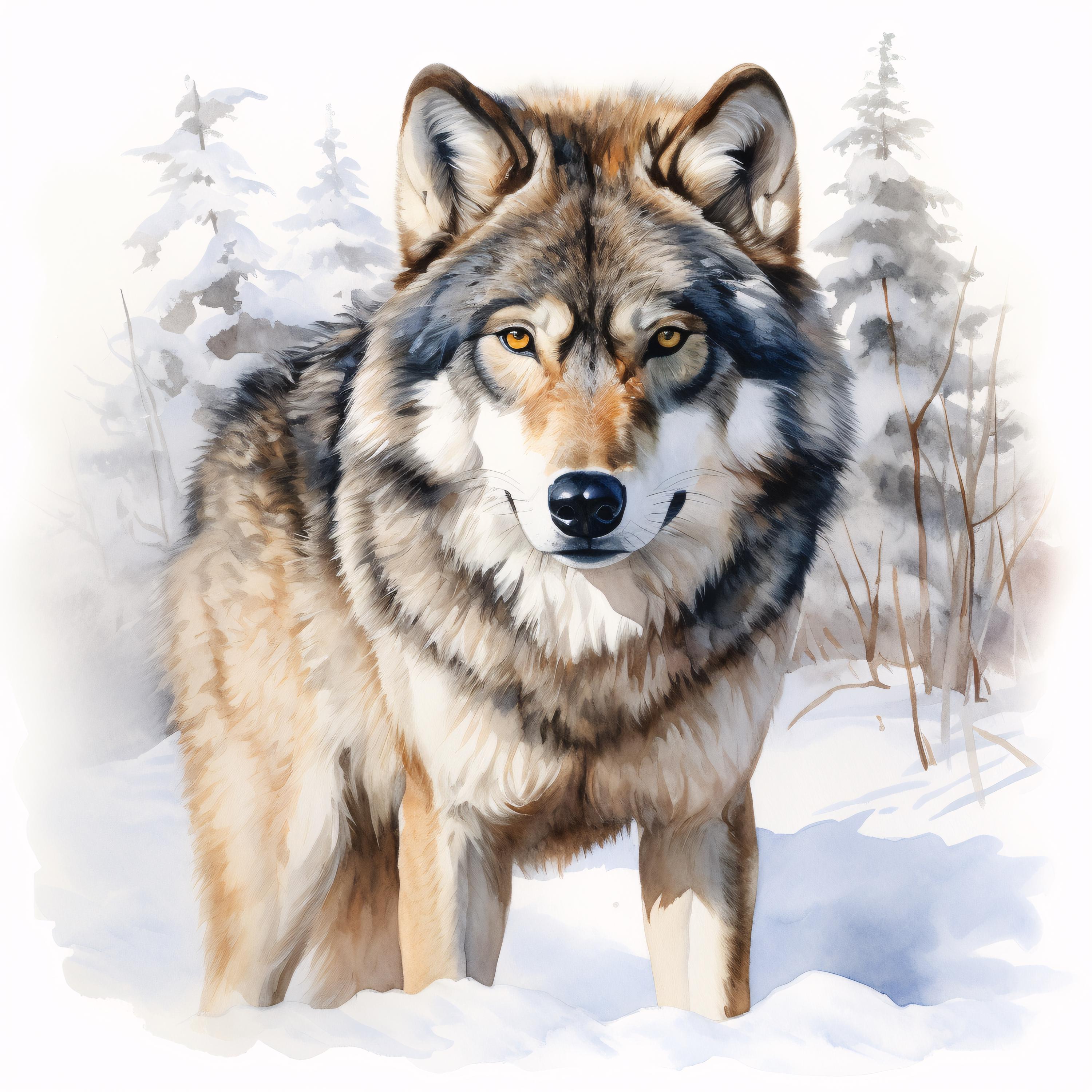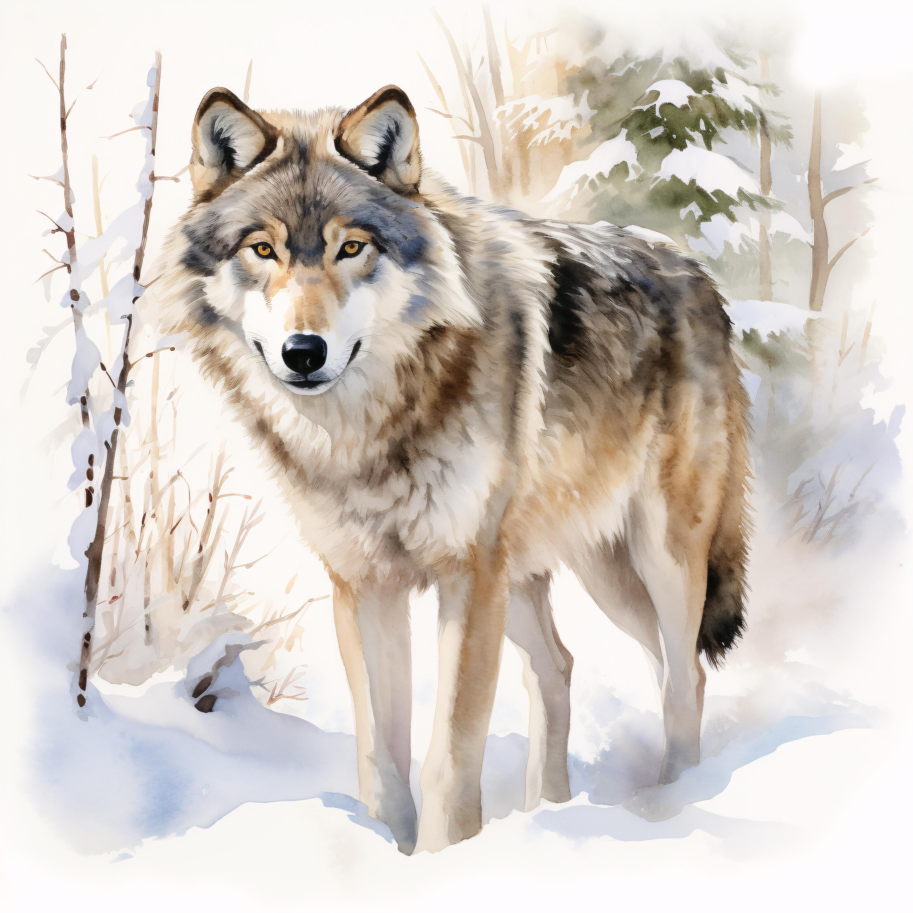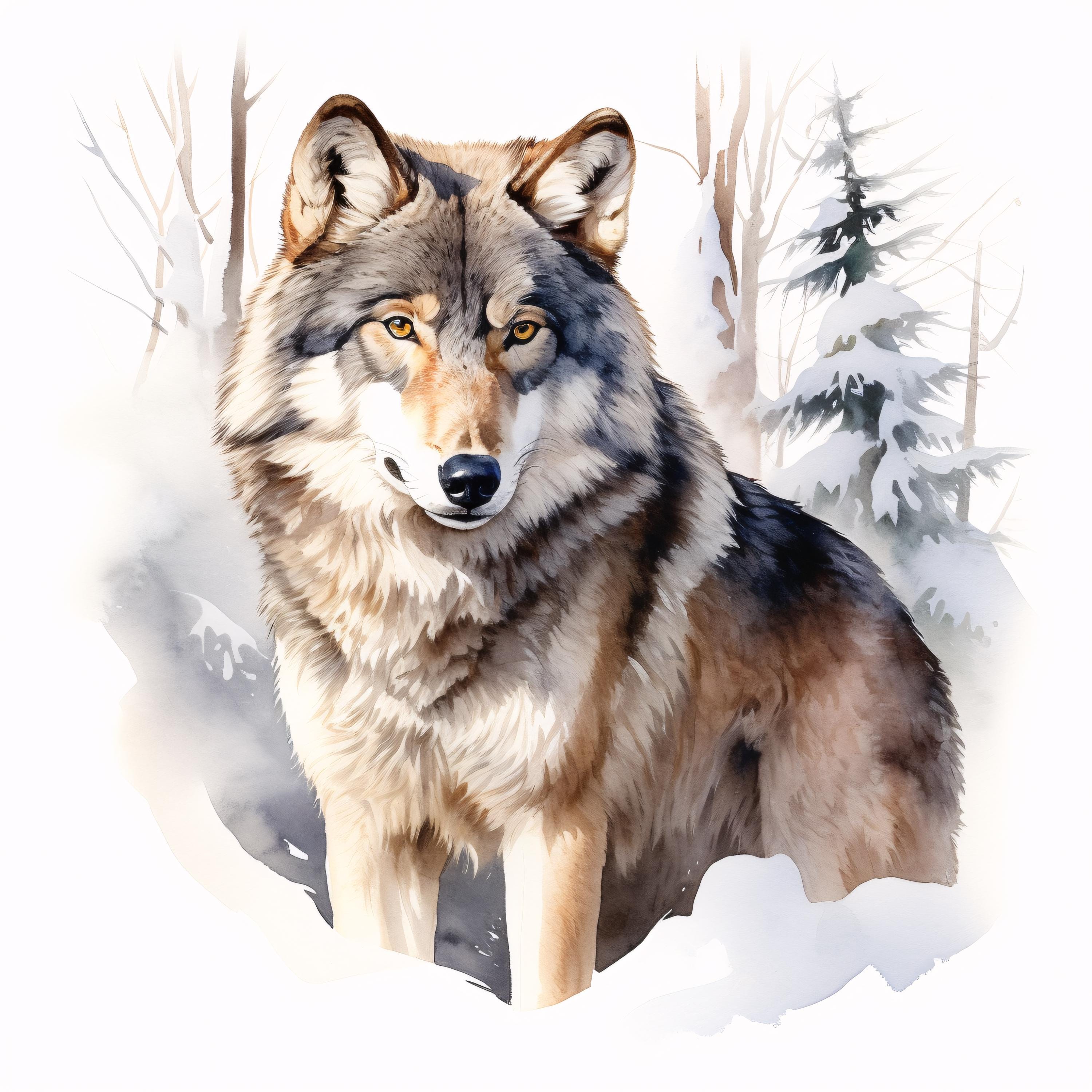Winter Wolf Clipart, Snow Forest Animal Images, 10 Watercolor Clip Art, Printable JPGs, Instant Download, Commercial Use, Paper craft