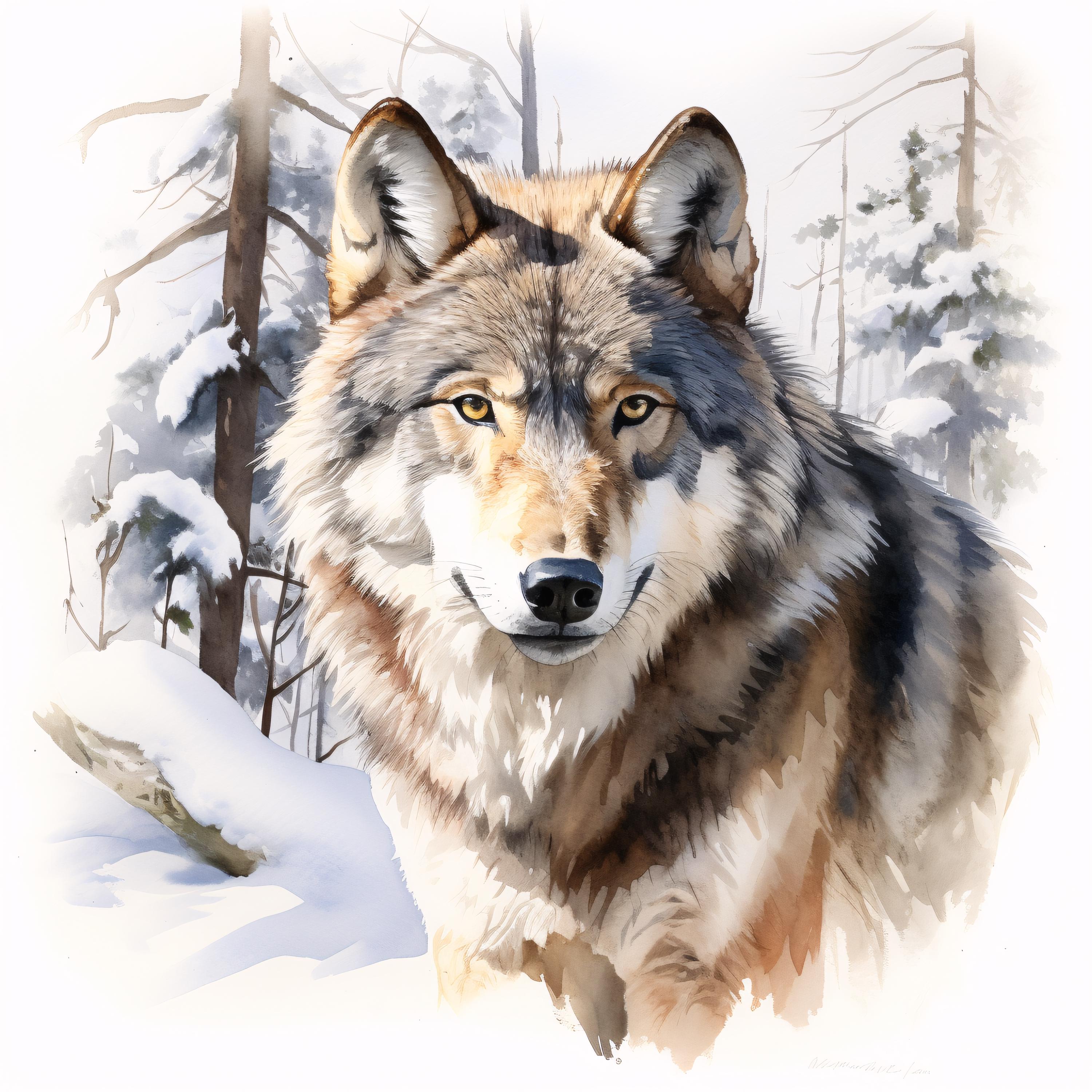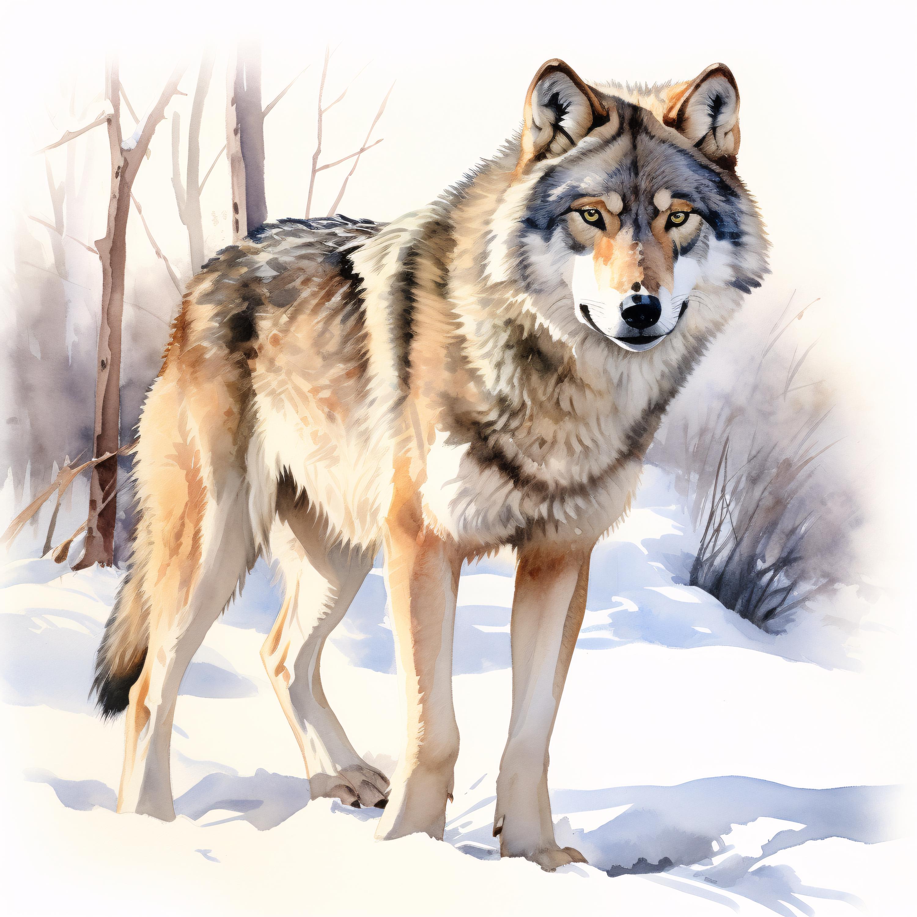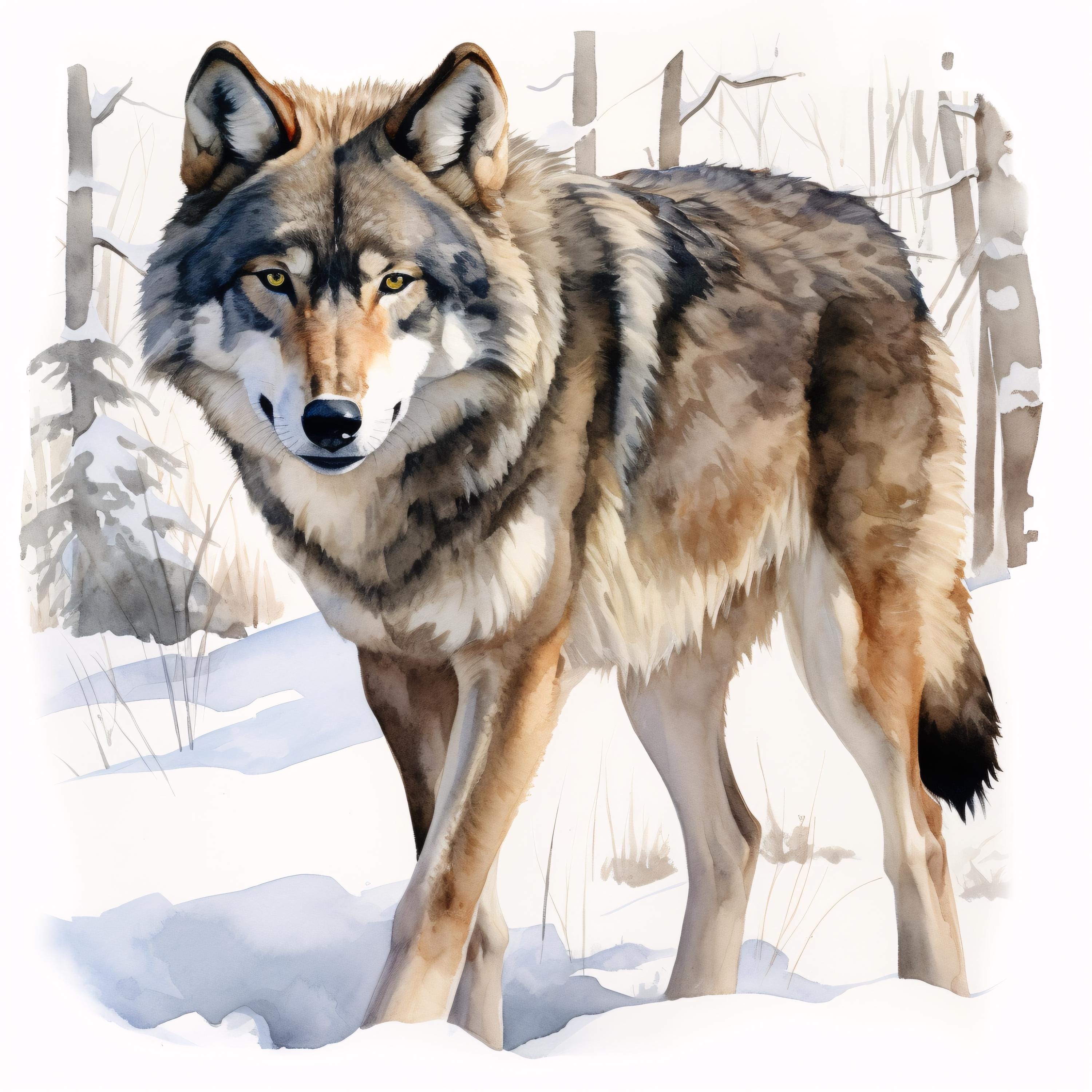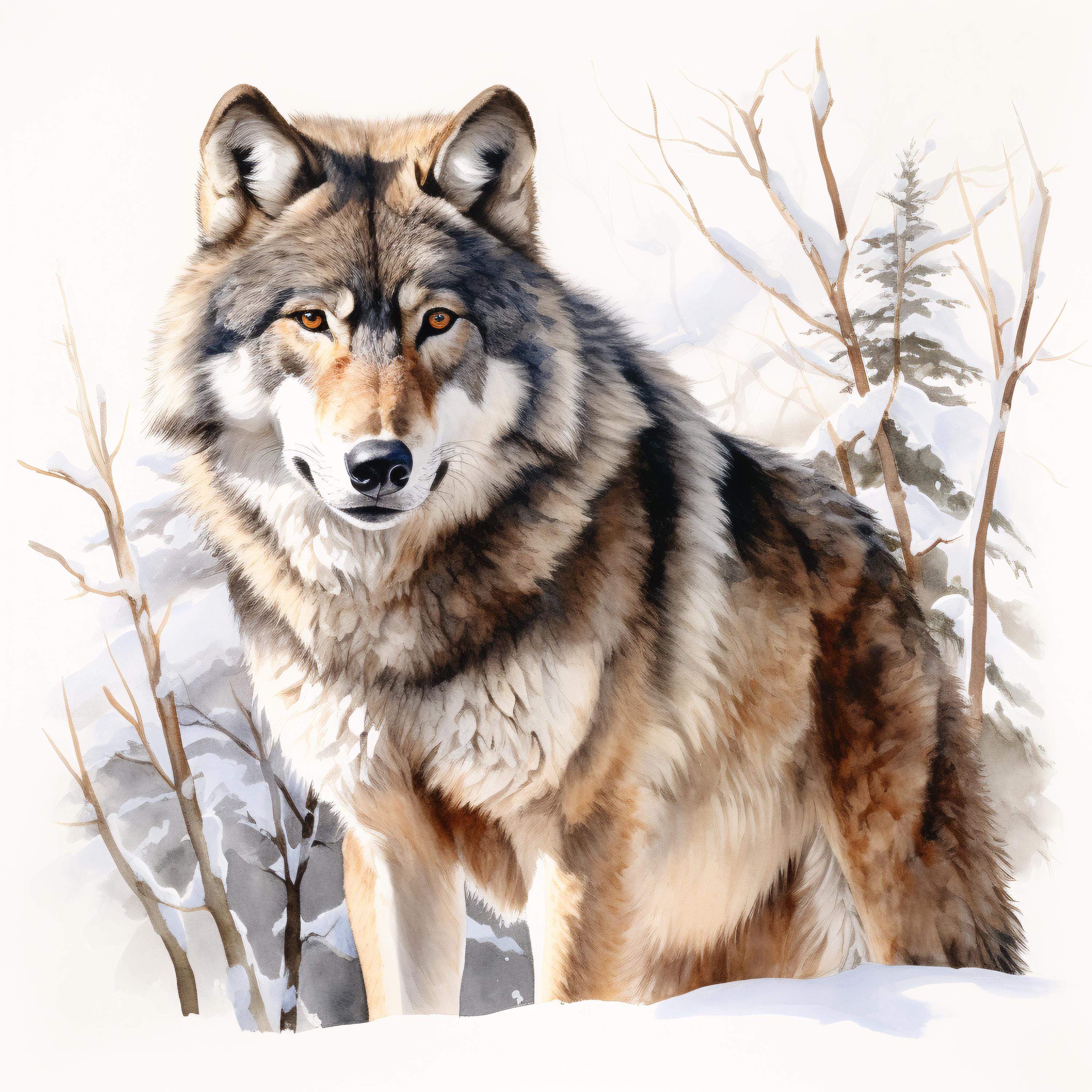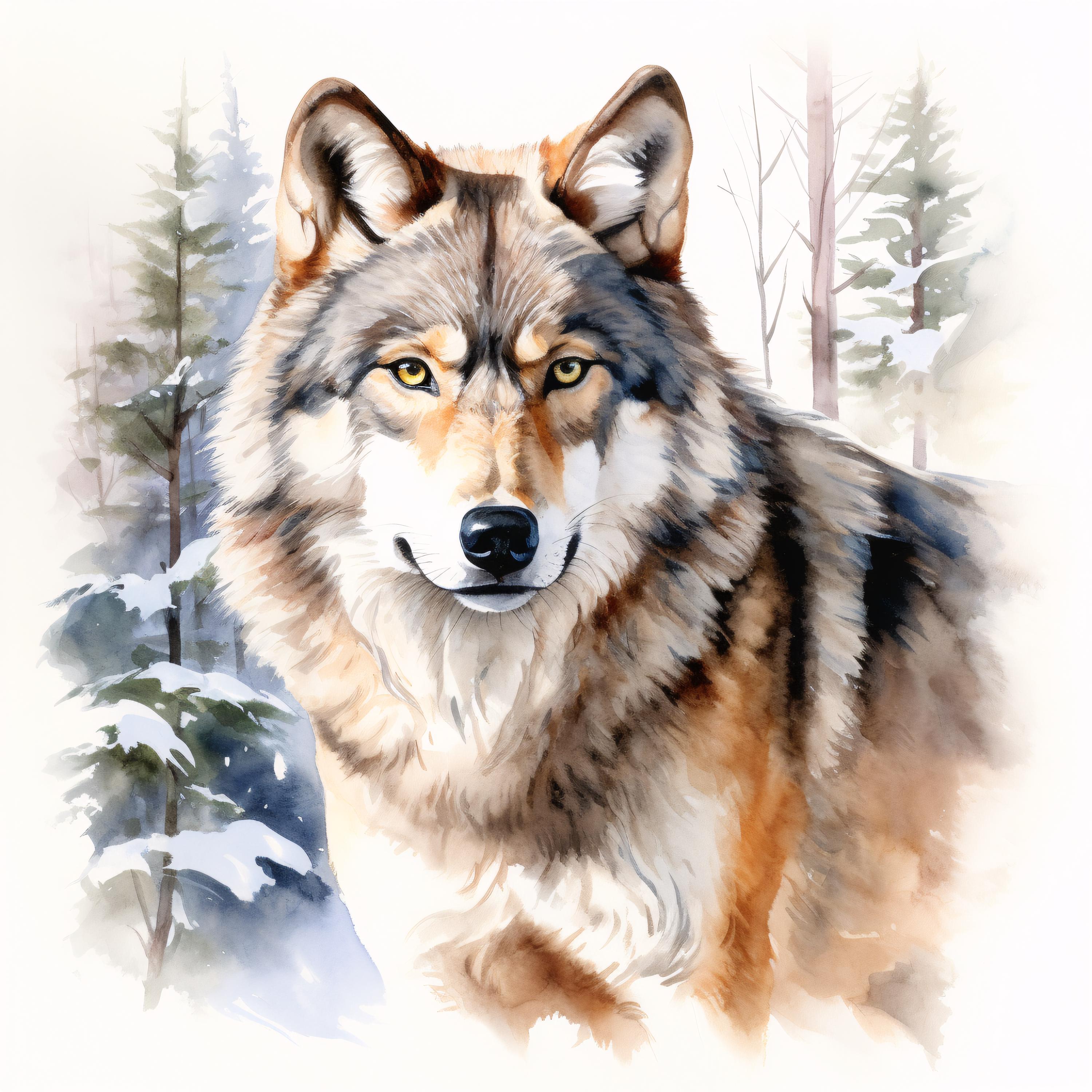 Winter Wolf Clipart, Snow Forest Animal Images, 10 Watercolor Clip Art, Printable JPGs, Instant Download, Commercial Use, Paper craft