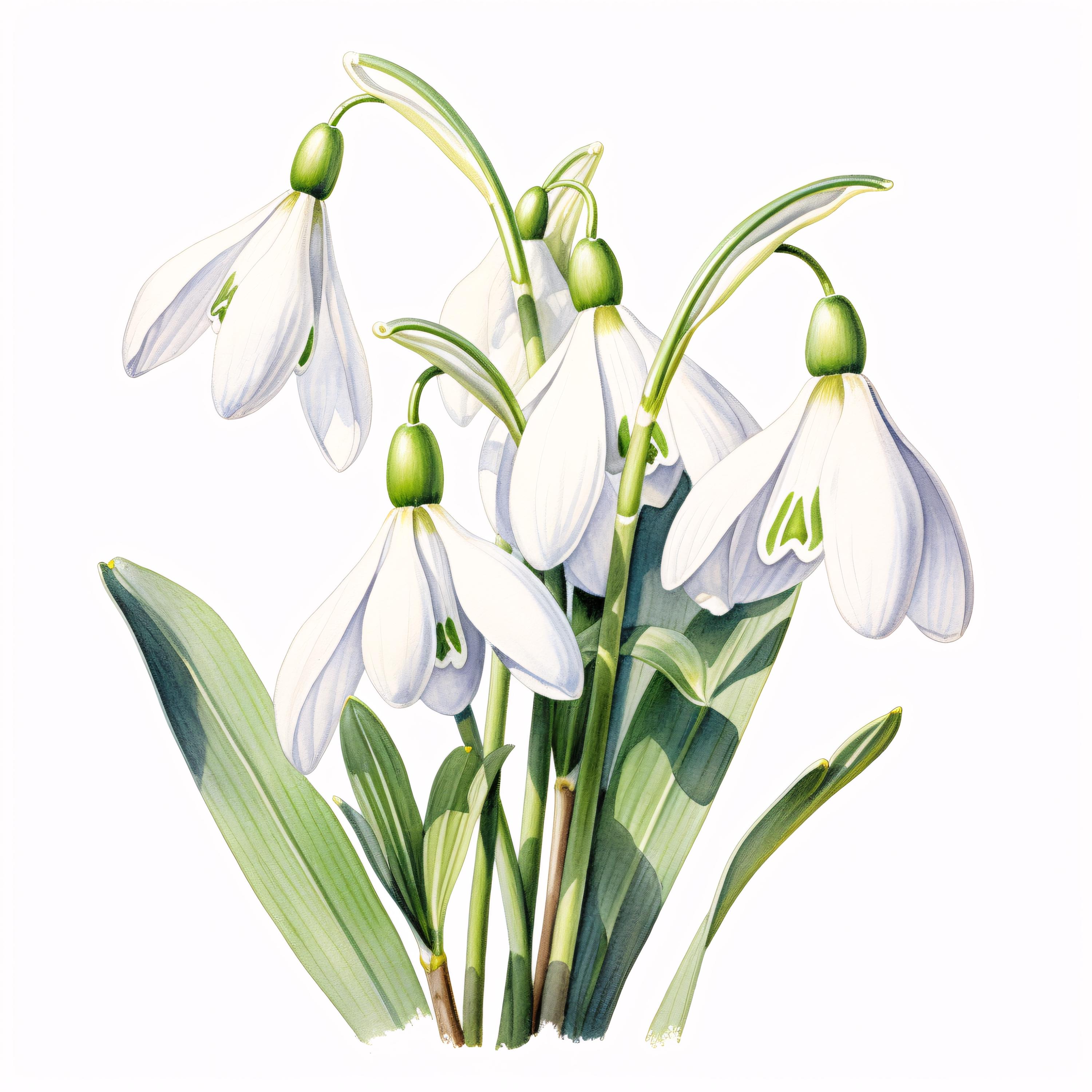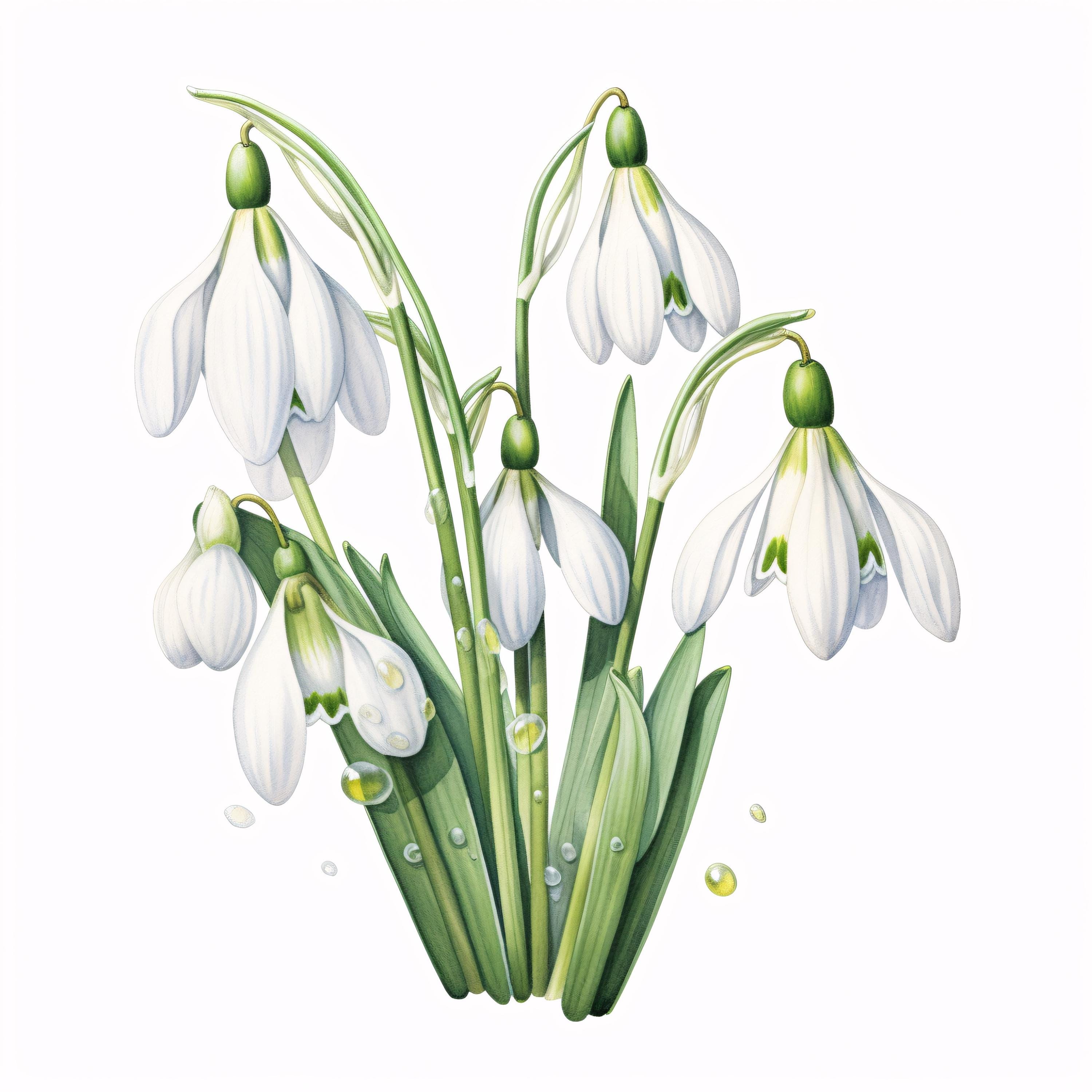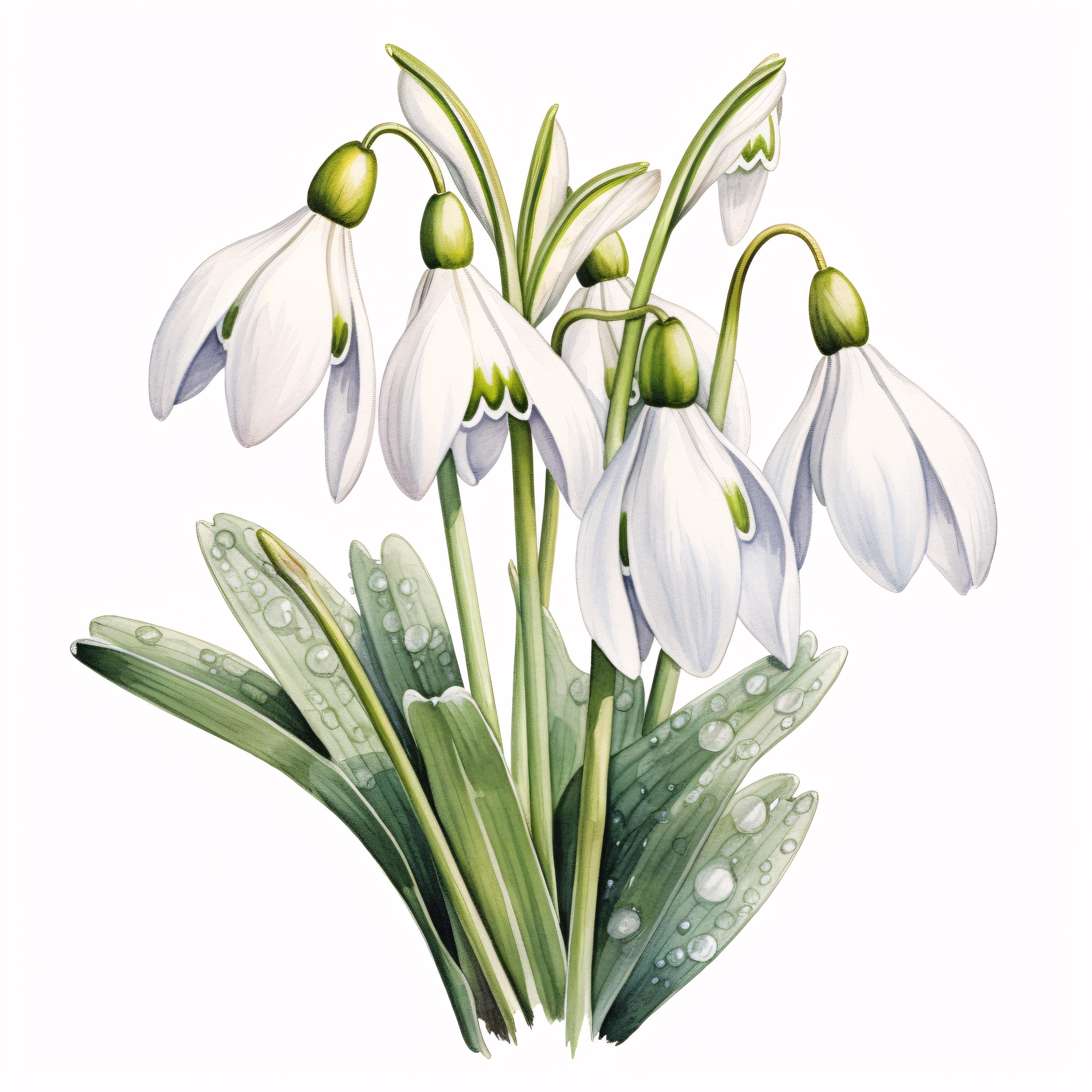 Snowdrop Flower Clipart, White Bloom Images, 10 Watercolor Clip Art, Printable JPGs, Instant Download, Commercial Use, Paper craft