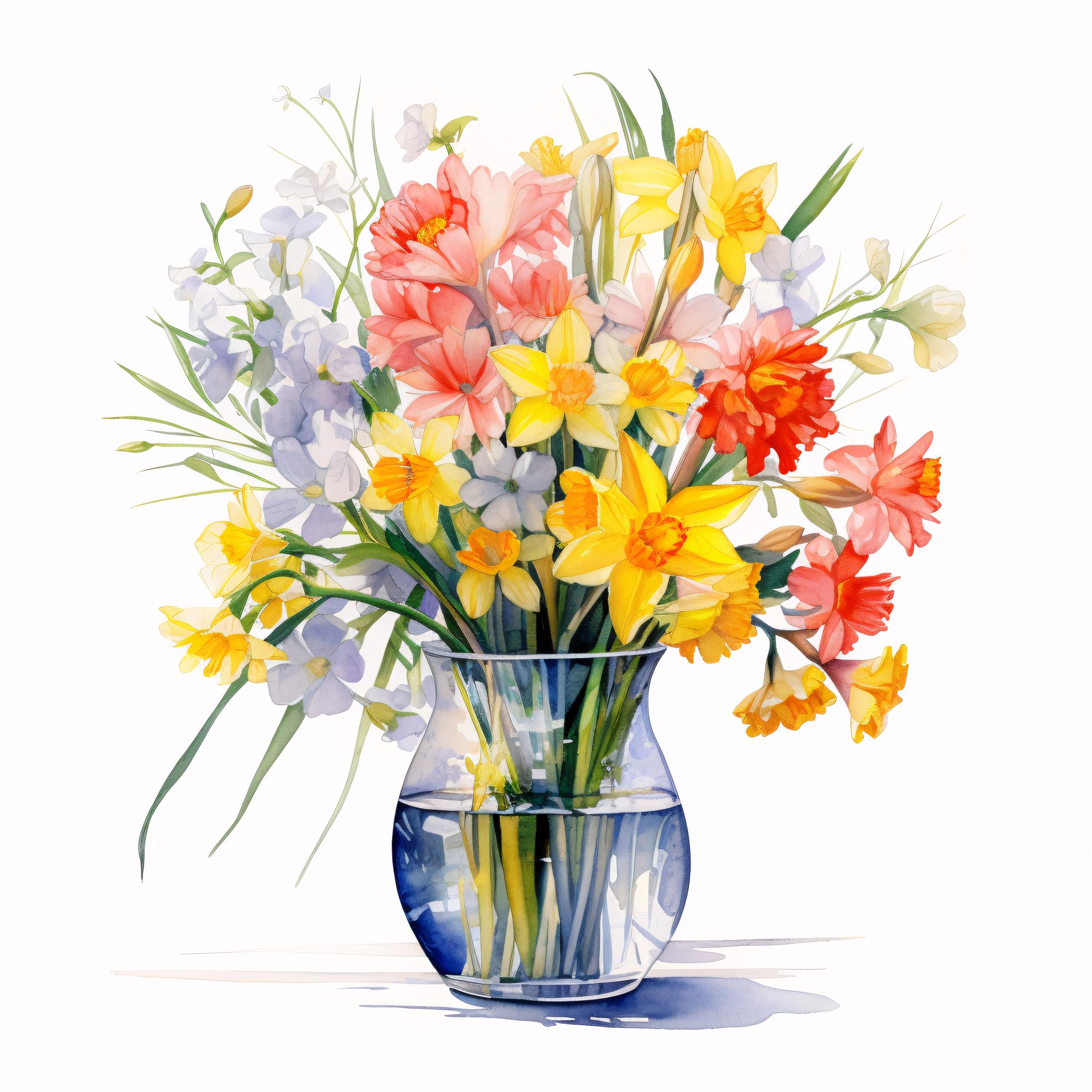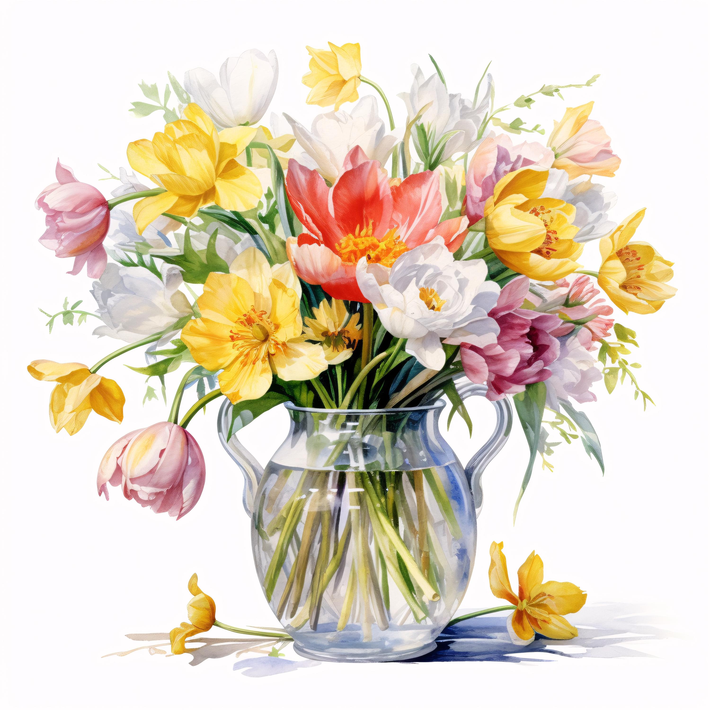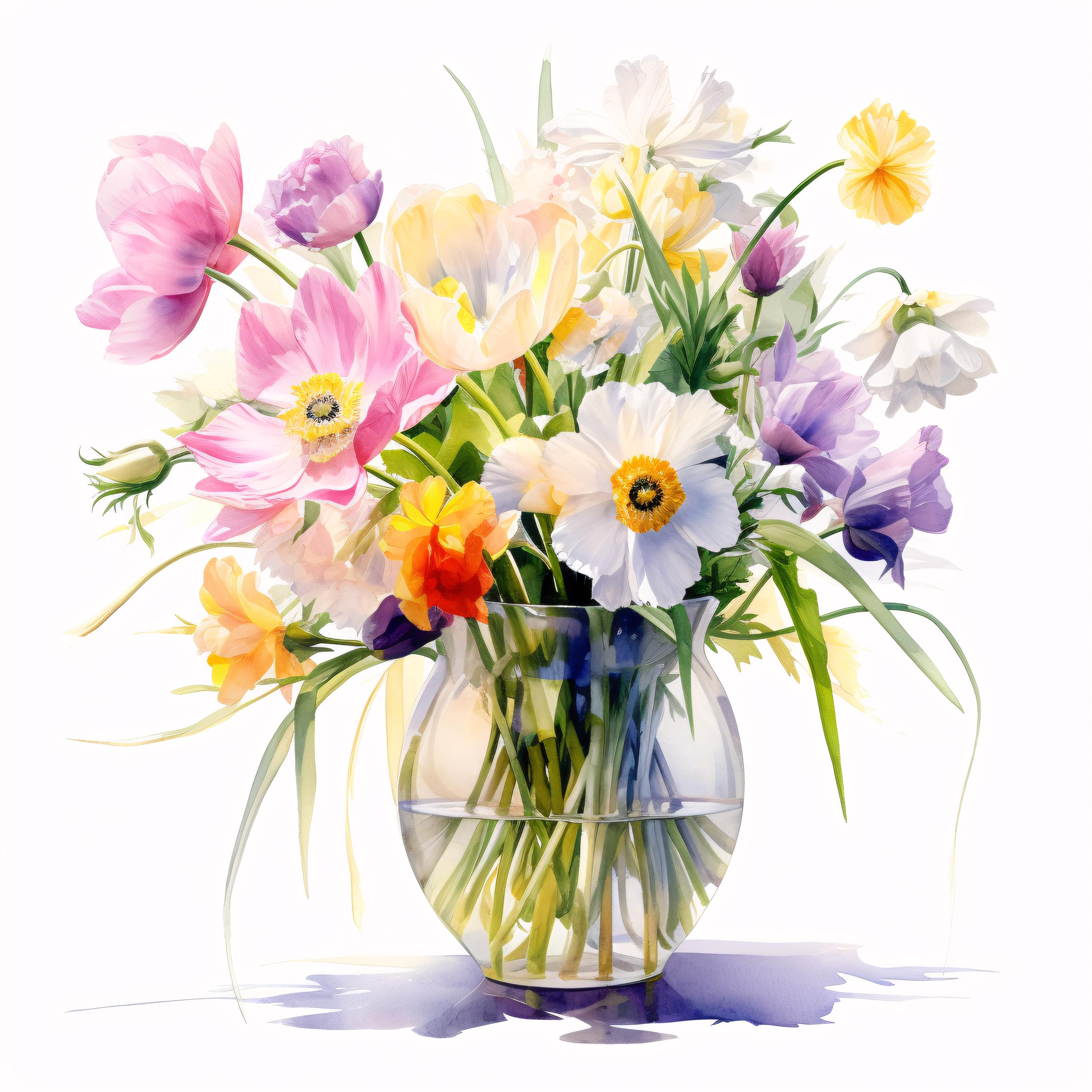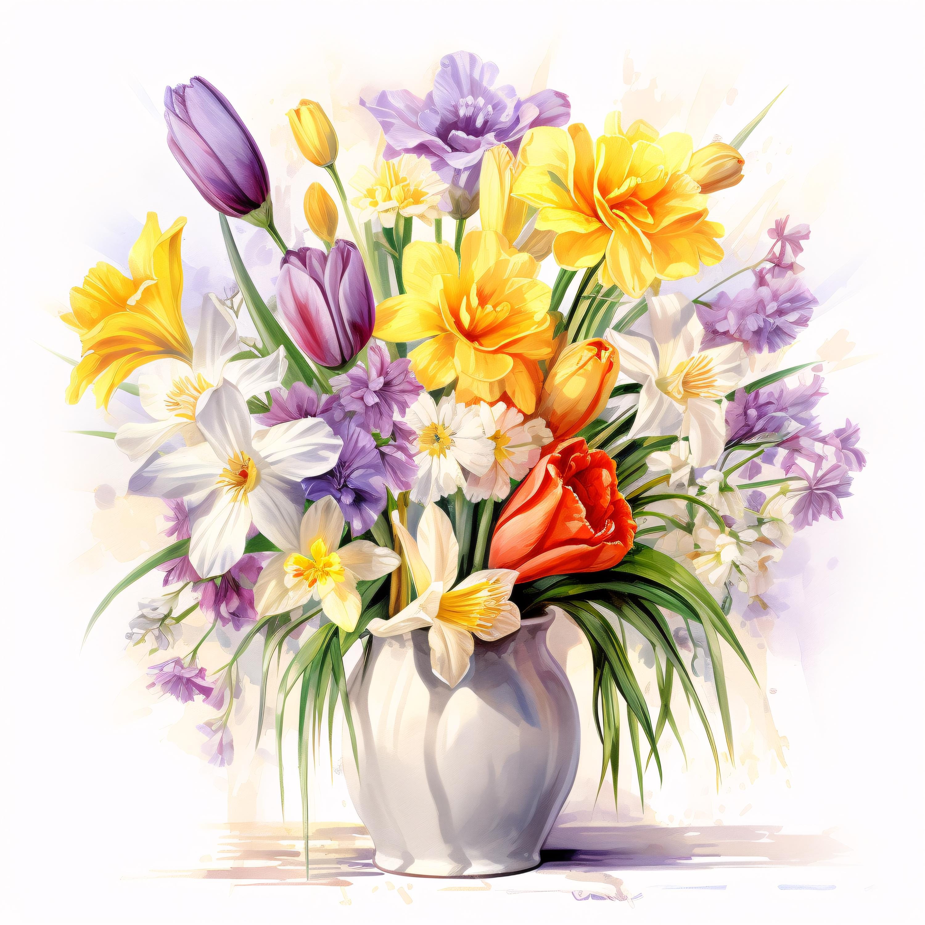 Spring Flower Bouquet Clipart, Vase Floral Images, 10 Watercolor Clip Art, Printable JPGs, Instant Download, Commercial Use, Paper craft
