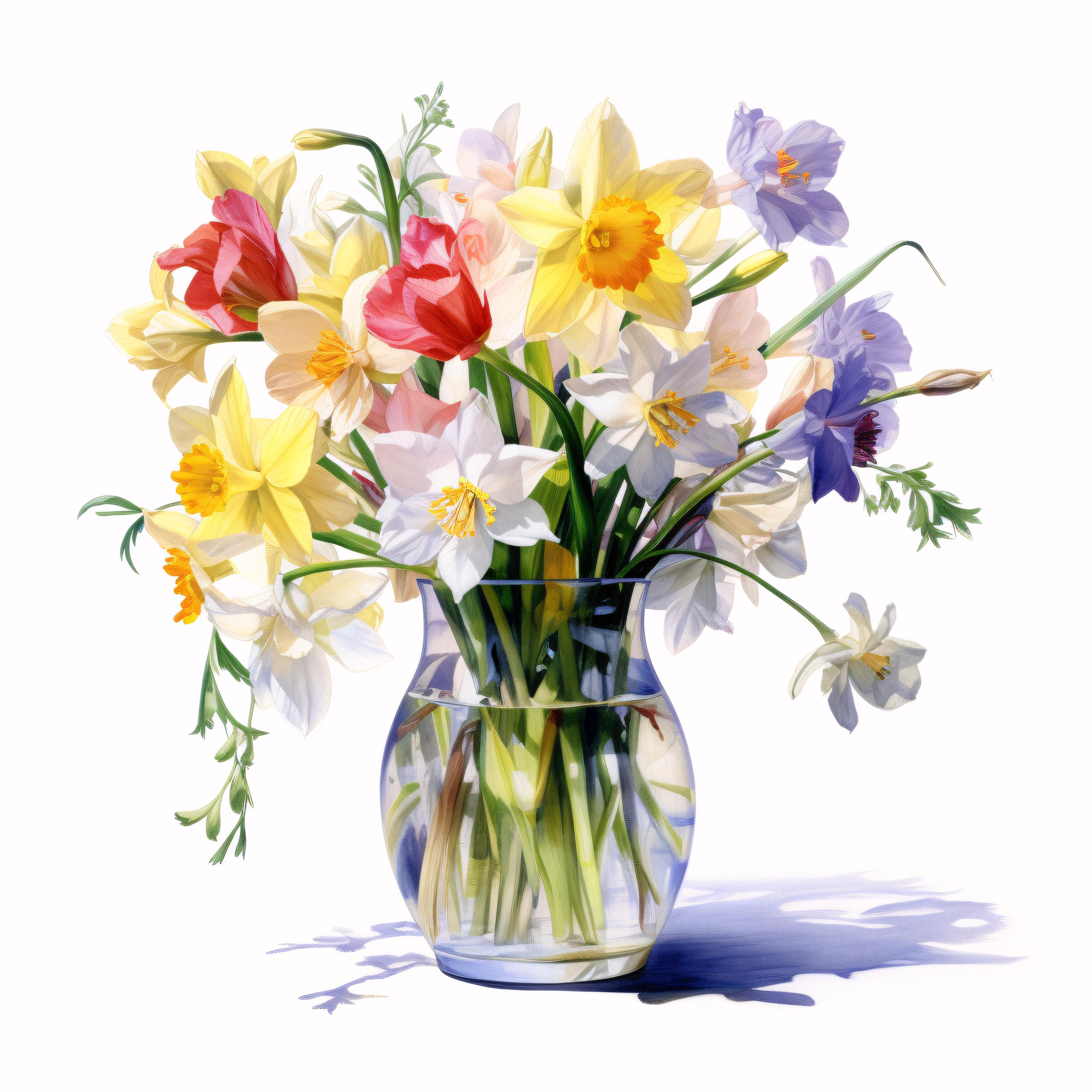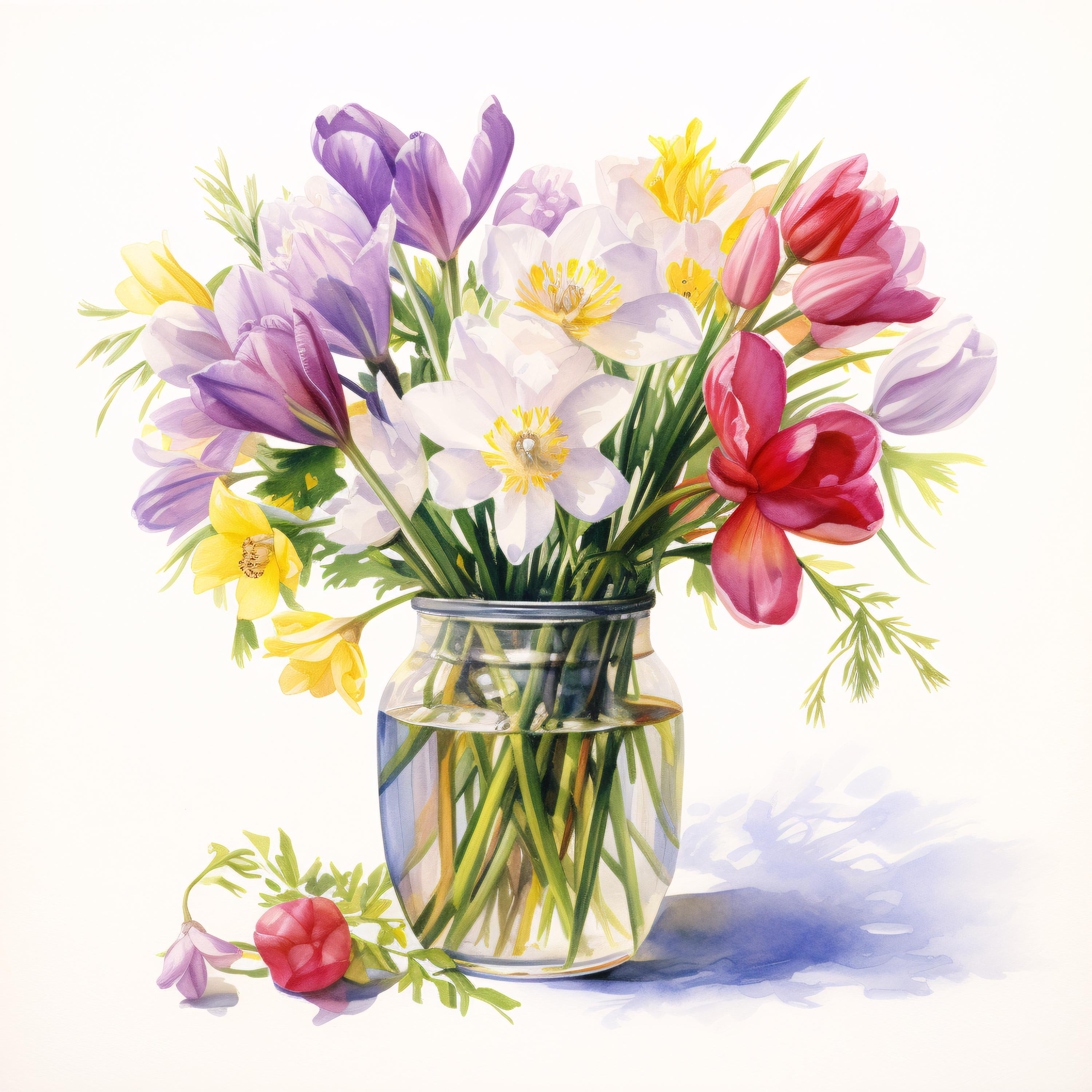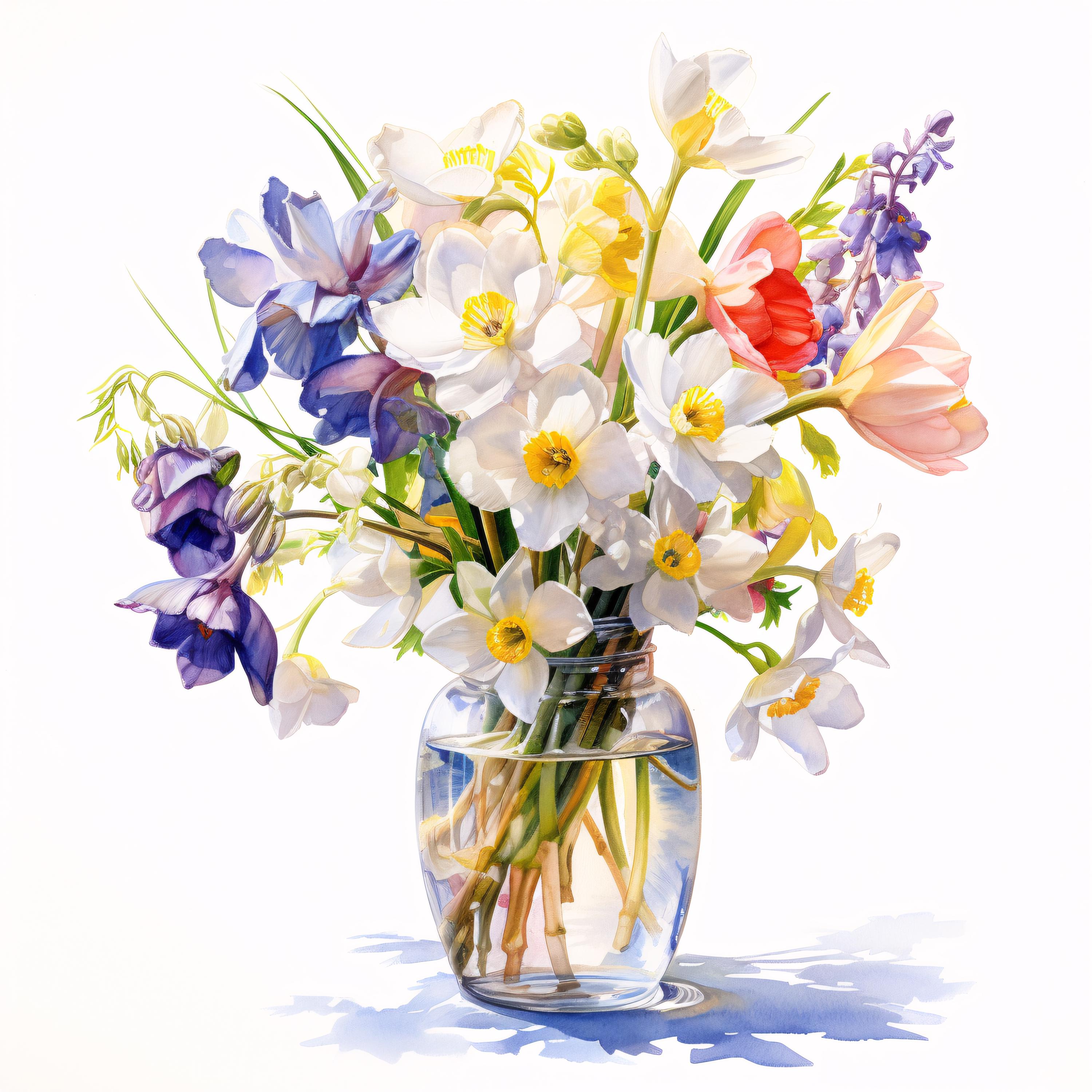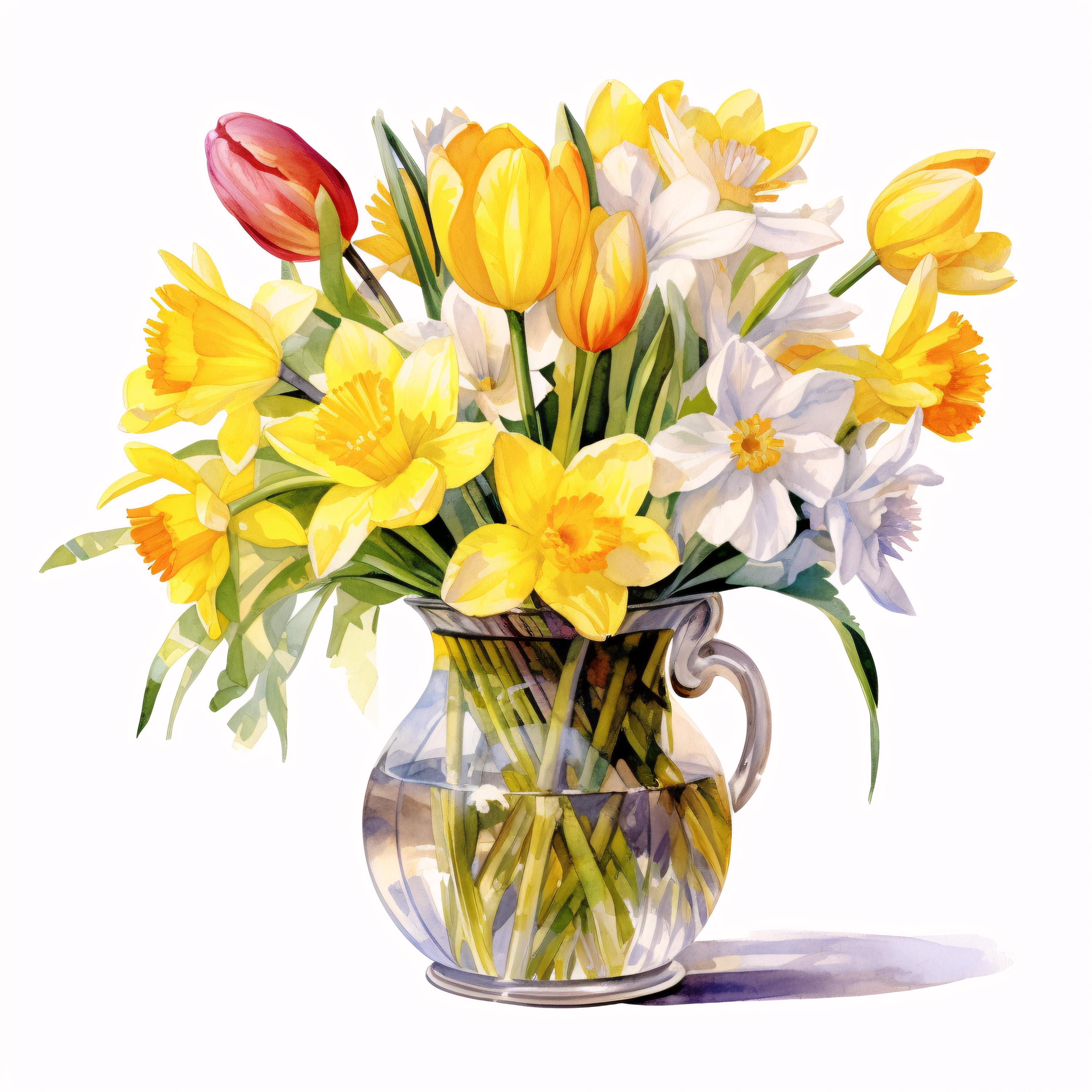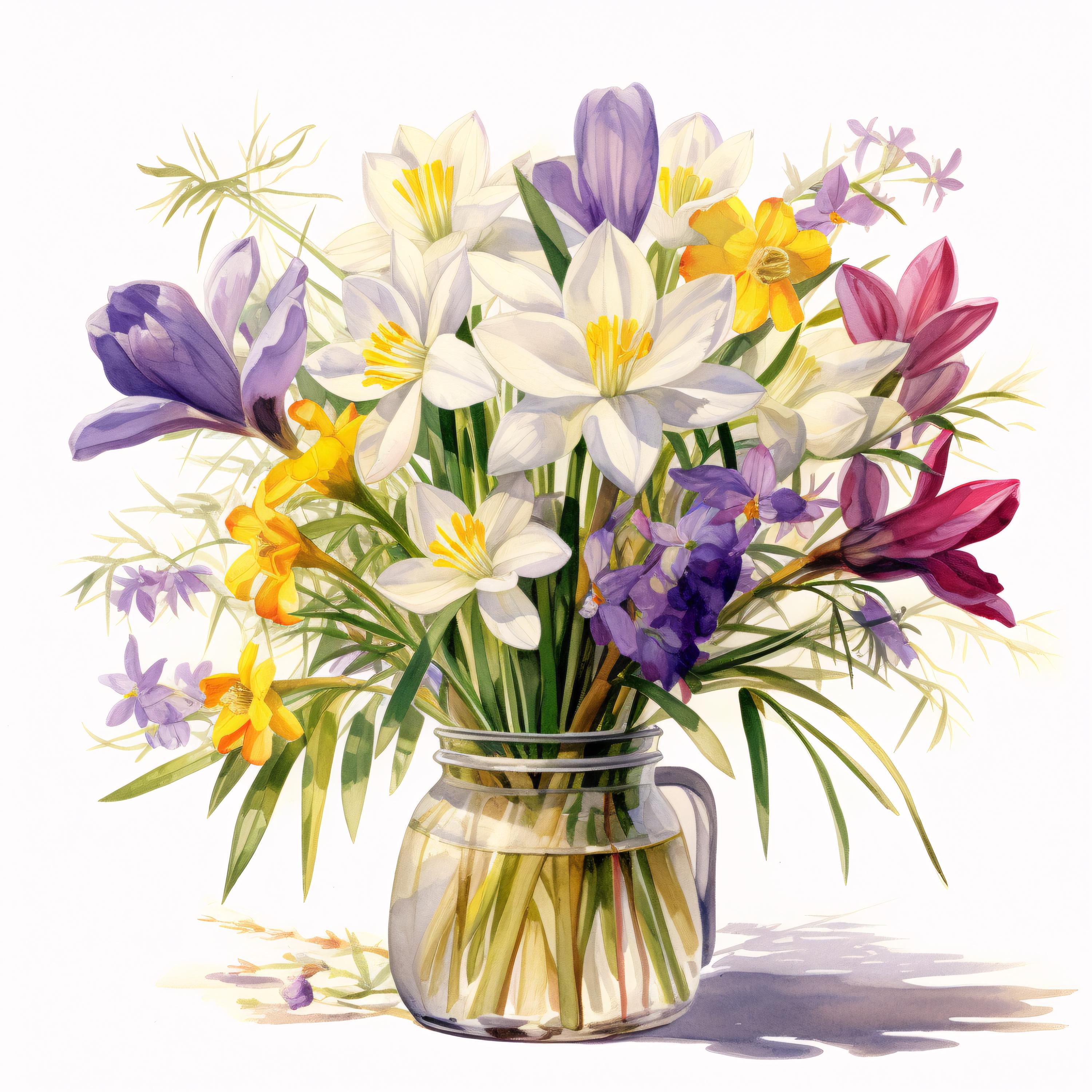 Spring Flower Bouquet Clipart, Vase Floral Images, 10 Watercolor Clip Art, Printable JPGs, Instant Download, Commercial Use, Paper craft