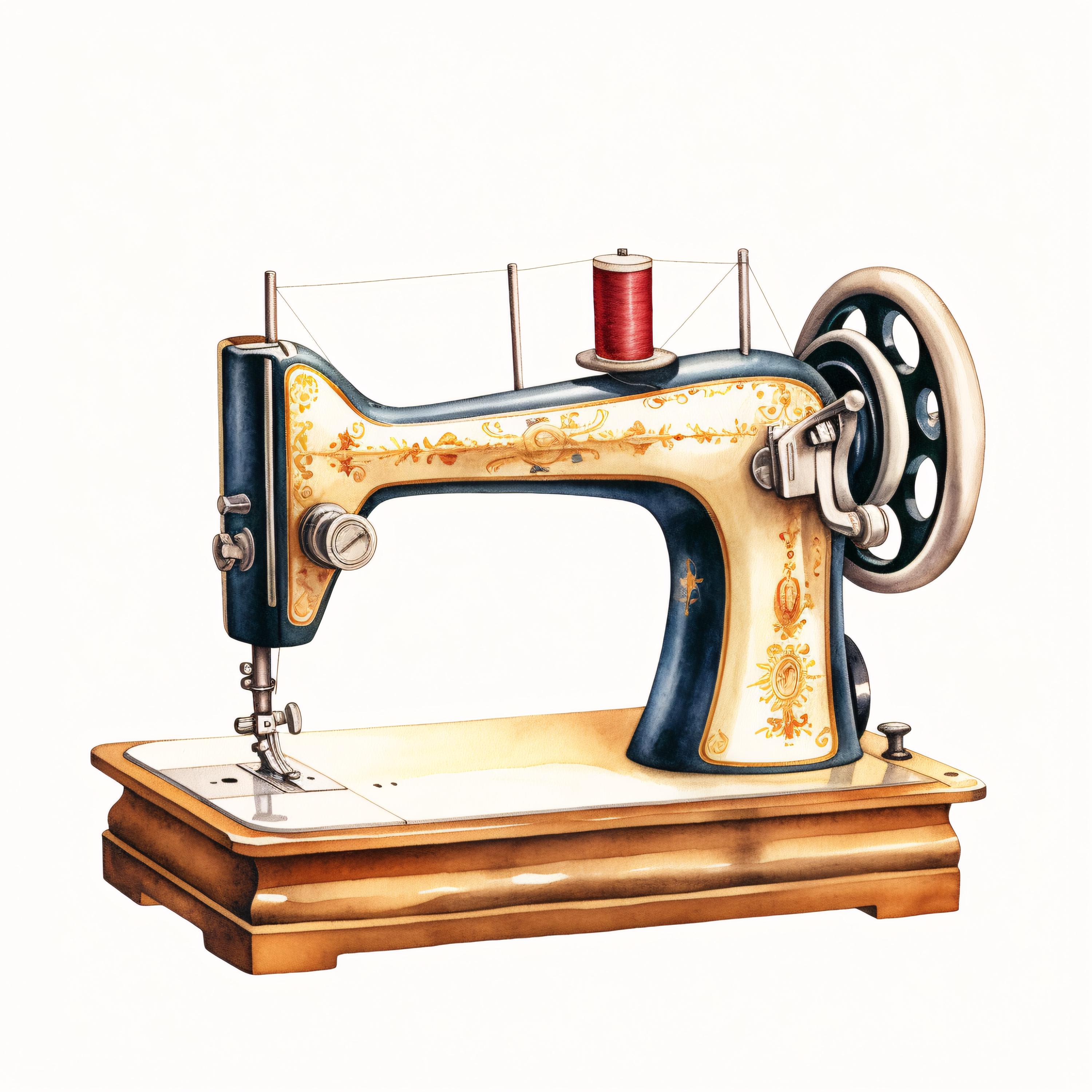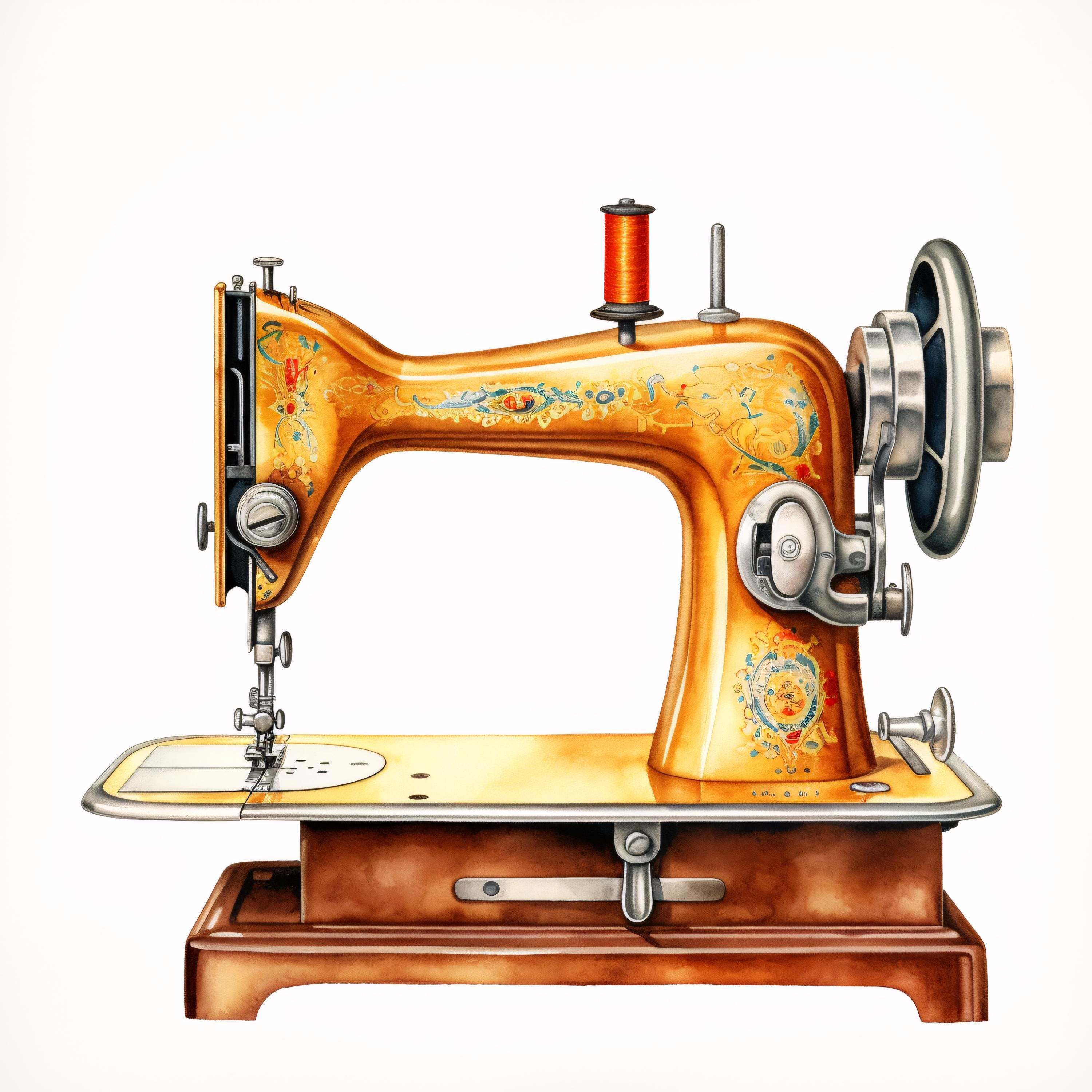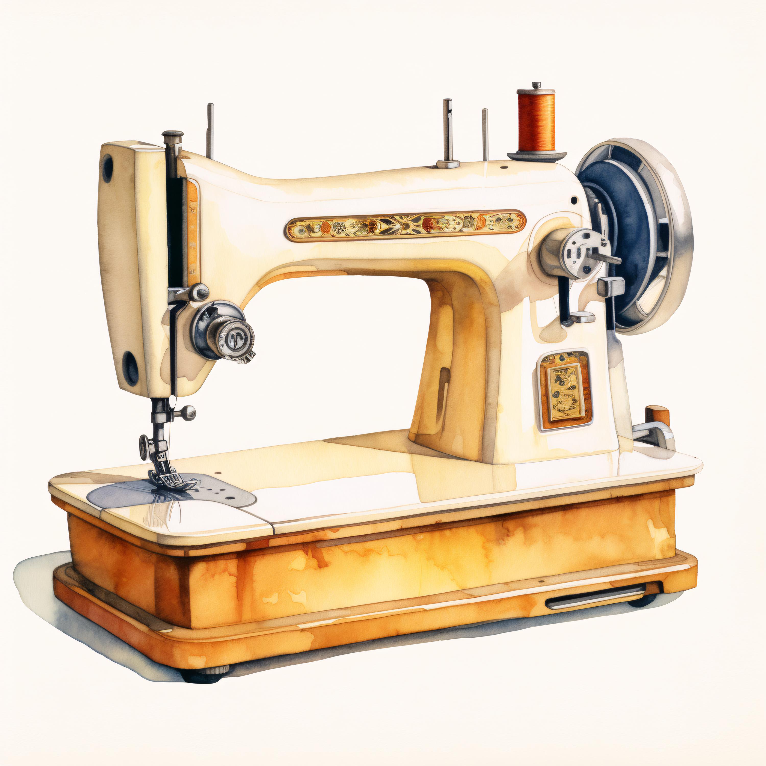 Vintage Sewing Machine Clipart, Retro Craft Images, 10 Watercolor Clip Art, Printable JPGs, Instant Download, Commercial Use, Paper craft