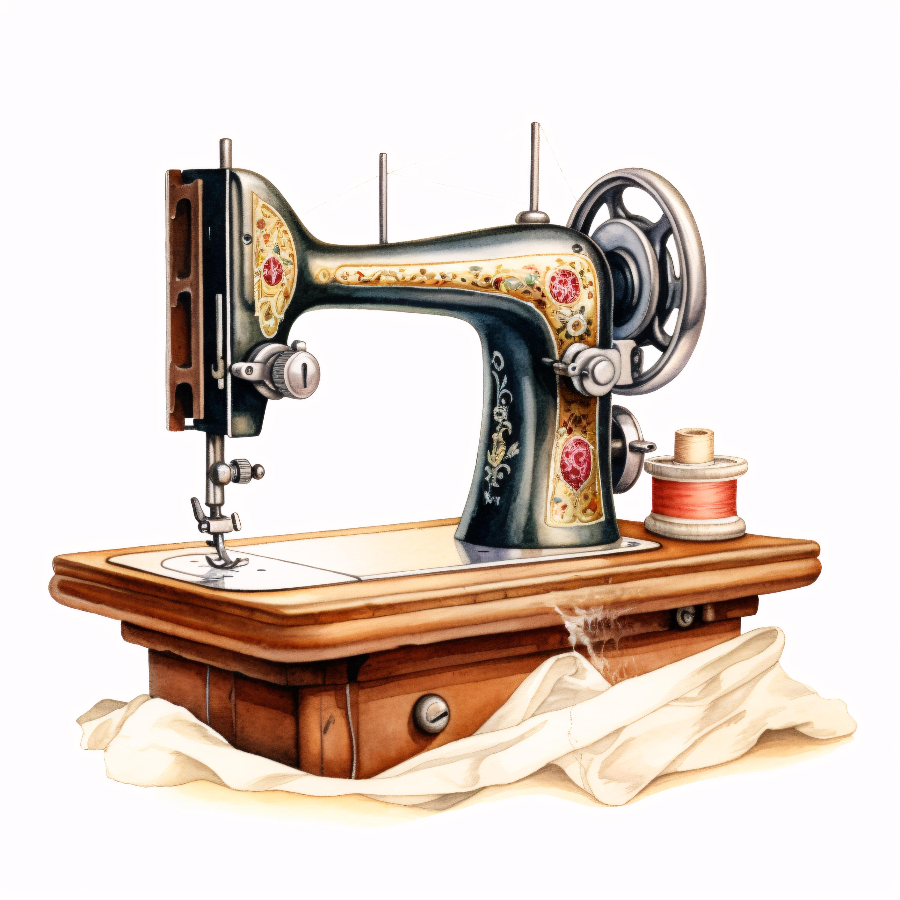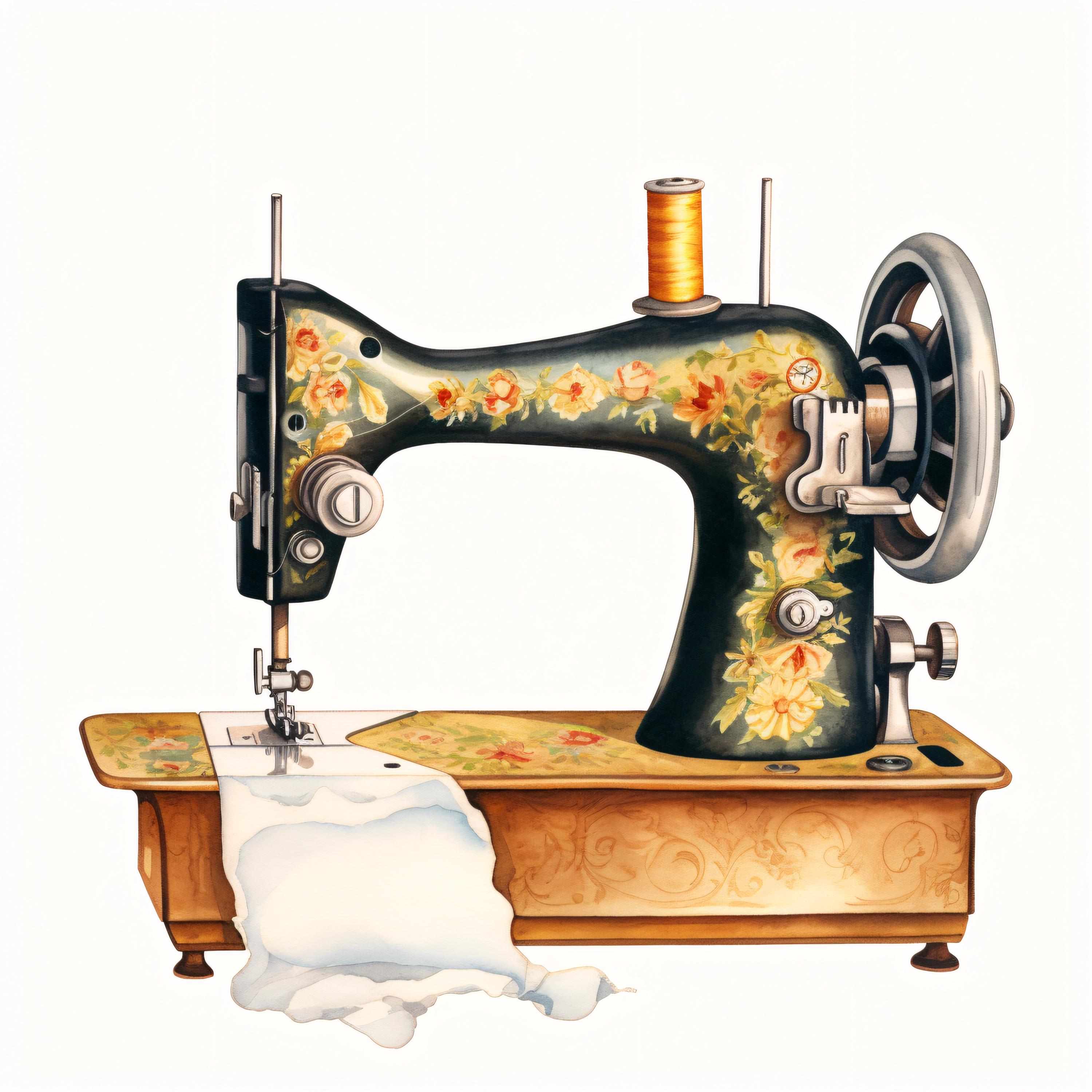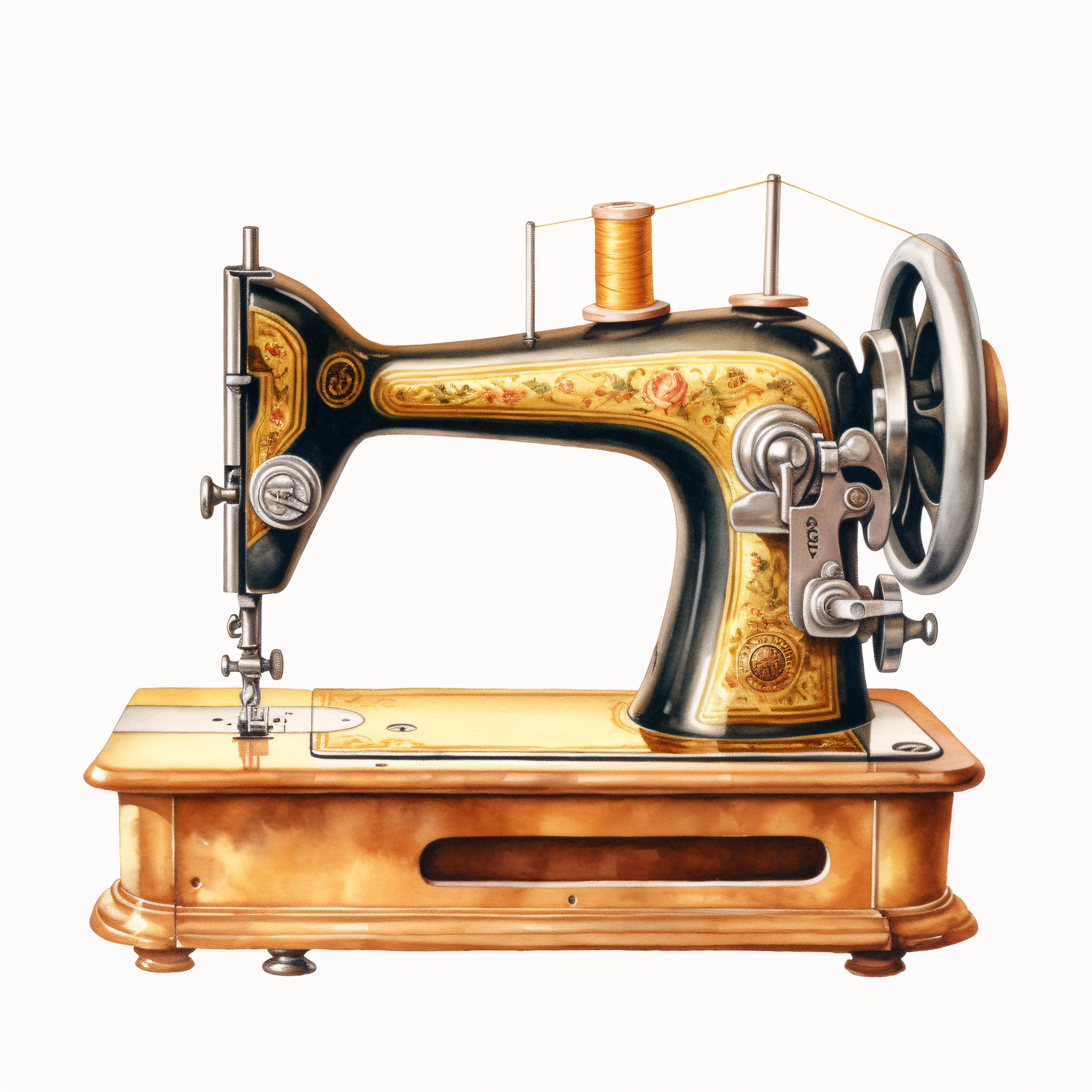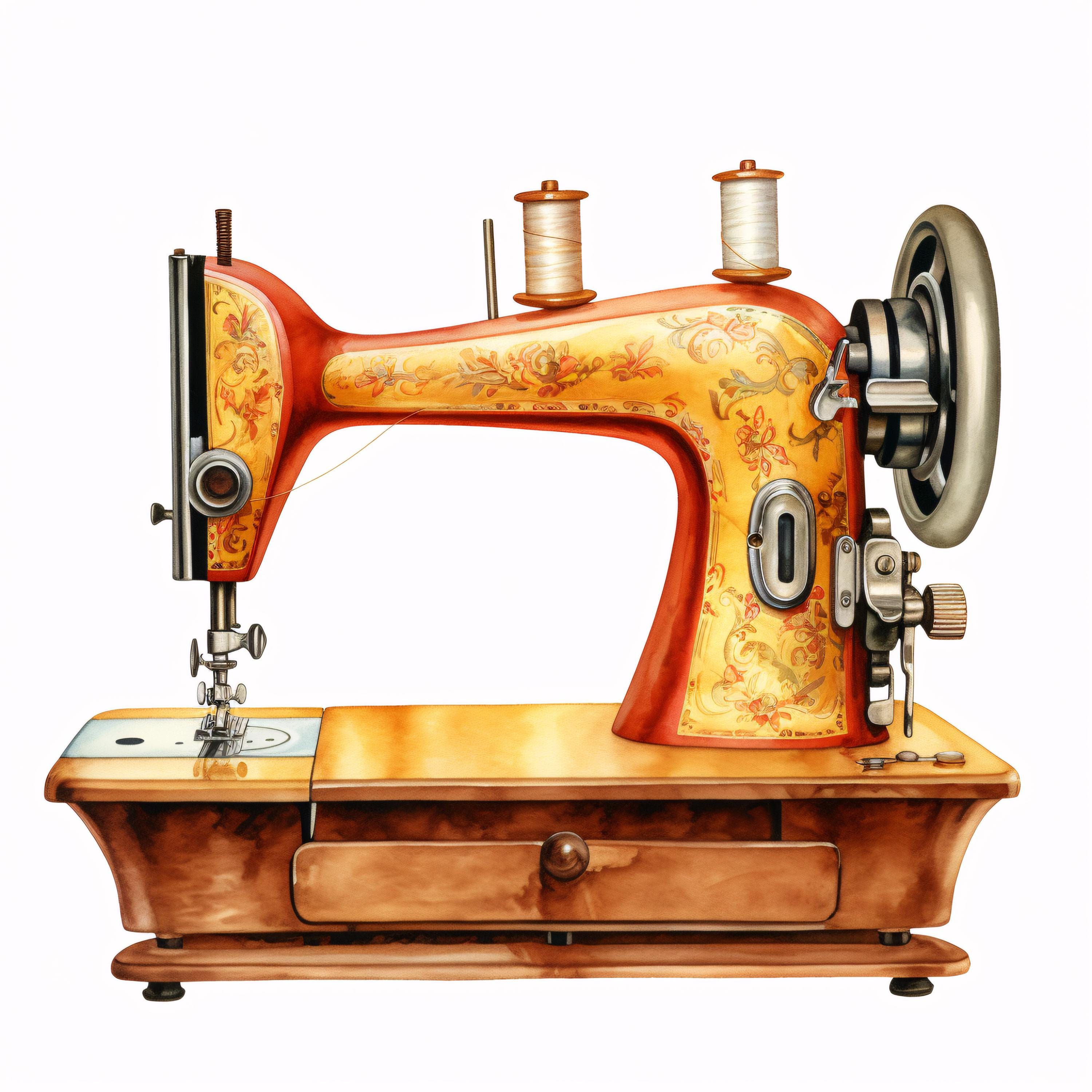 Vintage Sewing Machine Clipart, Retro Craft Images, 10 Watercolor Clip Art, Printable JPGs, Instant Download, Commercial Use, Paper craft