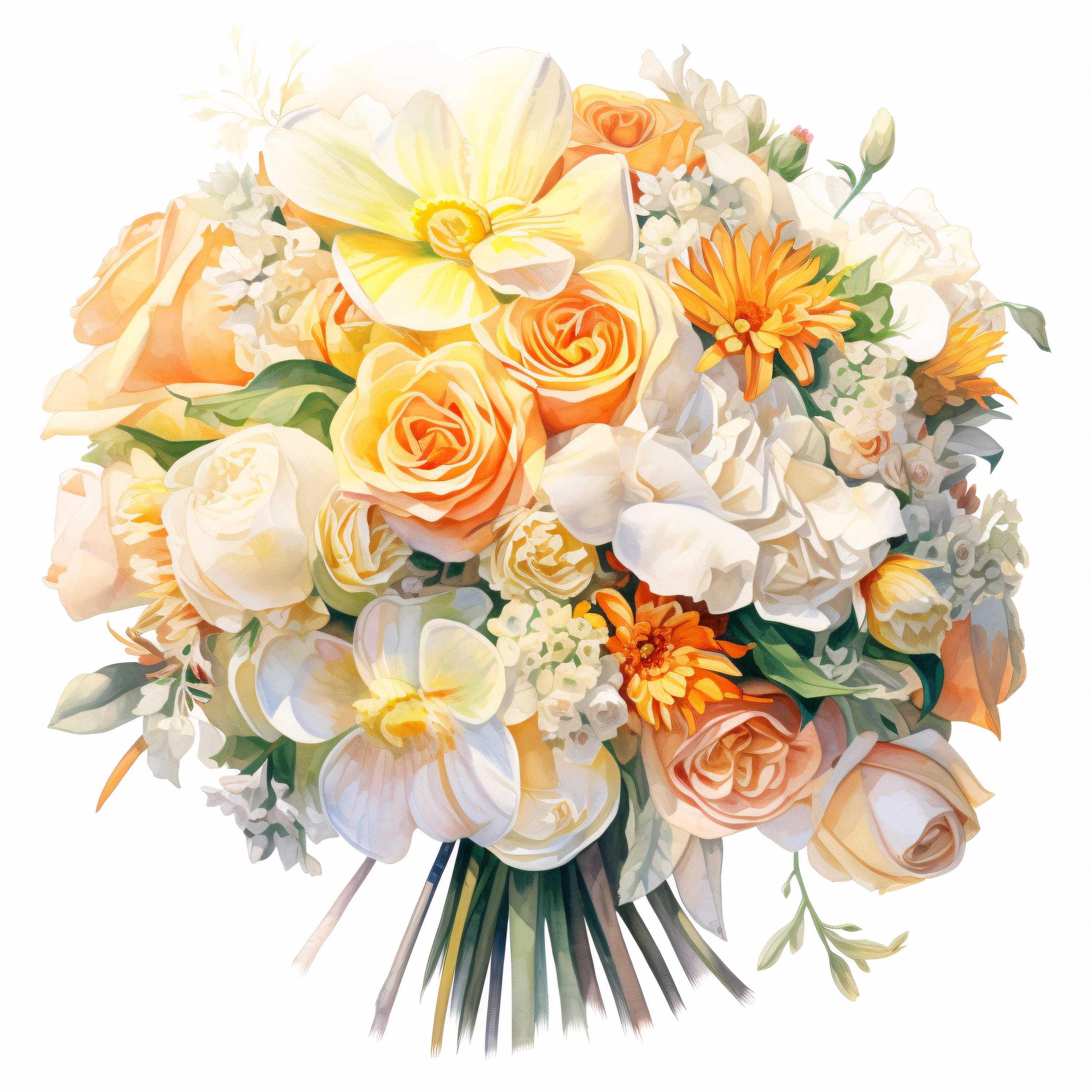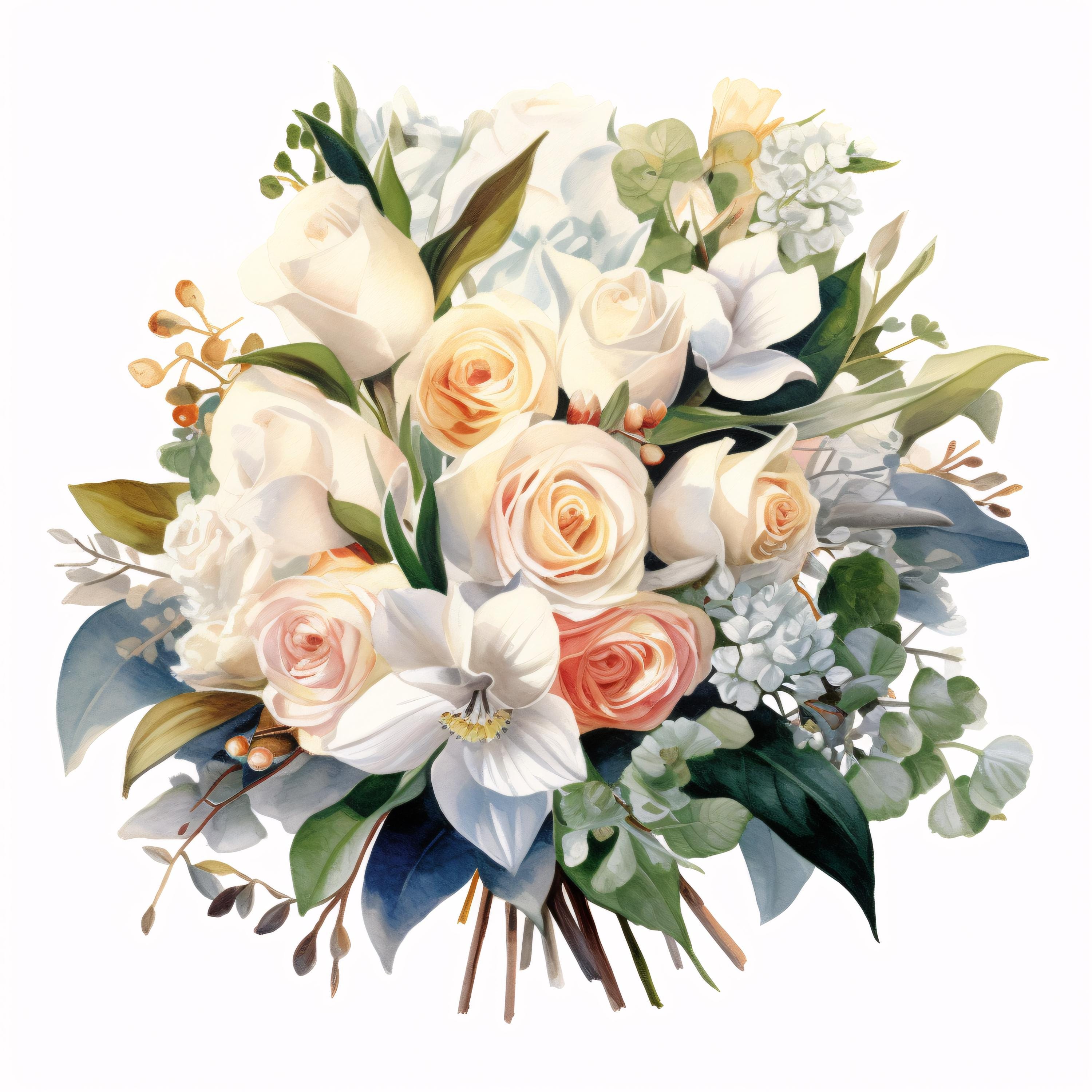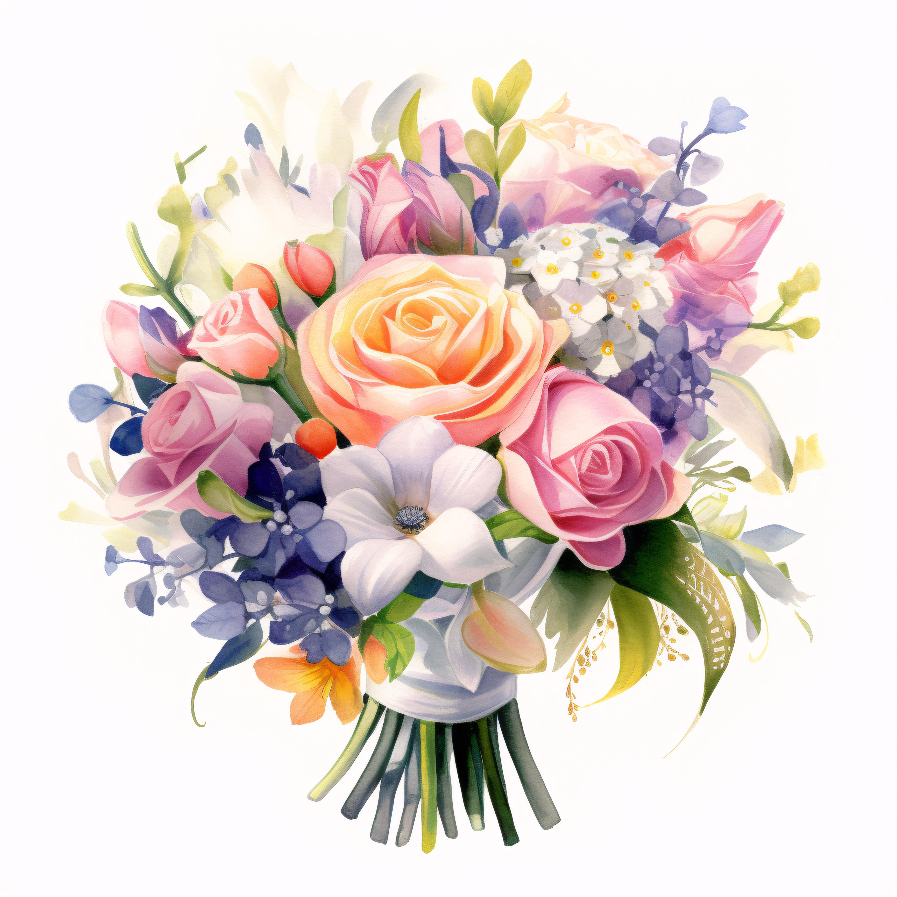 Wedding Bouquet Clipart, Romantic Floral Images, 10 Watercolor Clip Art, Printable JPGs, Instant Download, Commercial Use, Paper craft