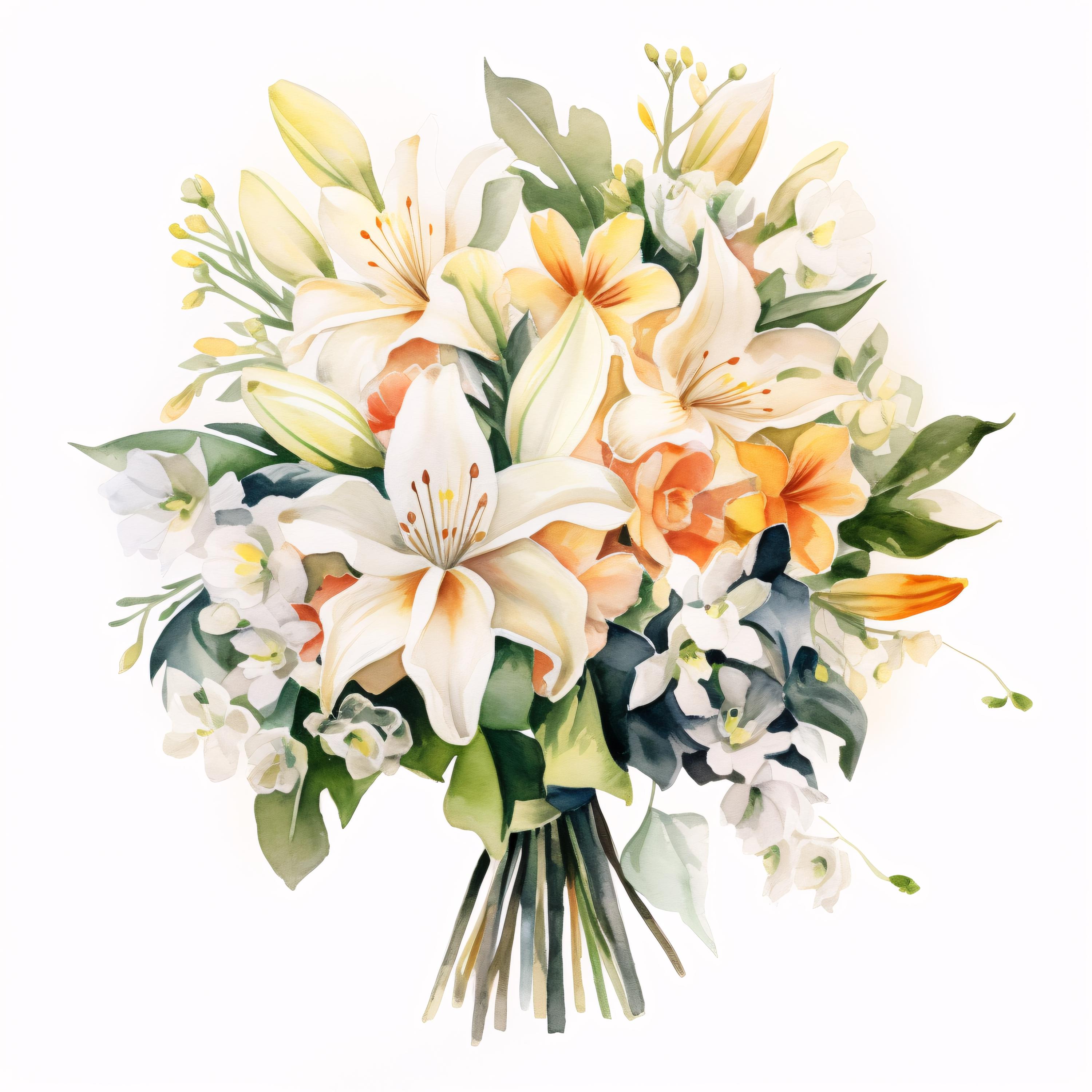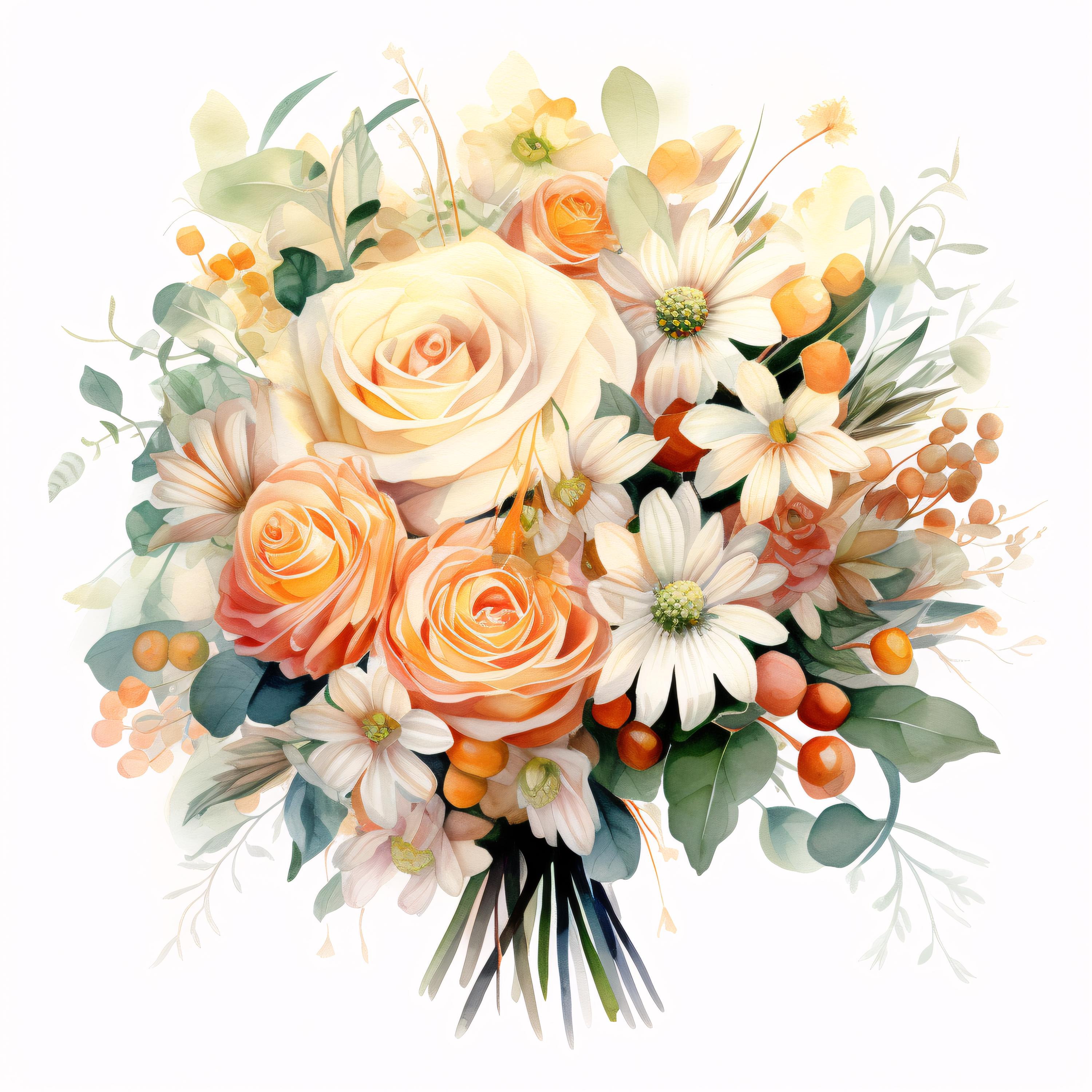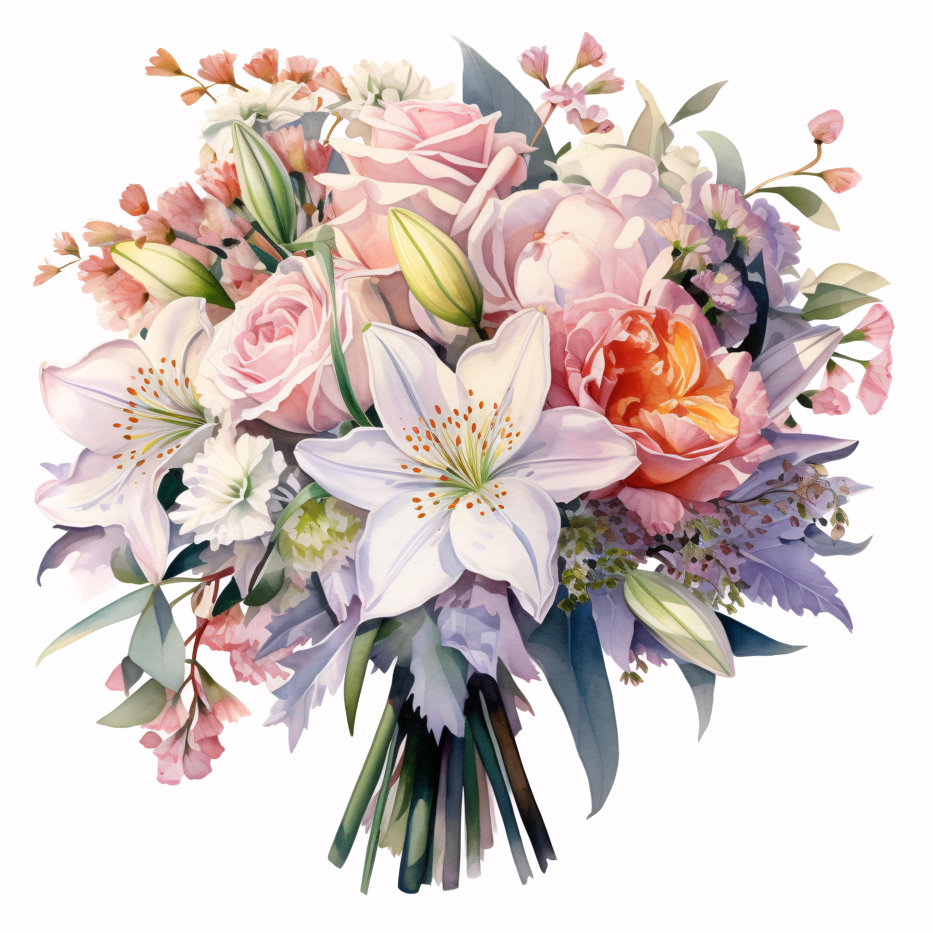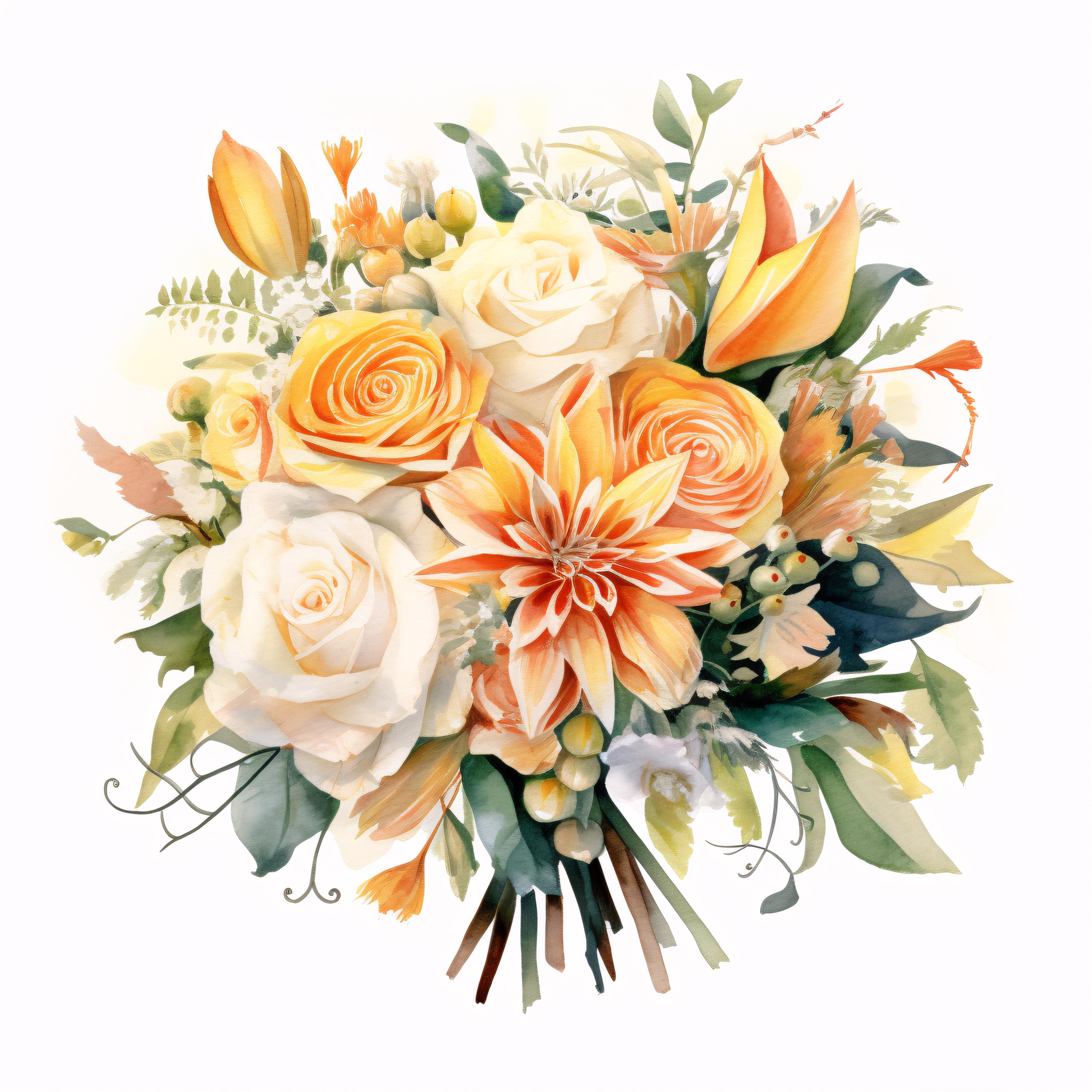 Wedding Bouquet Clipart, Romantic Floral Images, 10 Watercolor Clip Art, Printable JPGs, Instant Download, Commercial Use, Paper craft