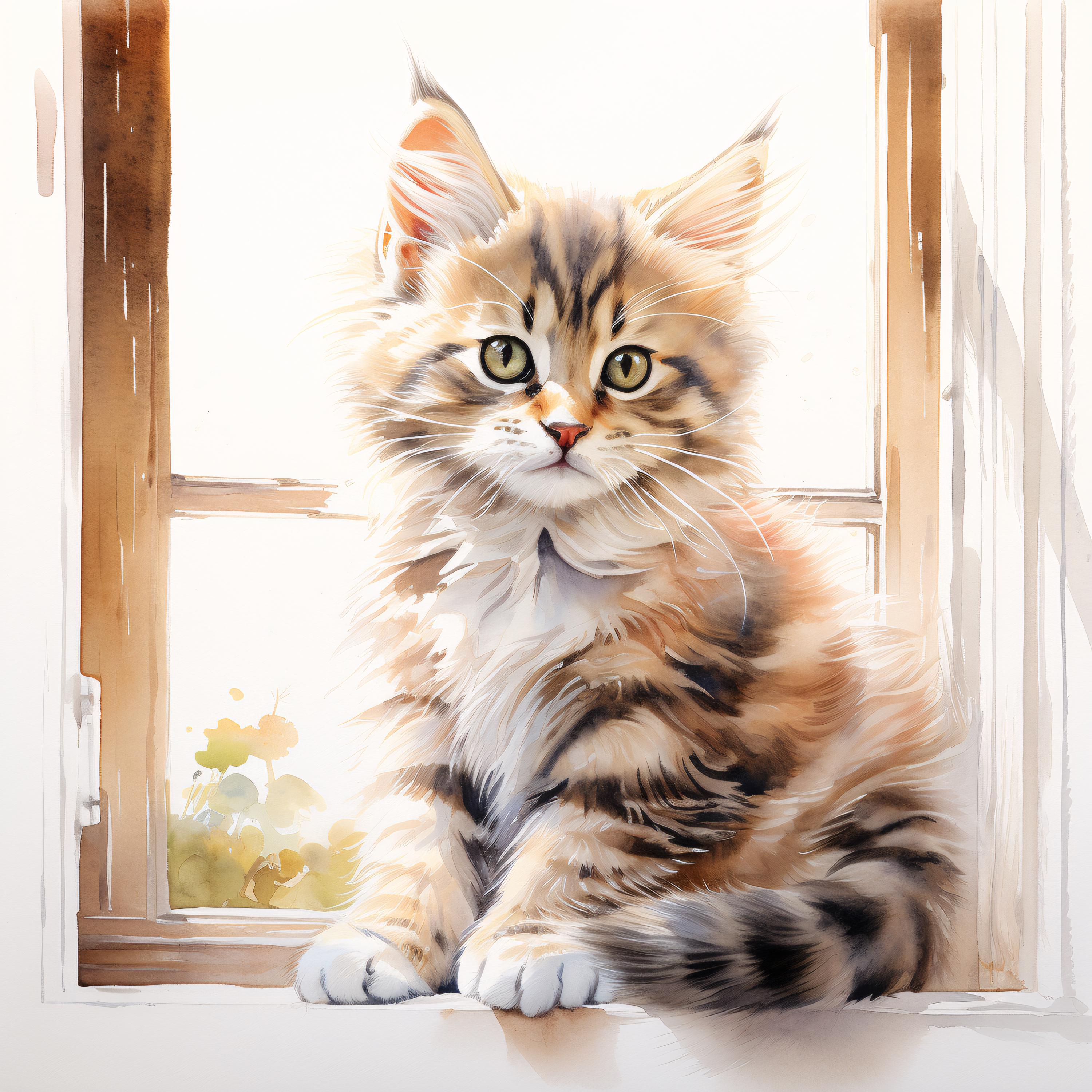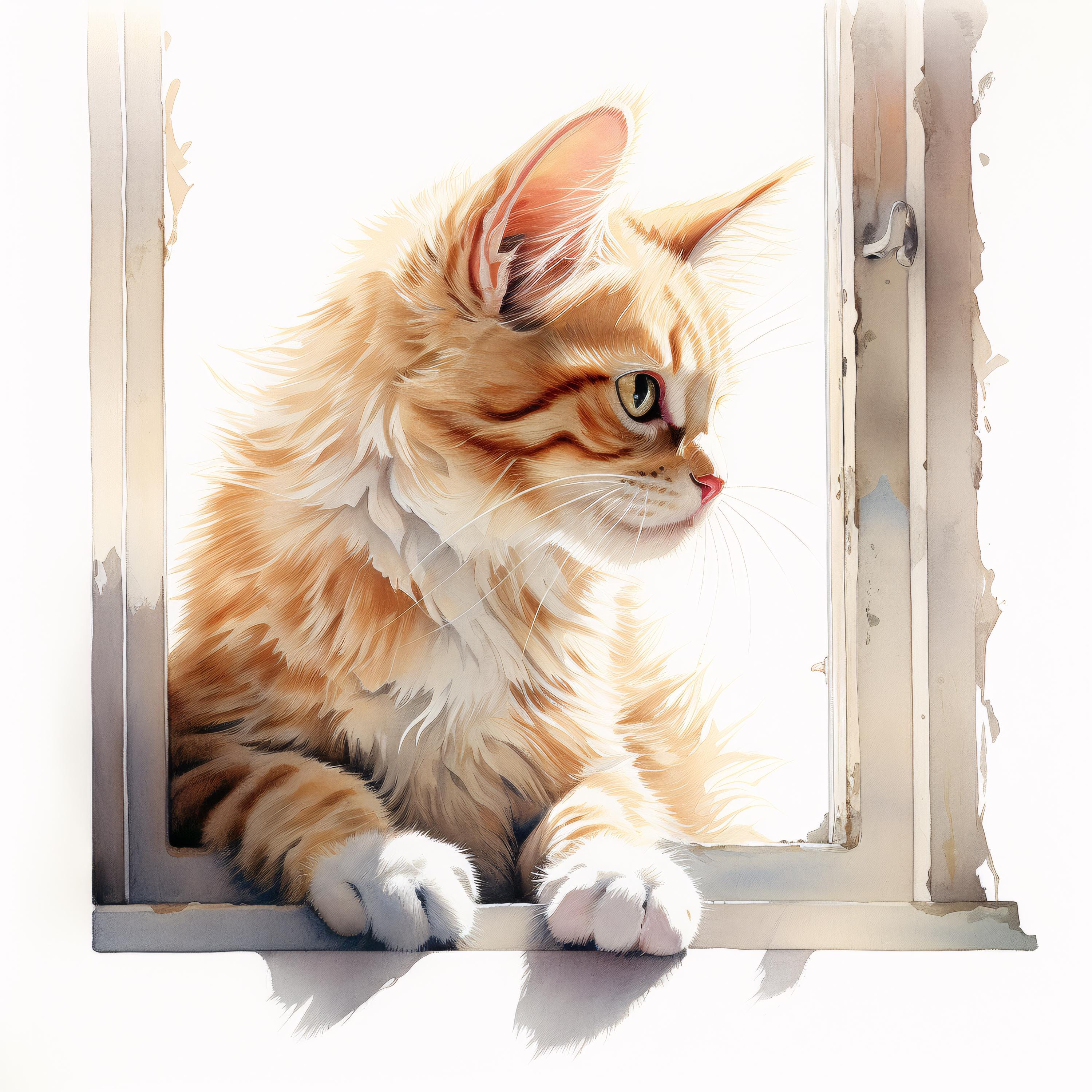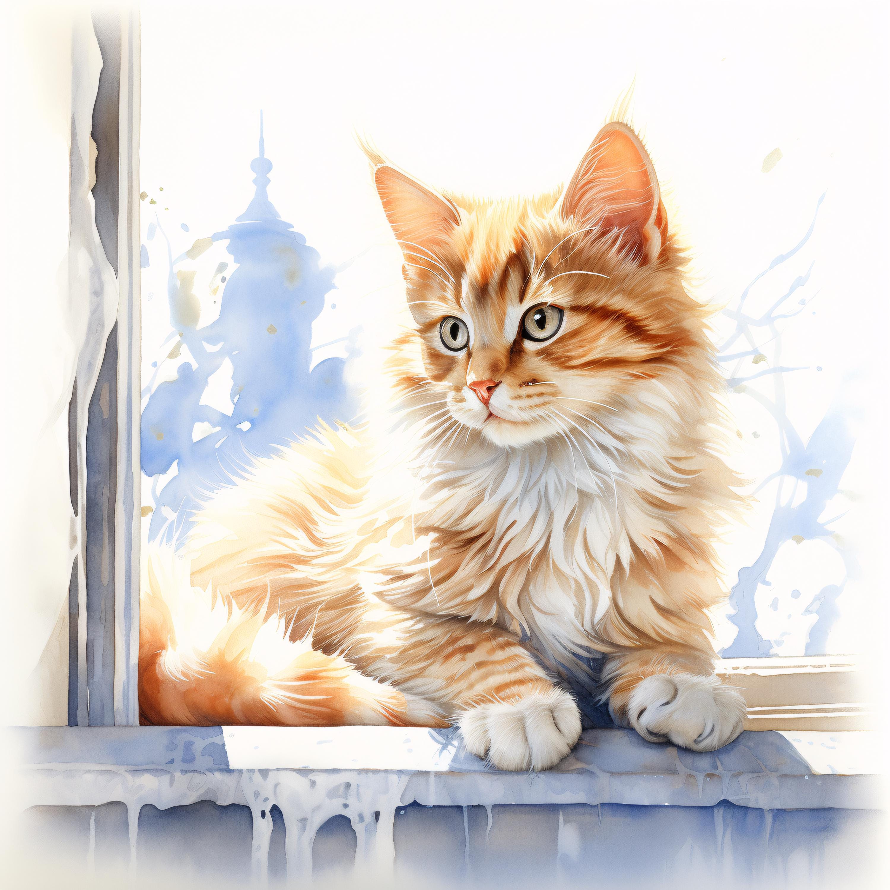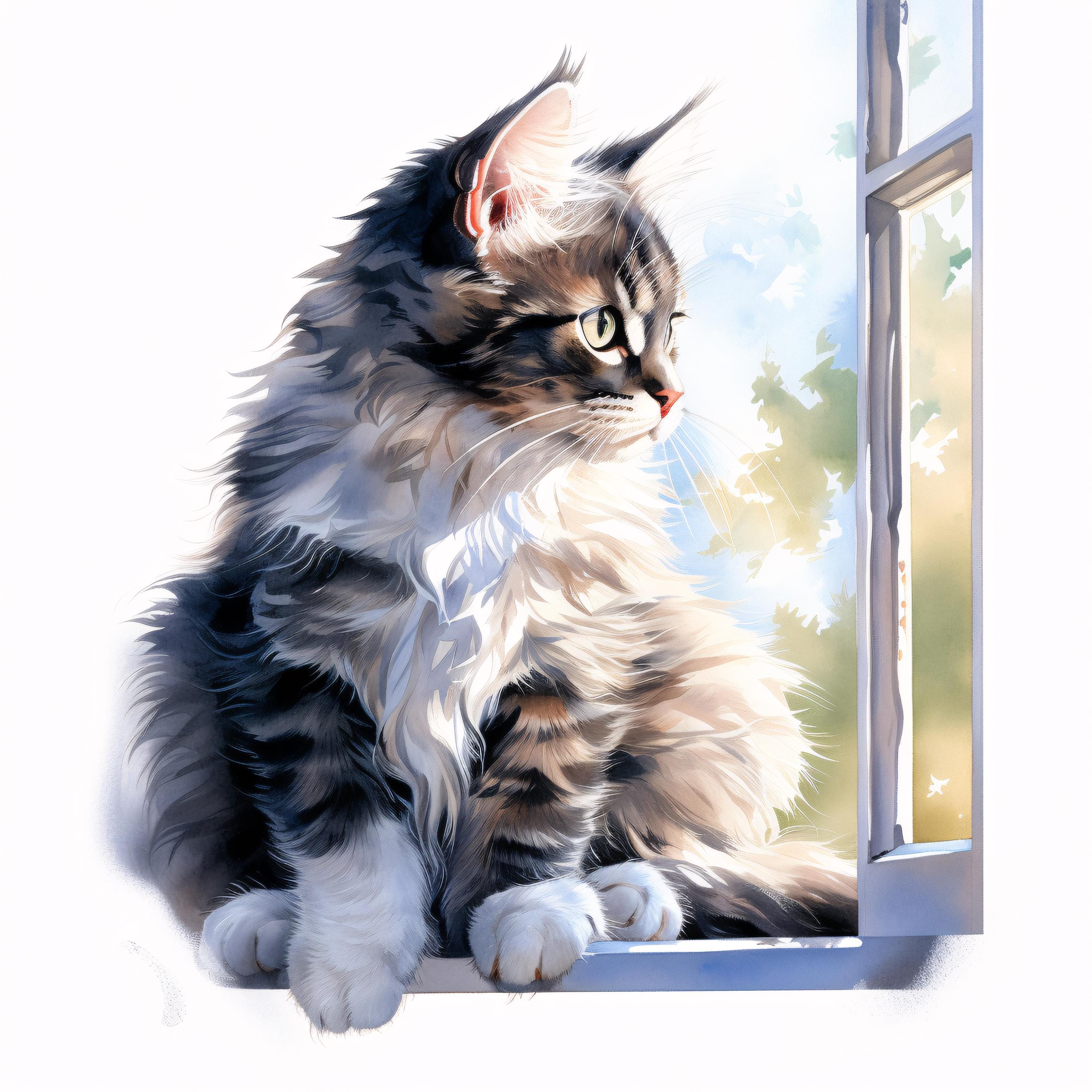Cat at Window Clipart, Cozy Pet Images, 10 Watercolor Clip Art, Printable JPGs, Instant Download, Commercial Use, Paper craft