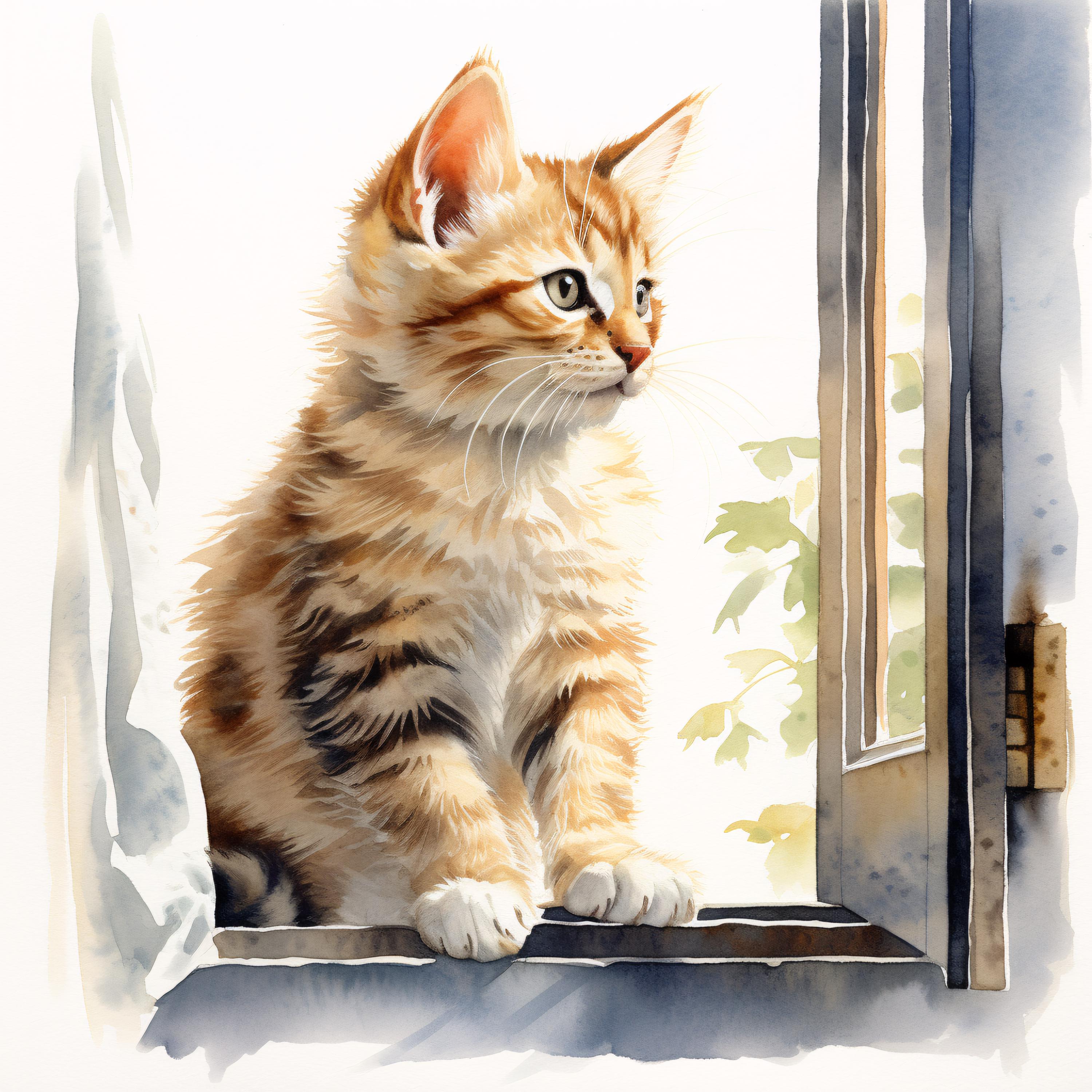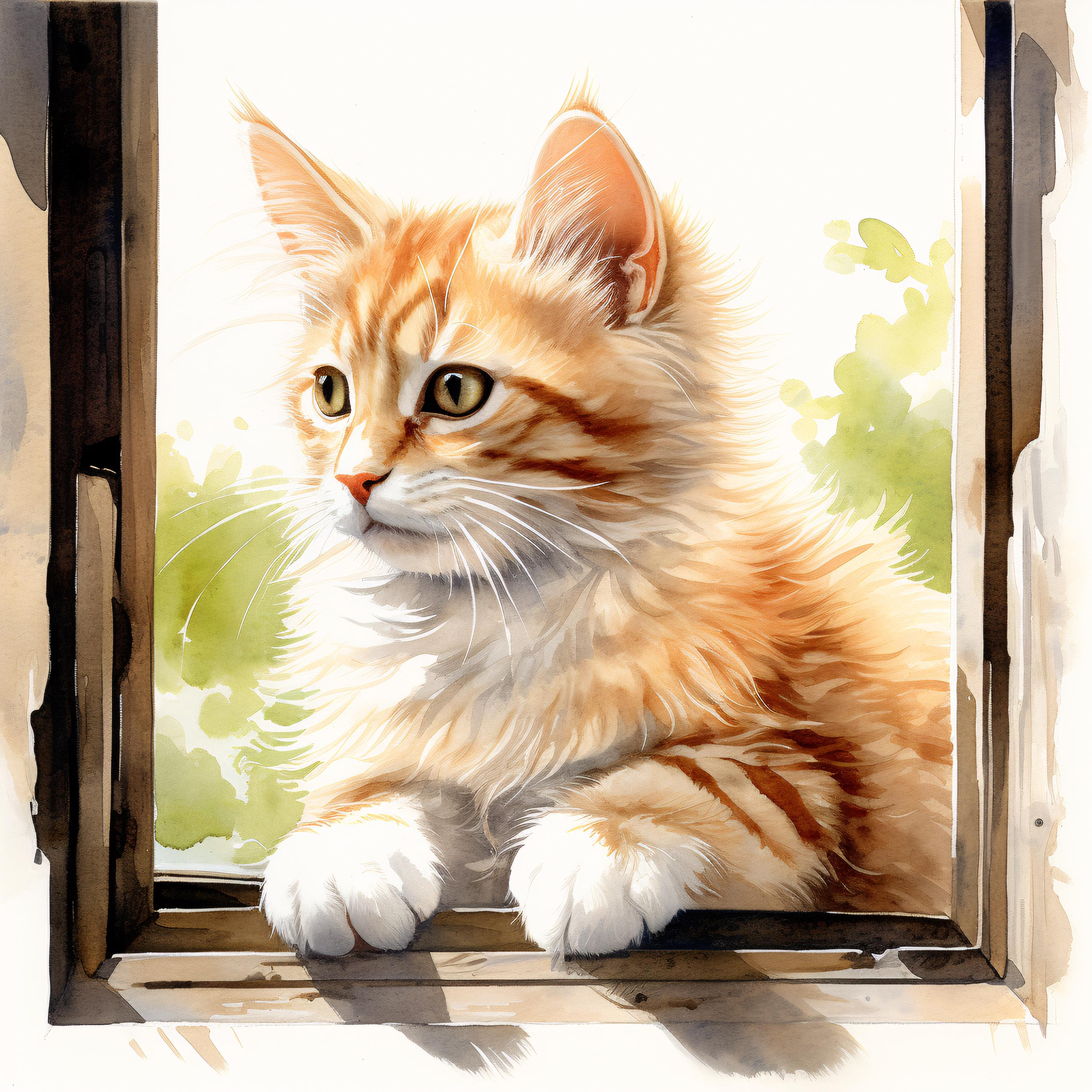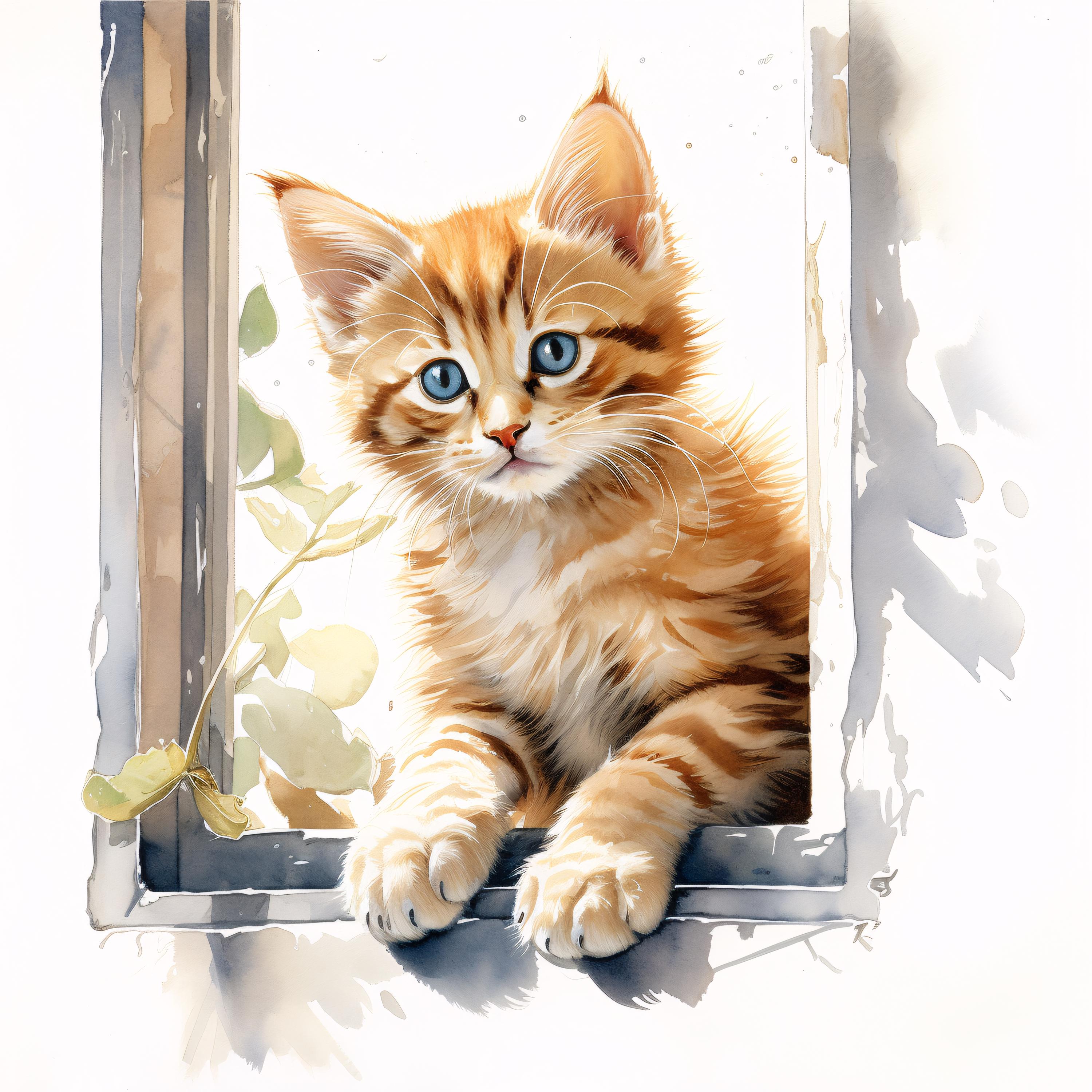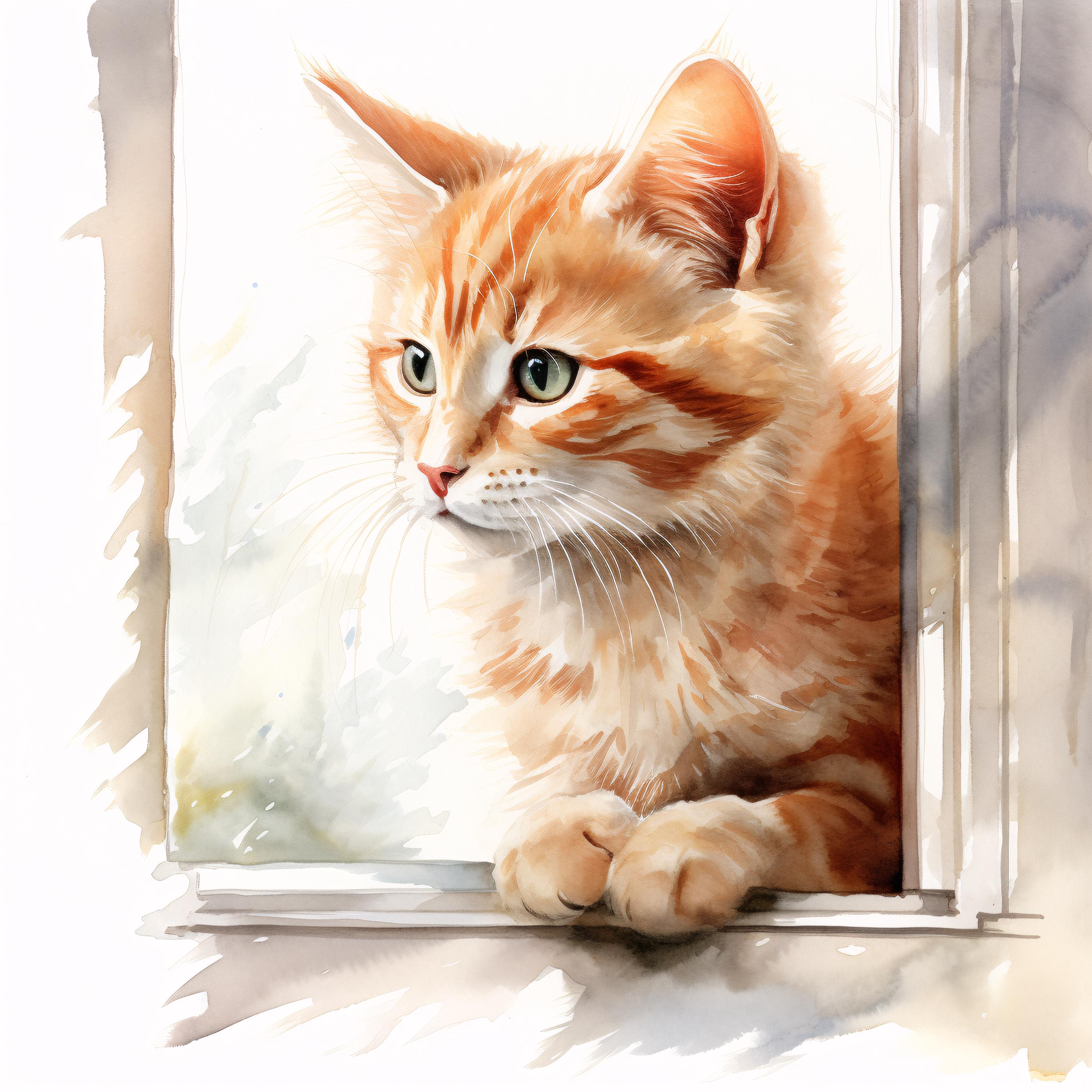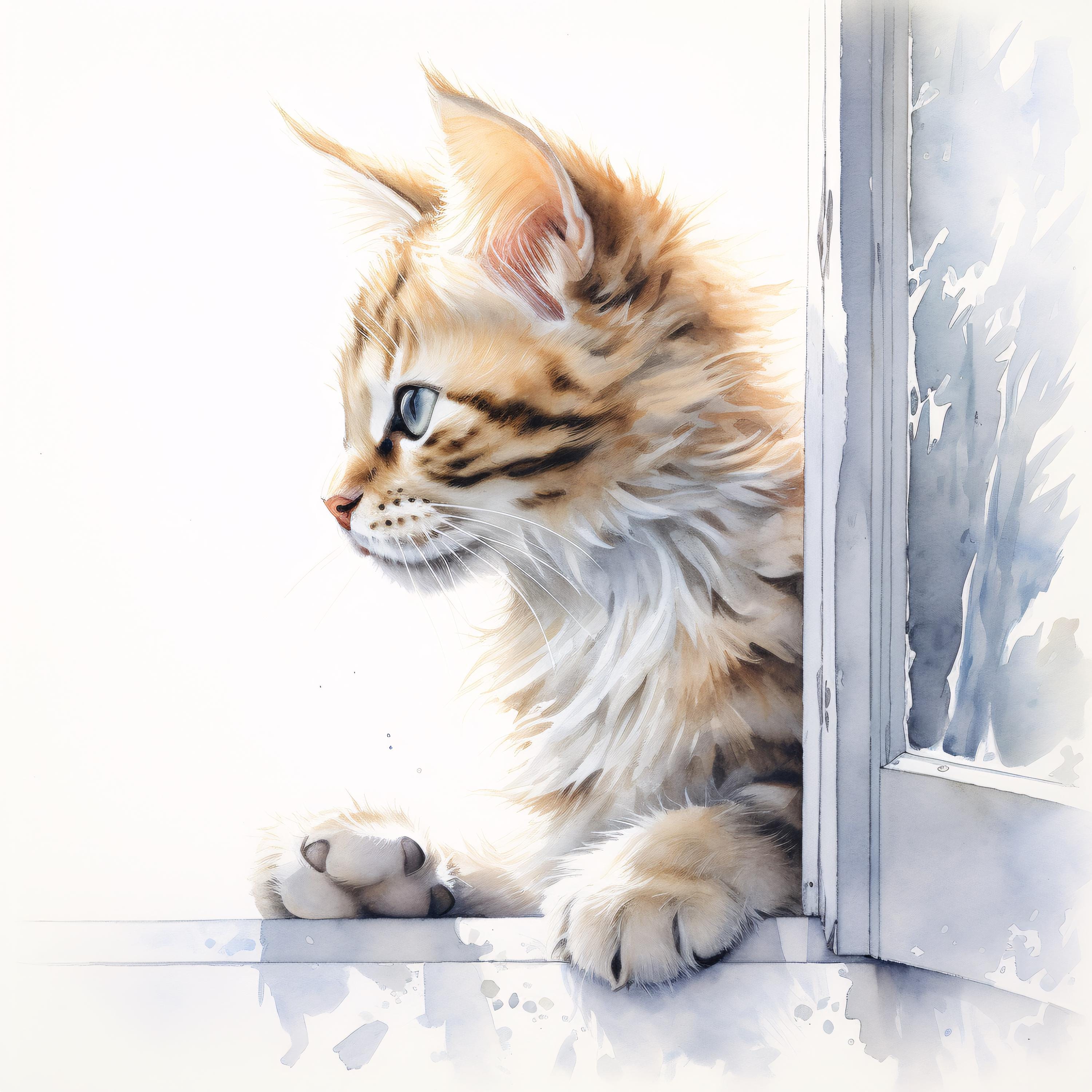 Cat at Window Clipart, Cozy Pet Images, 10 Watercolor Clip Art, Printable JPGs, Instant Download, Commercial Use, Paper craft