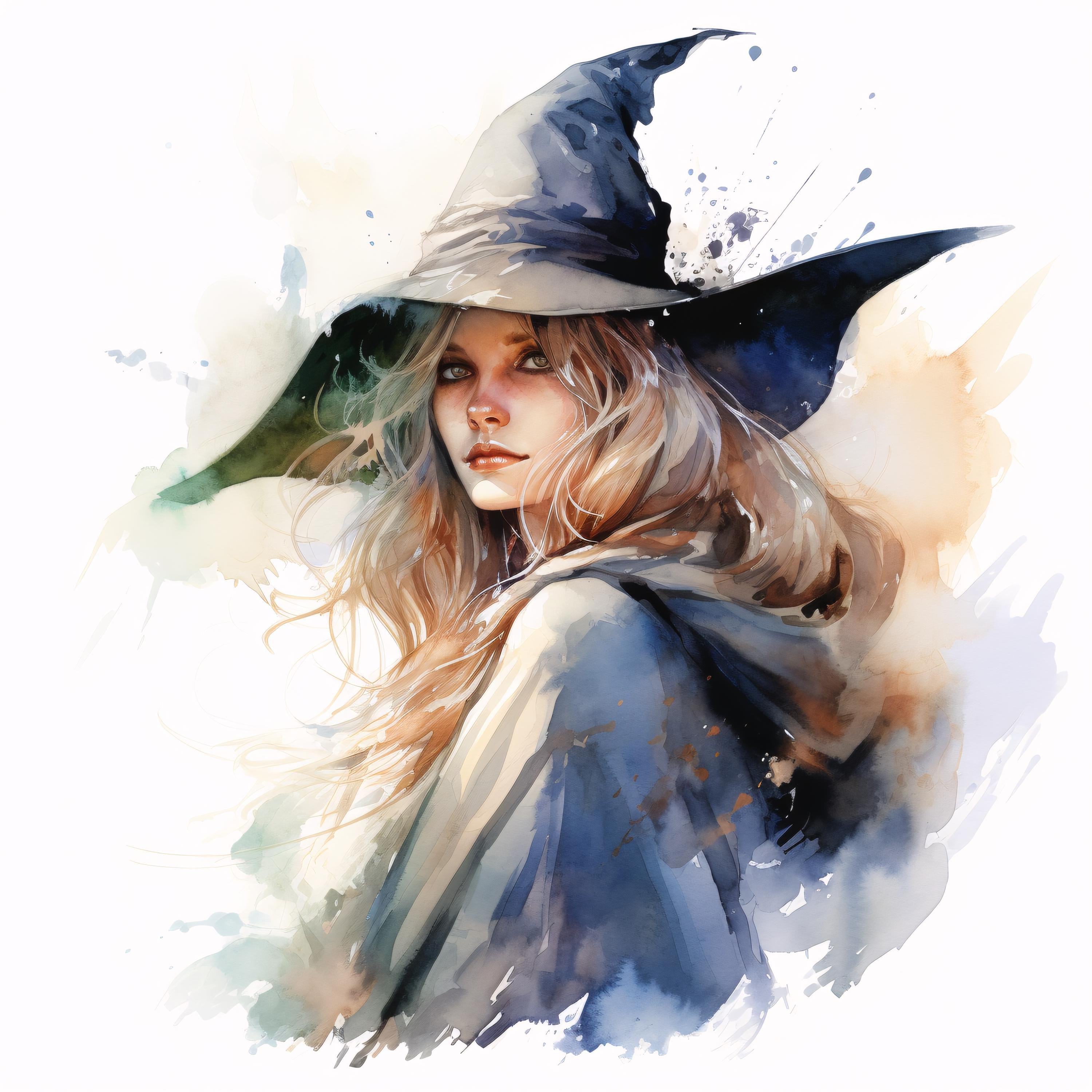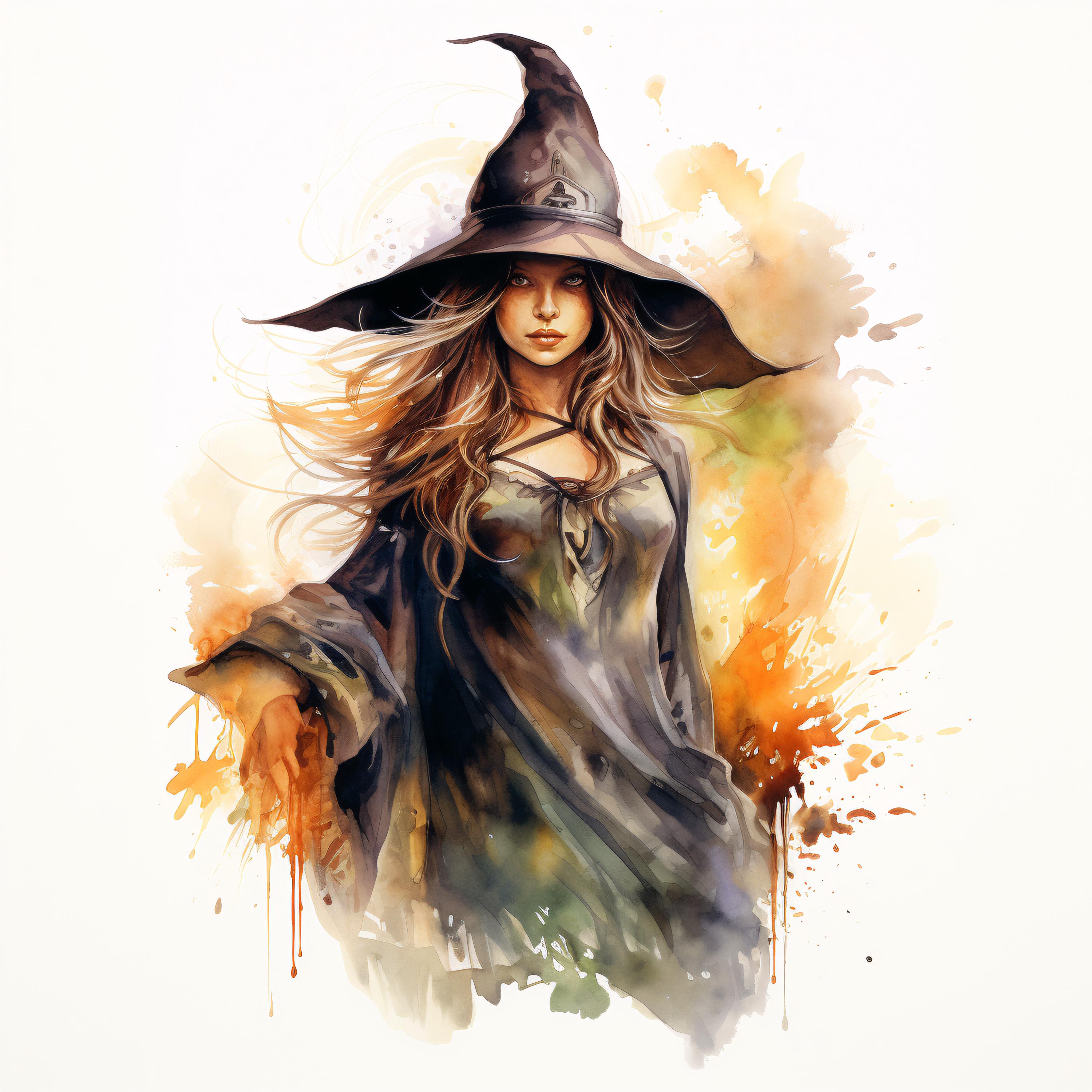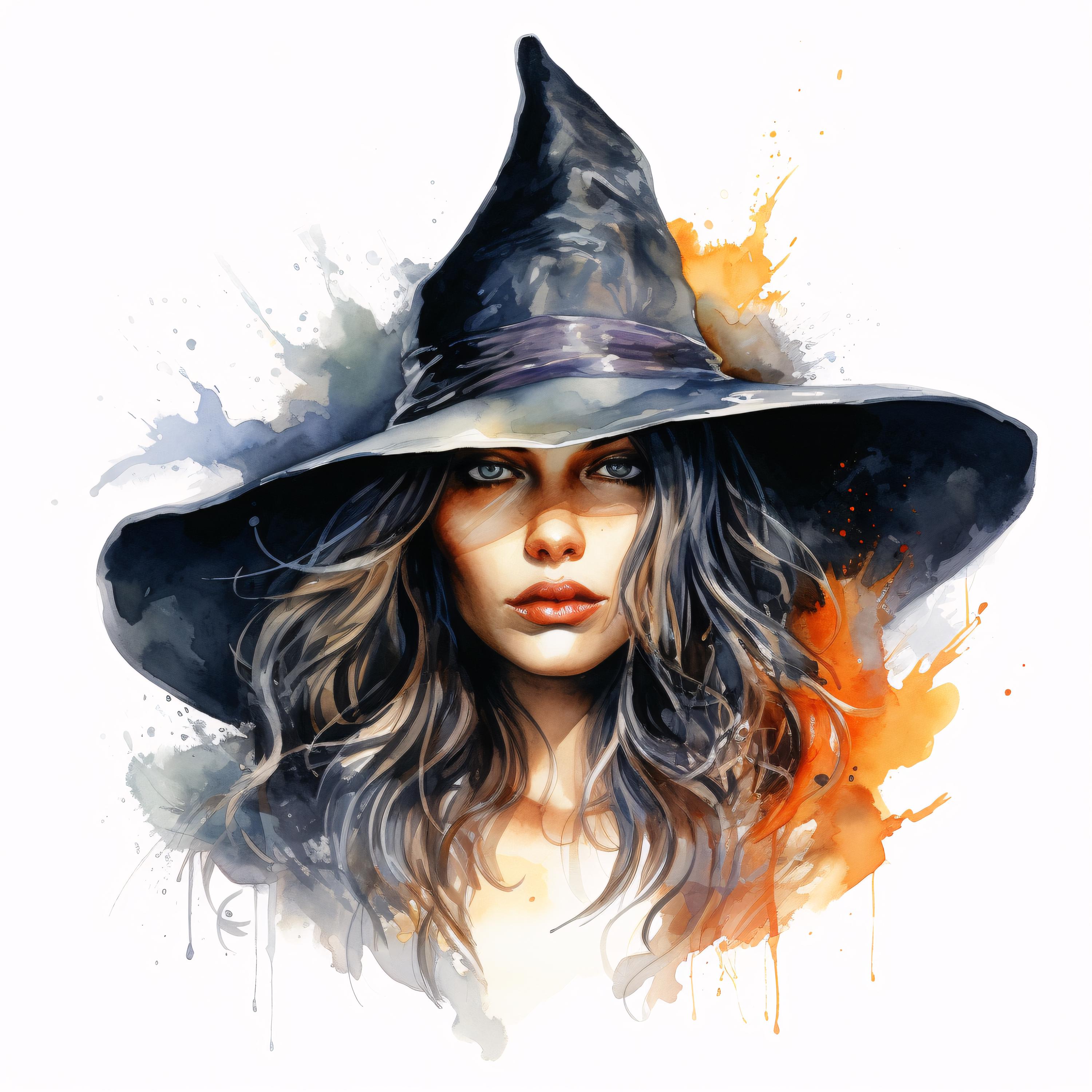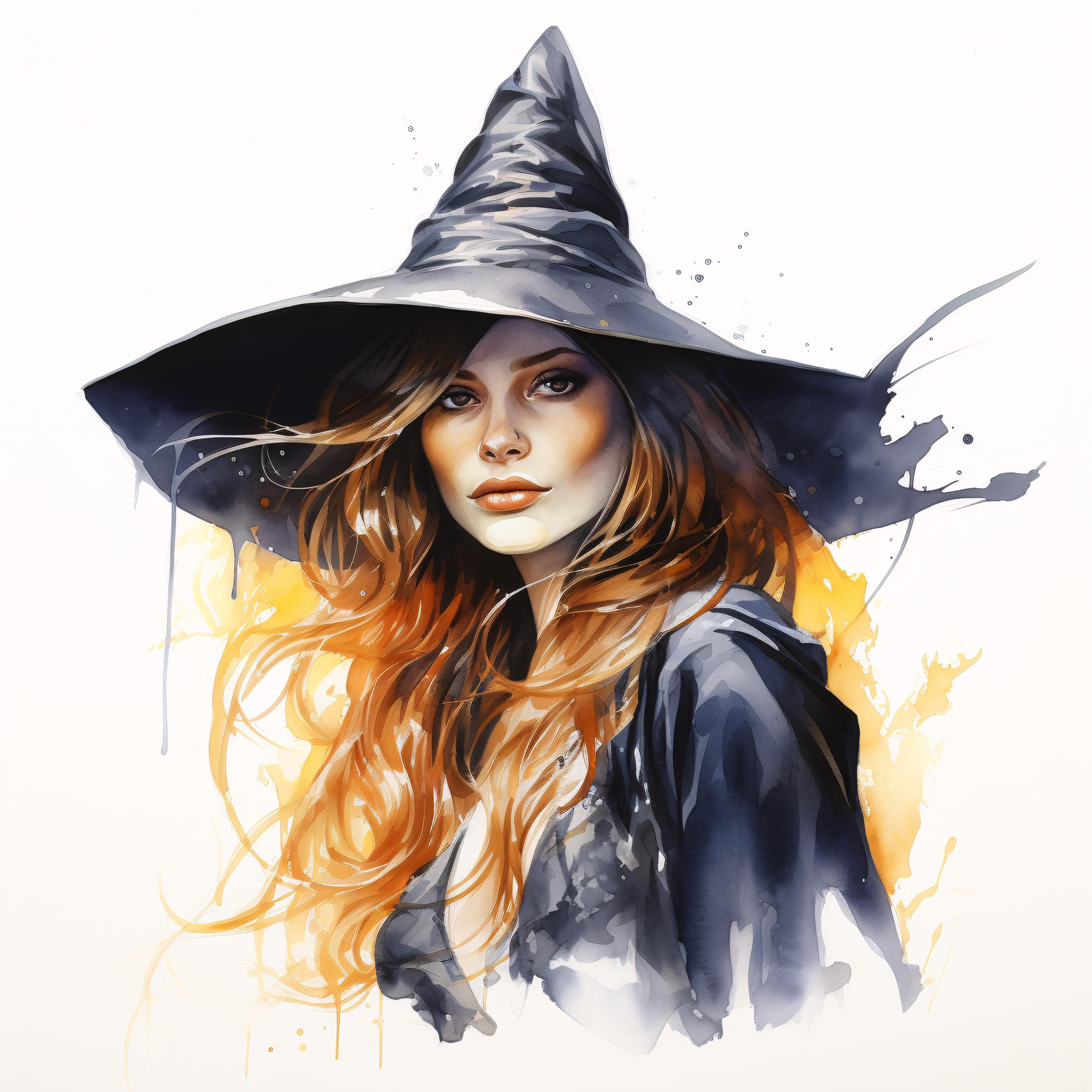 Witch Clipart, Halloween Magic Images, 10 Watercolor Clip Art, Printable JPGs, Instant Download, Commercial Use, Paper craft