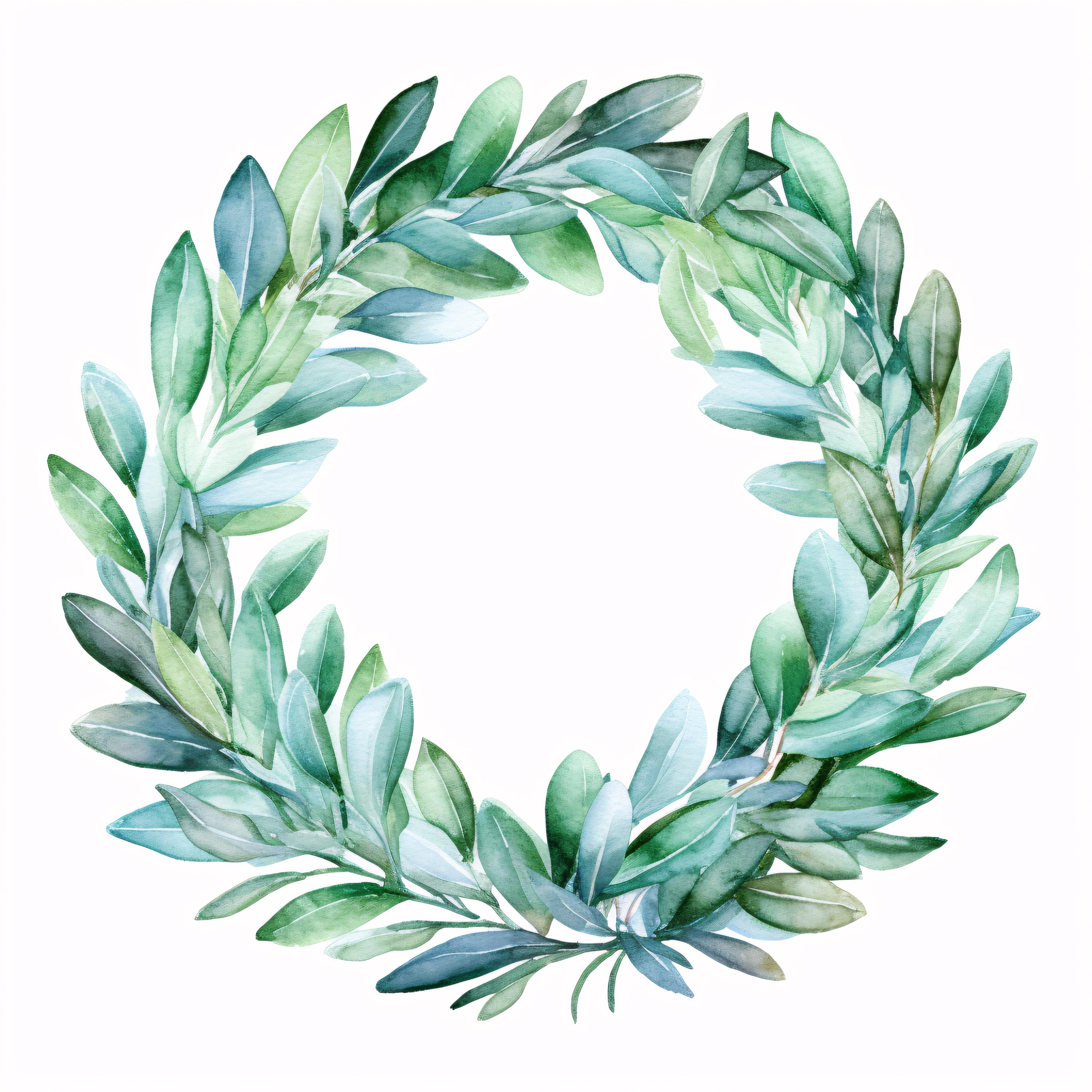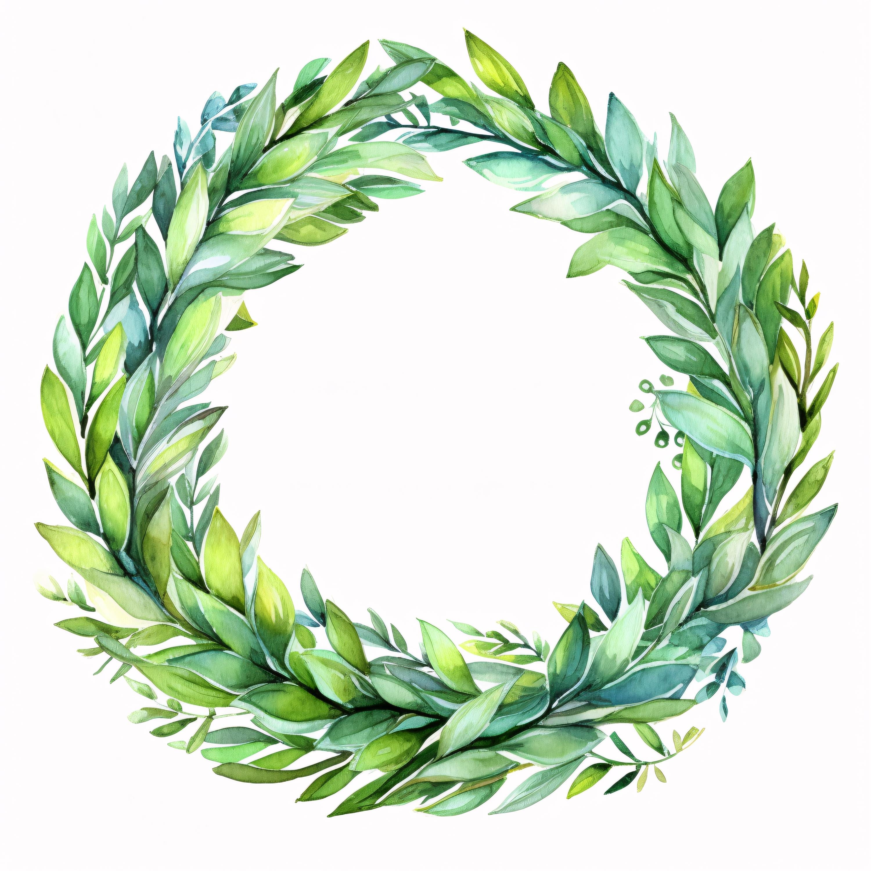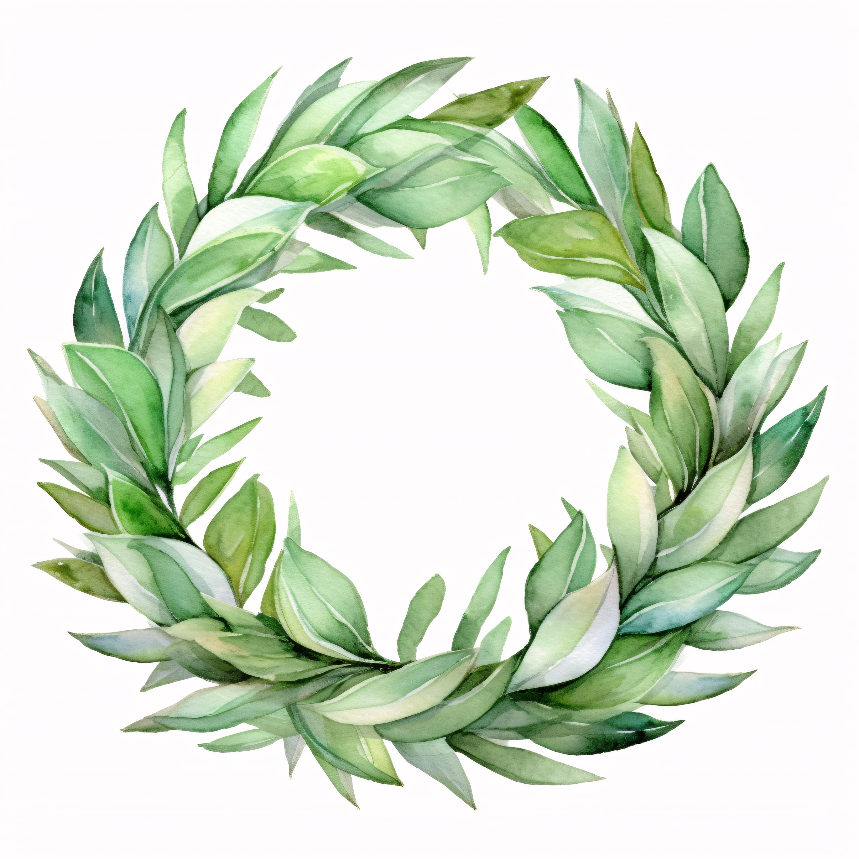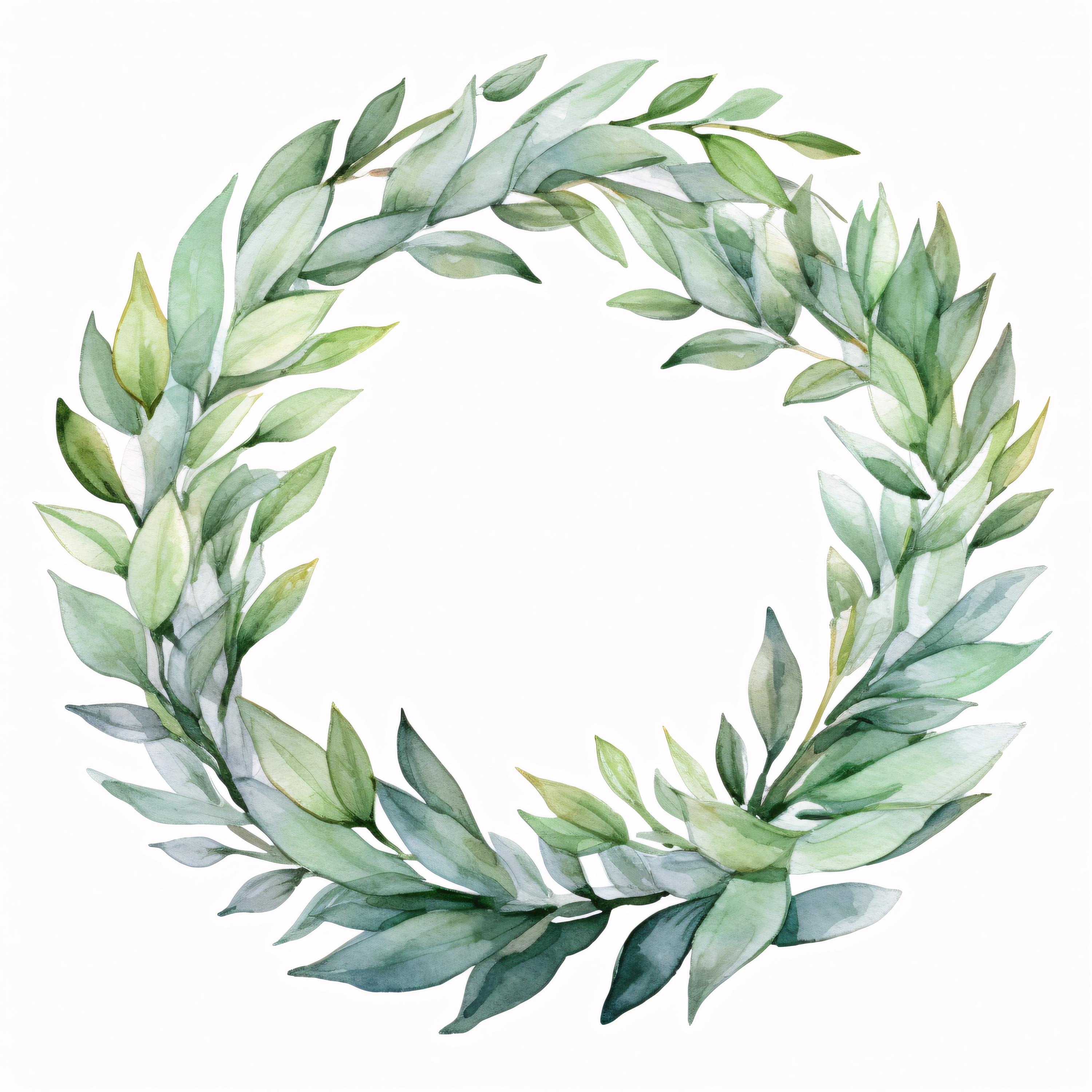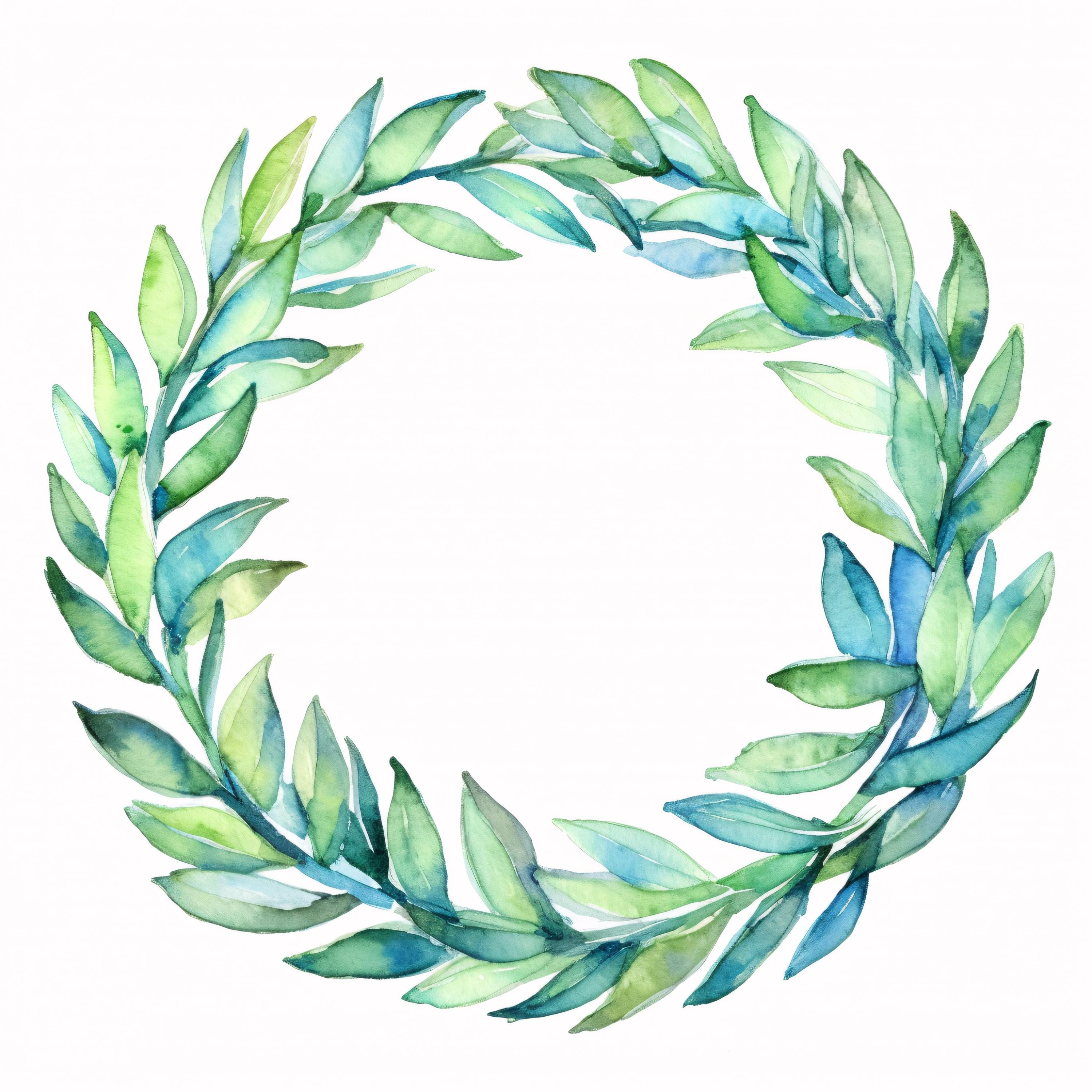 Green Wreath Clipart, Botanical Circle Images, 10 Watercolor Clip Art, Printable JPGs, Instant Download, Commercial Use, Paper craft