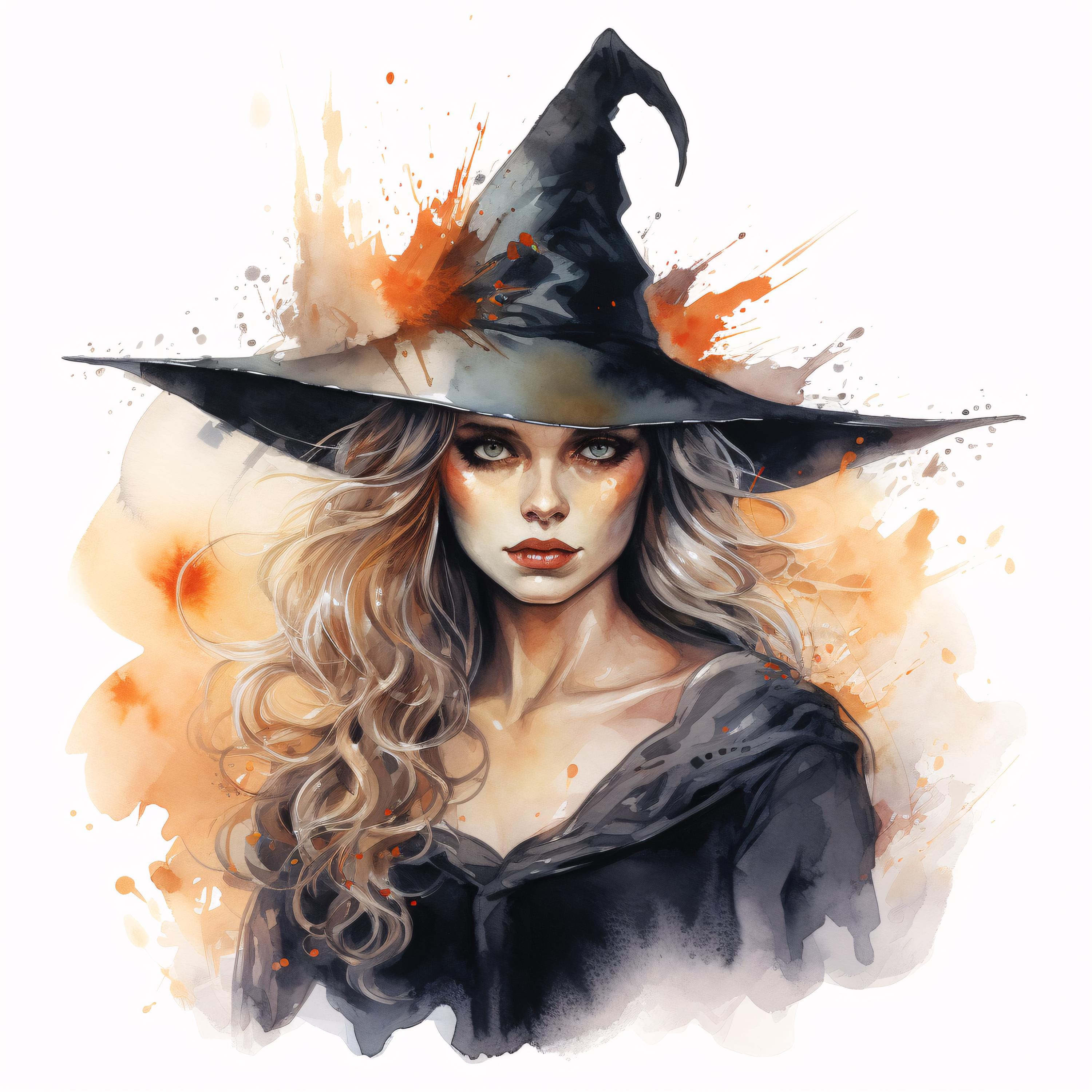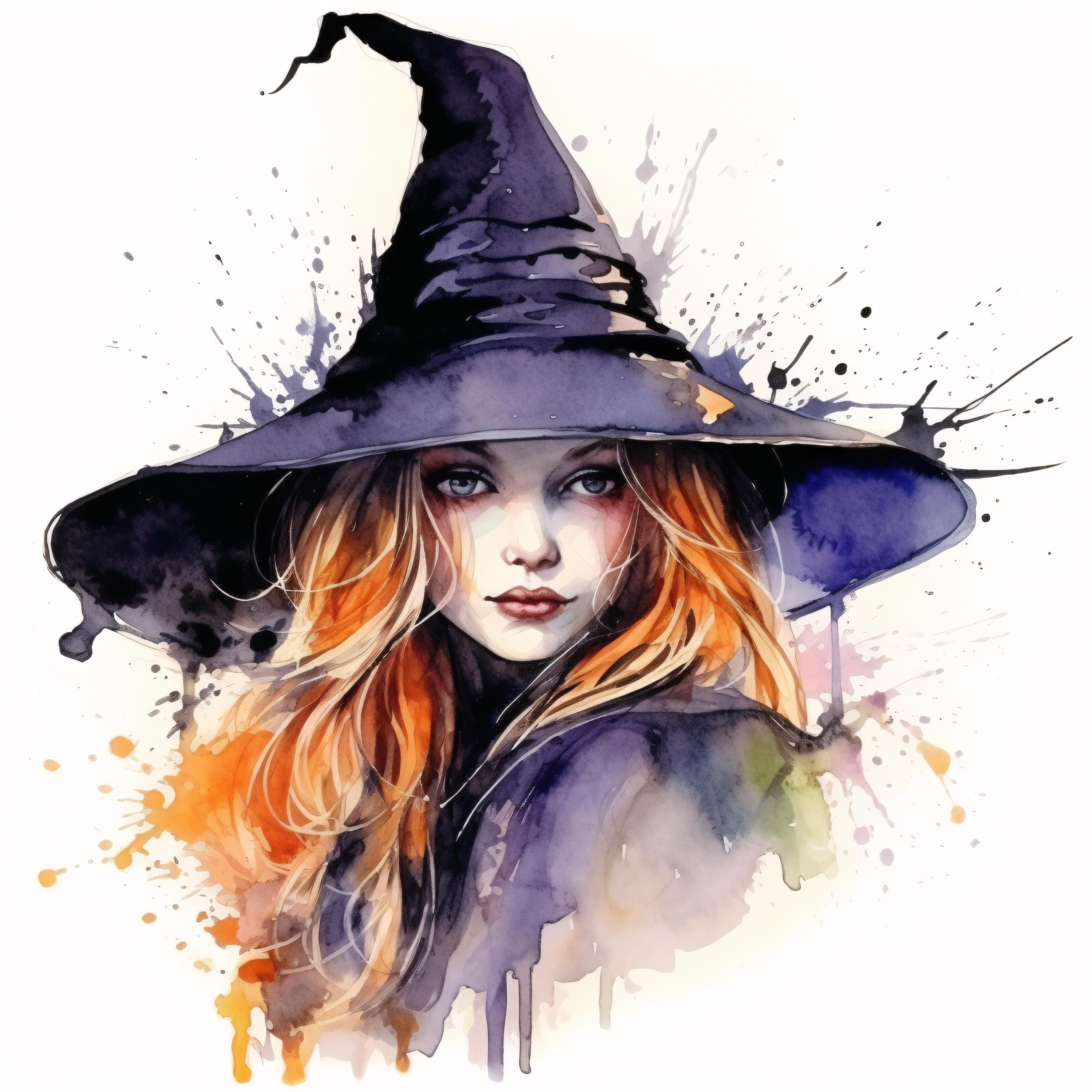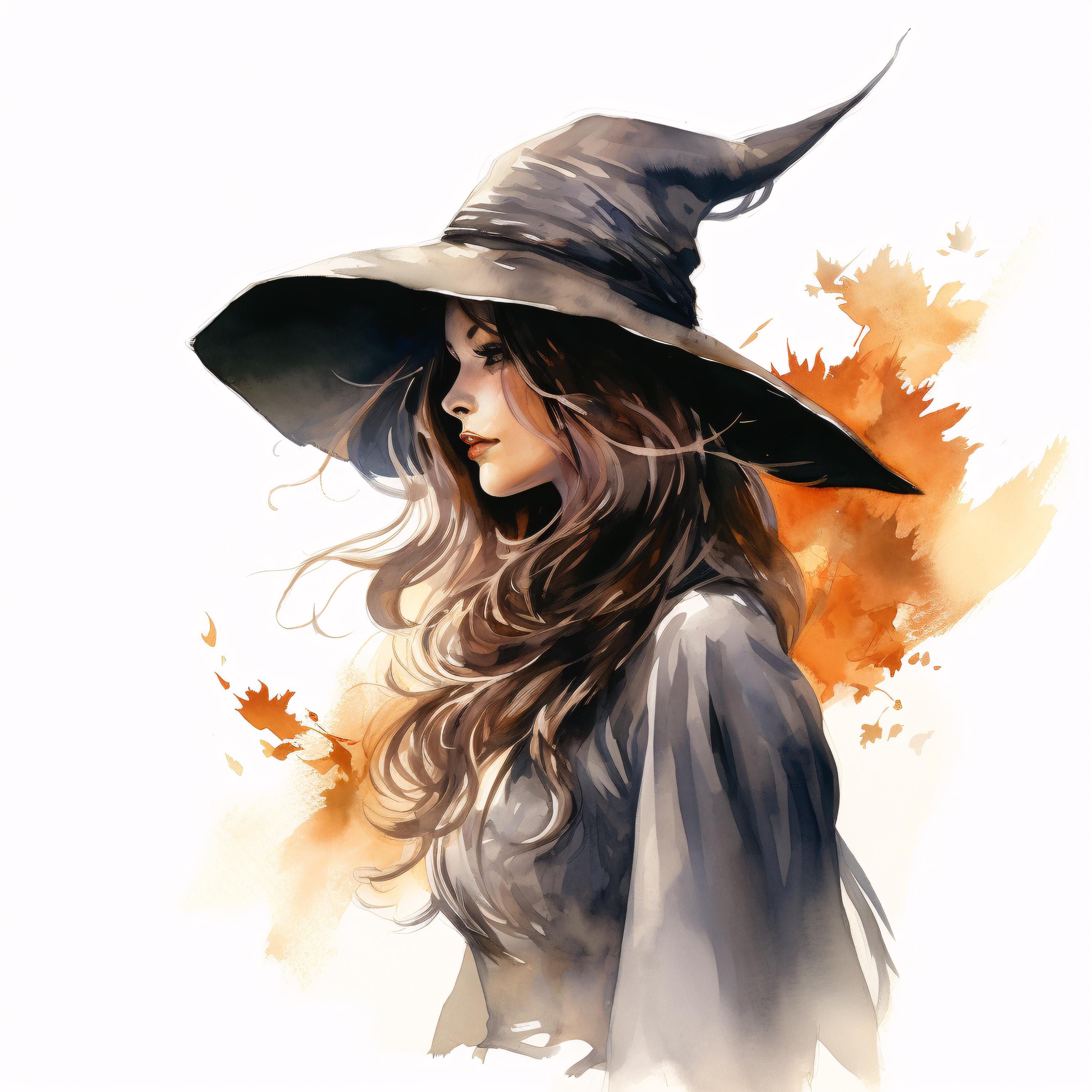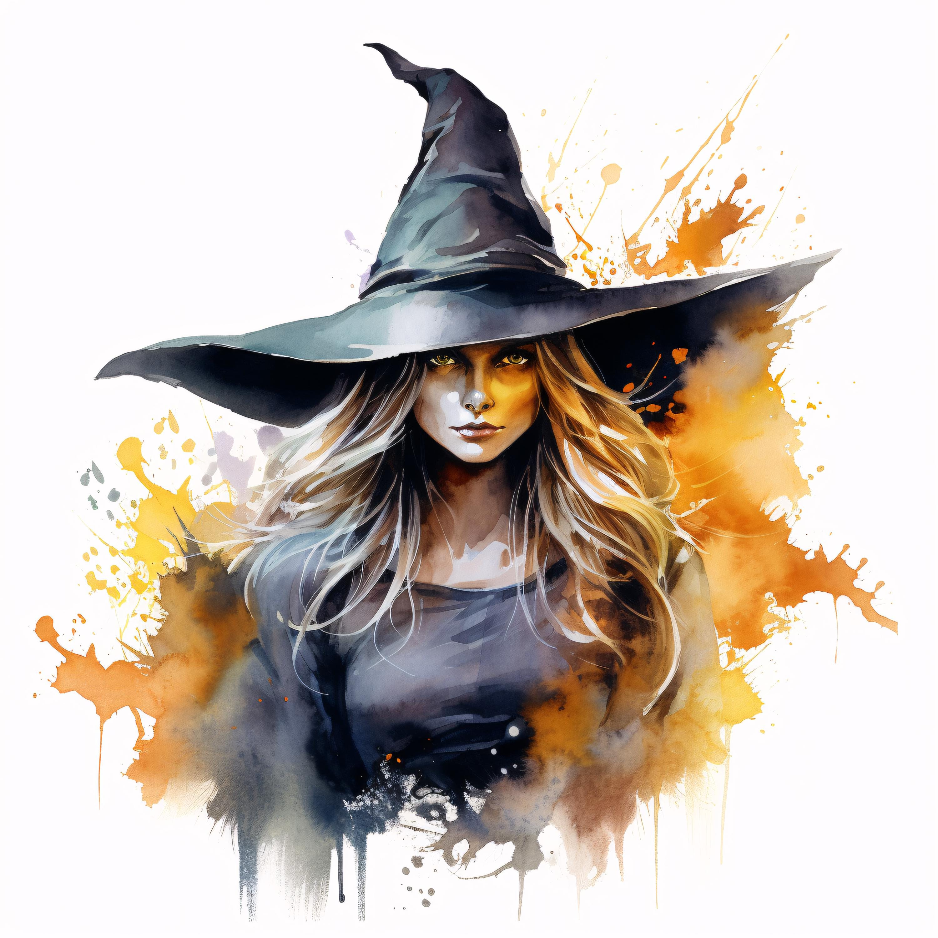Witch Clipart, Halloween Witch Hat Images, 10 Watercolor Clip Art, Printable JPGs, Instant Download, Commercial Use, Paper craft