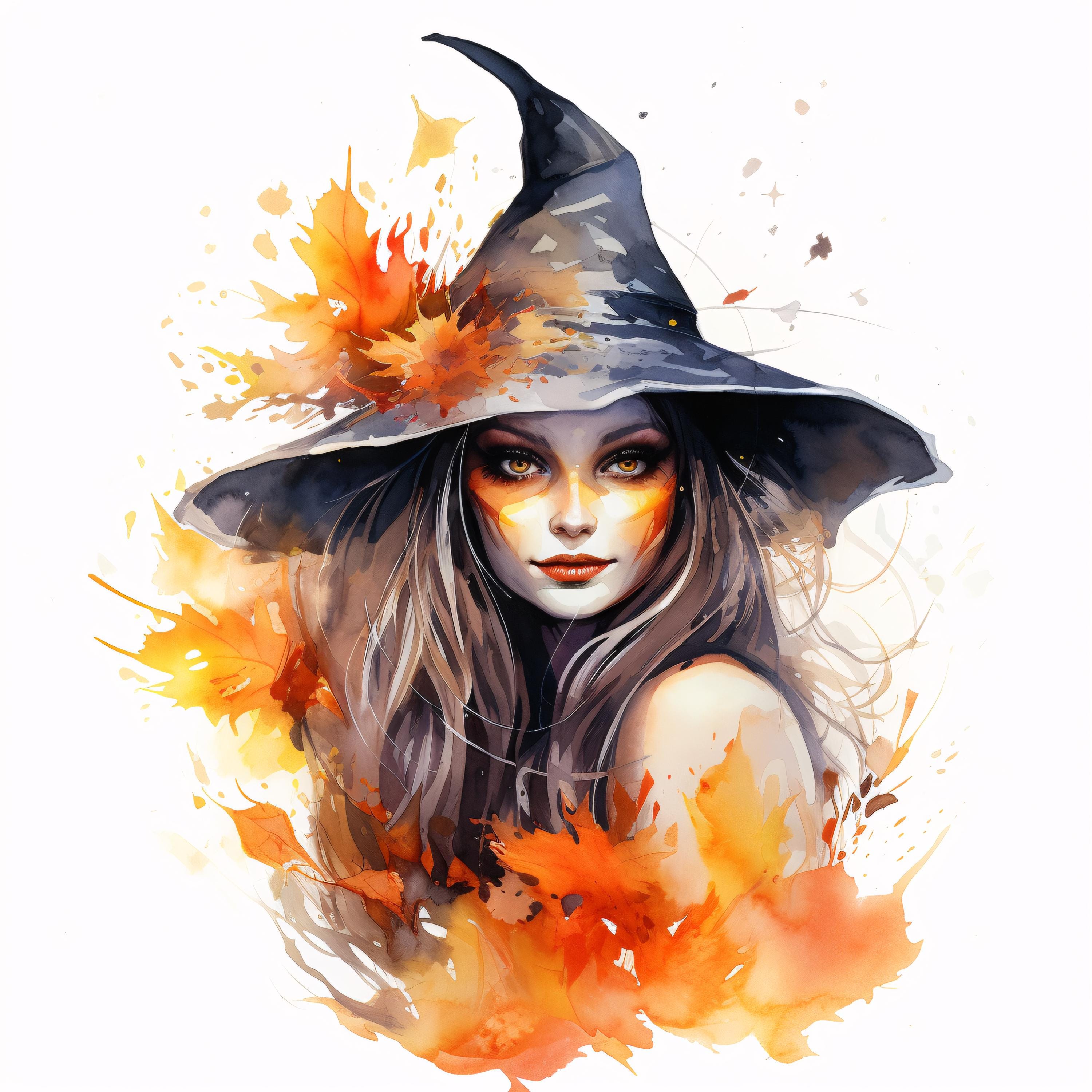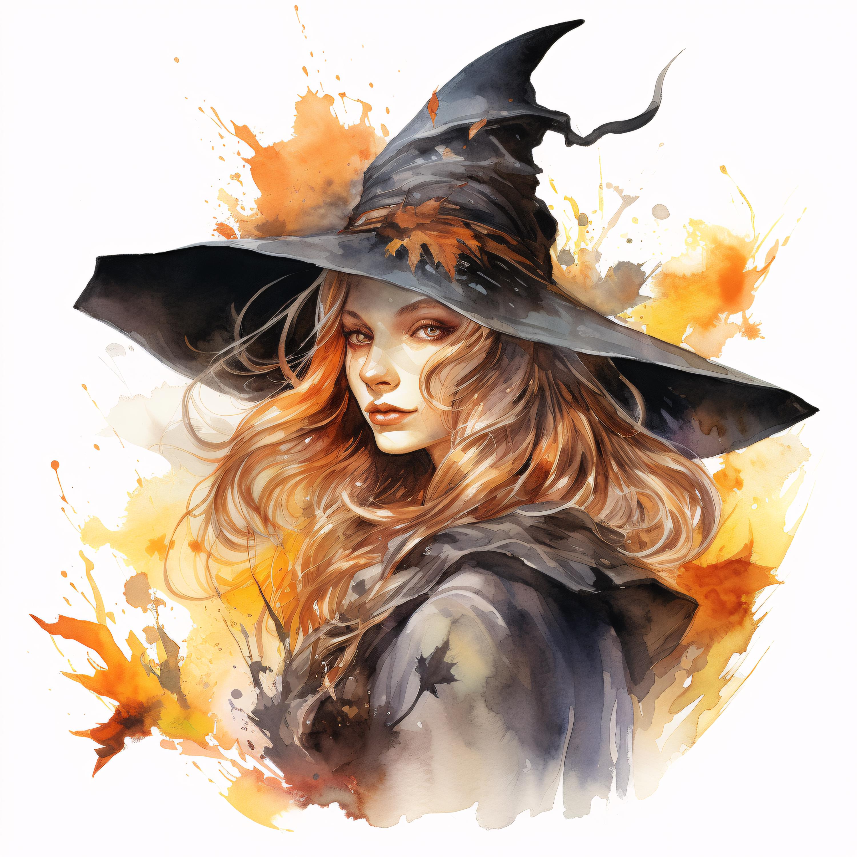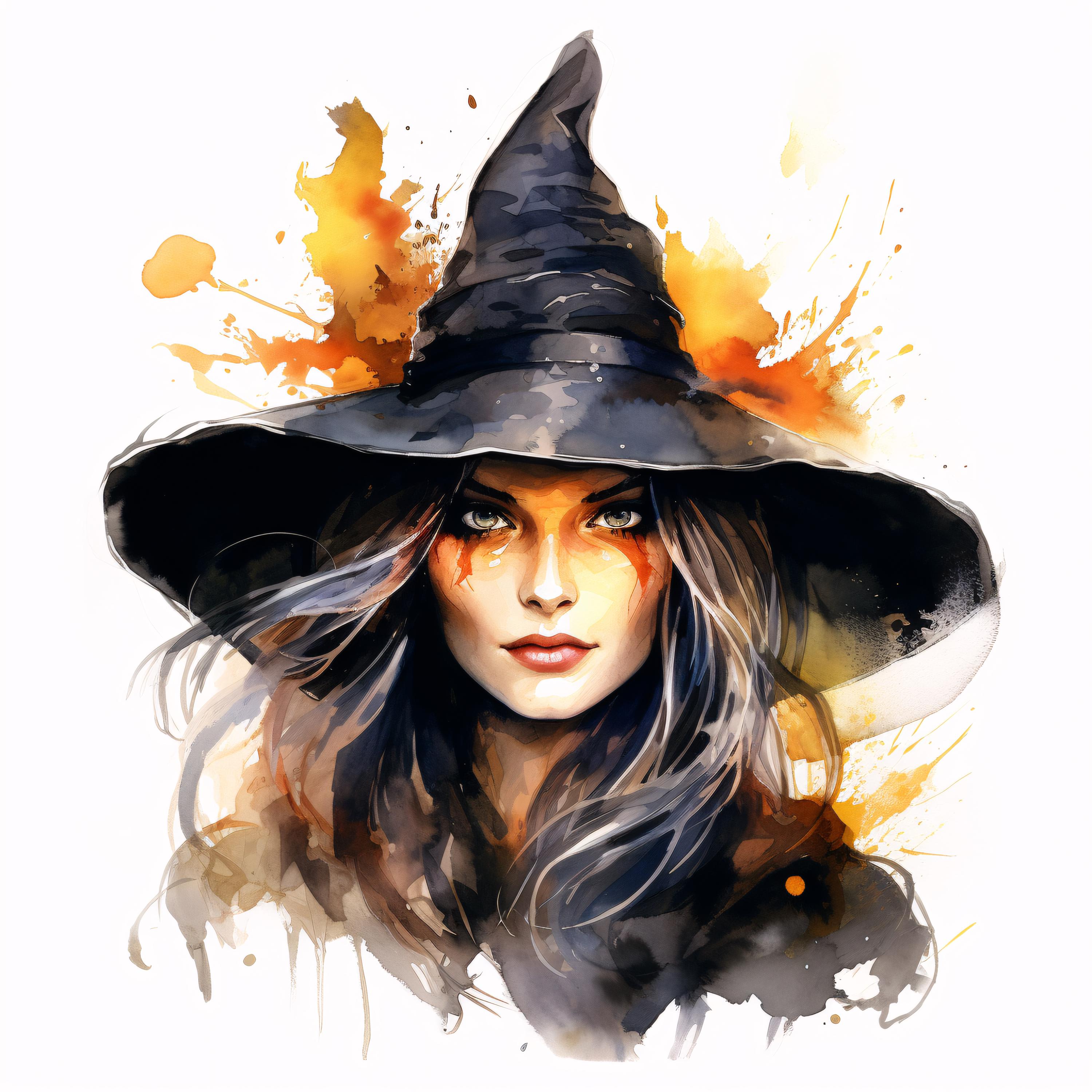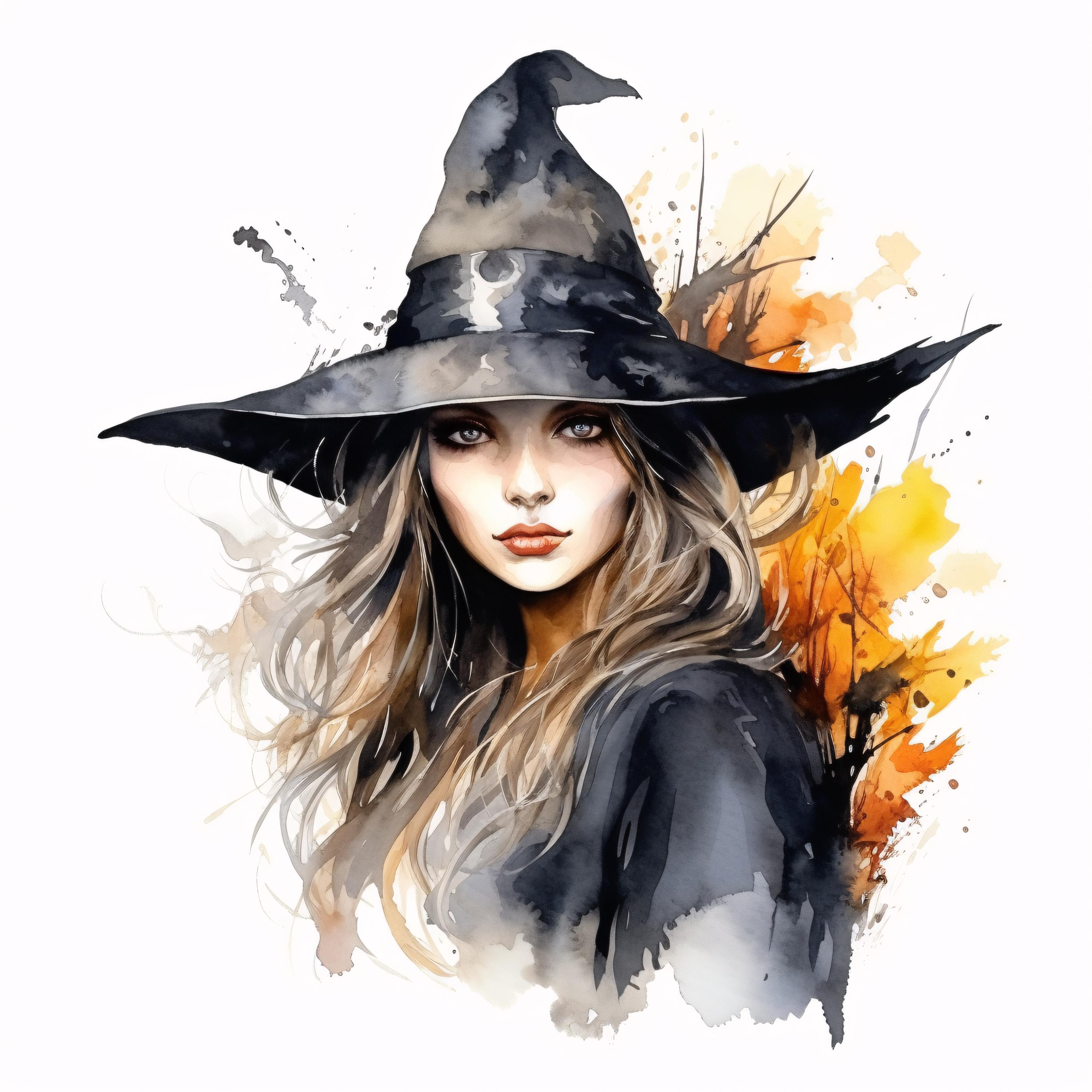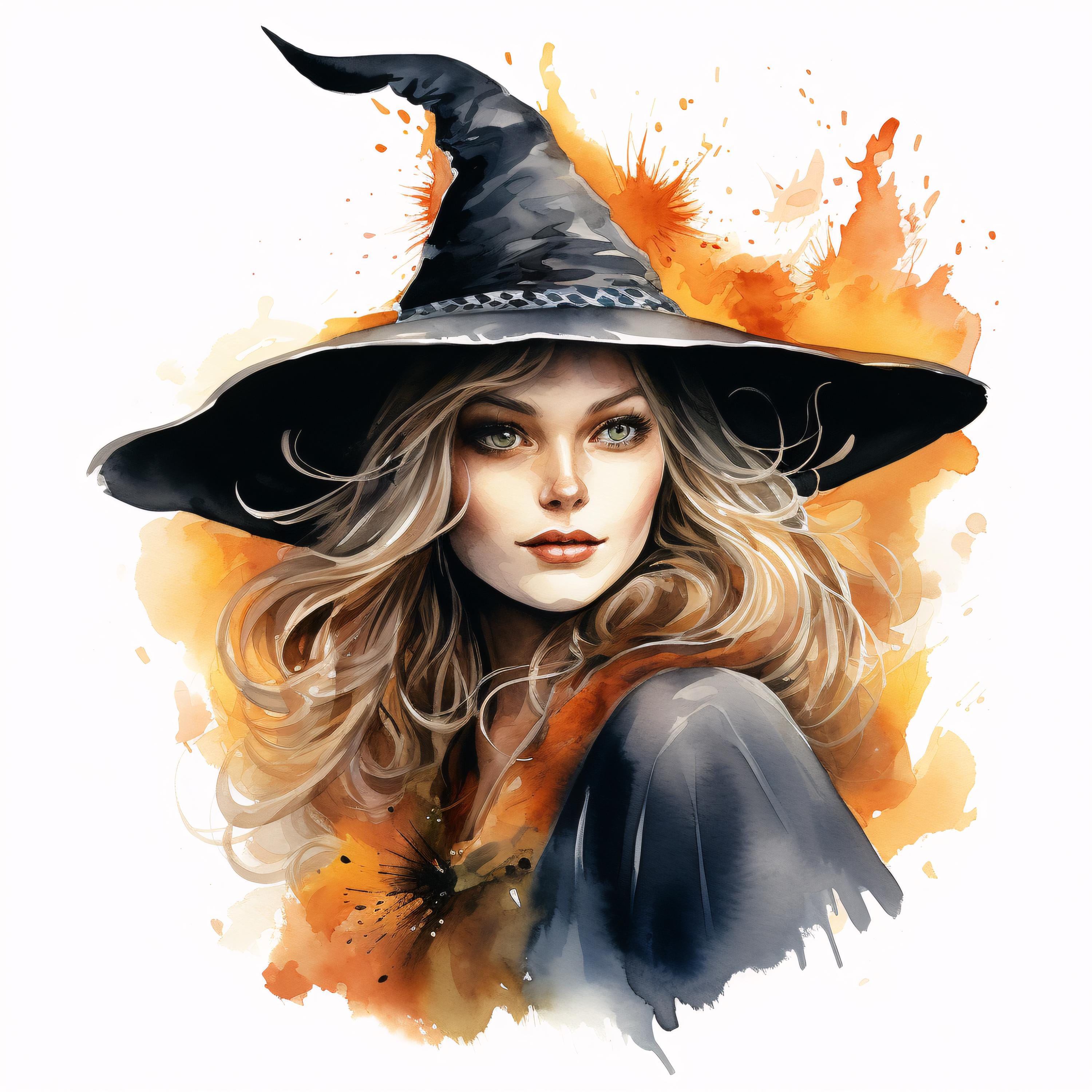 Witch Clipart, Halloween Witch Hat Images, 10 Watercolor Clip Art, Printable JPGs, Instant Download, Commercial Use, Paper craft