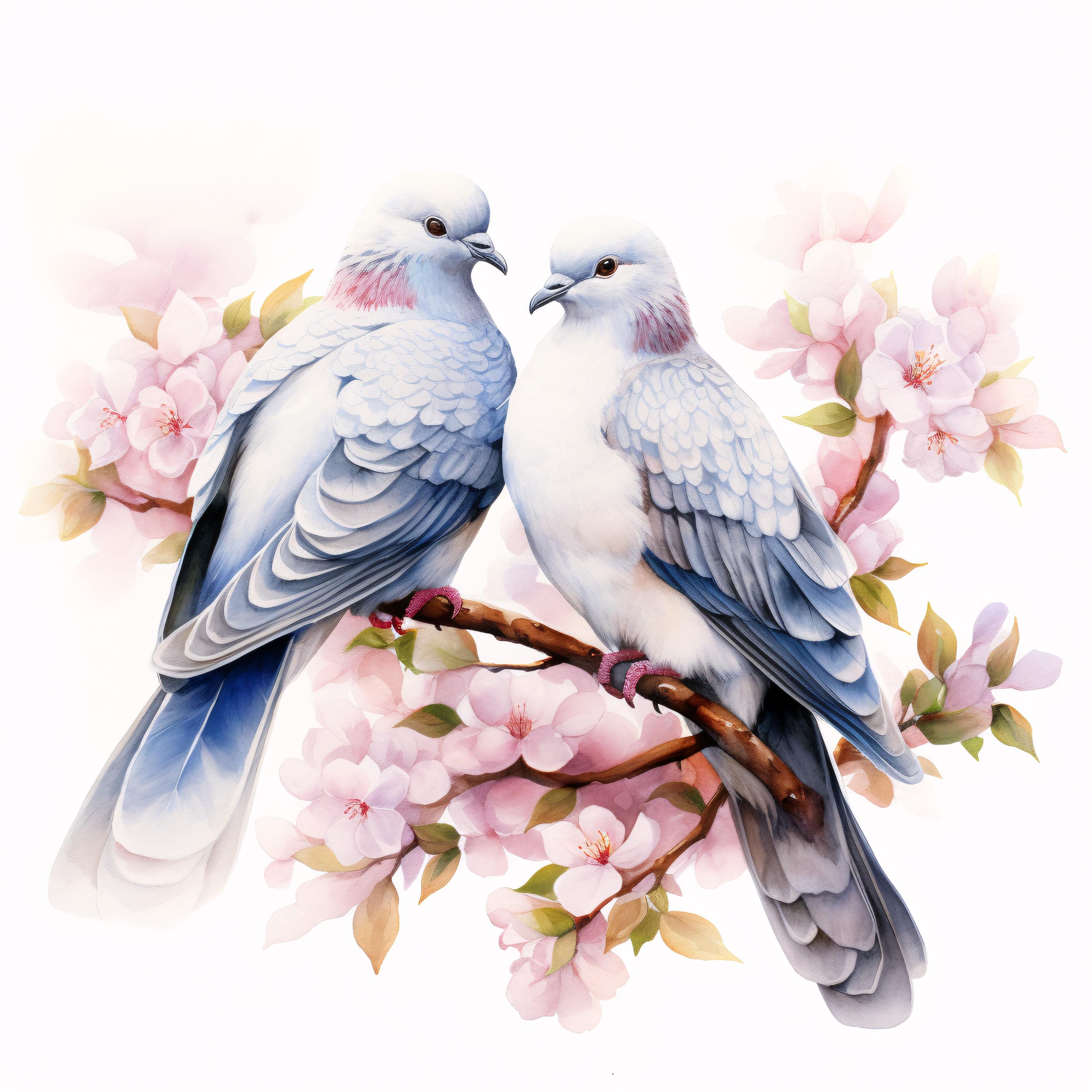 Doves Couple Clipart, Love Bird Images, 10 Watercolor Clip Art, Printable JPGs, Instant Download, Commercial Use, Paper craft