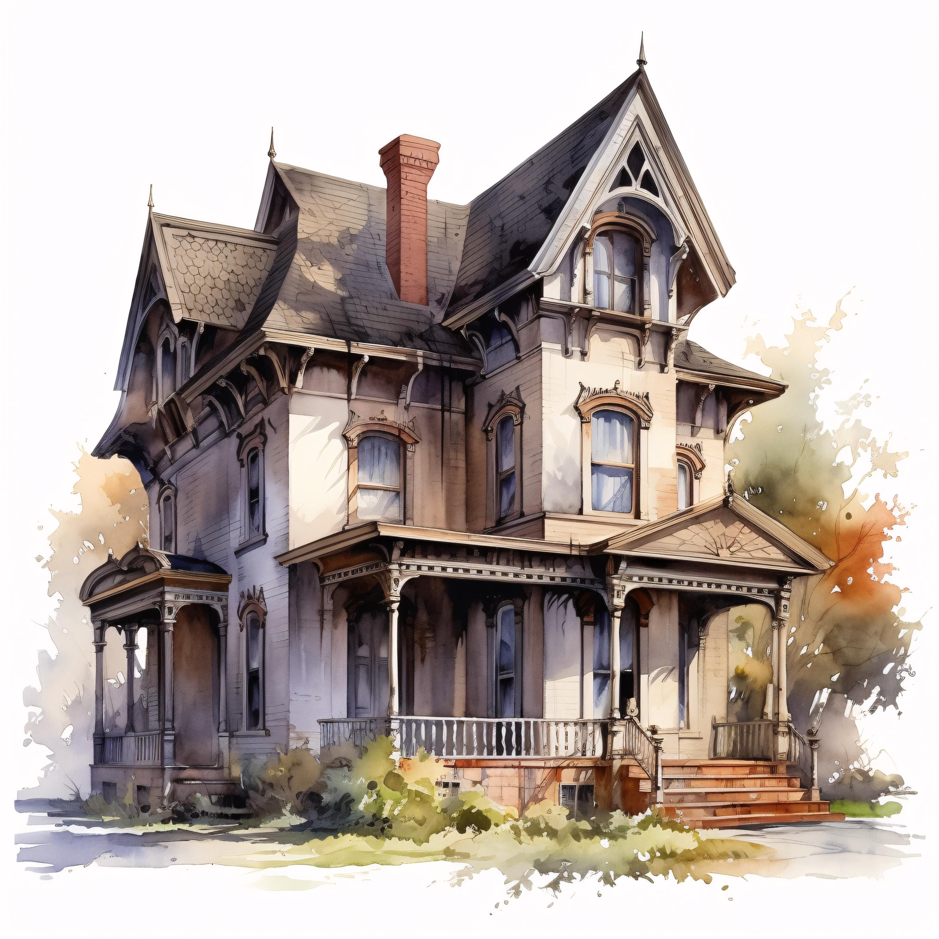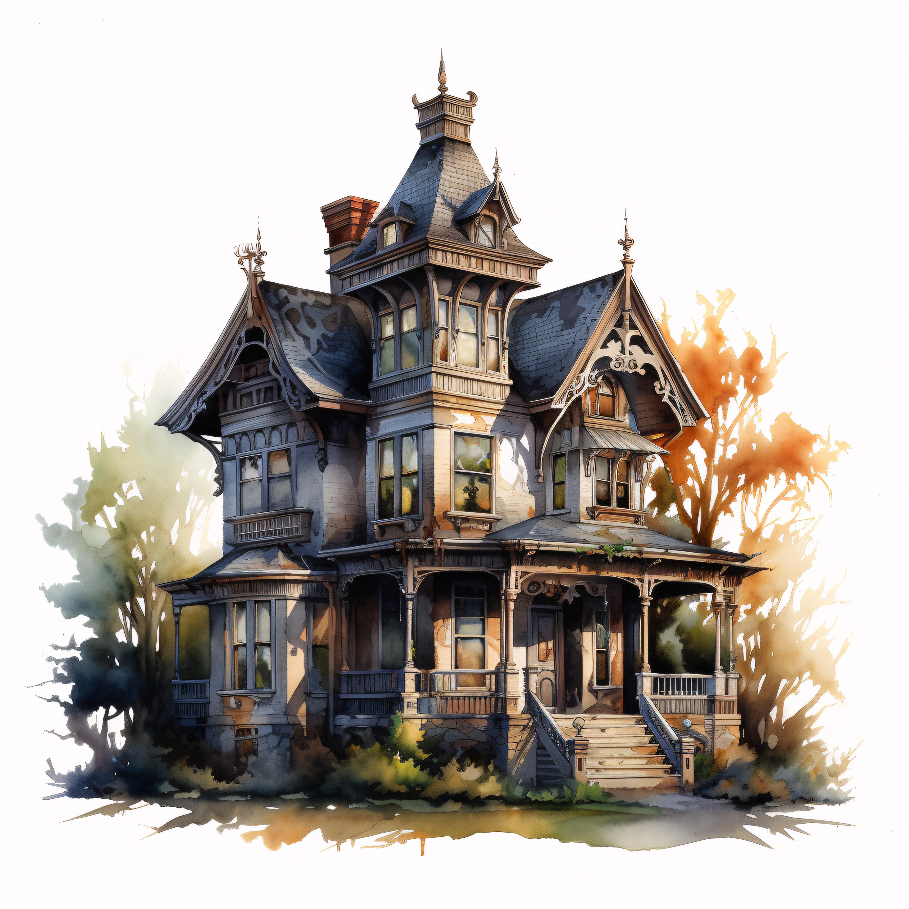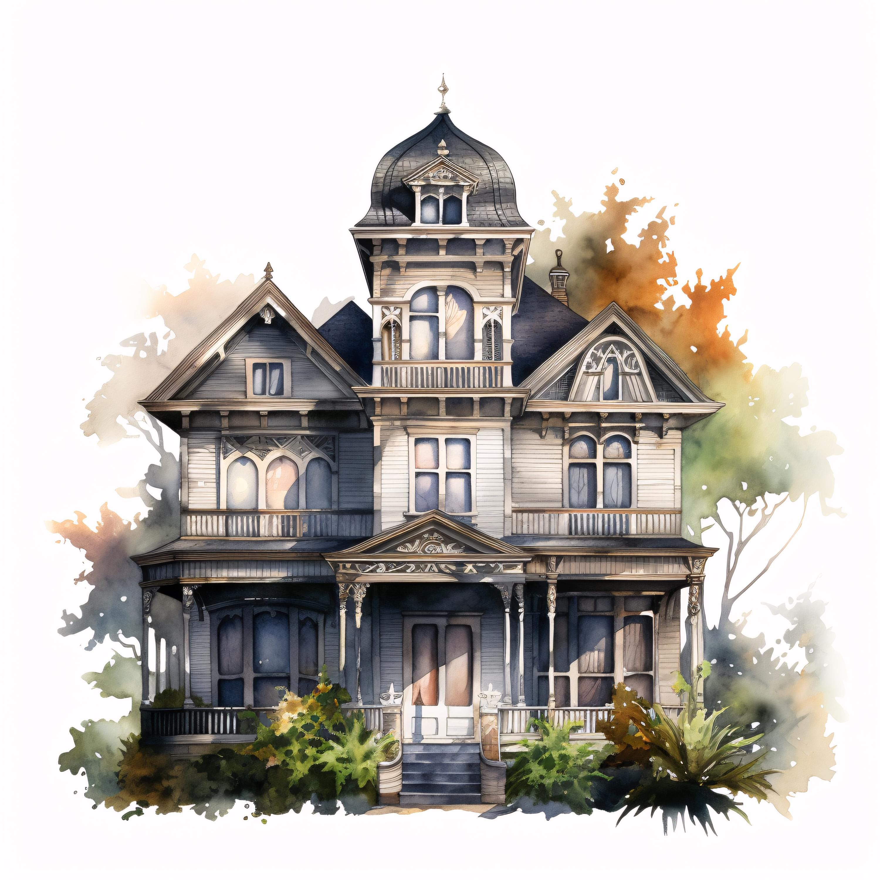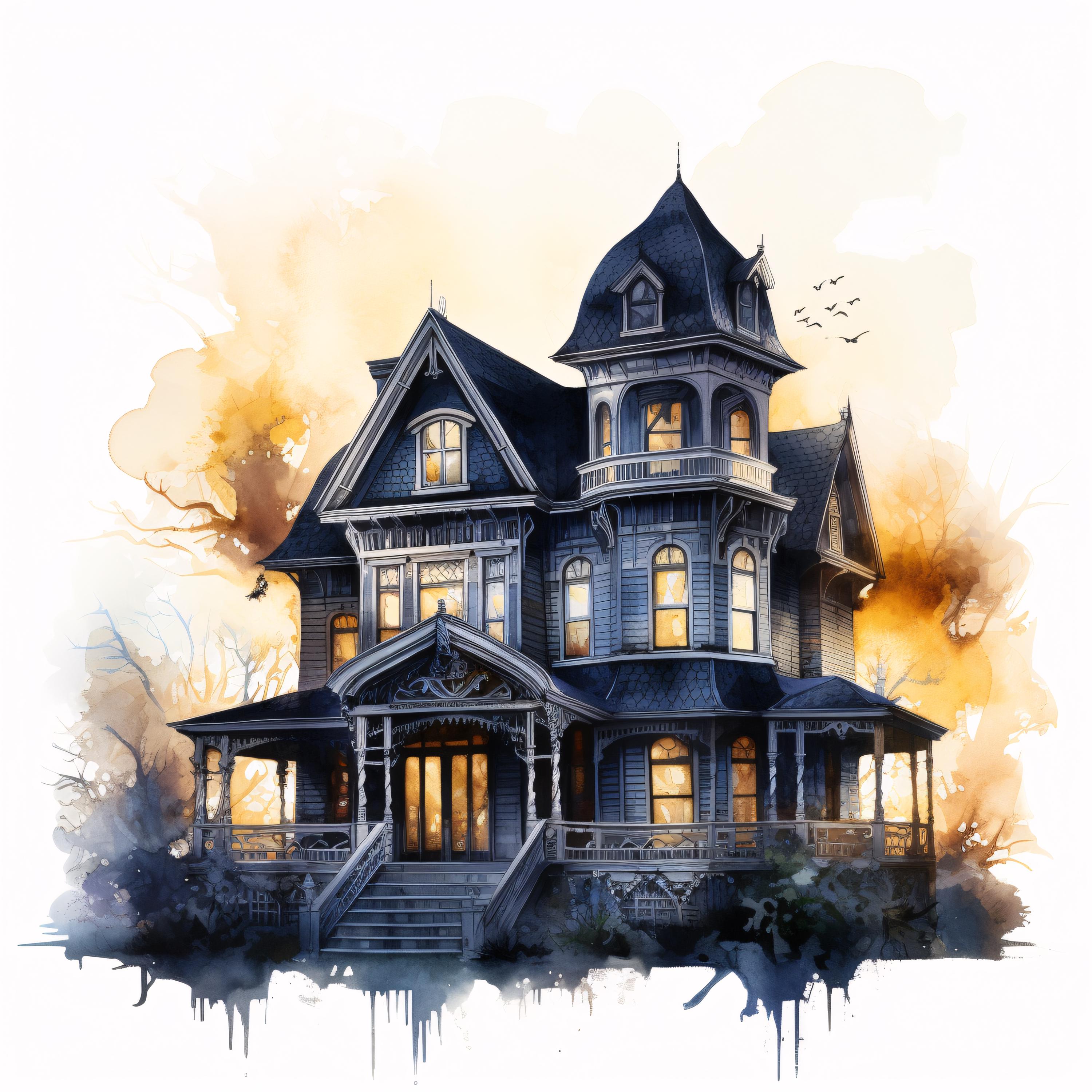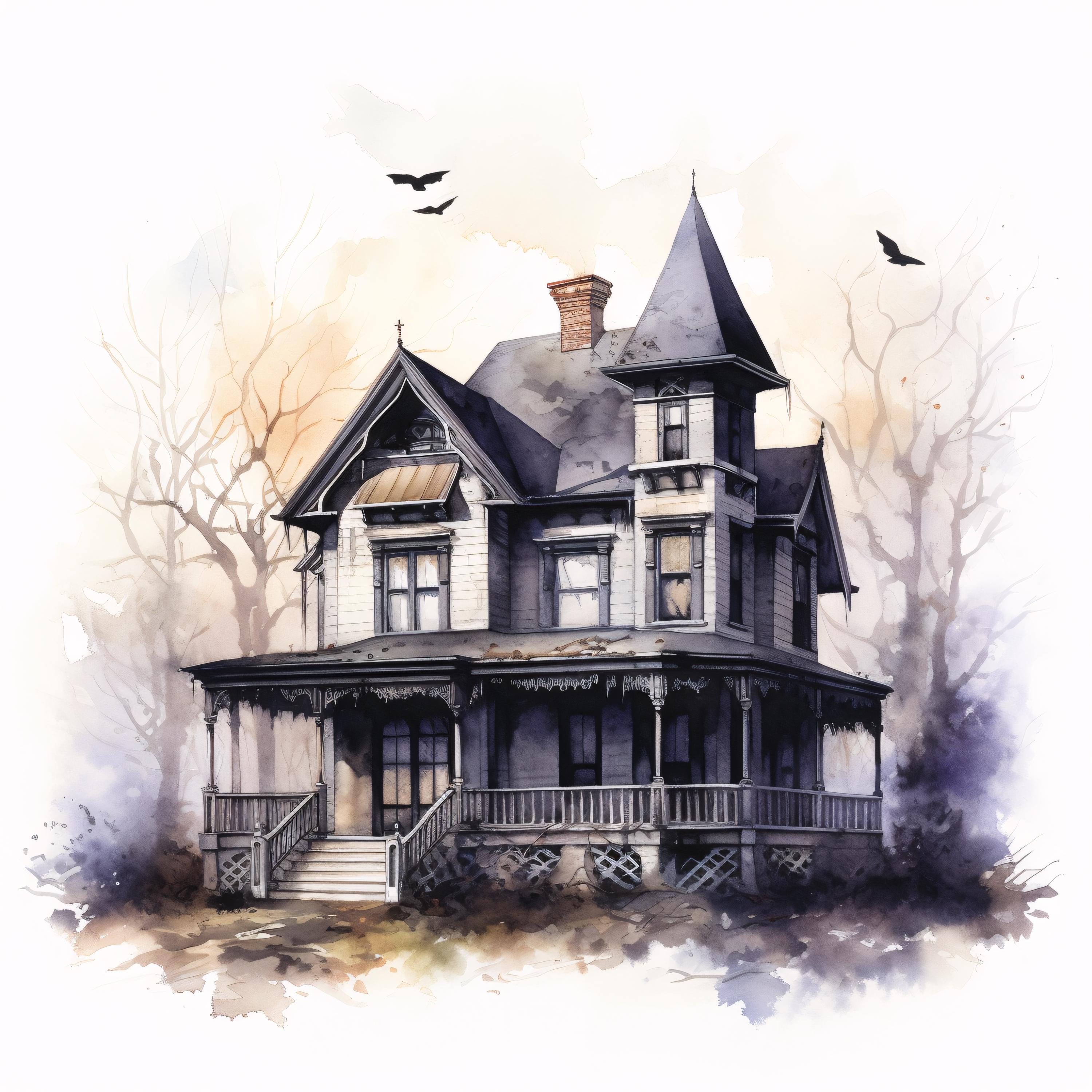 Haunted House Clipart, Halloween Mansion Images, 10 Watercolor Clip Art, Printable JPGs, Instant Download, Commercial Use, Paper craft