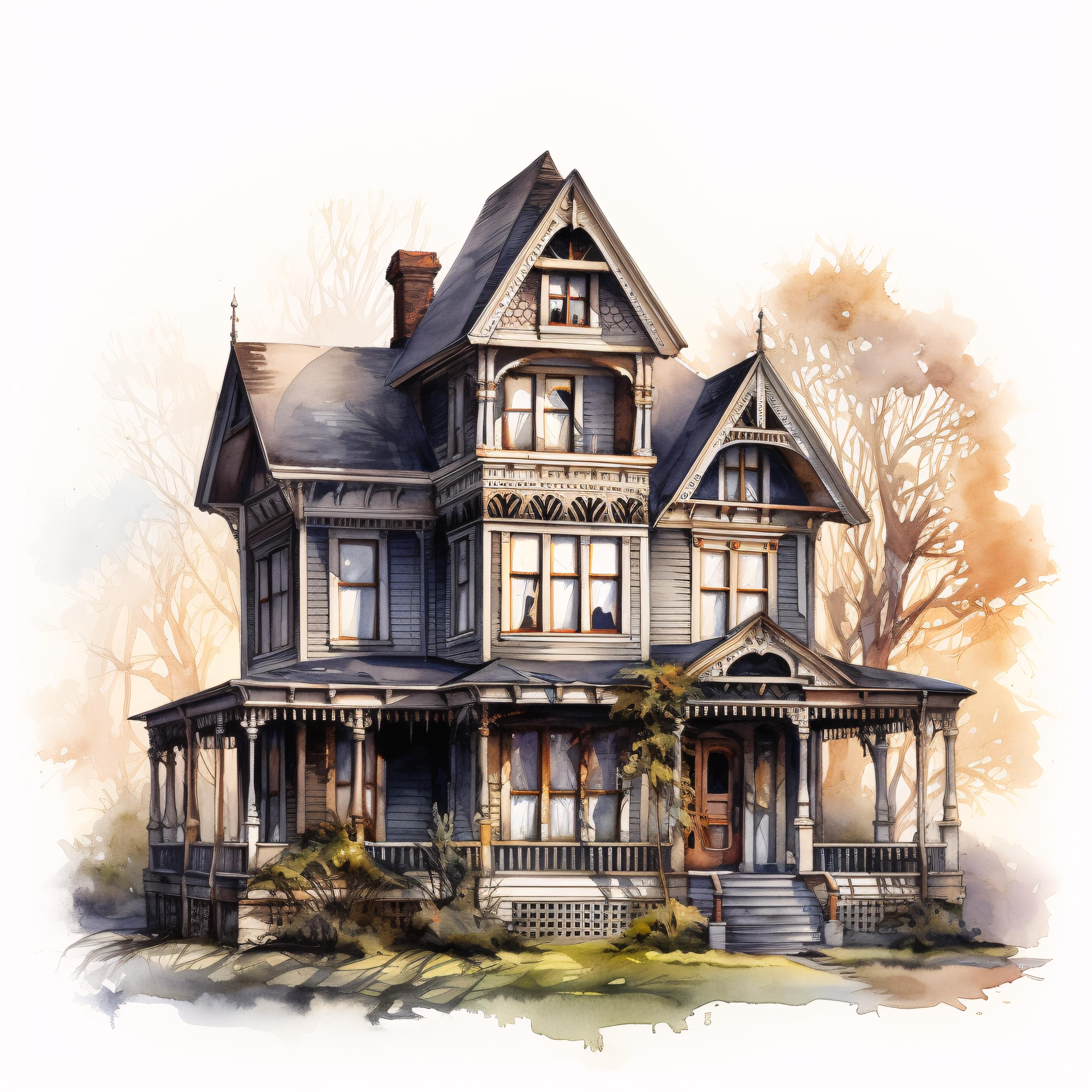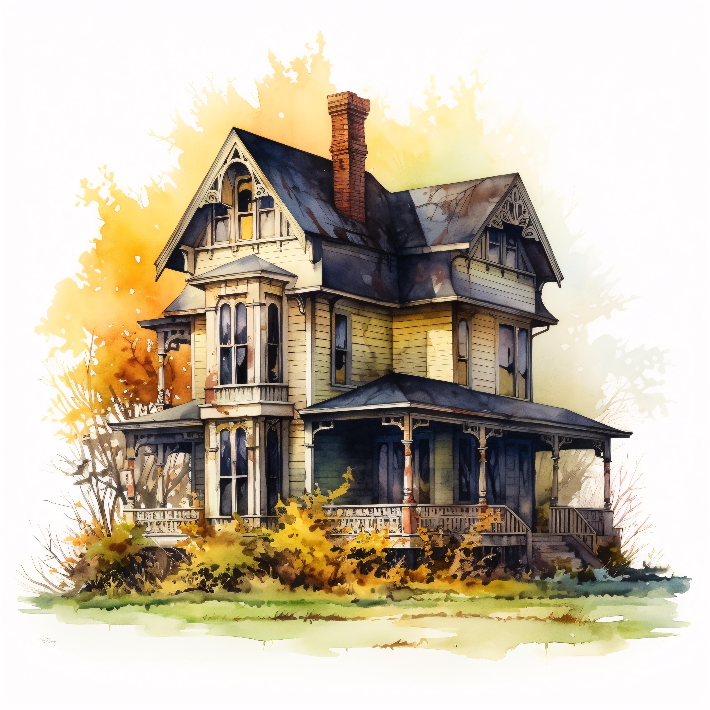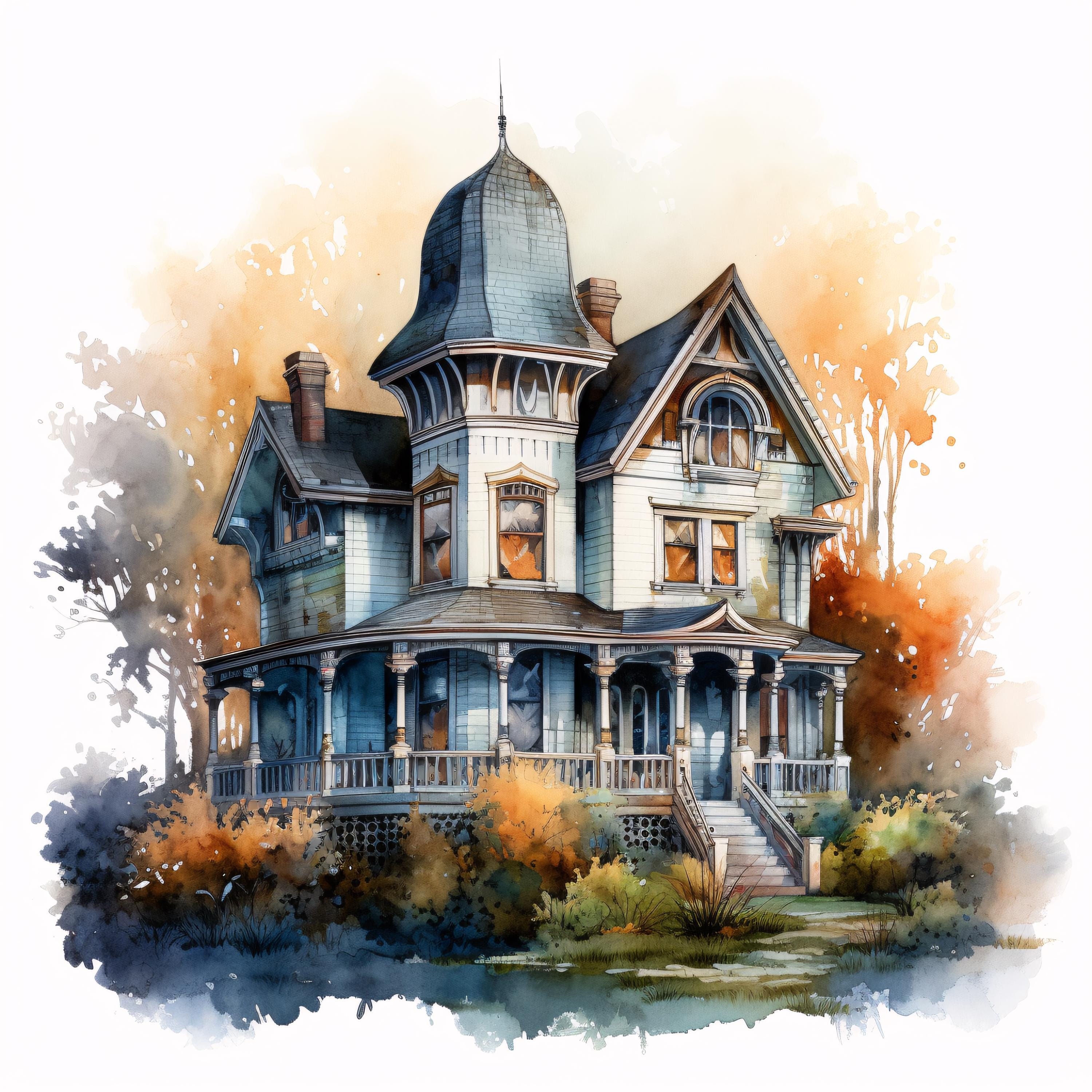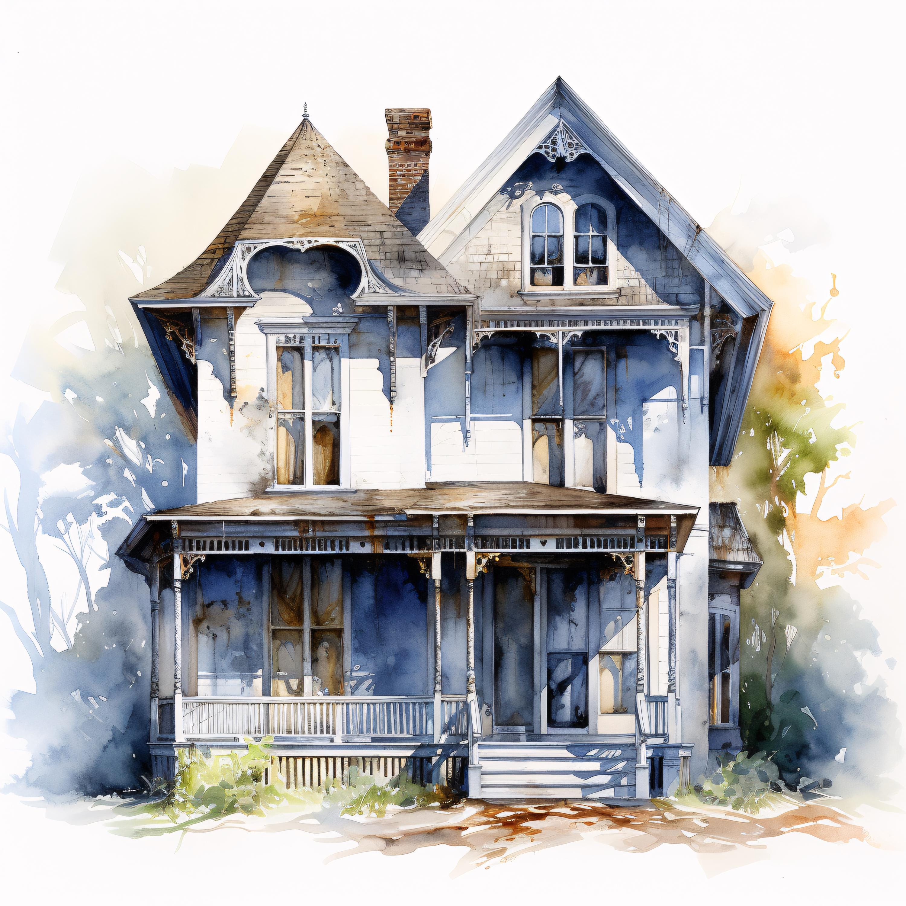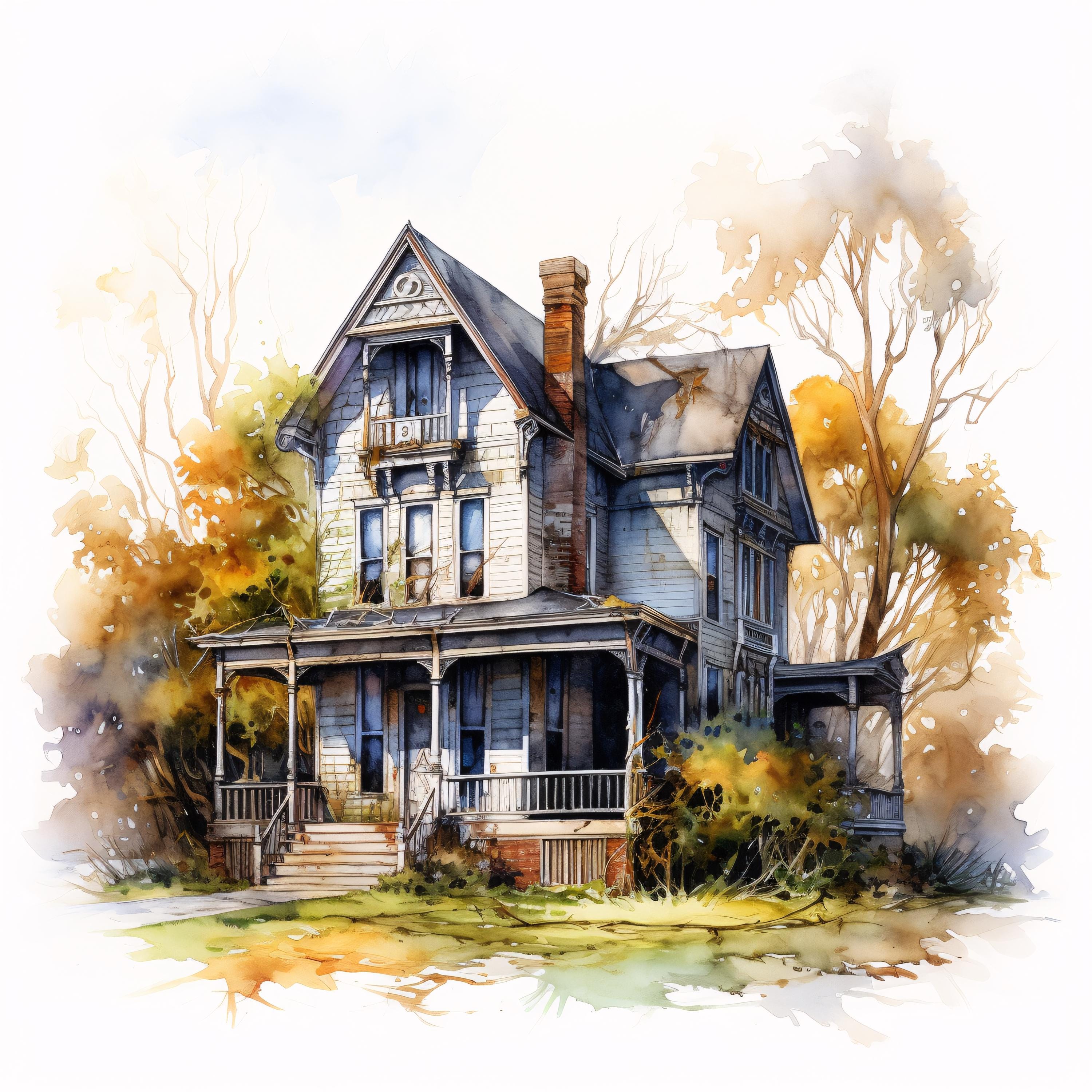 Haunted House Clipart, Halloween Mansion Images, 10 Watercolor Clip Art, Printable JPGs, Instant Download, Commercial Use, Paper craft