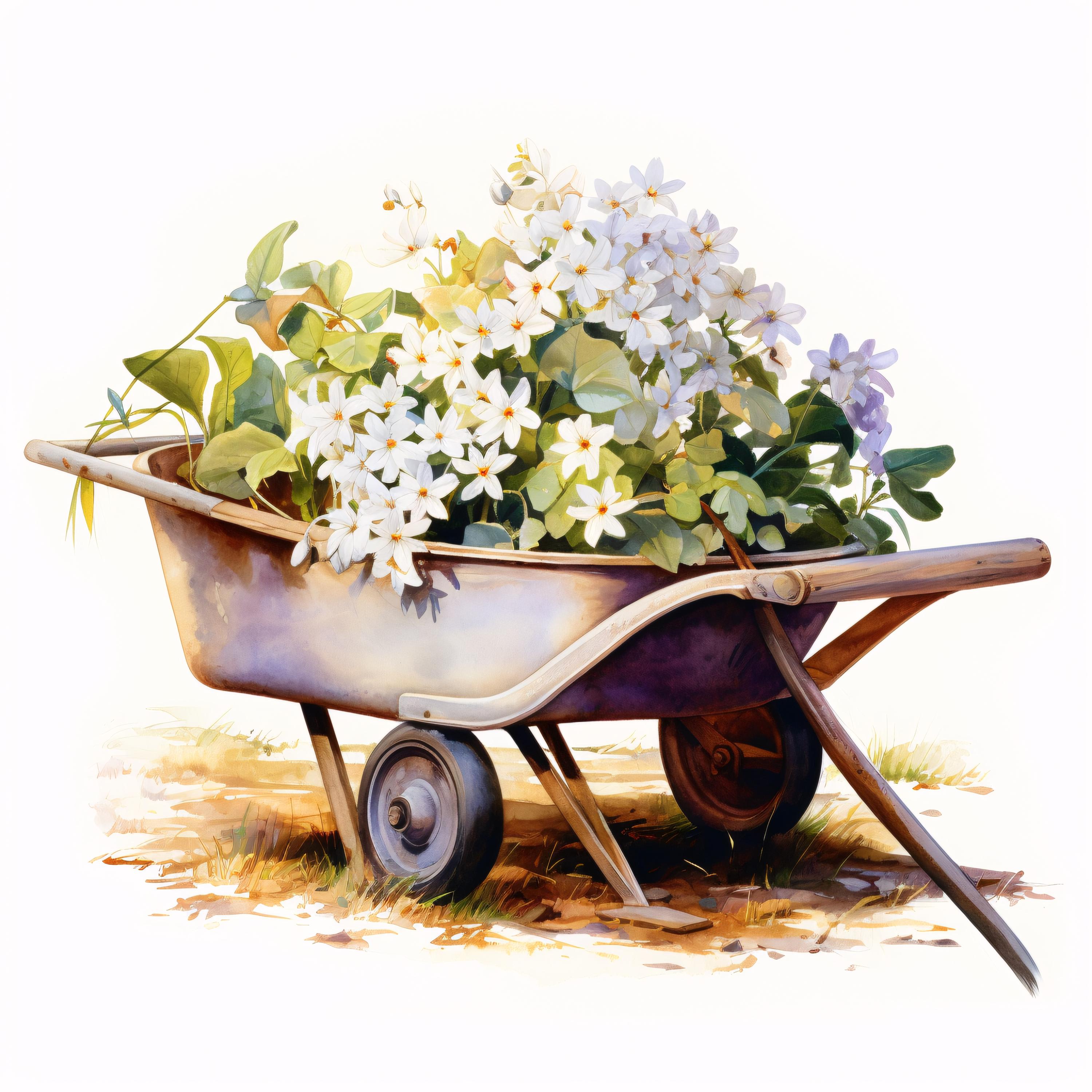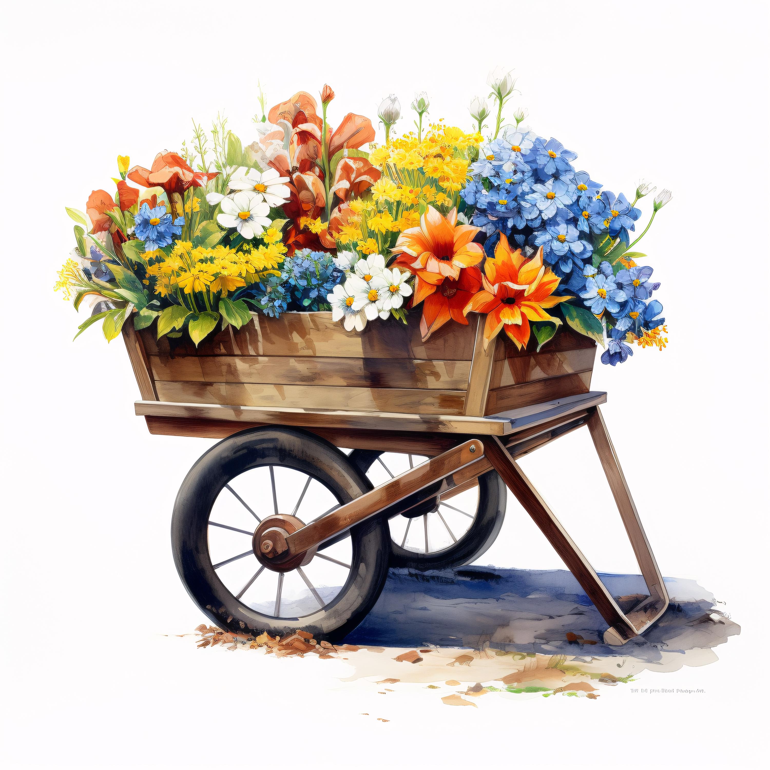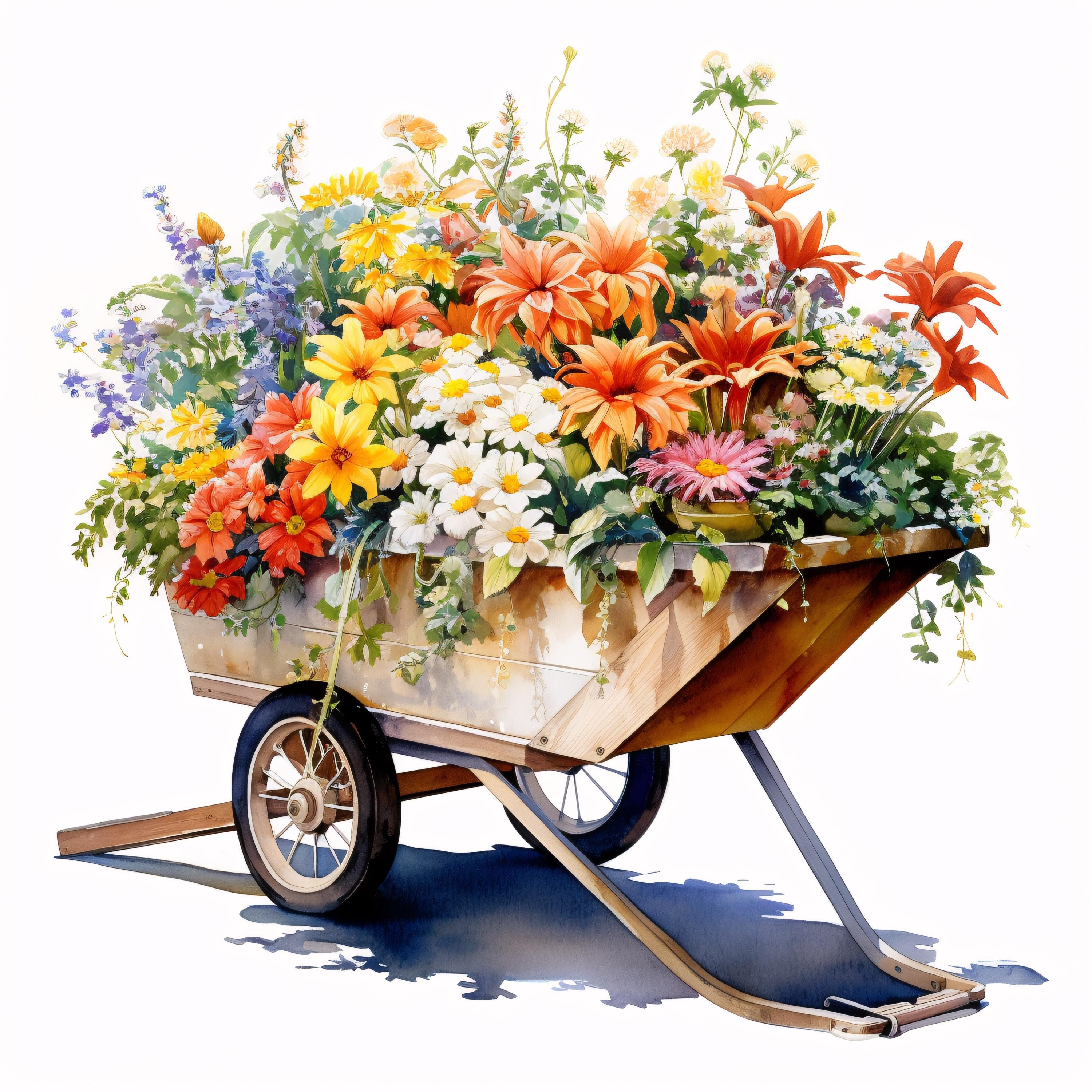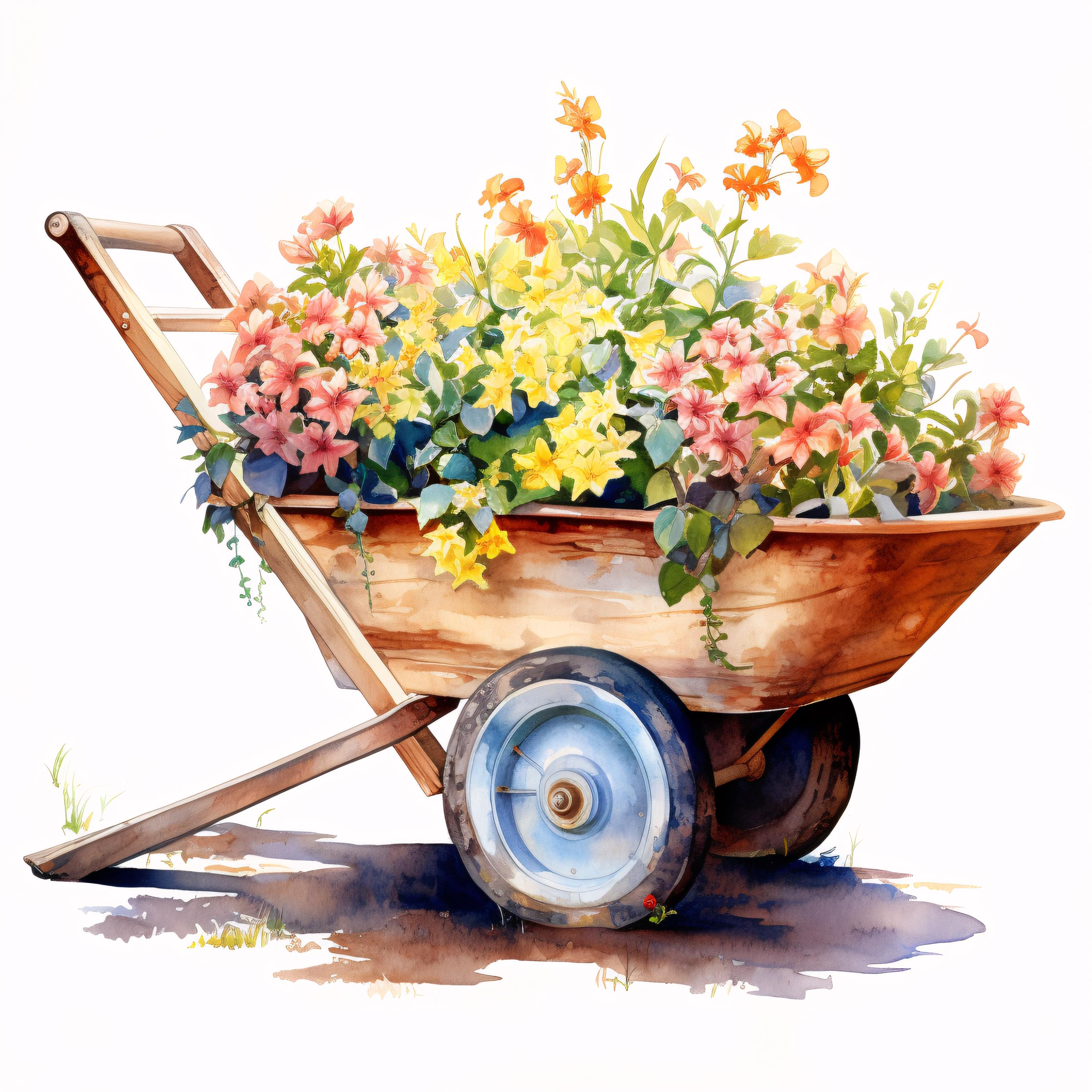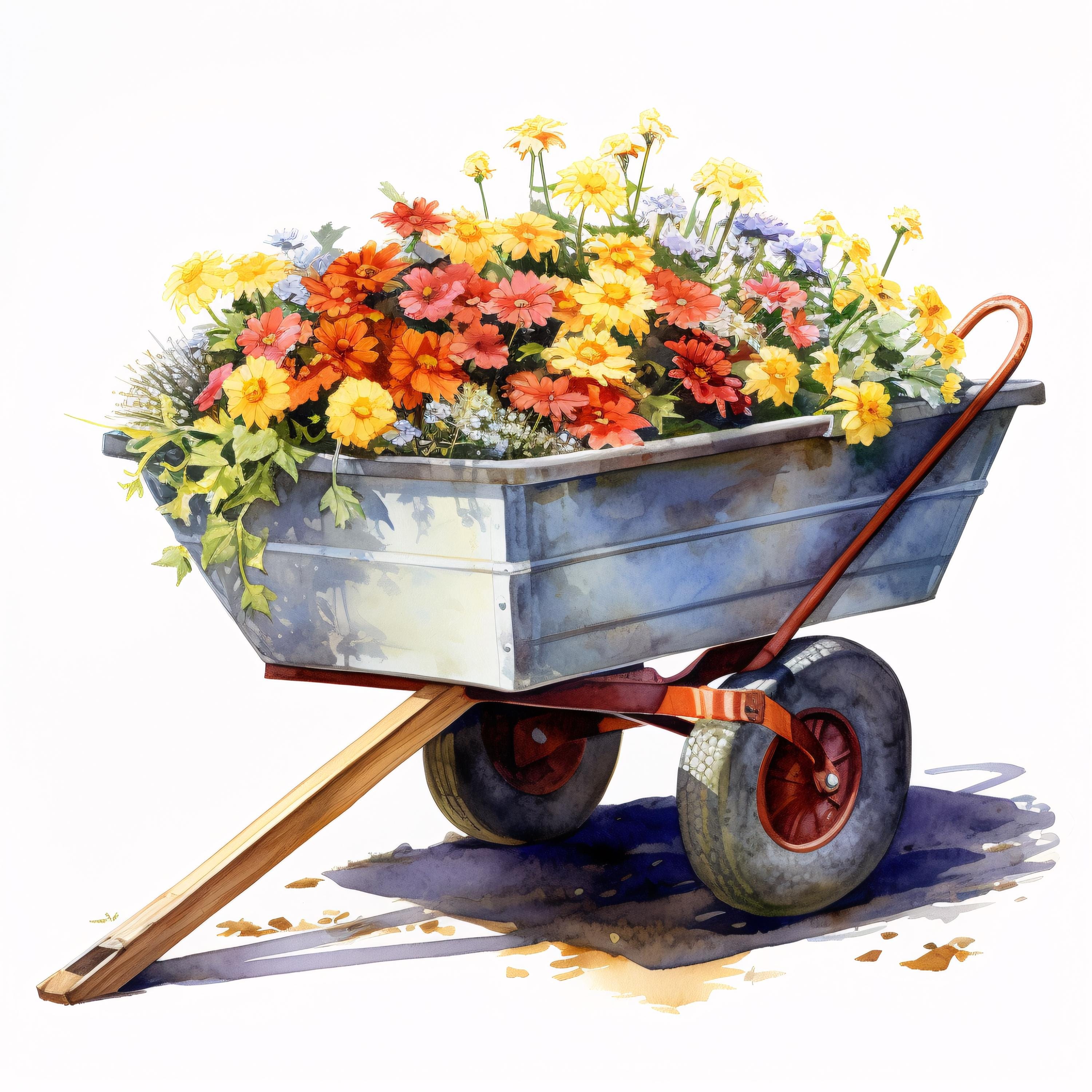 Flower Wheelbarrow Clipart, Garden Flower Cart Images, 10 Watercolor Clip Art, Printable JPGs, Instant Download, Commercial Use, Paper craft