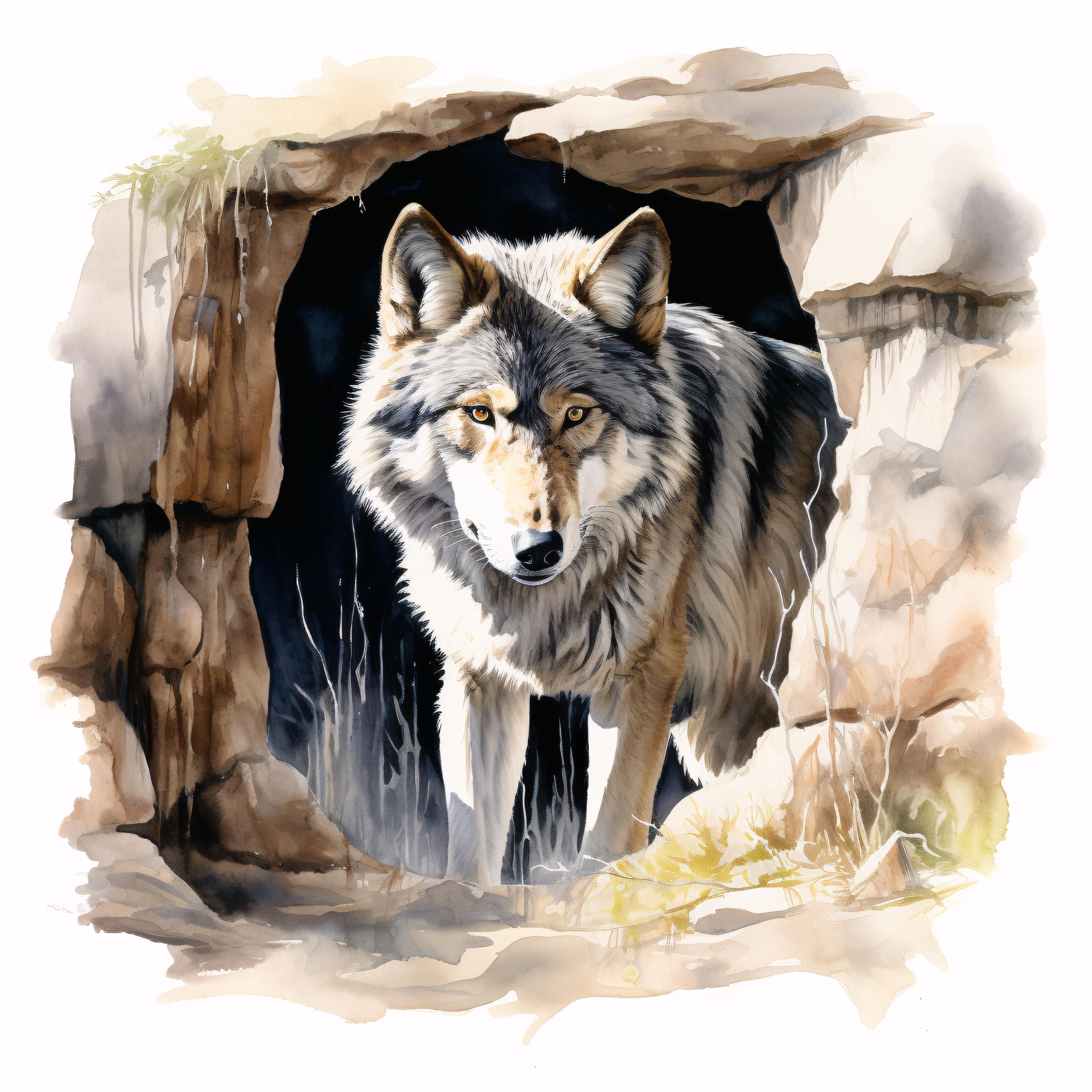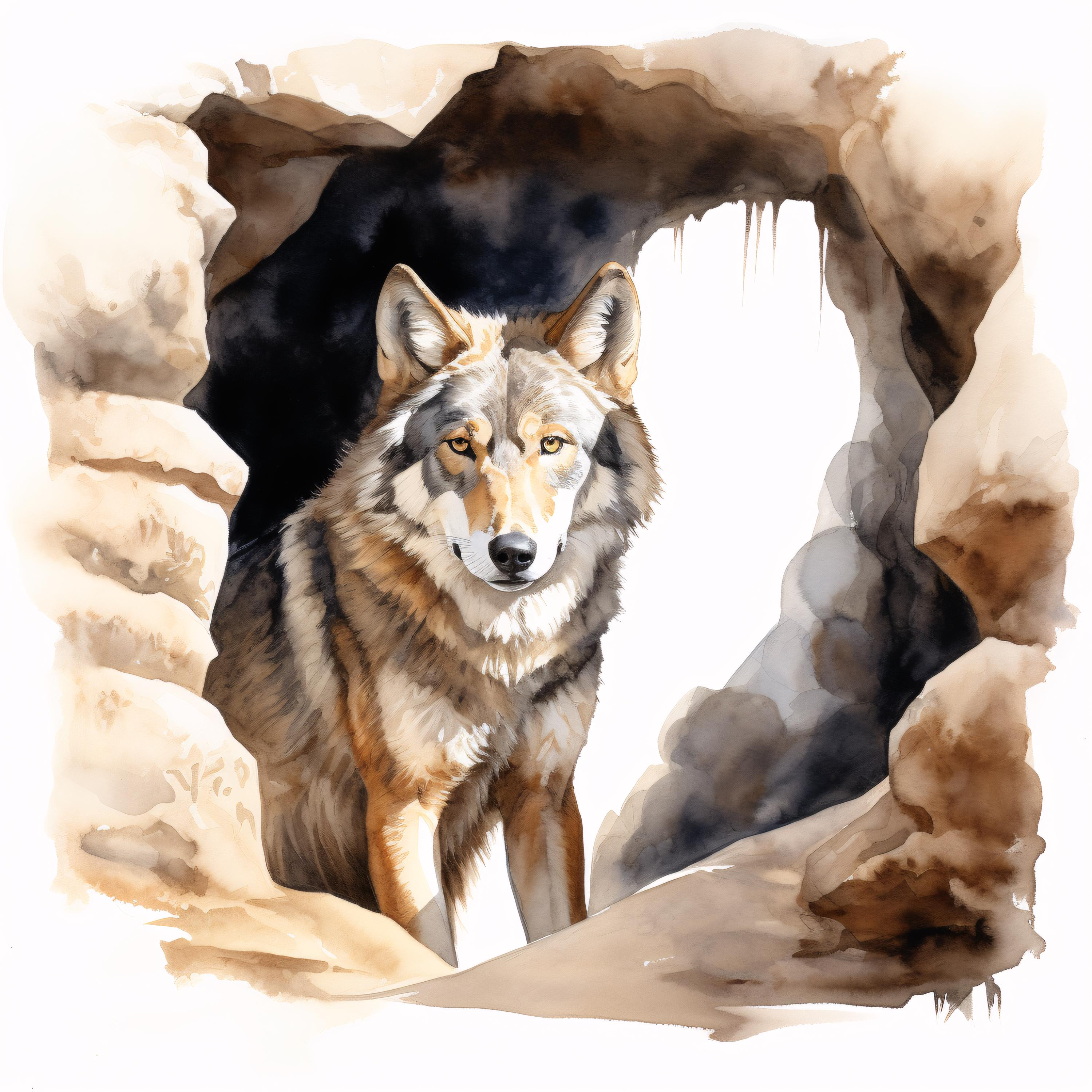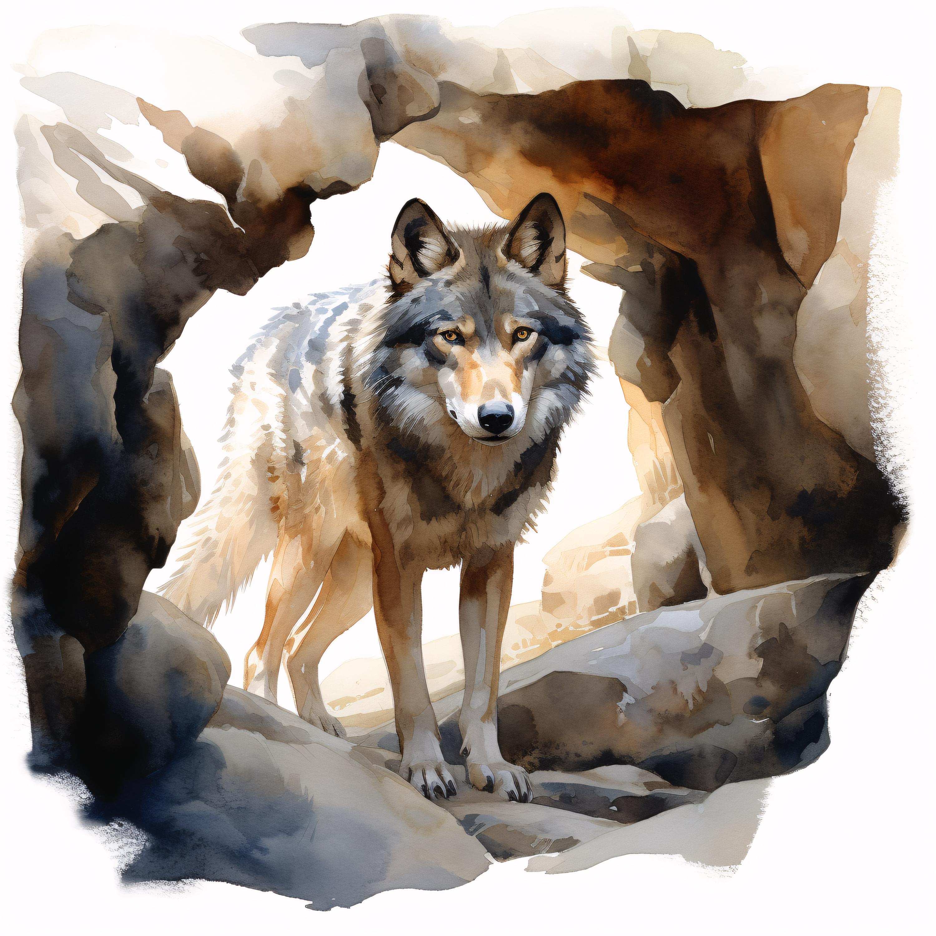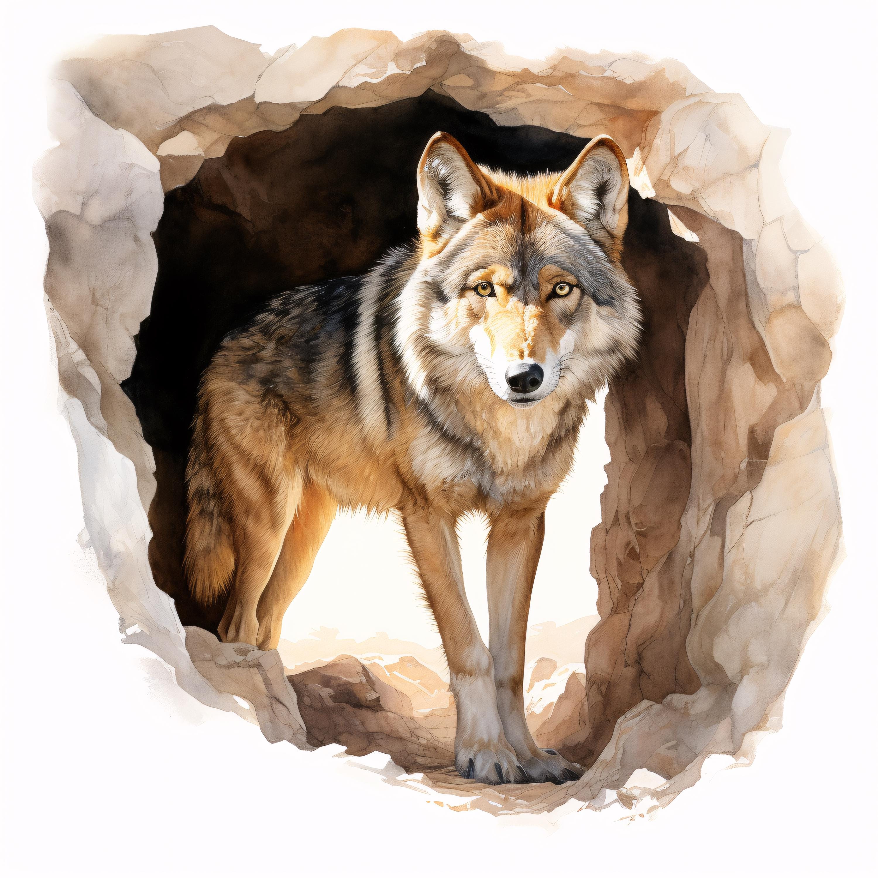 Wolf in Cave Clipart, Wild Animal Images, 10 Watercolor Clip Art, Printable JPGs, Instant Download, Commercial Use, Paper craft
