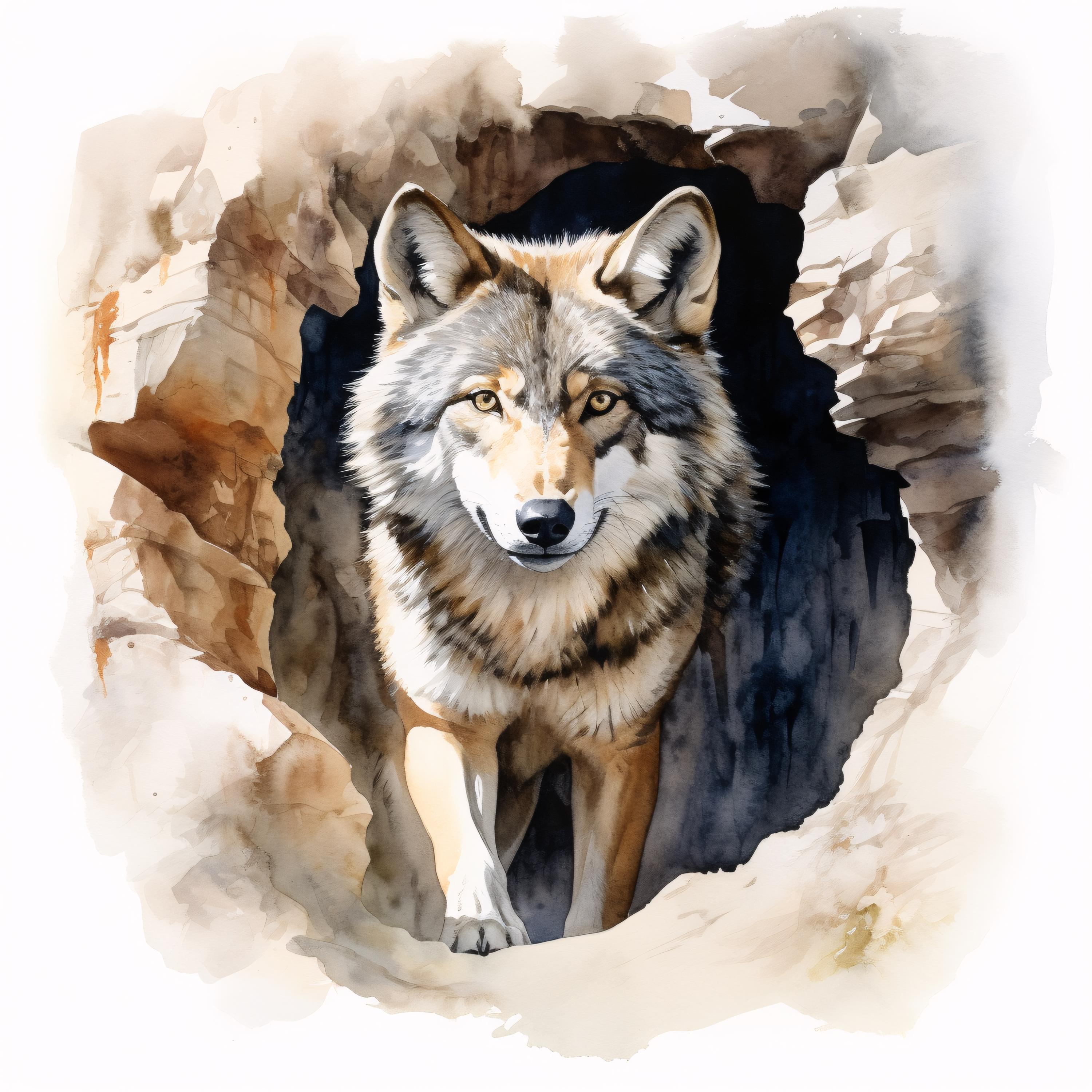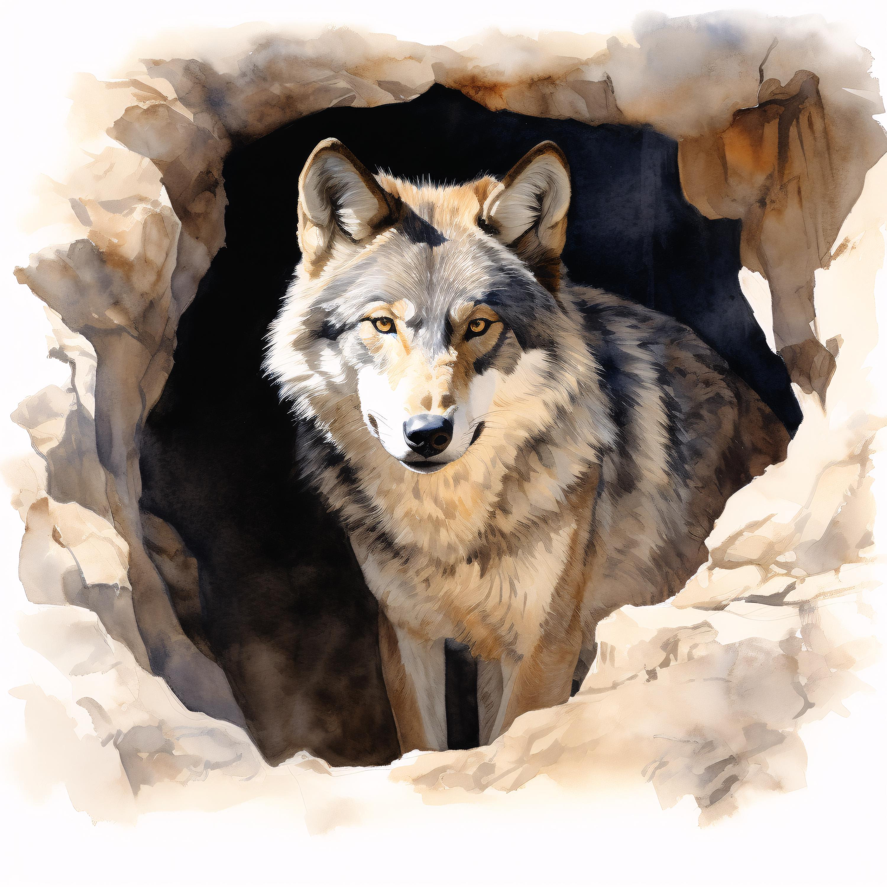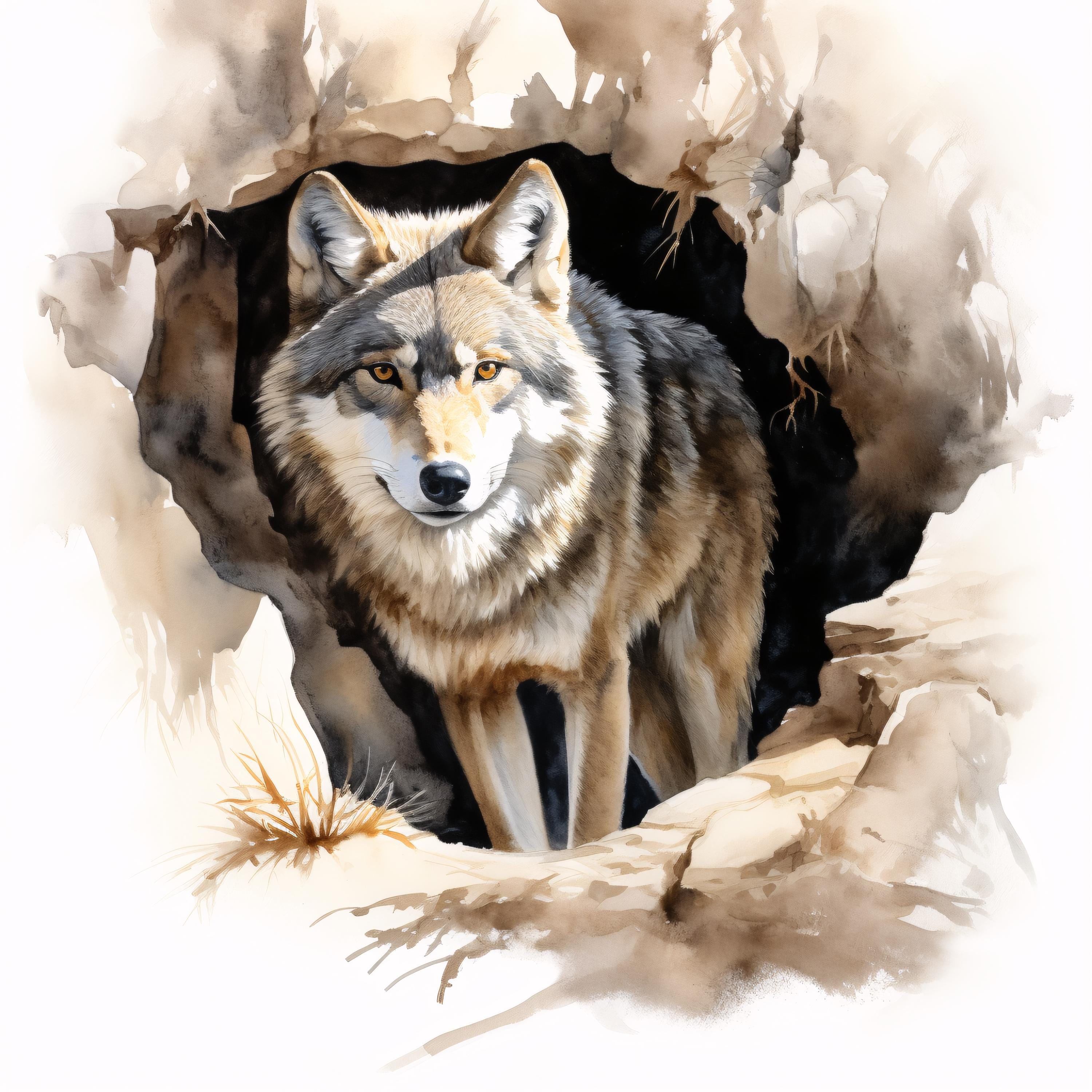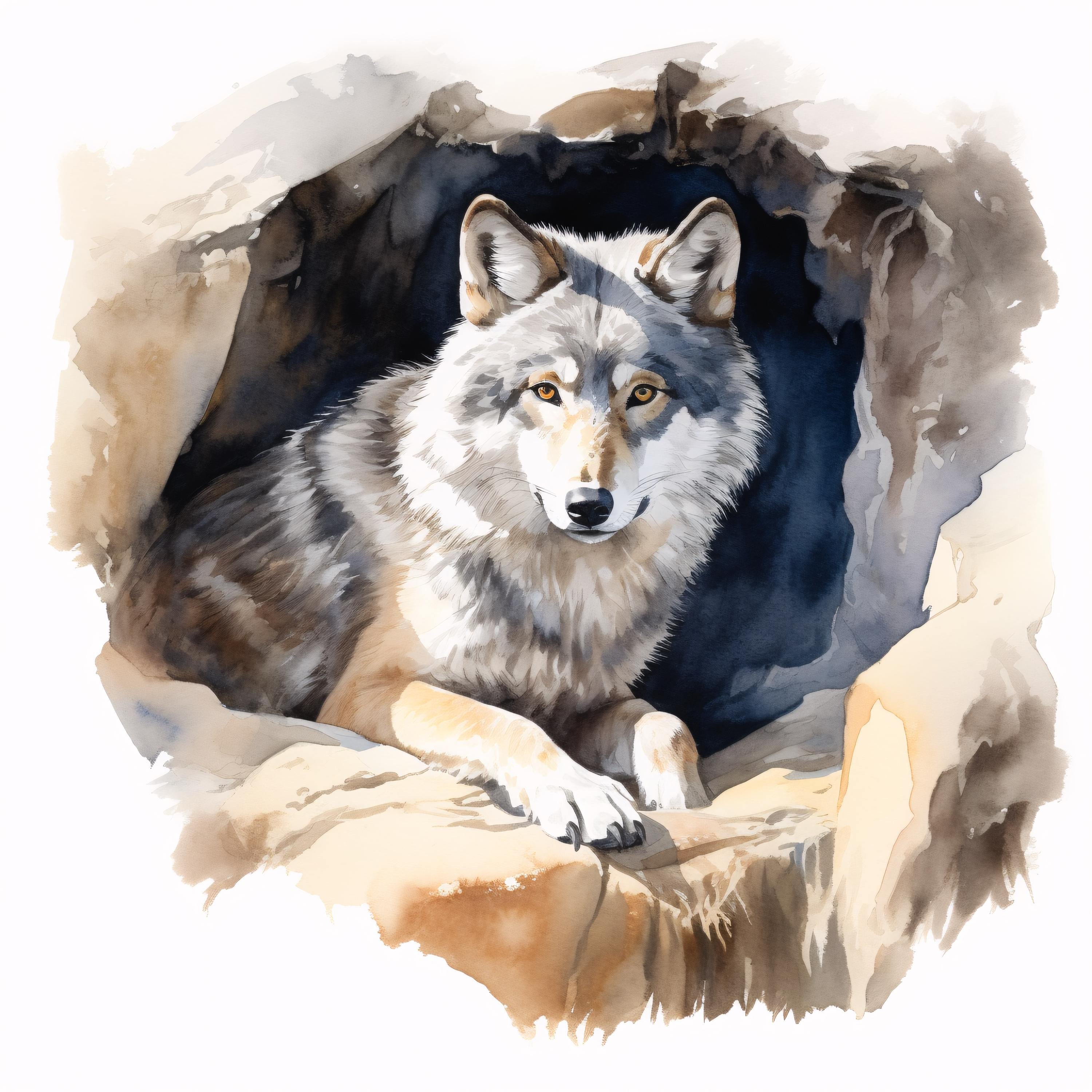 Wolf in Cave Clipart, Wild Animal Images, 10 Watercolor Clip Art, Printable JPGs, Instant Download, Commercial Use, Paper craft