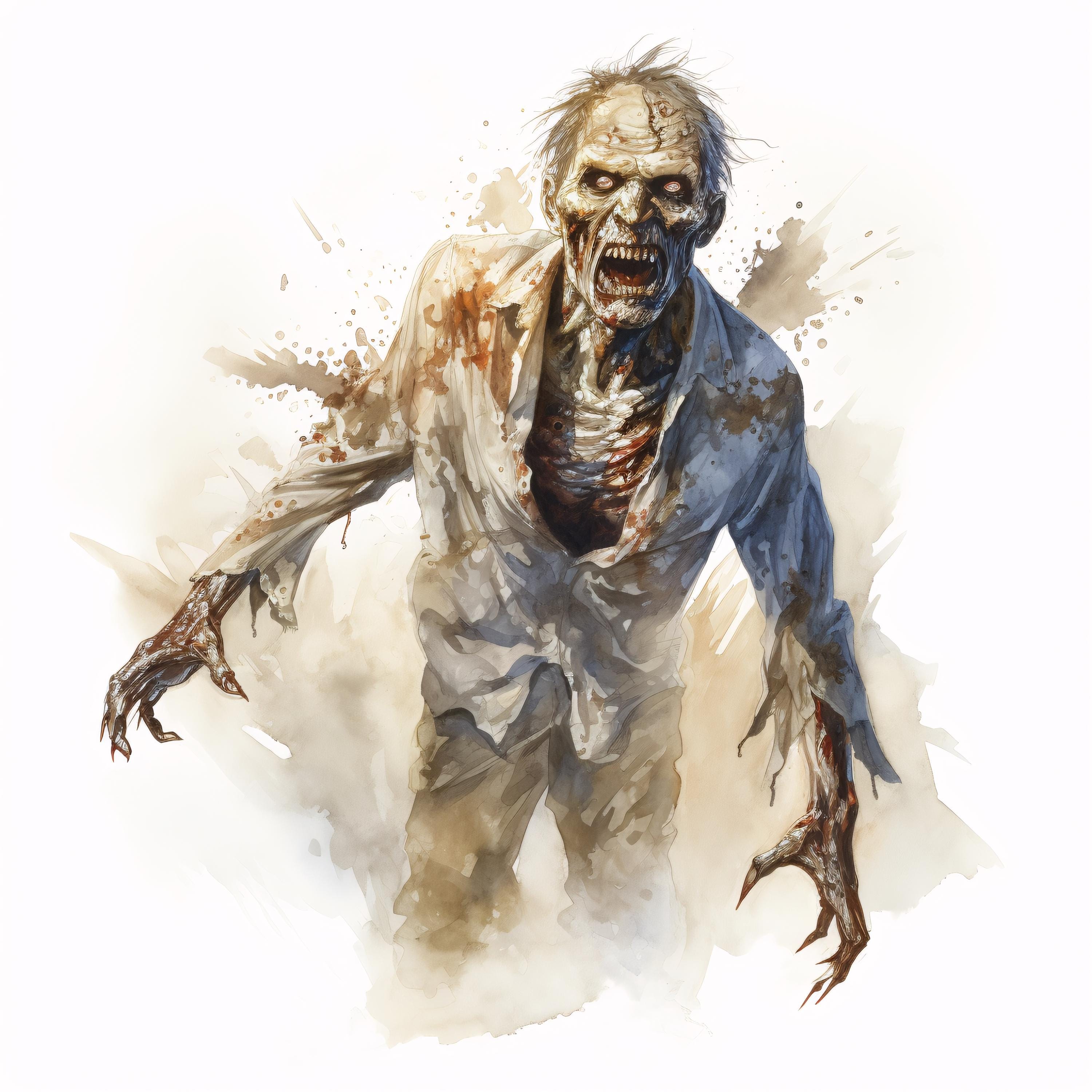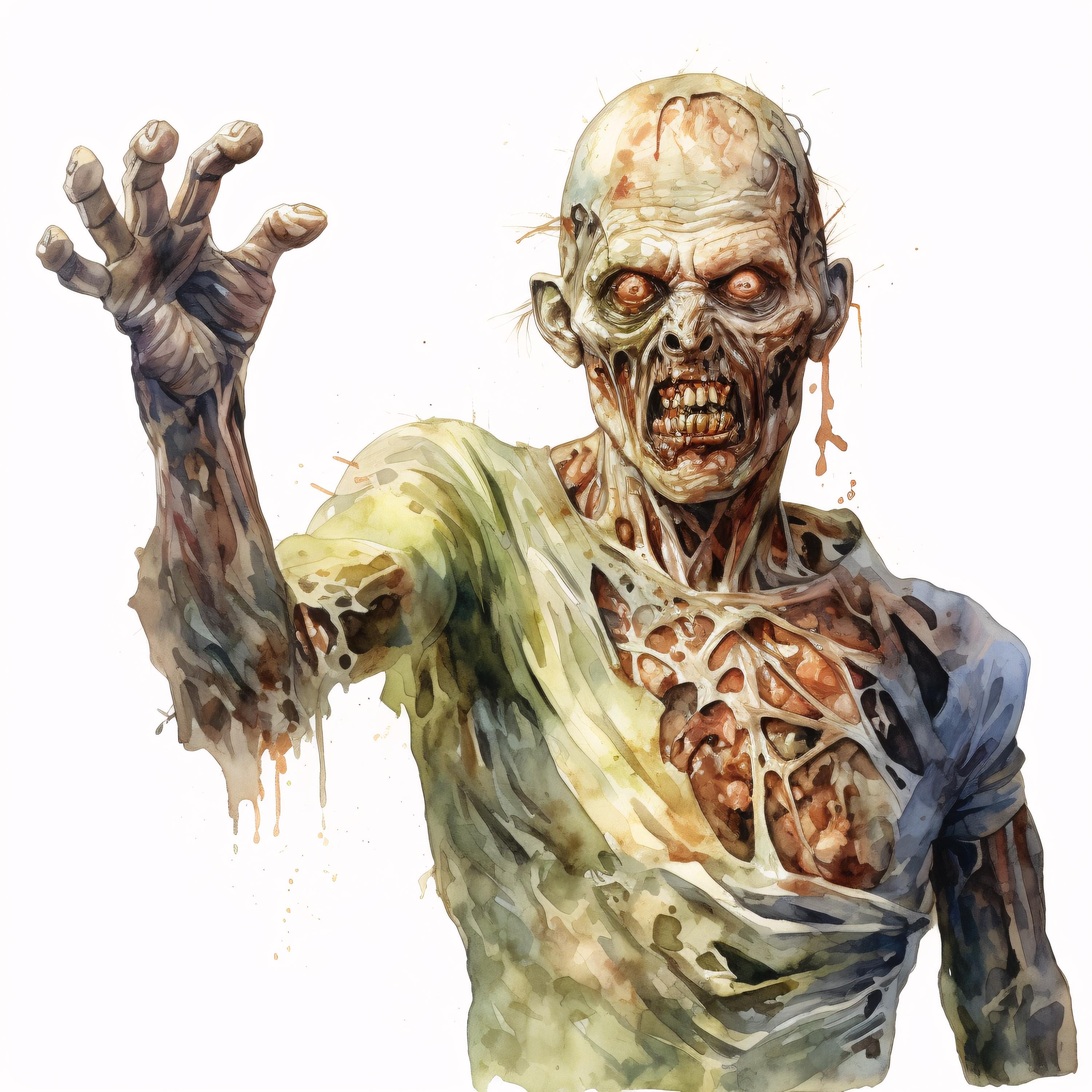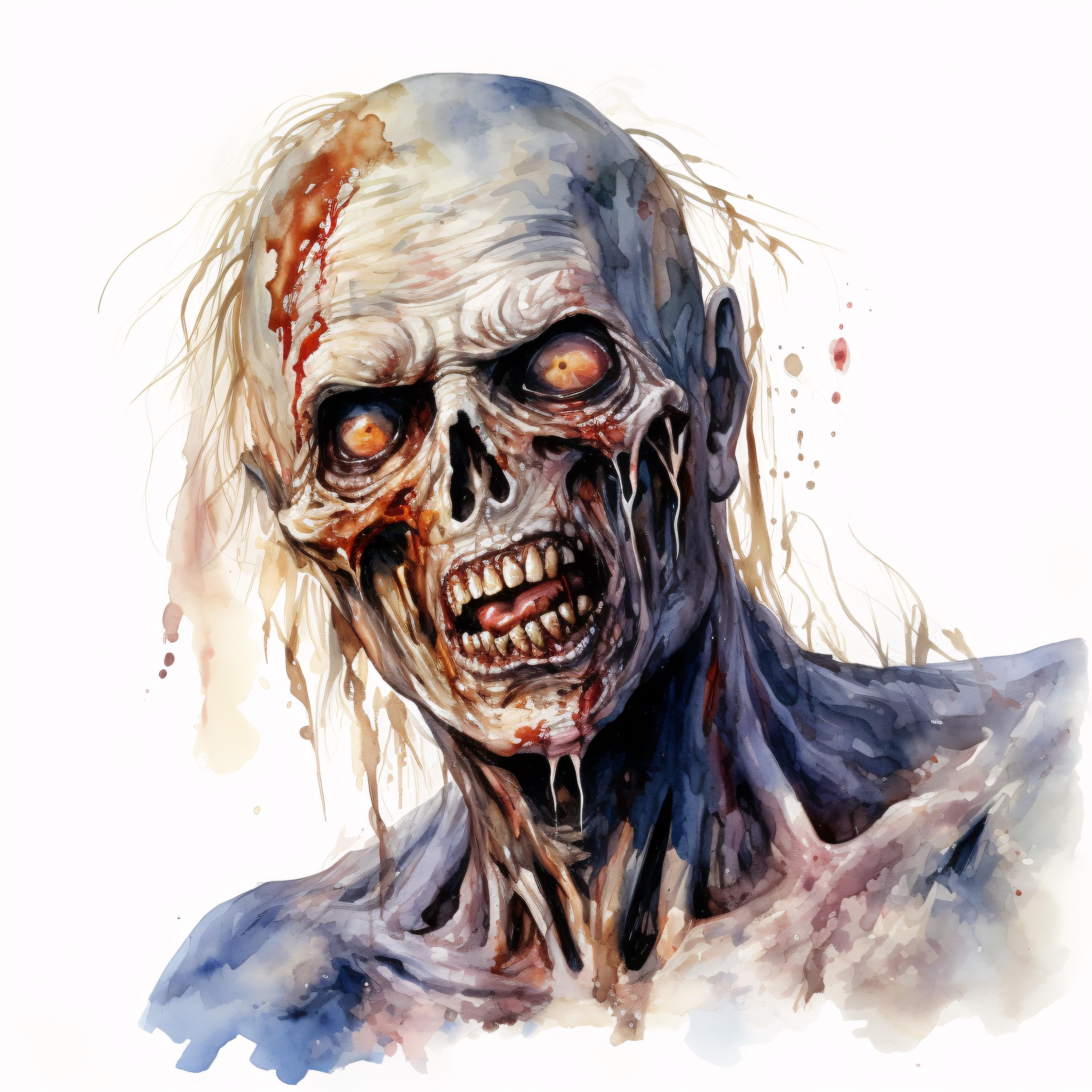 Zombie Clipart, Horror Monster Images, 10 Watercolor Clip Art, Printable JPGs, Instant Download, Commercial Use, Paper craft