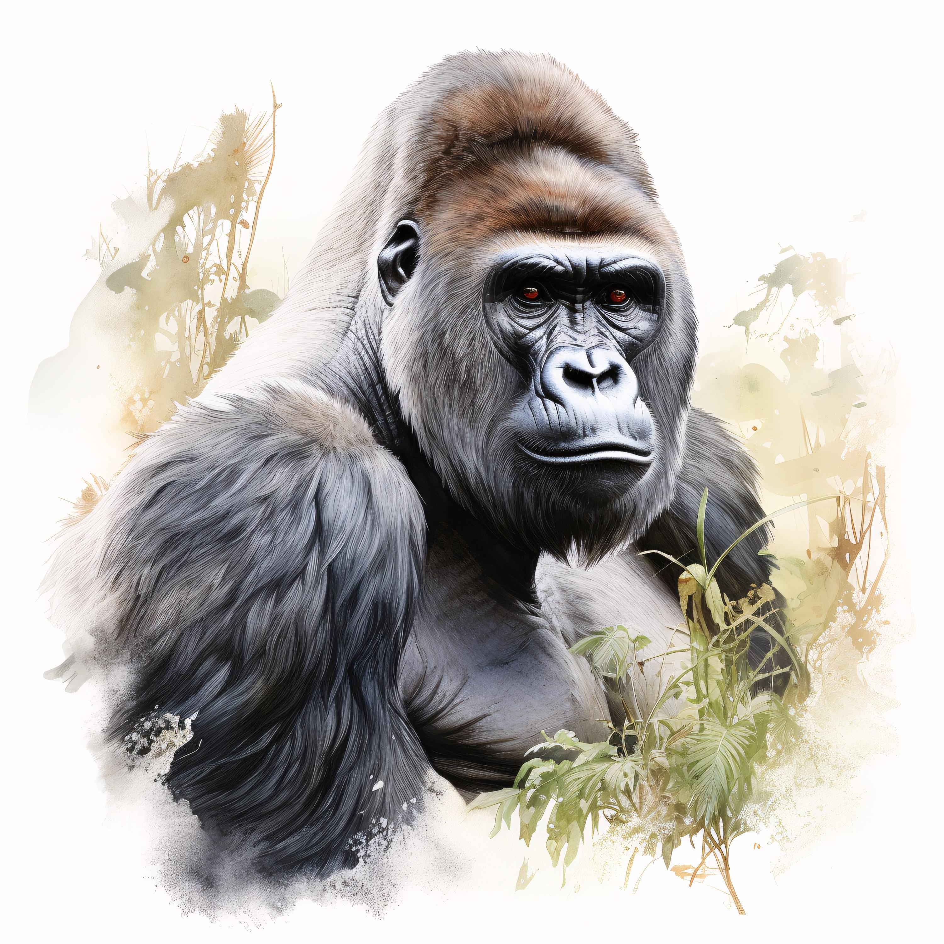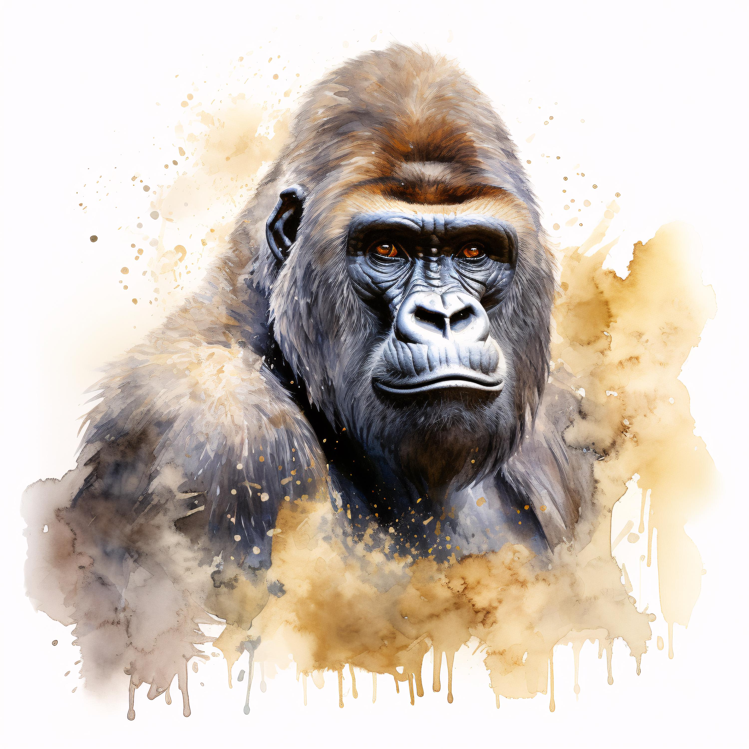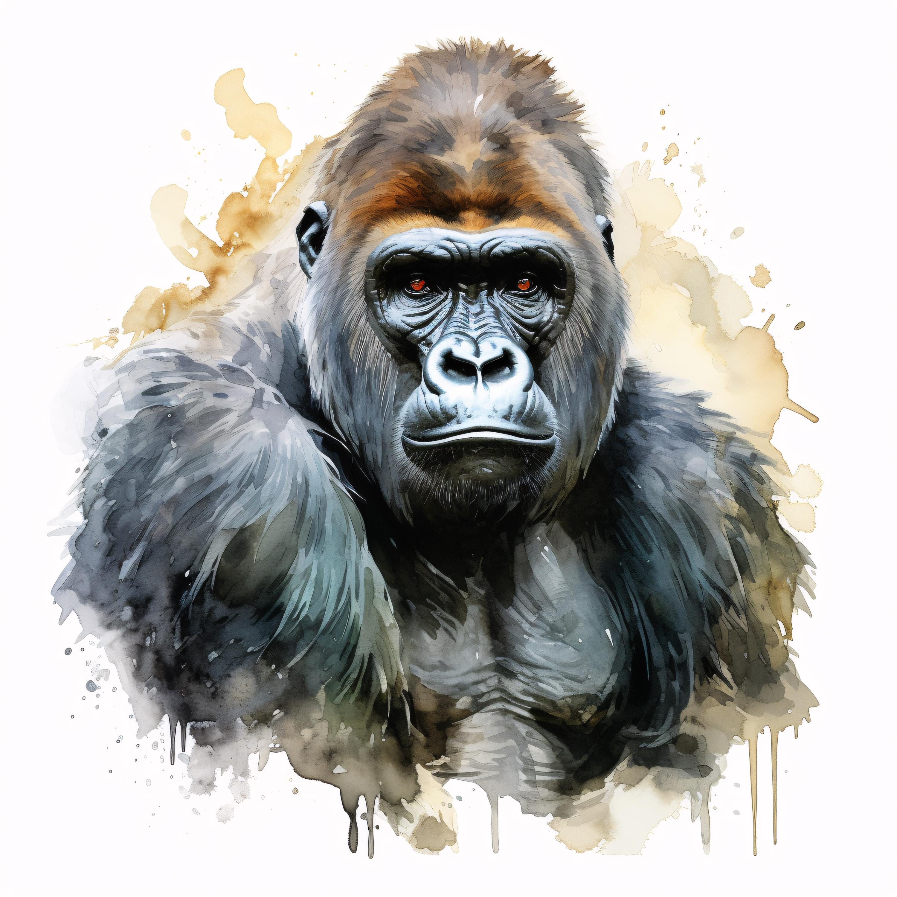 Gorilla Clipart, Wild Animal Images, 10 Watercolor Clip Art, Printable JPGs, Instant Download, Commercial Use, Paper craft