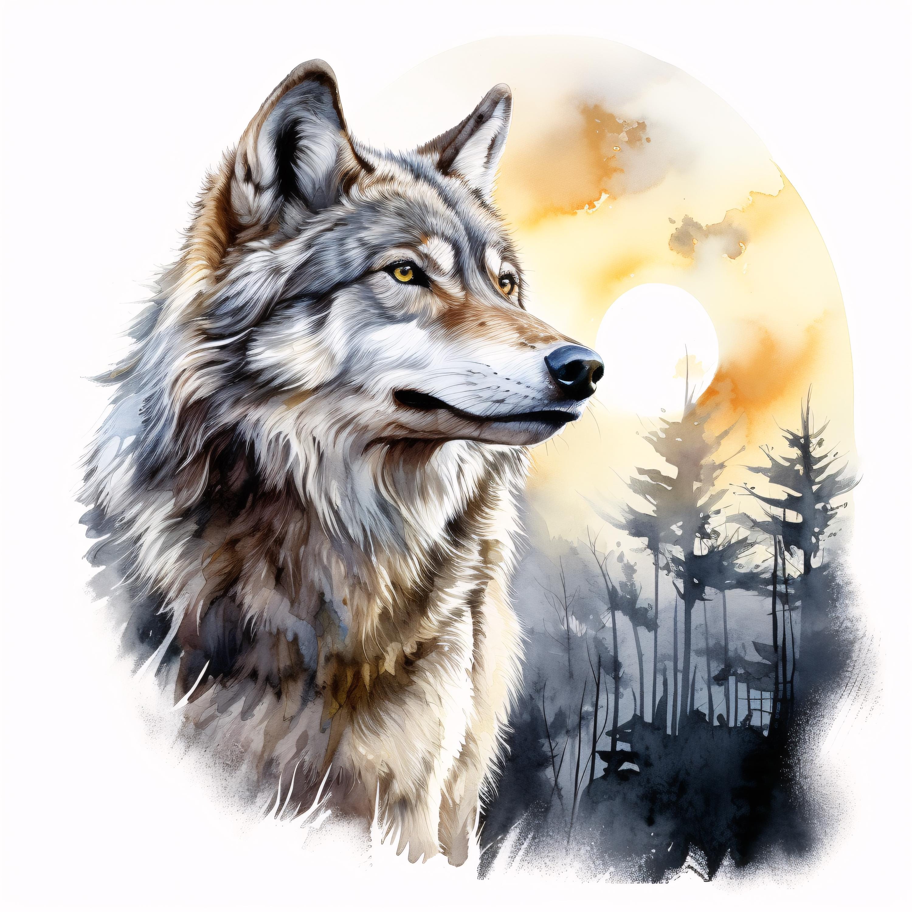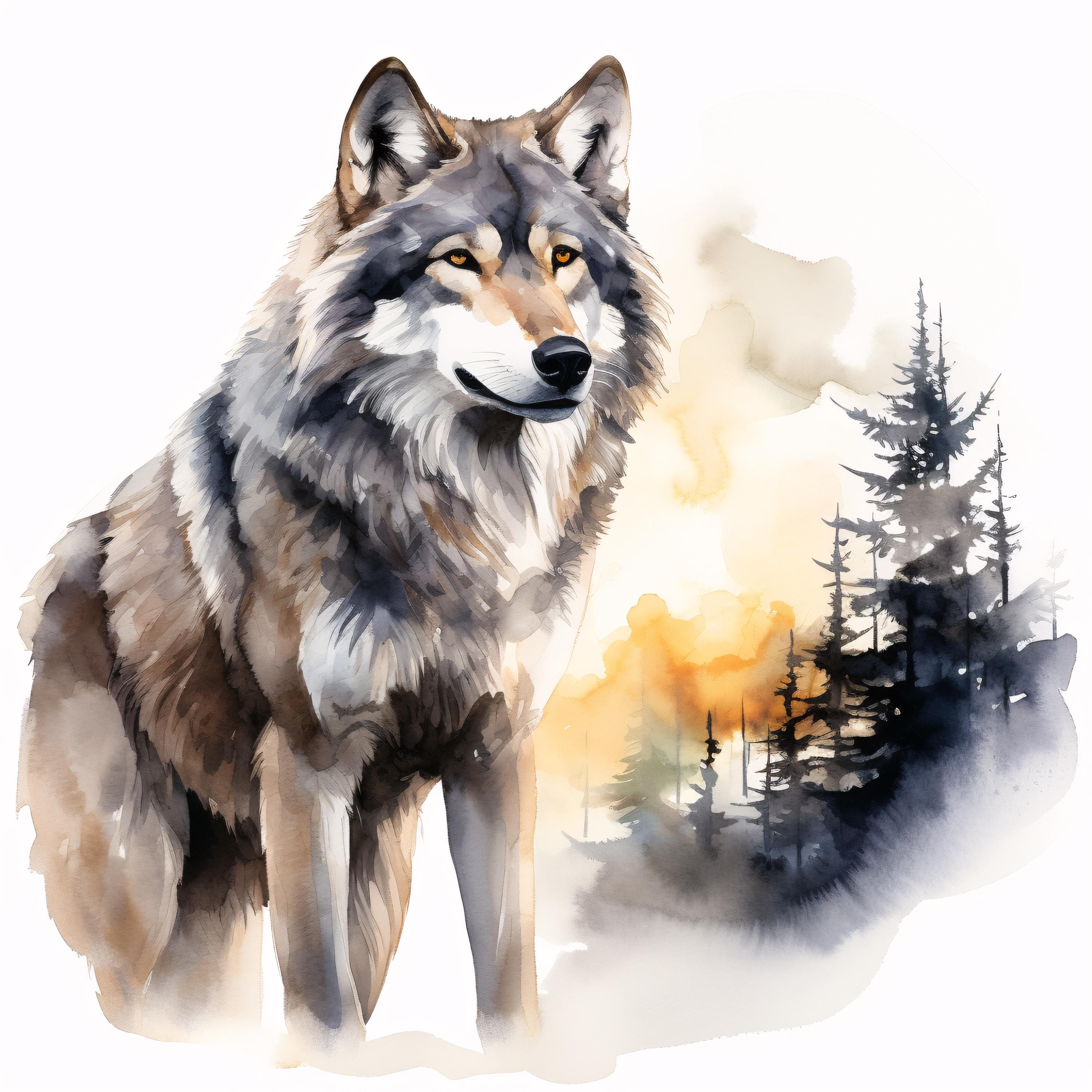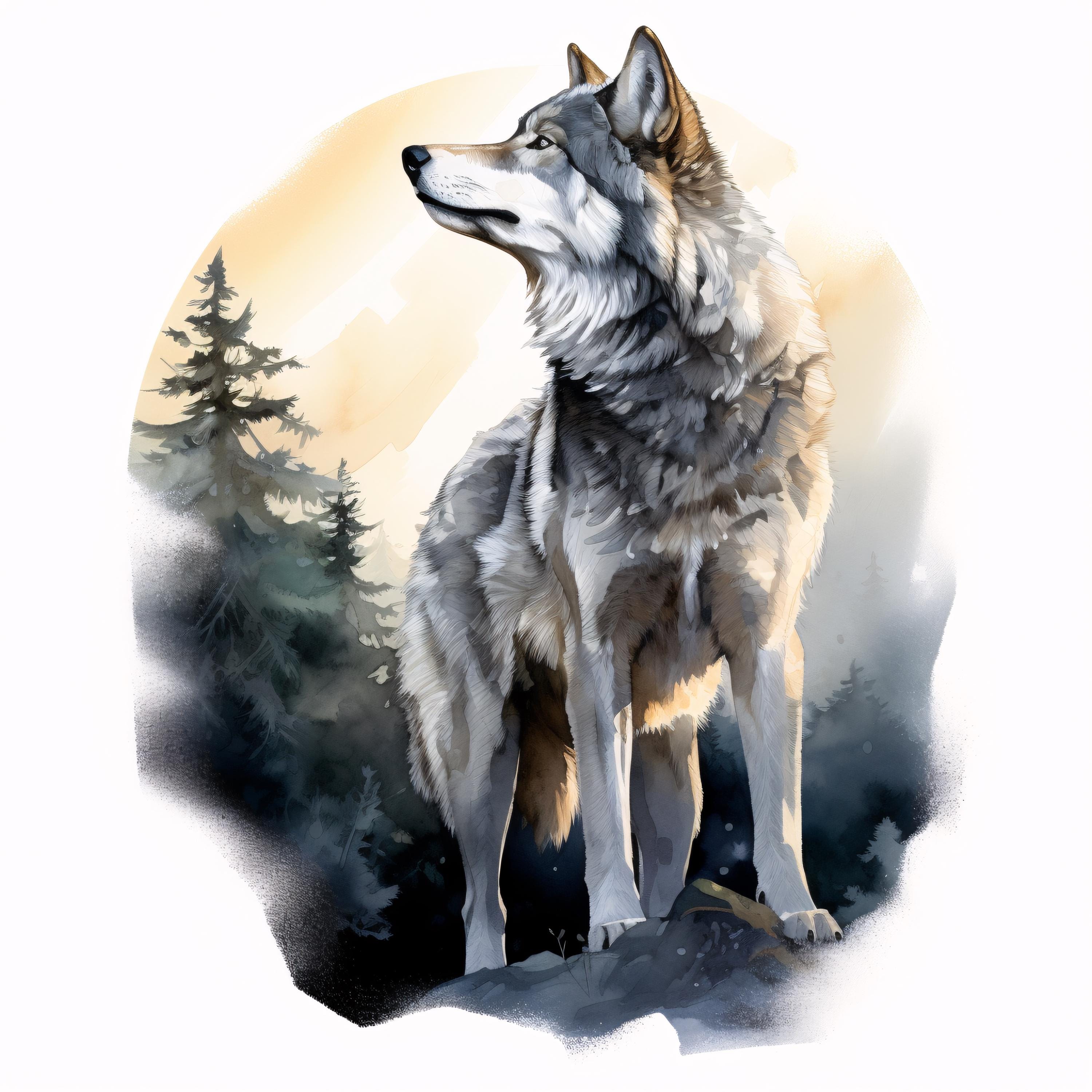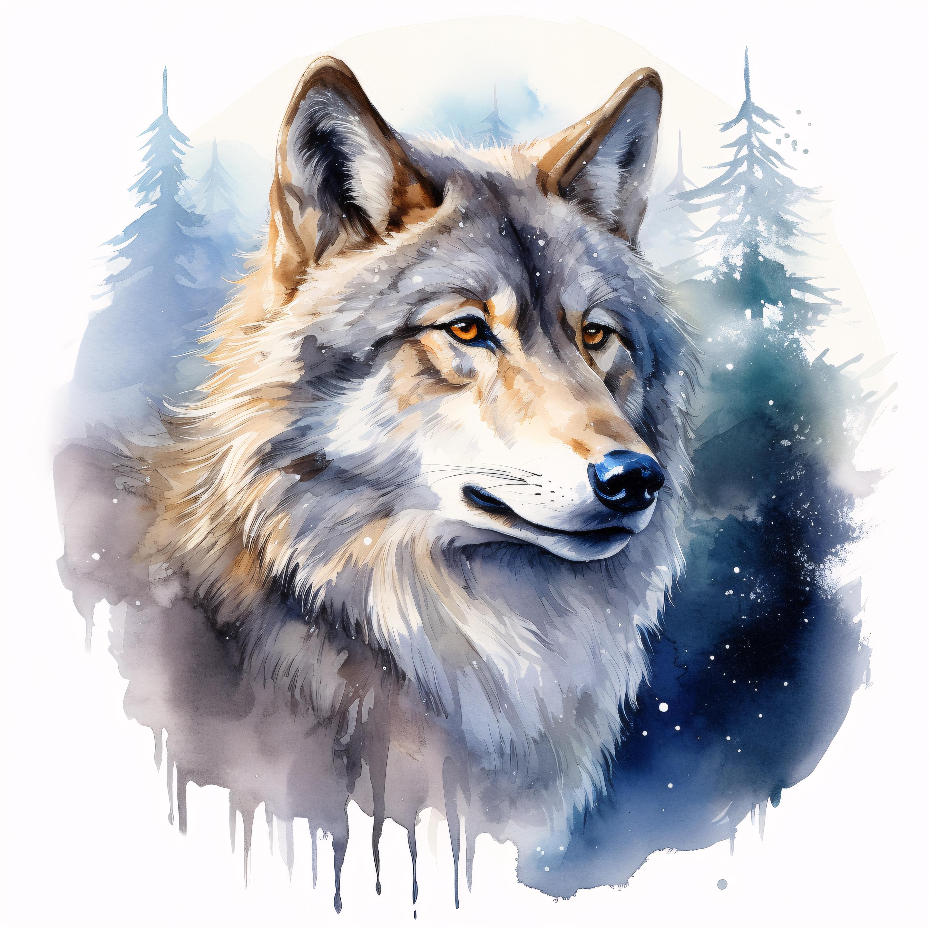 Wolf Moonlight Clipart, Night Forest Animal Images, 10 Watercolor Clip Art, Printable JPGs, Instant Download, Commercial Use, Paper craft