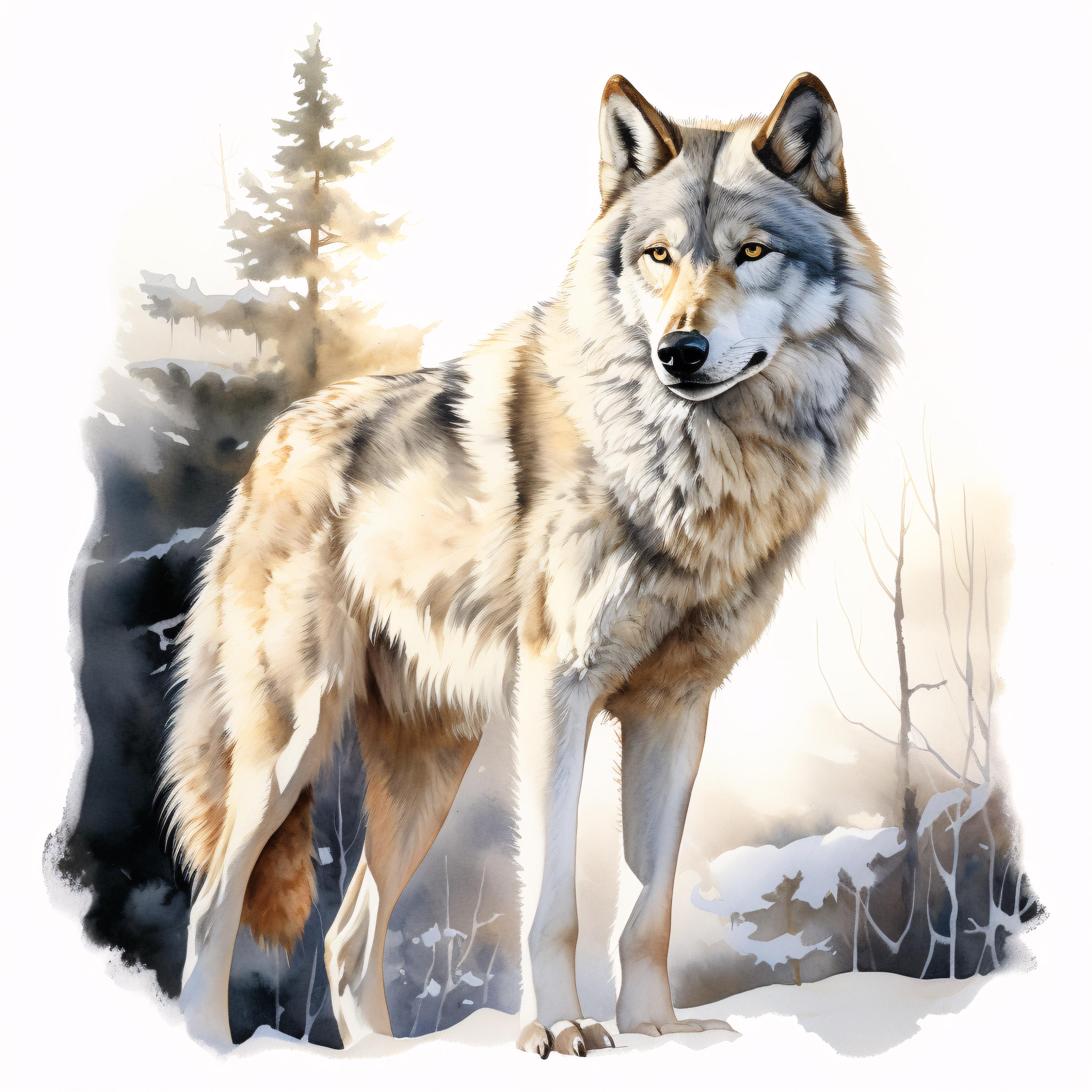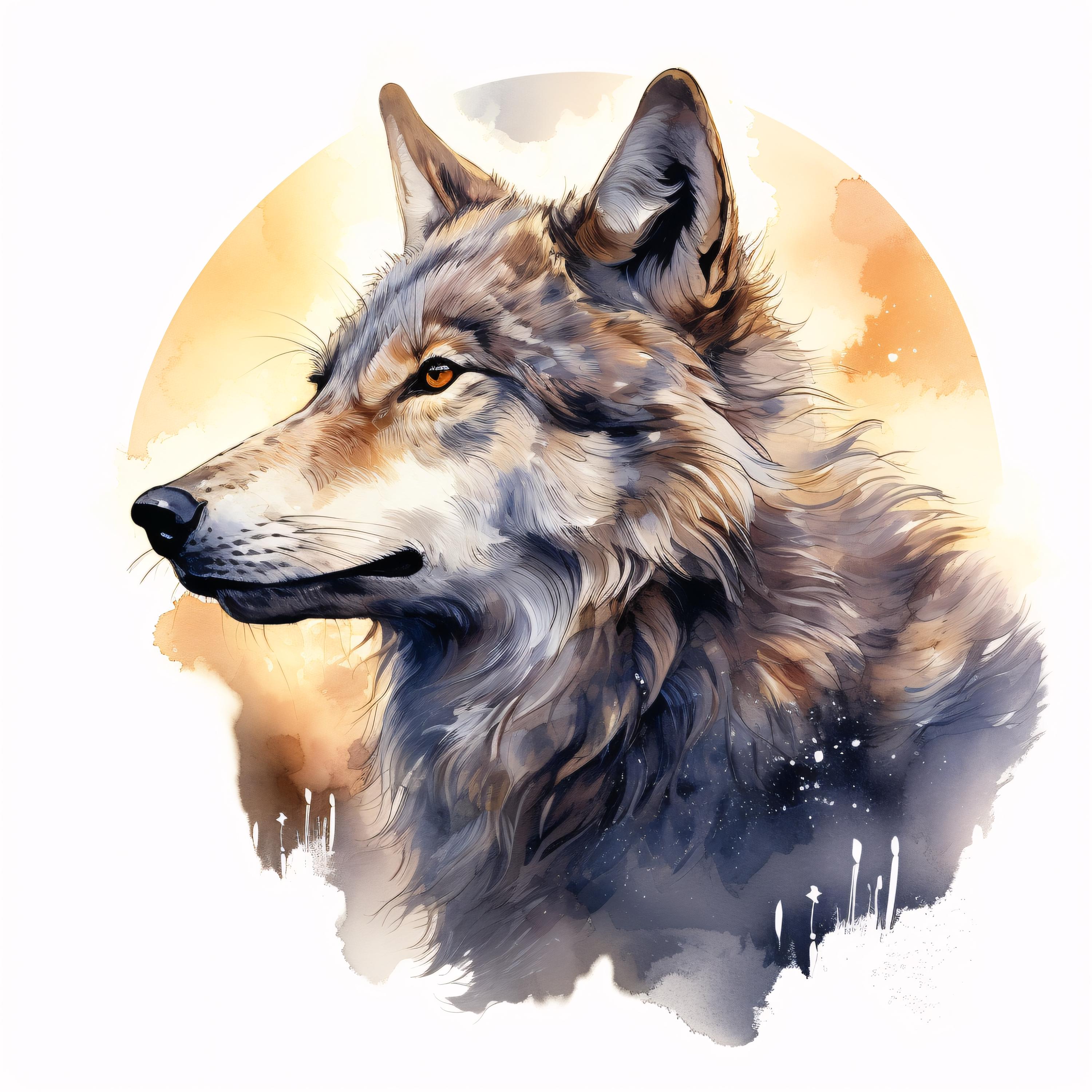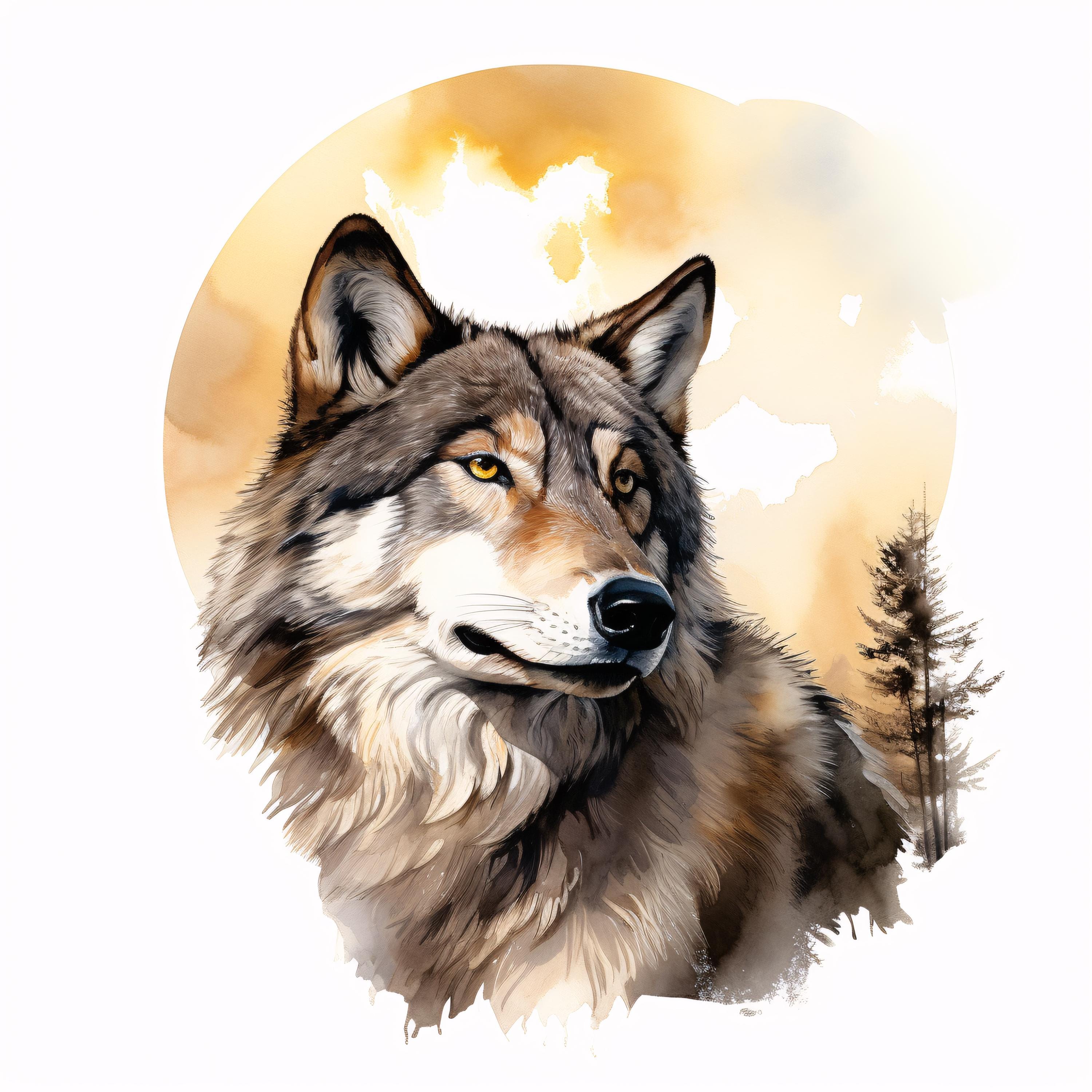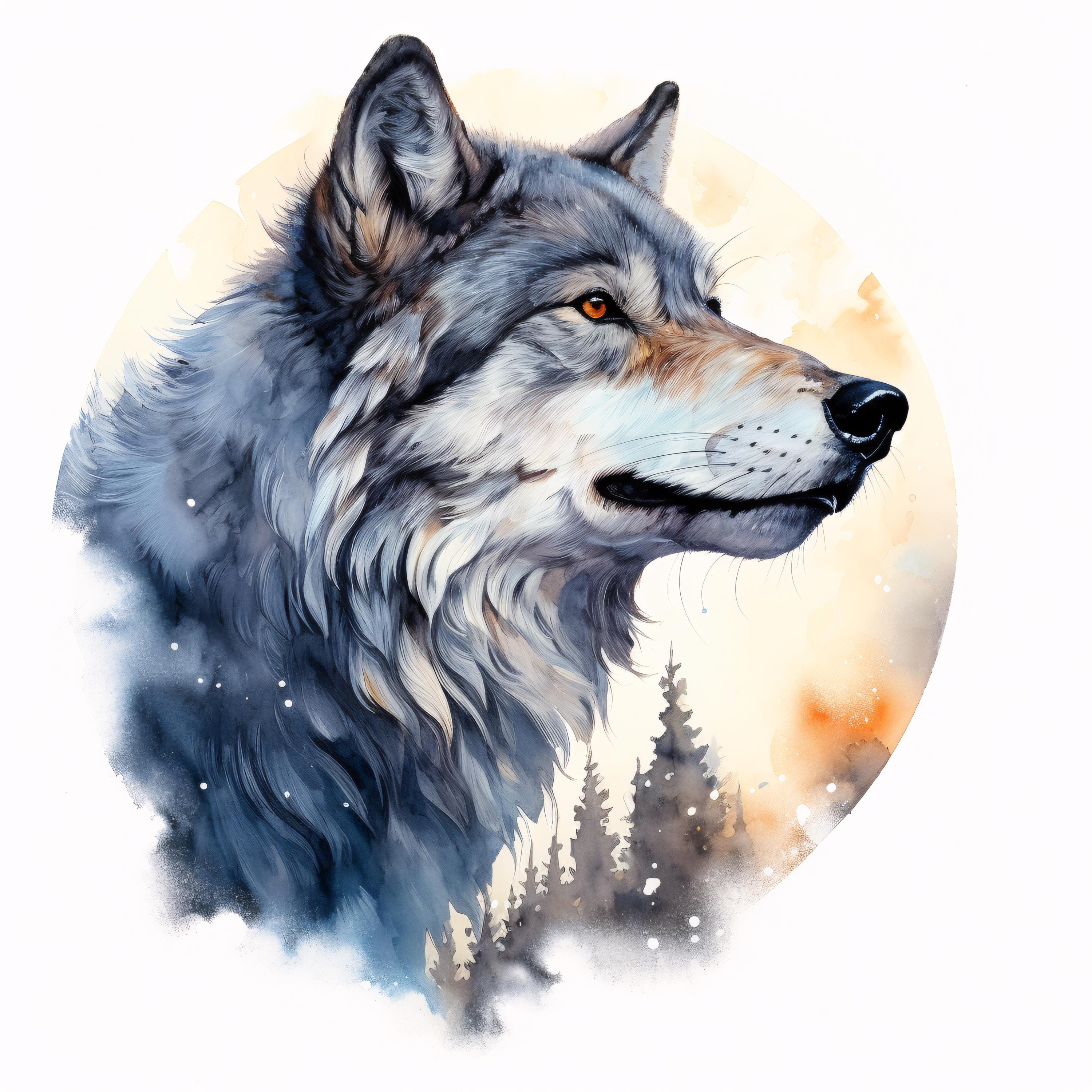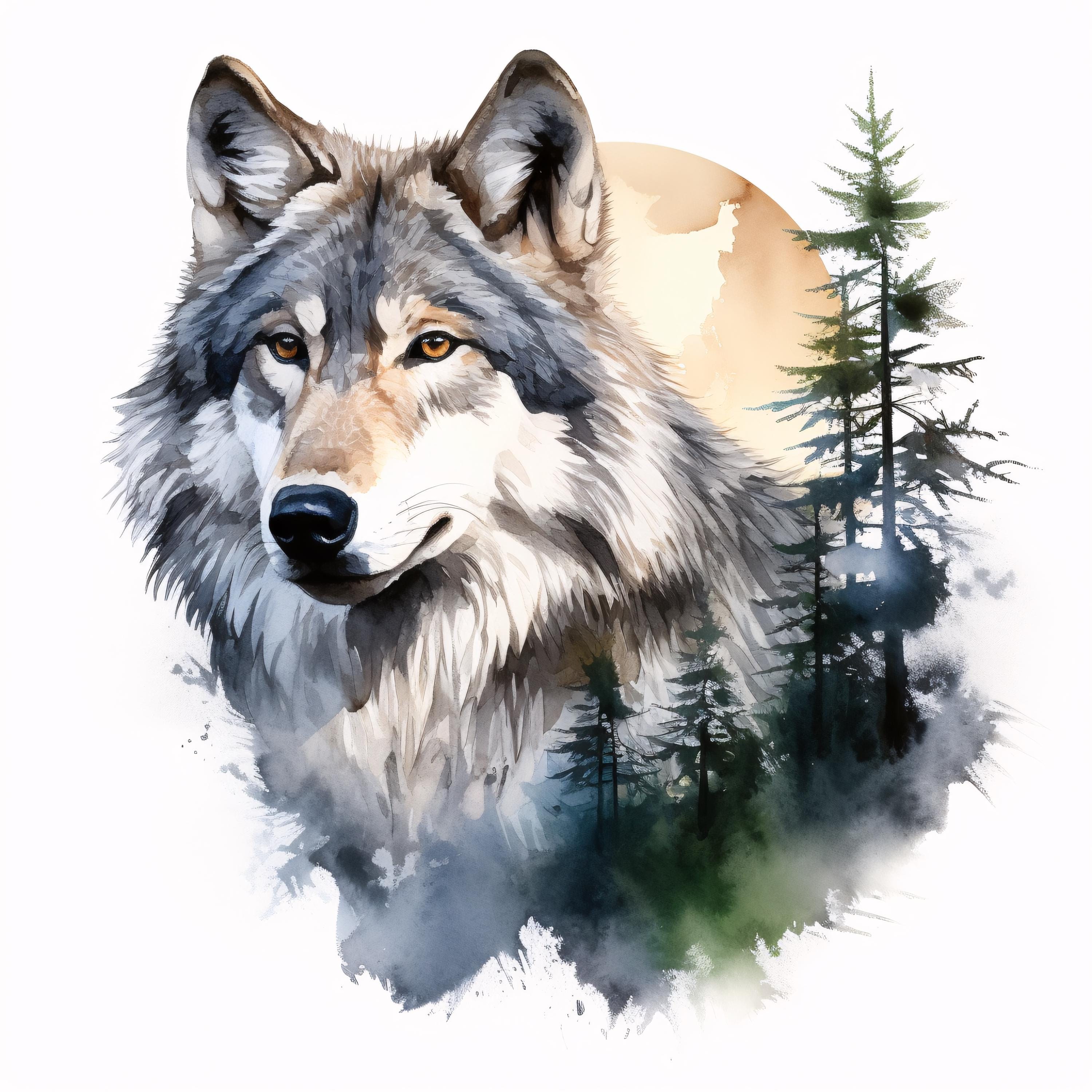 Wolf Moonlight Clipart, Night Forest Animal Images, 10 Watercolor Clip Art, Printable JPGs, Instant Download, Commercial Use, Paper craft