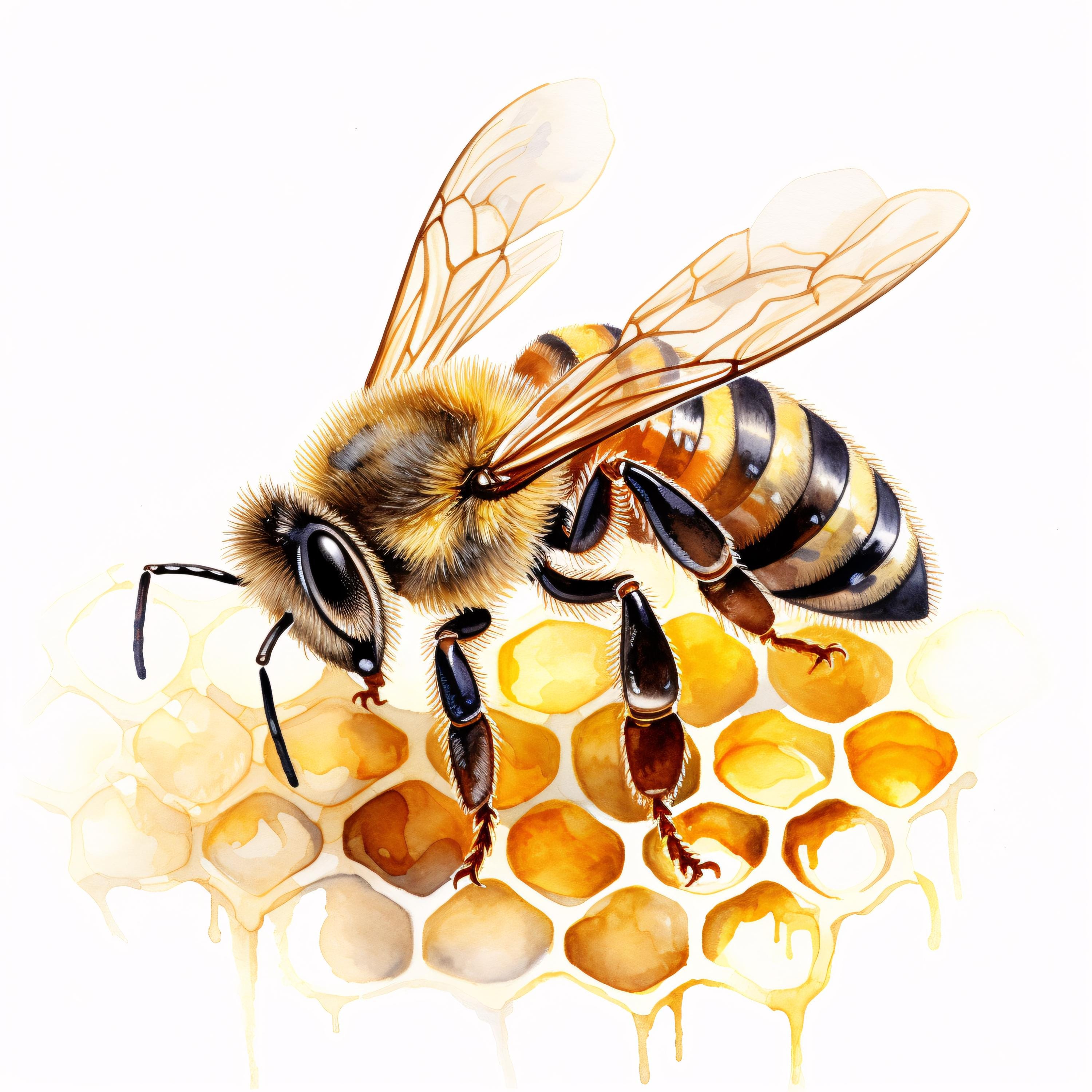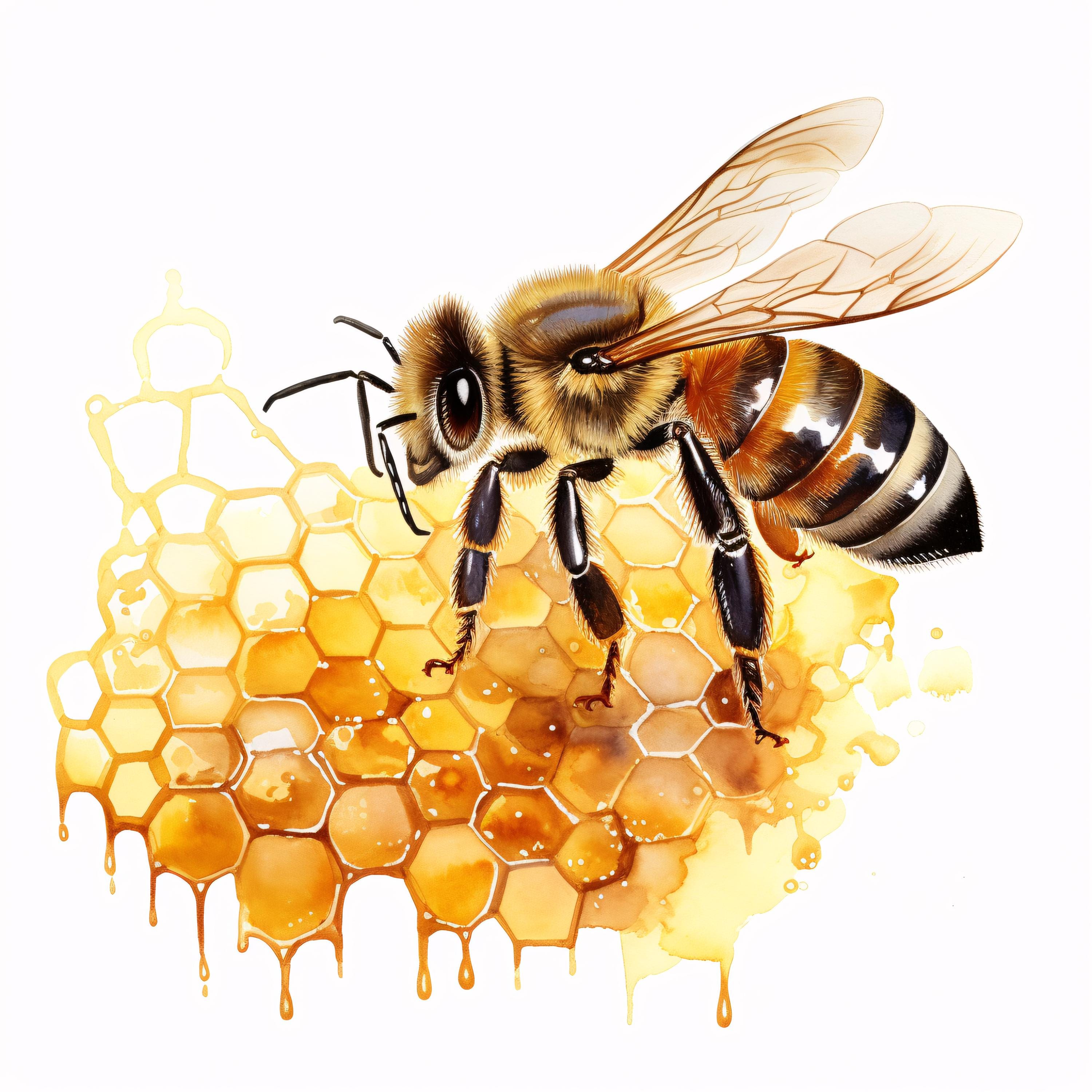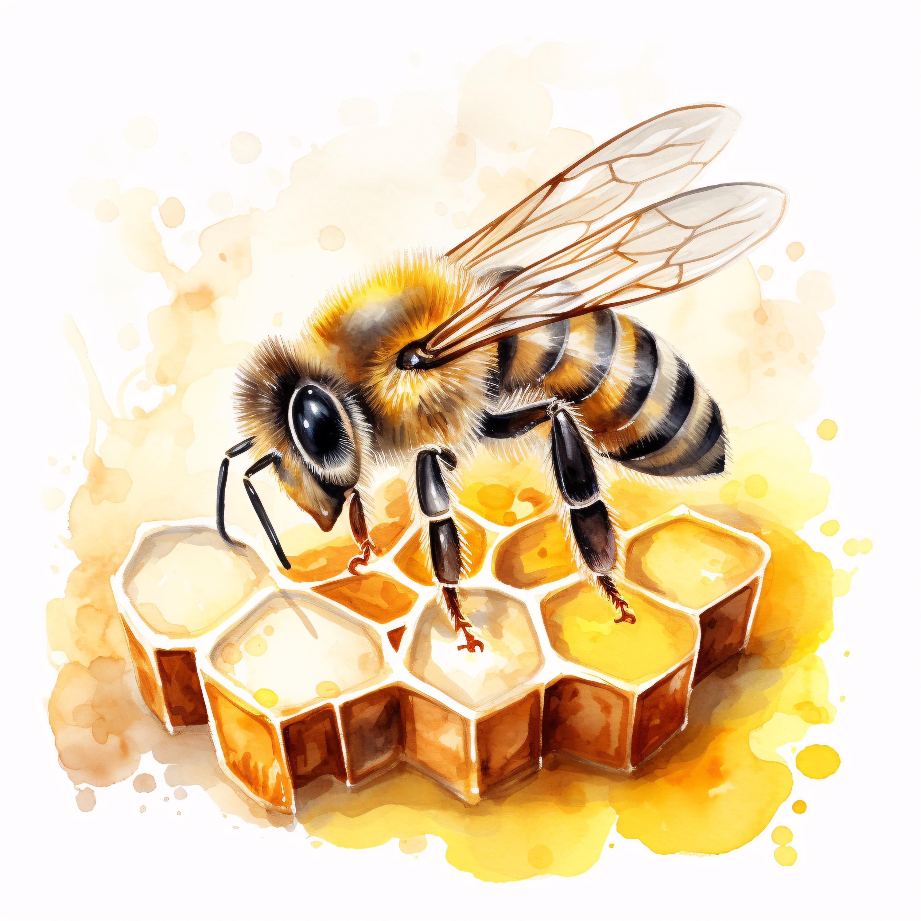 Honey Bee Clipart, Beehive Honeycomb Images, 10 Watercolor Clip Art, Printable JPGs, Instant Download, Commercial Use, Paper Craft