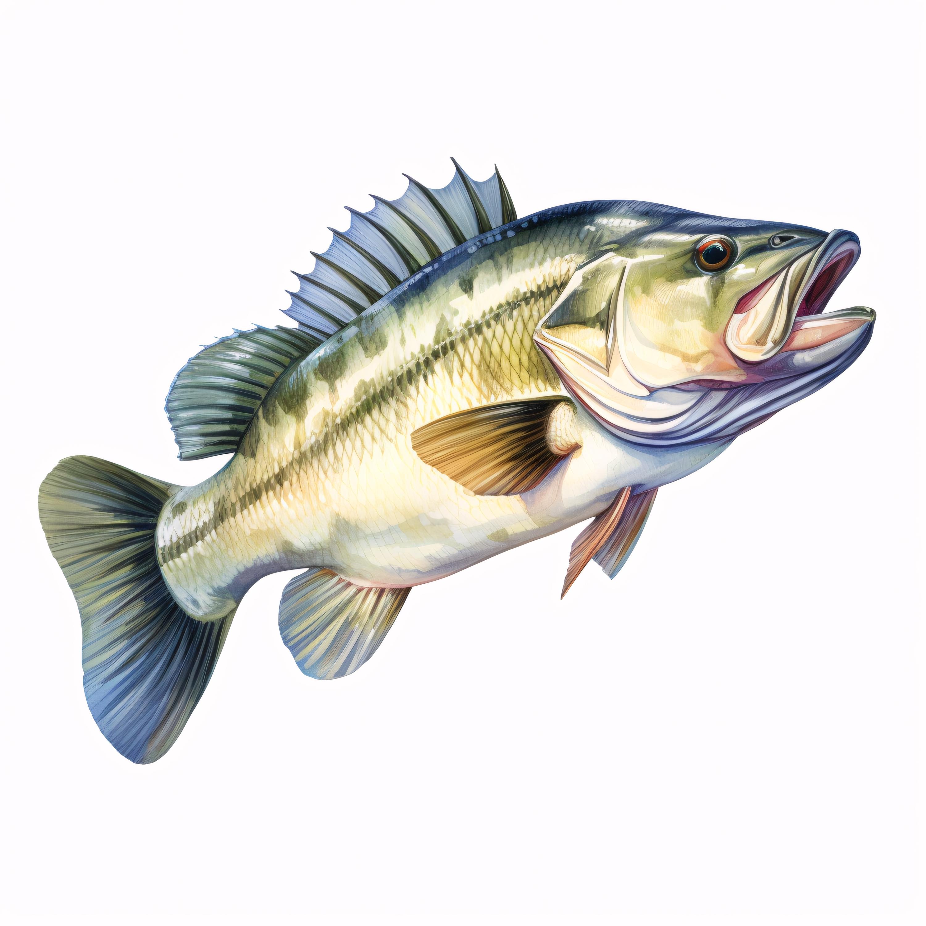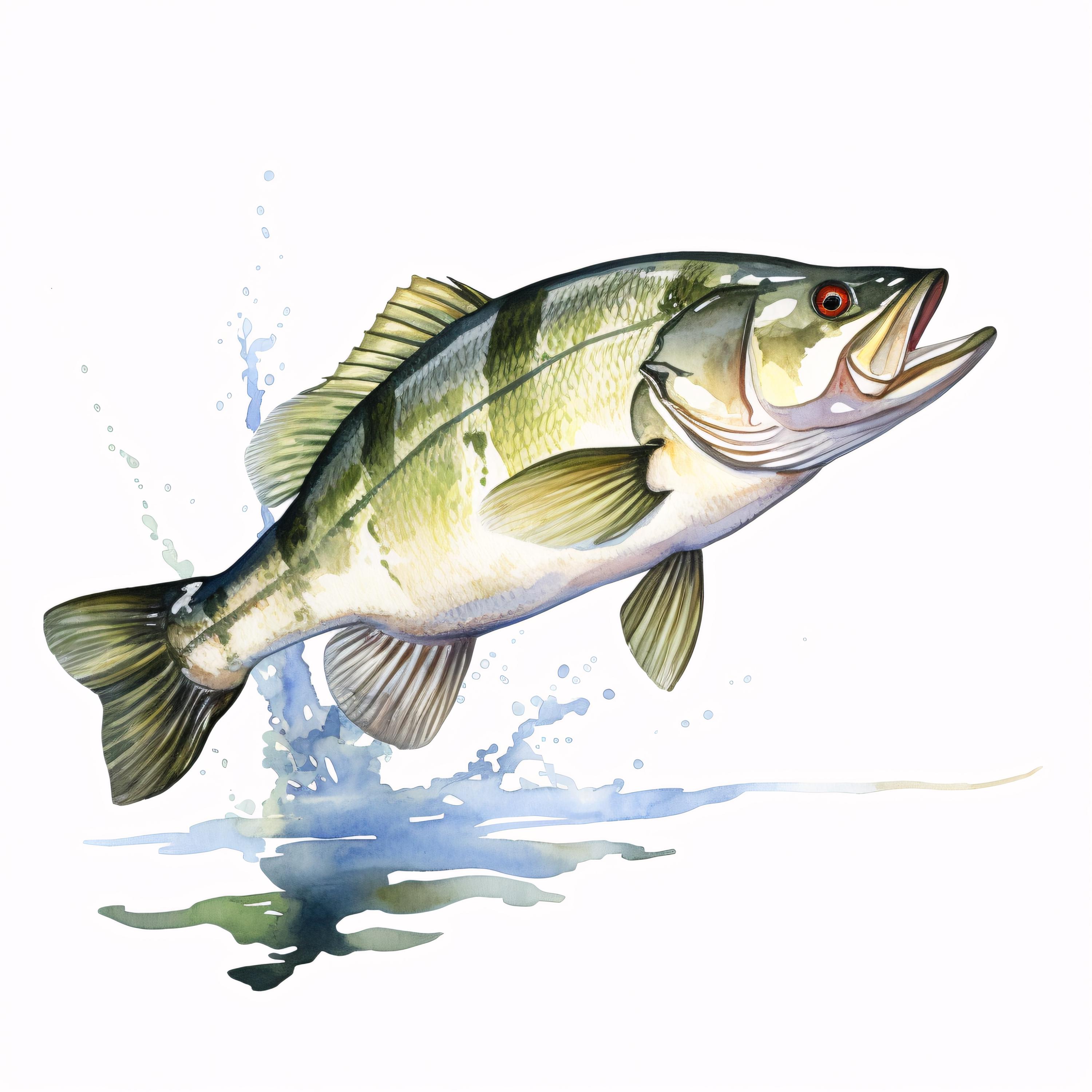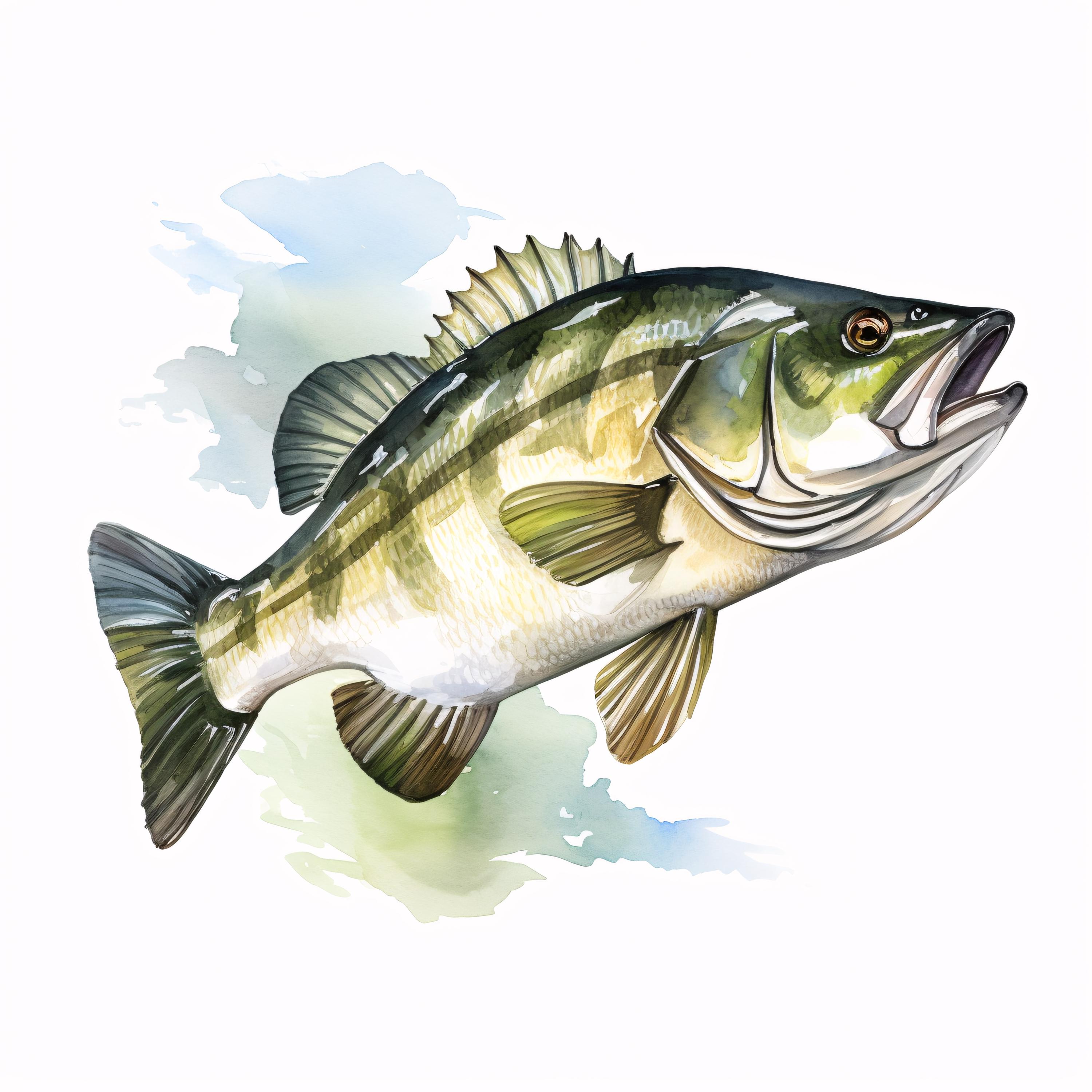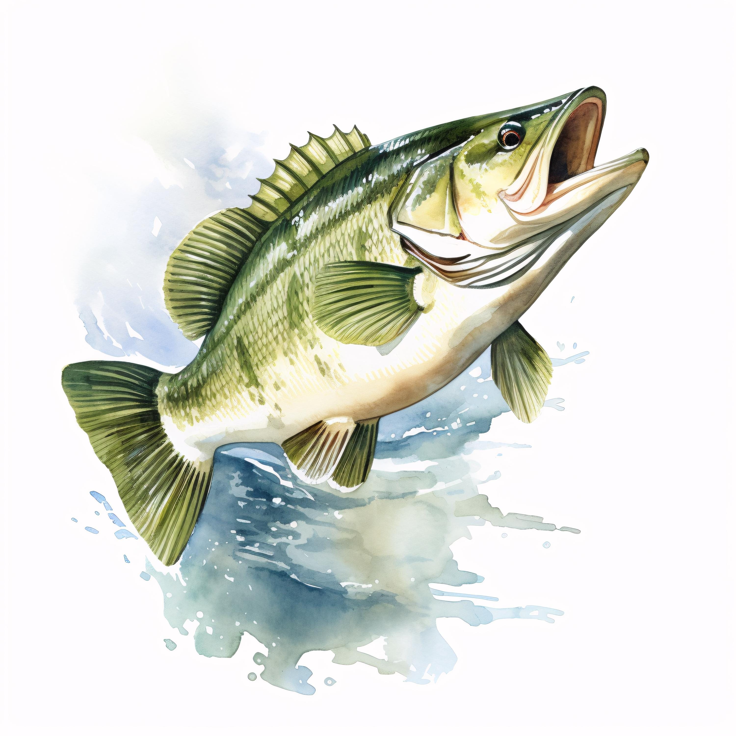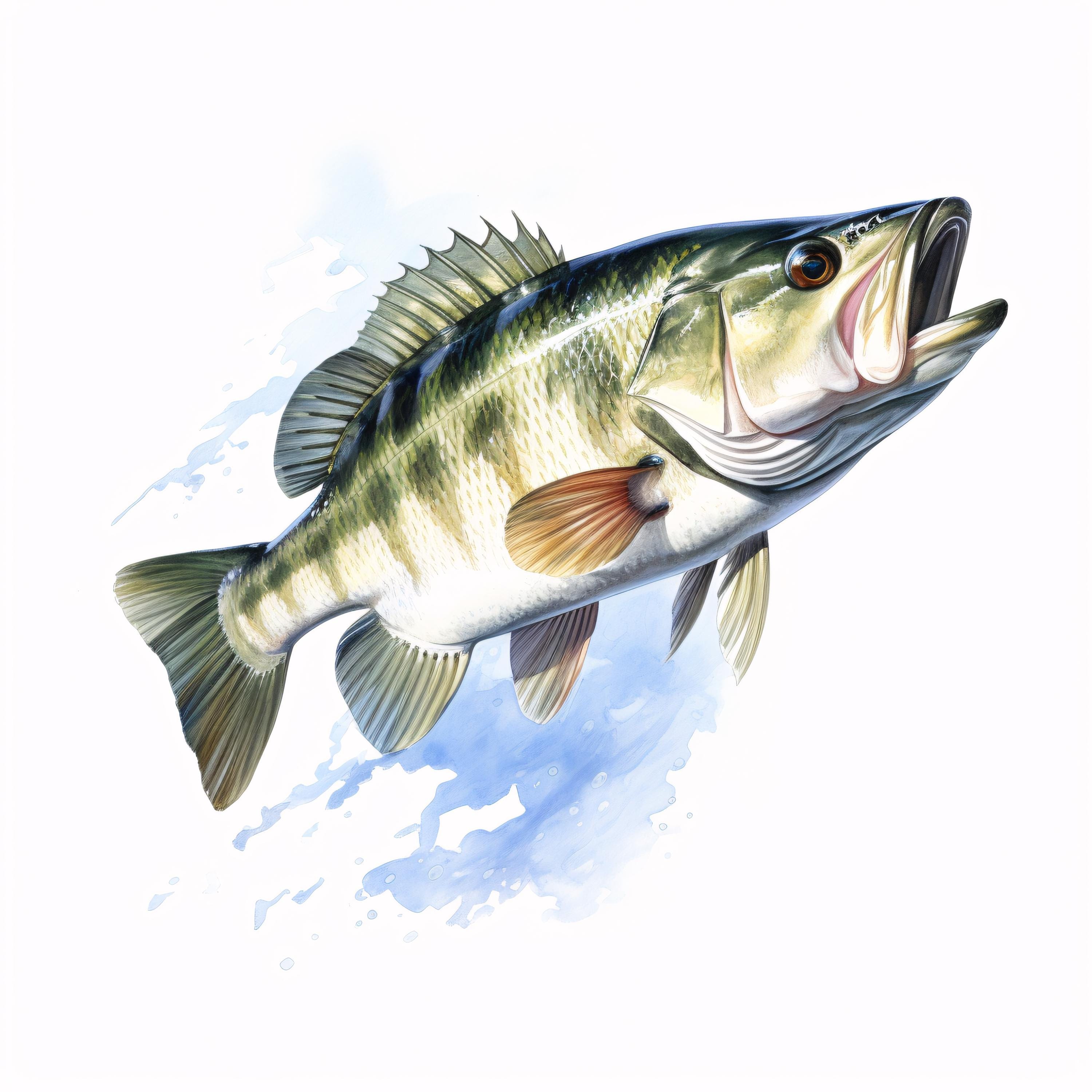 Bass Fish Clipart, Fishing Wildlife Images, 10 Watercolor Clip Art, Printable JPGs, Instant Download, Commercial Use, Paper Craft