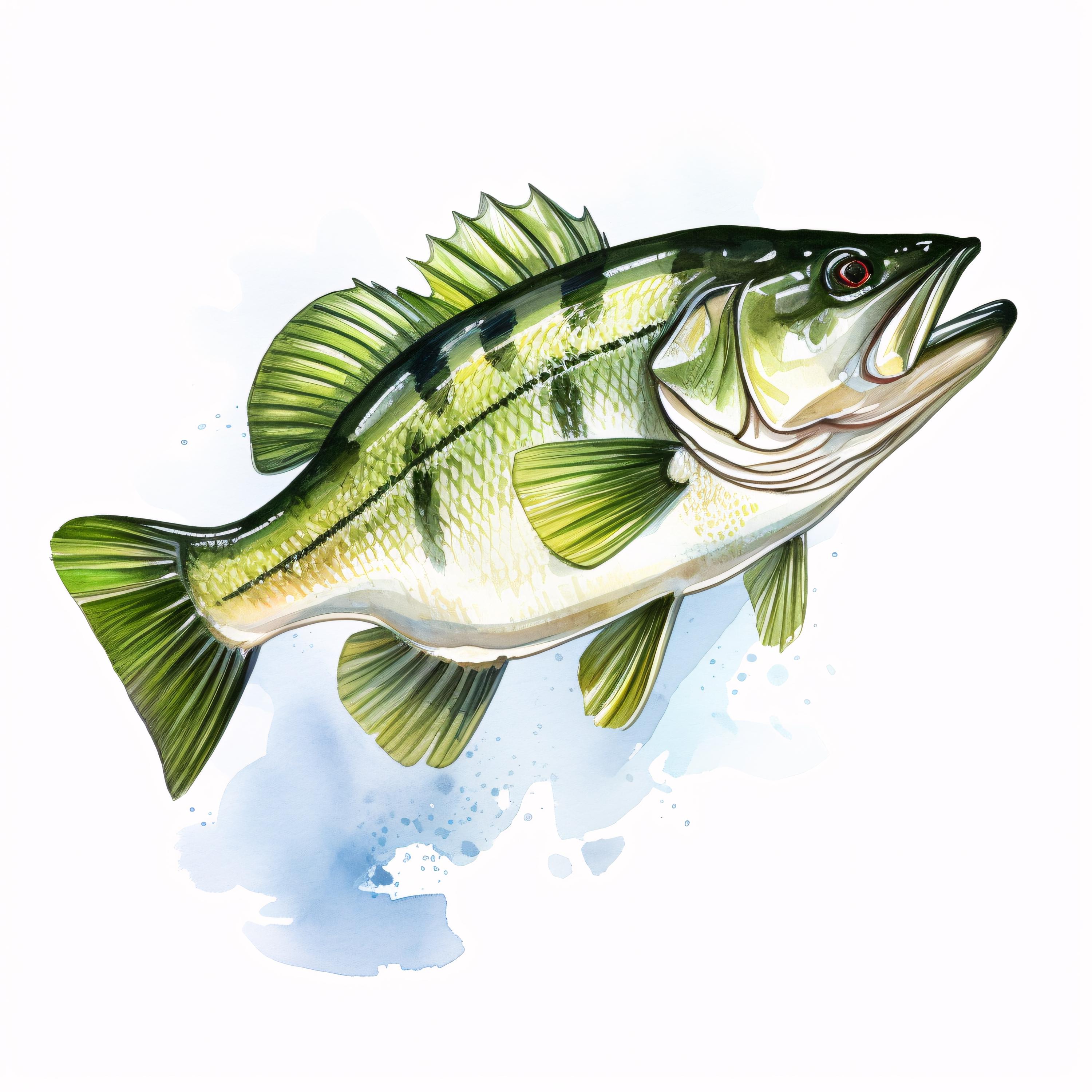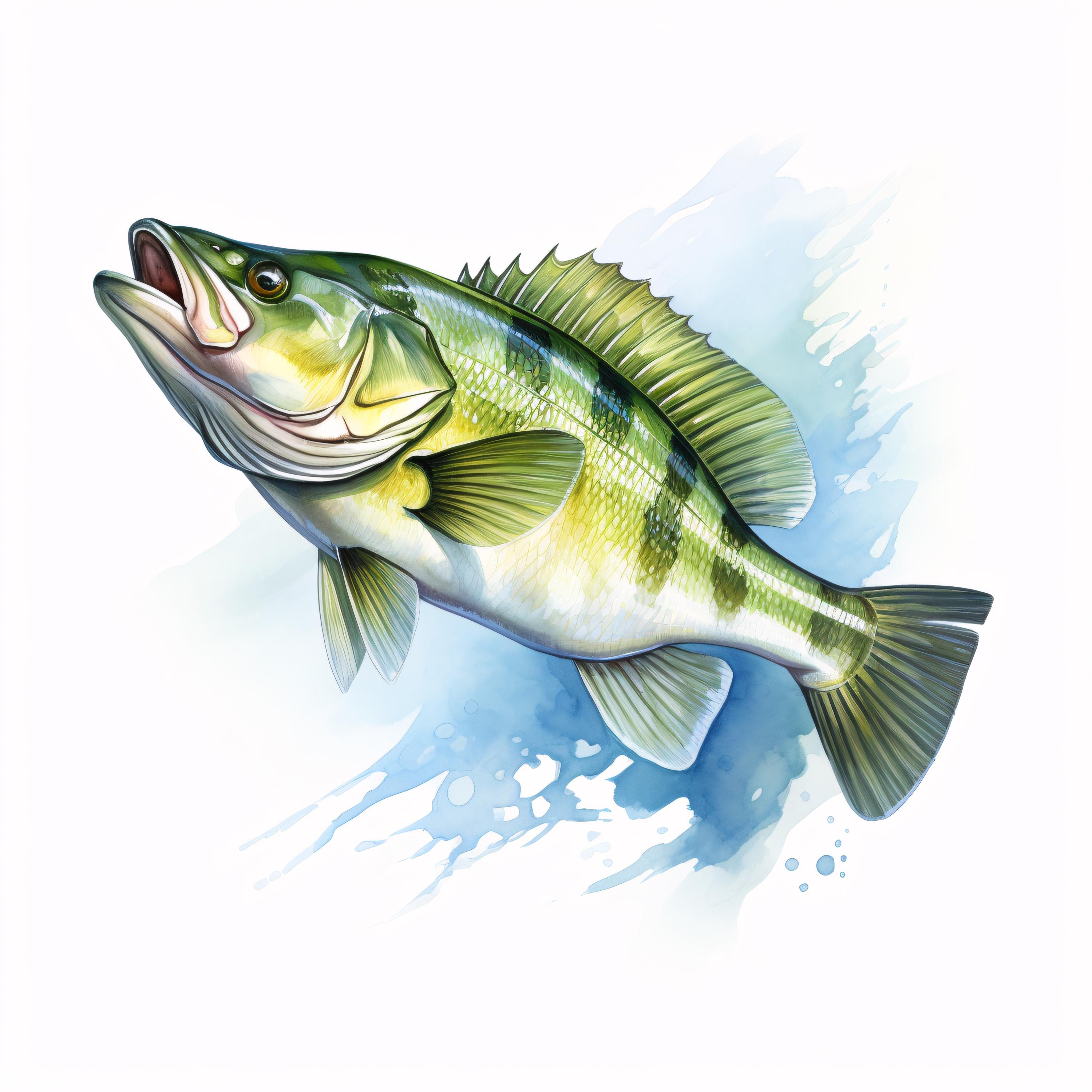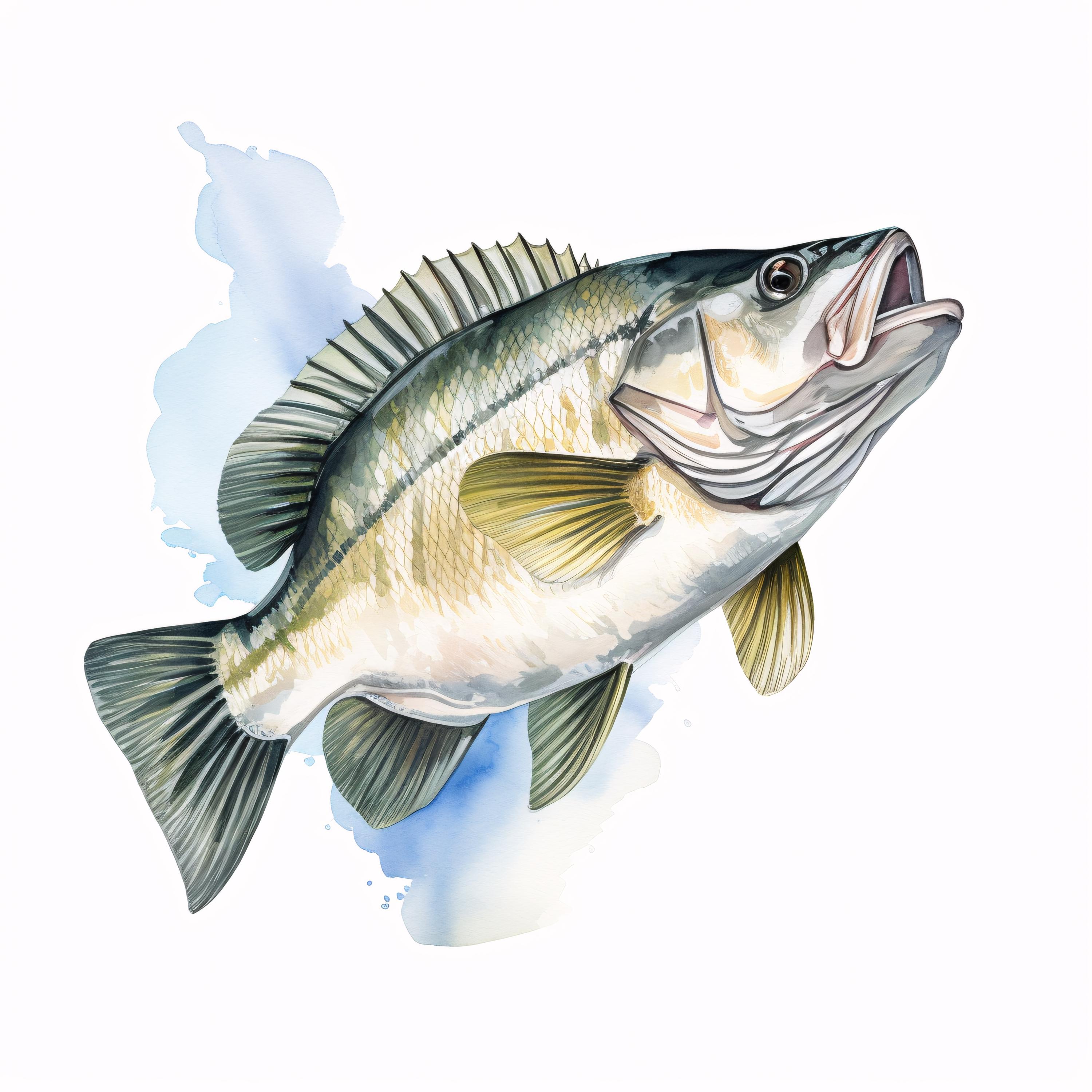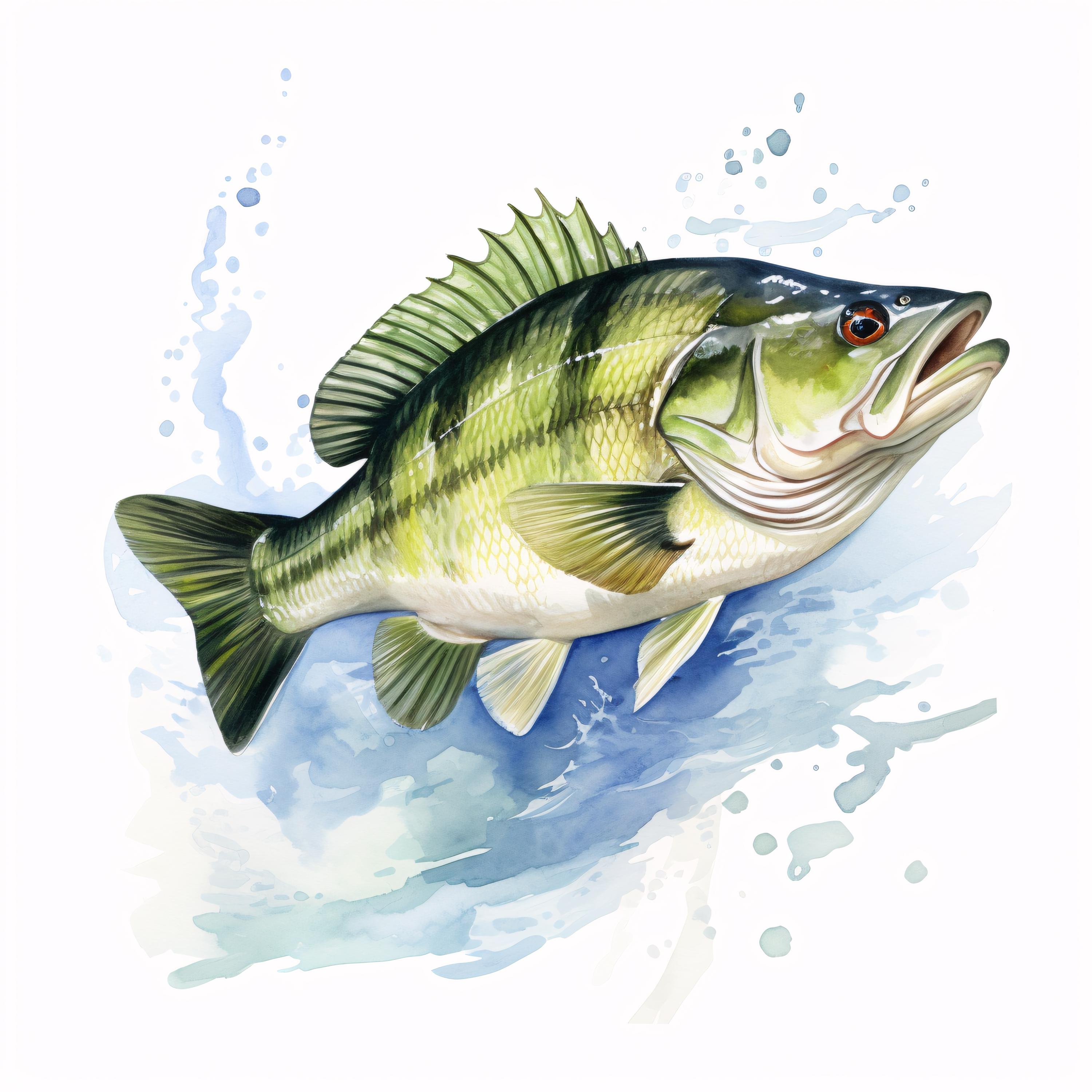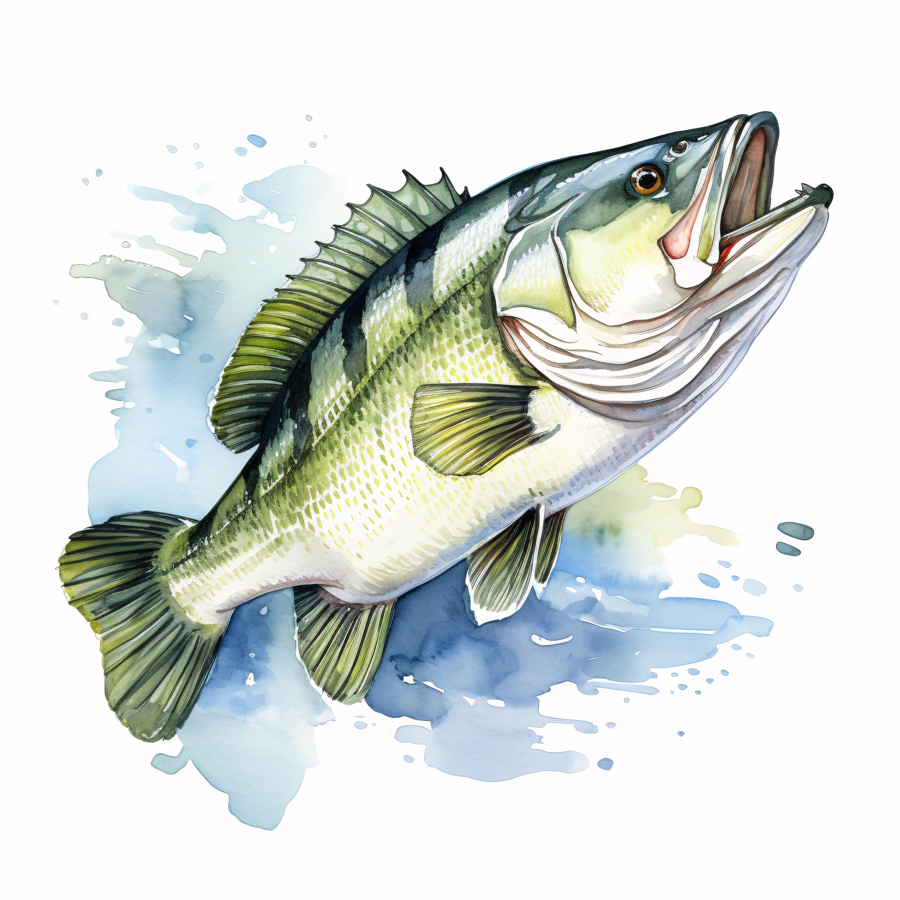 Bass Fish Clipart, Fishing Wildlife Images, 10 Watercolor Clip Art, Printable JPGs, Instant Download, Commercial Use, Paper Craft