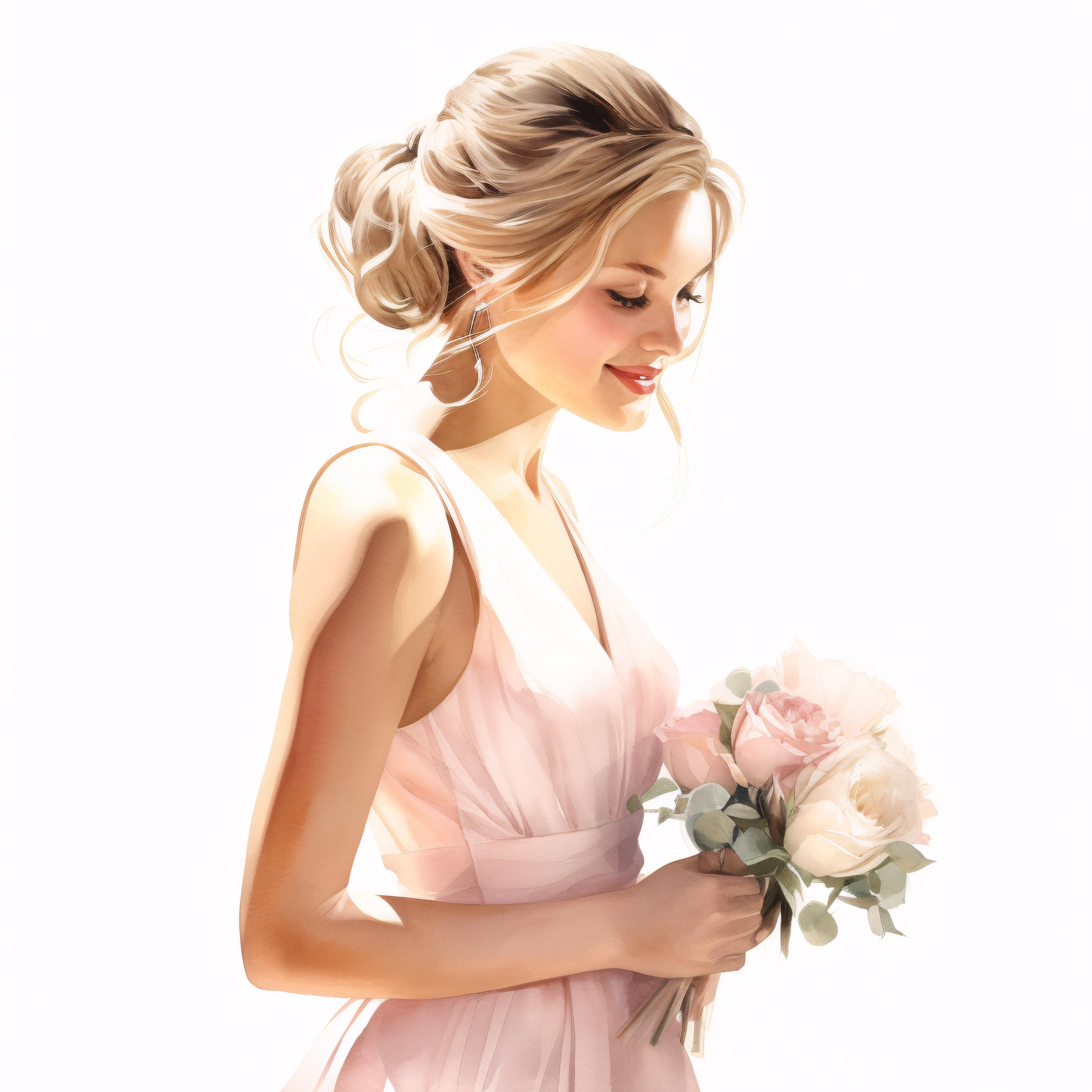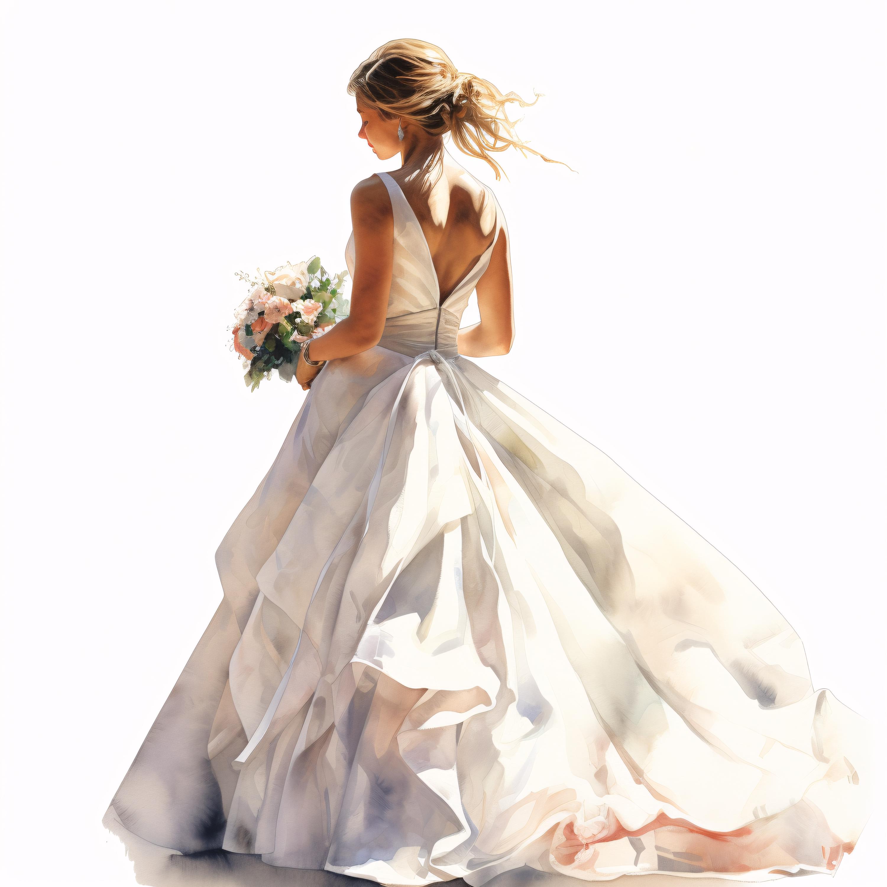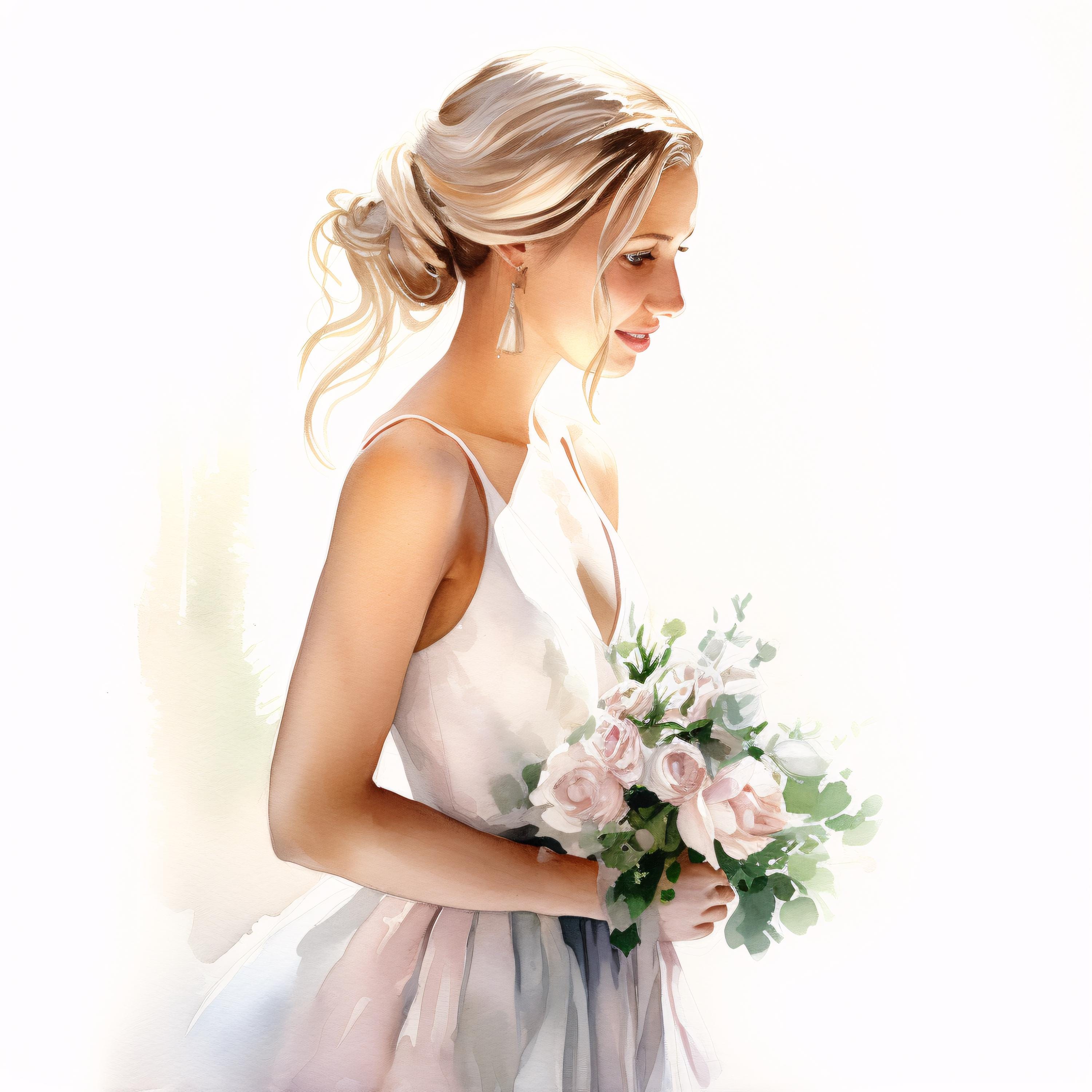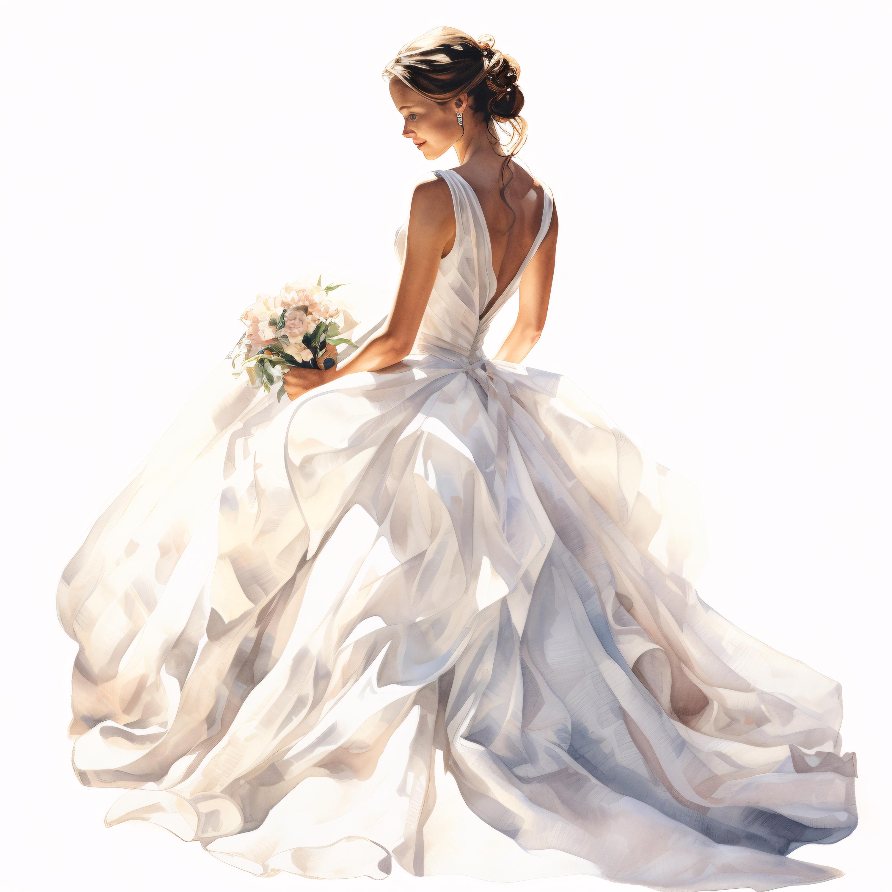 Bride Clipart, Wedding Woman Images, 10 Watercolor Clip Art, Printable JPGs, Instant Download, Commercial Use, Paper Craft