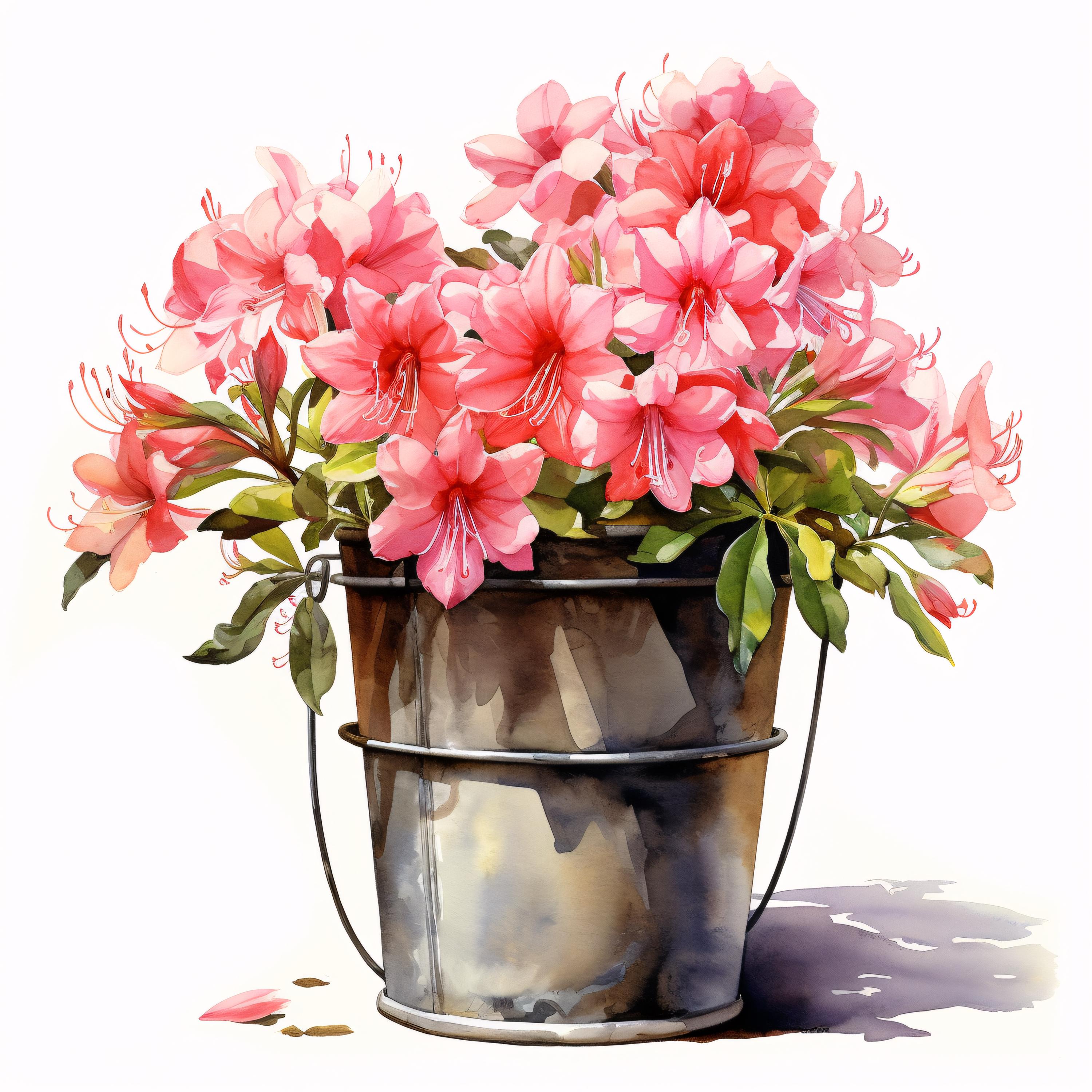 Flower Bucket Clipart, Floral Arrangement Images, 10 Watercolor Clip Art, Printable JPGs, Instant Download, Commercial Use, Paper Craft