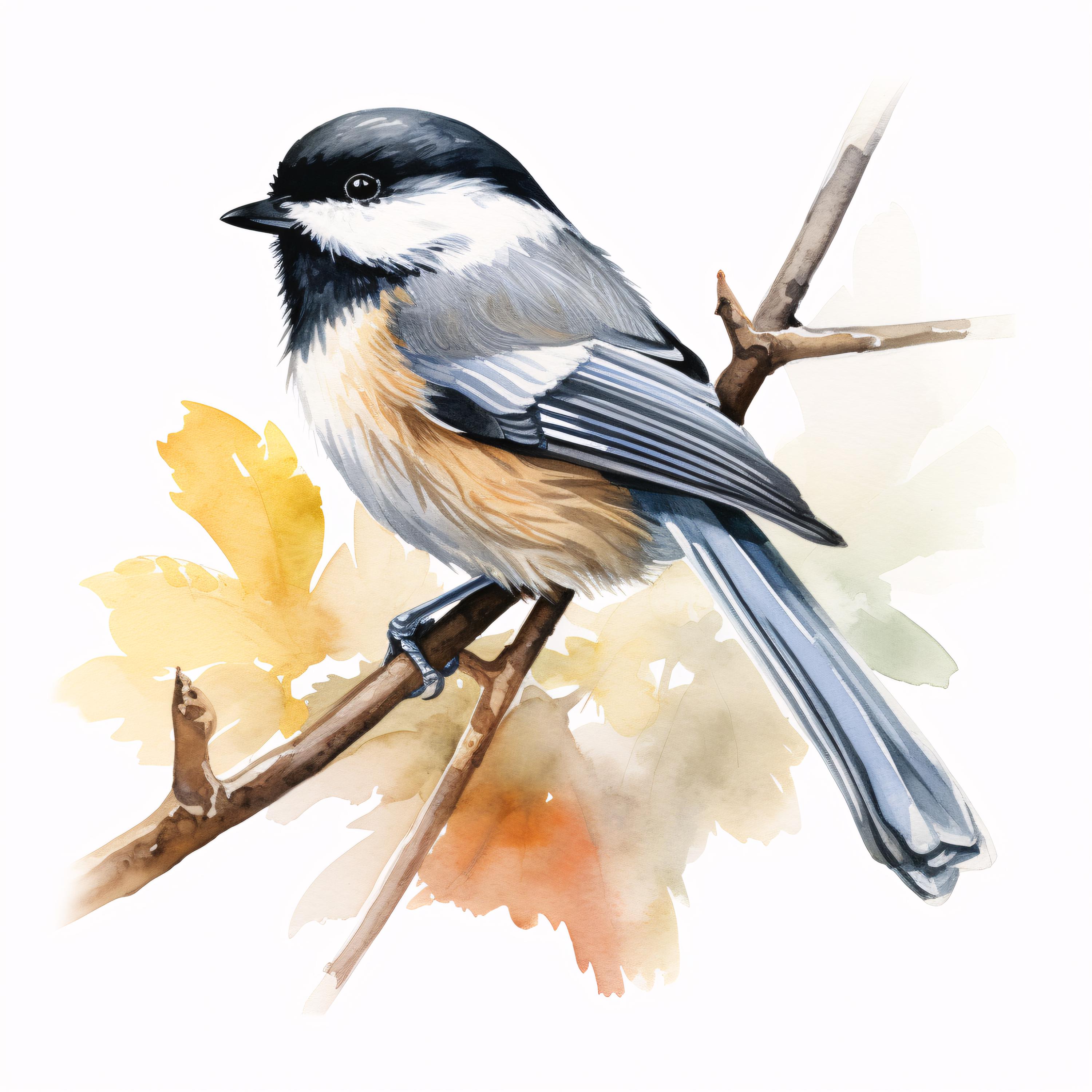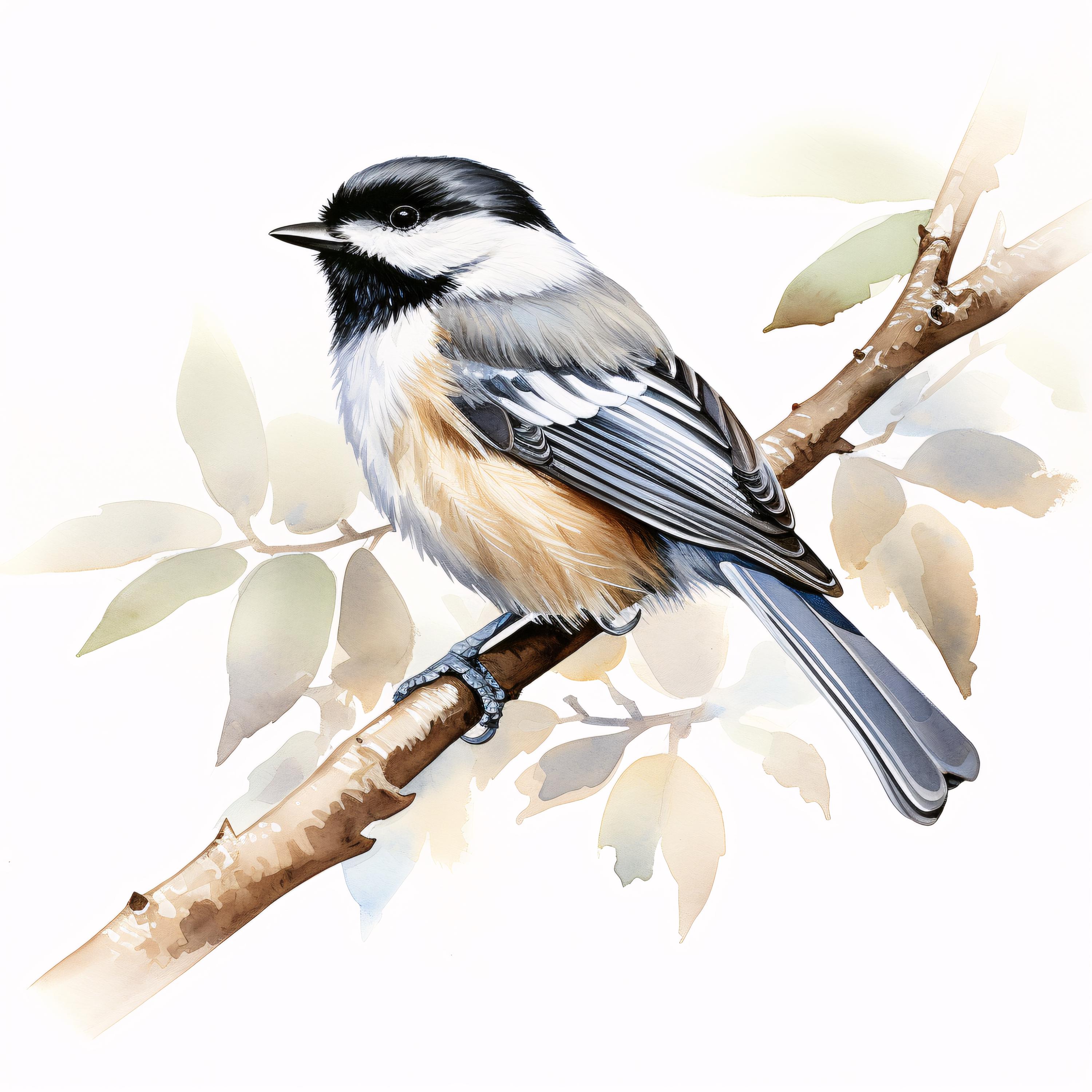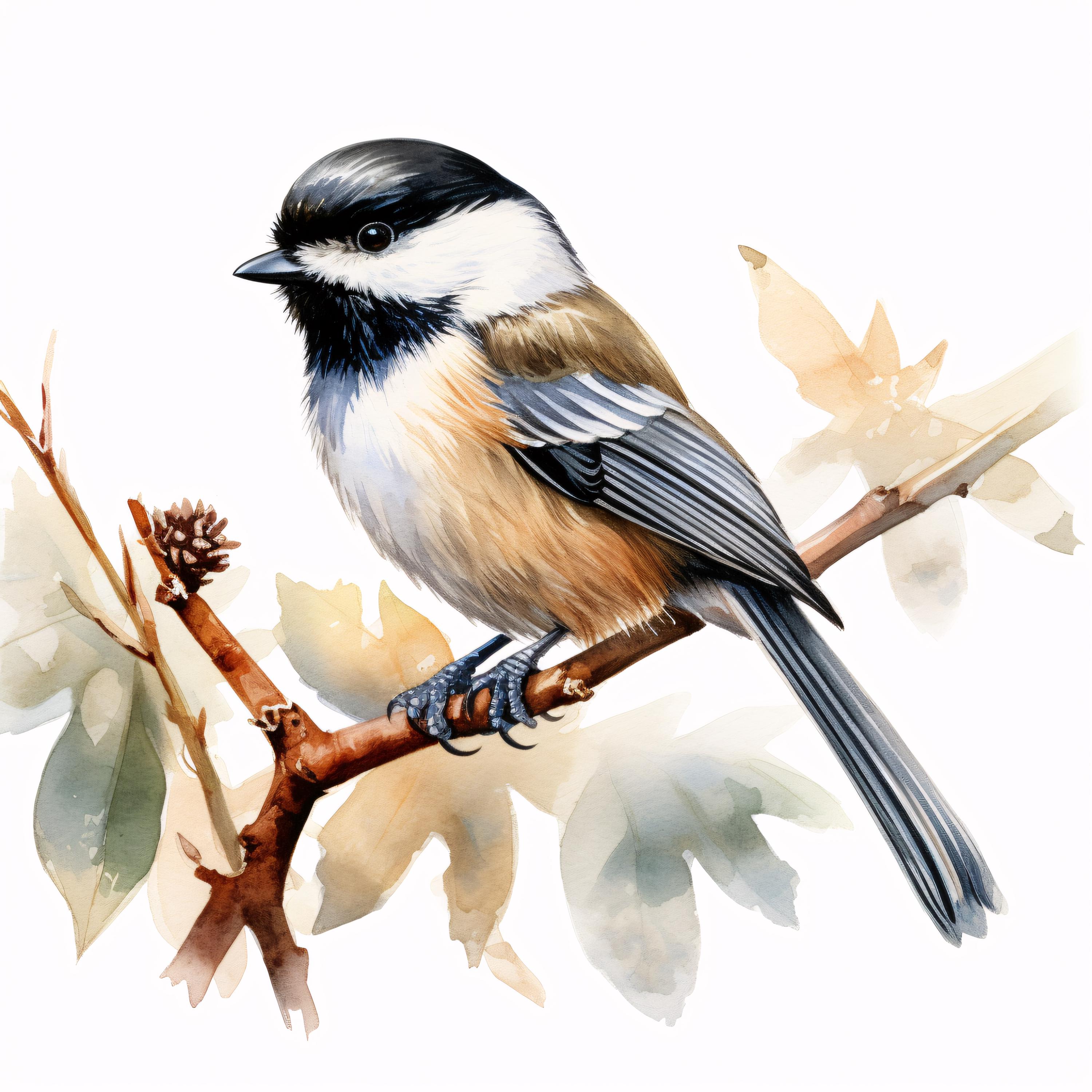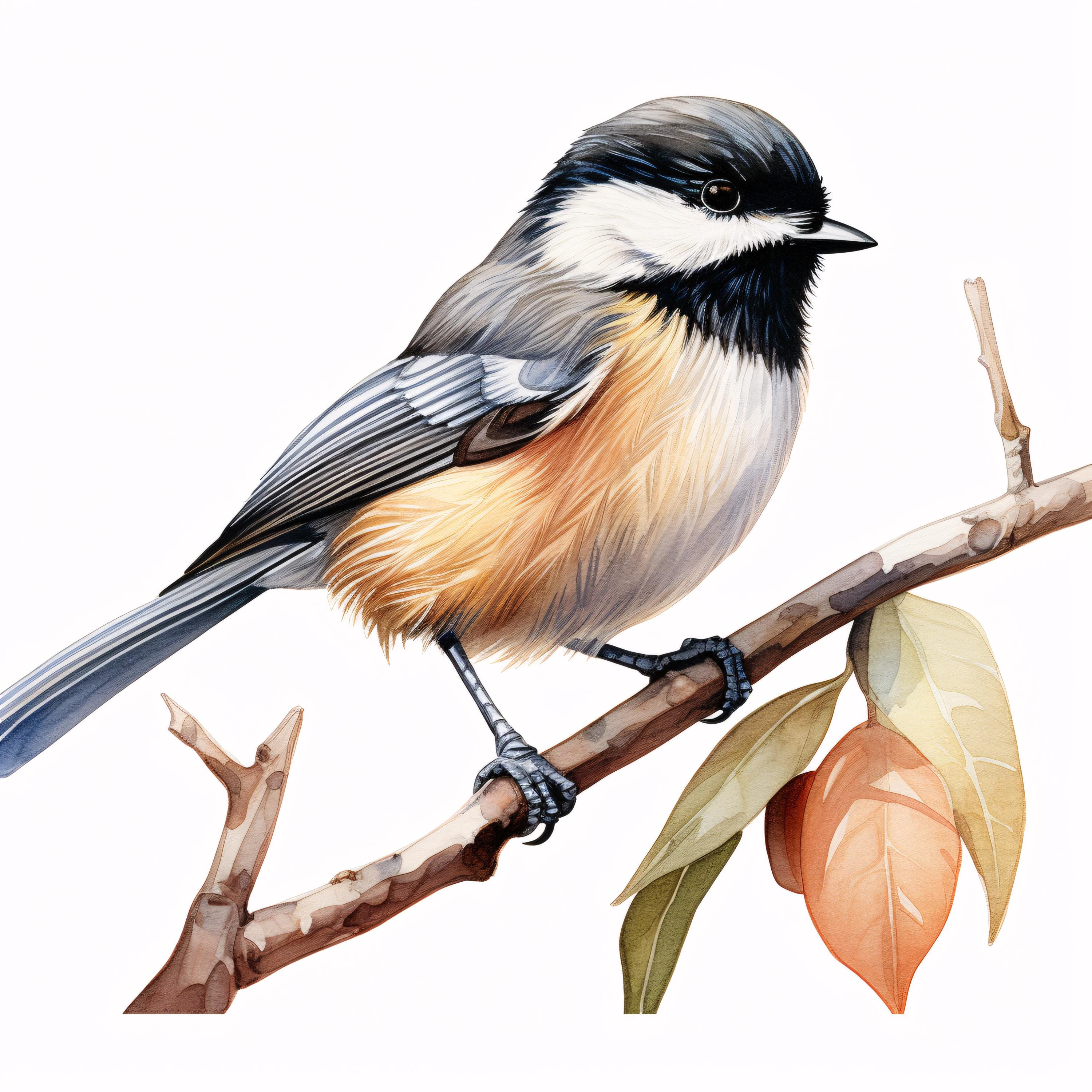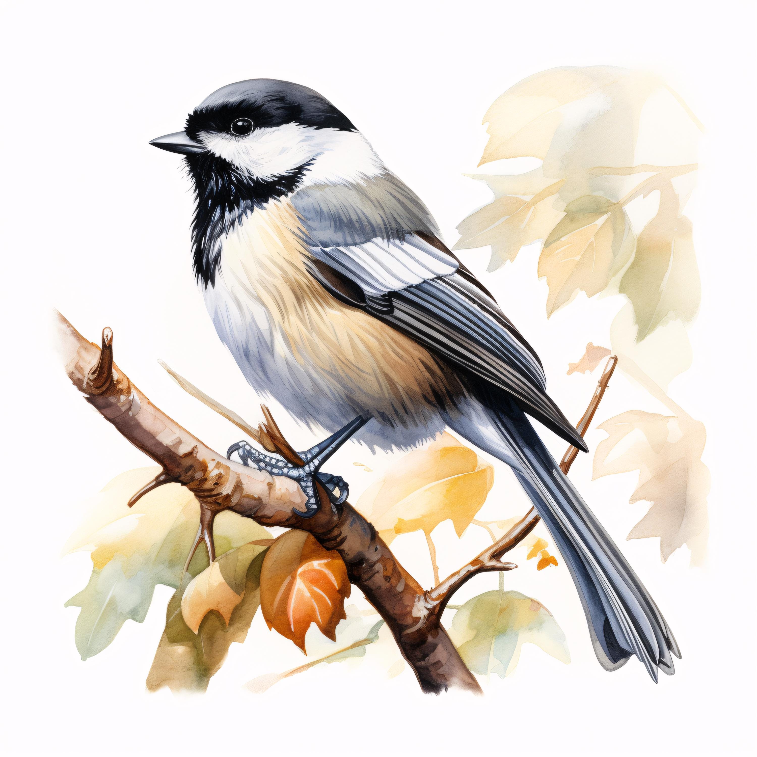 Chickadee Clipart, Small Bird Images, 10 Watercolor Clip Art, Printable JPGs, Instant Download, Commercial Use, Paper Craft