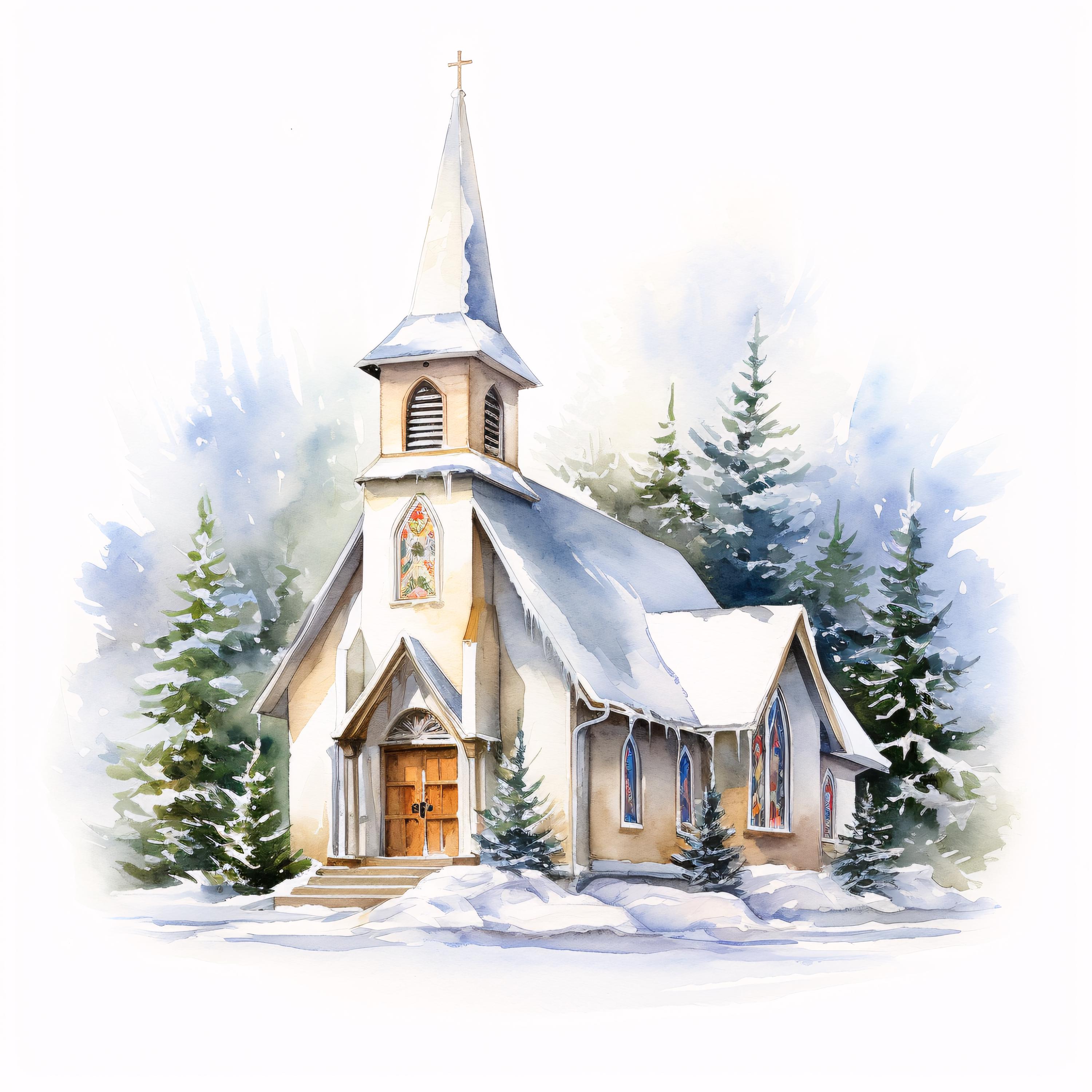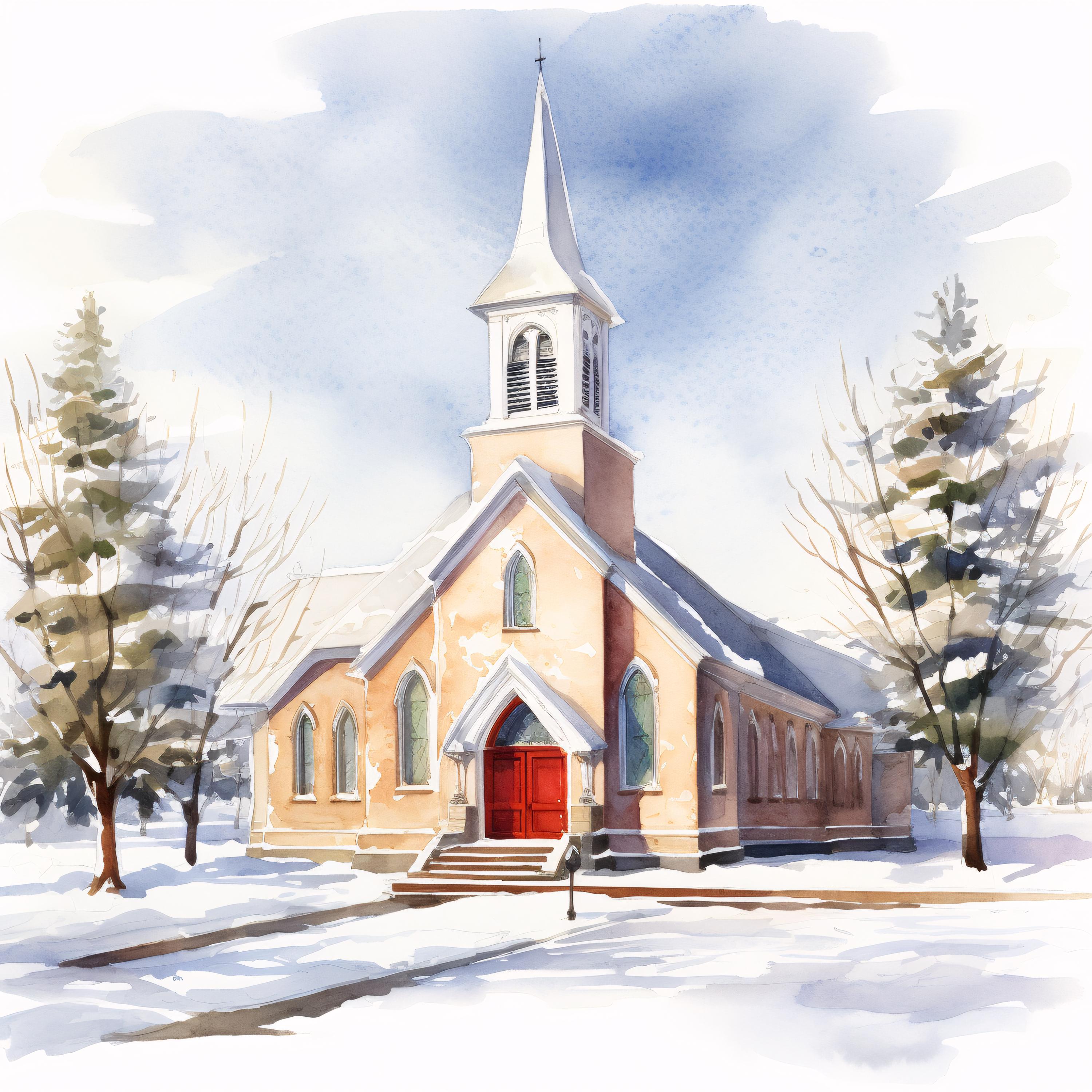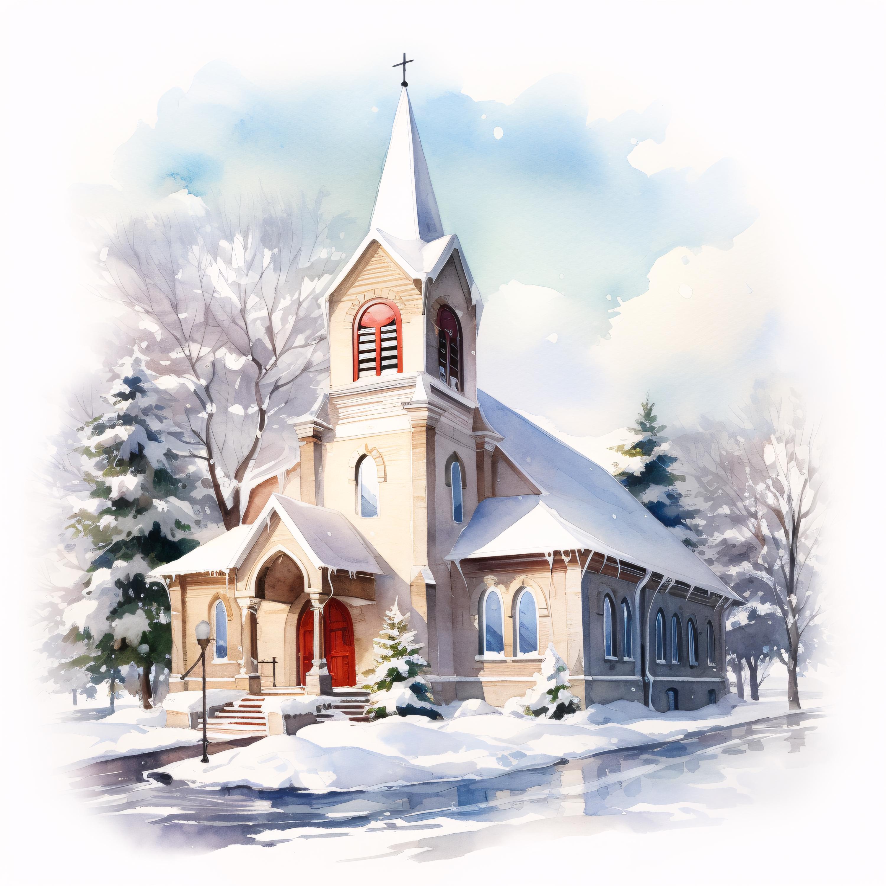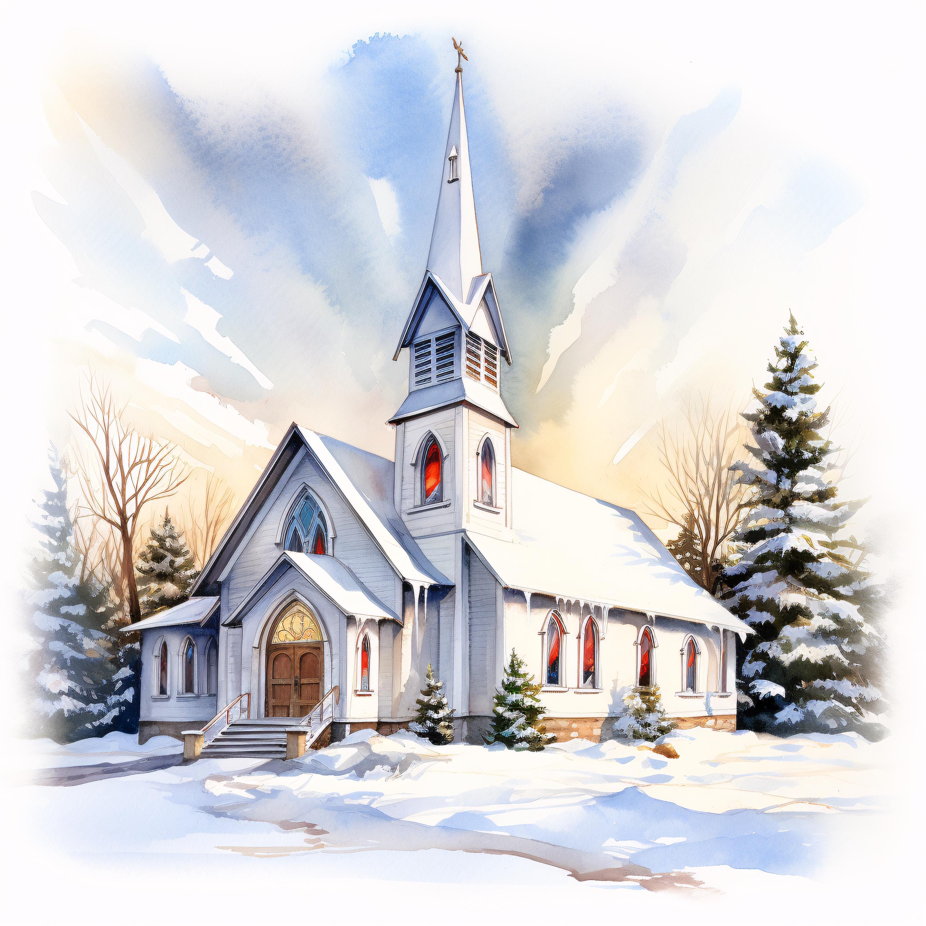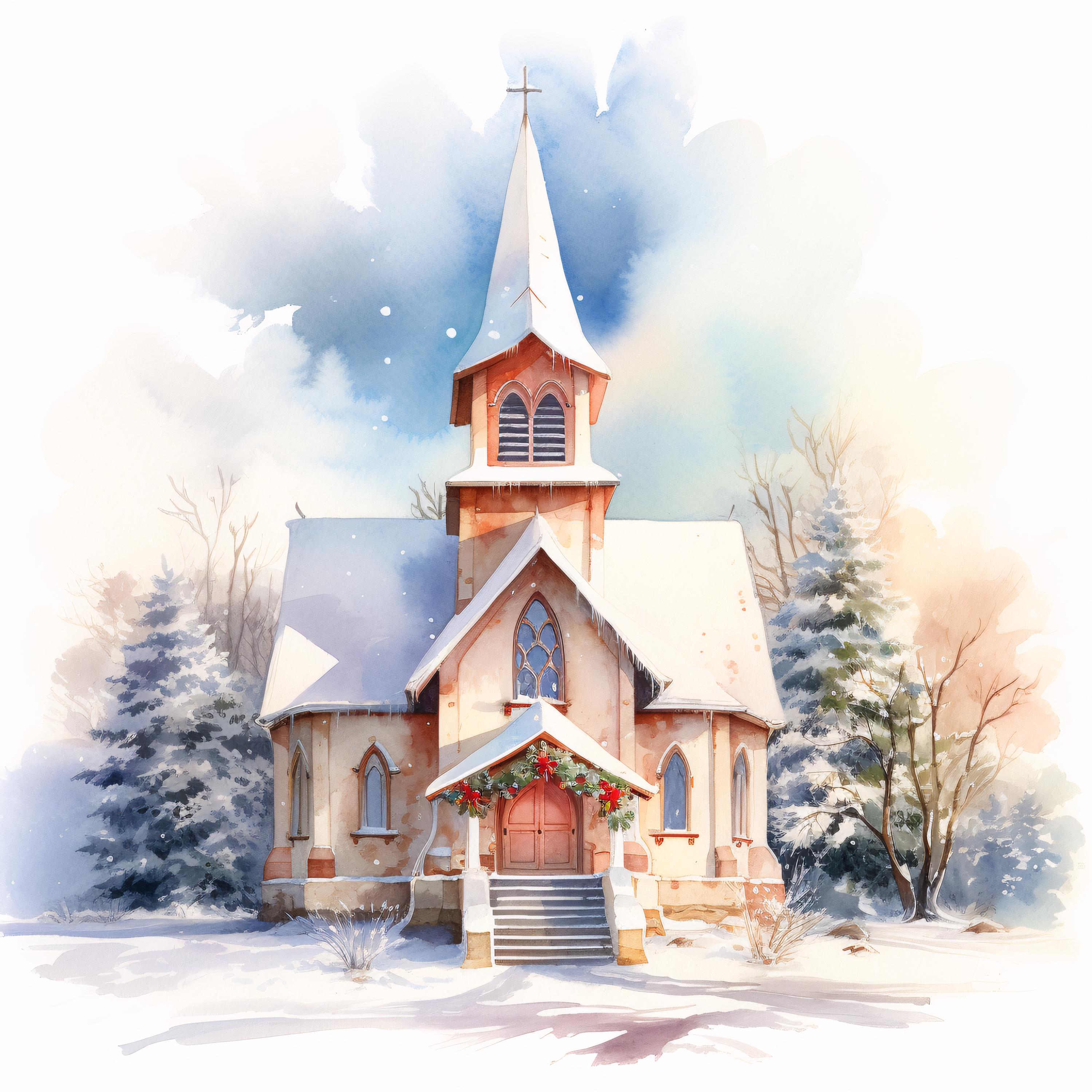 Winter Church Clipart, Snowy Chapel Images, 10 Watercolor Clip Art, Printable JPGs, Instant Download, Commercial Use, Paper Craft