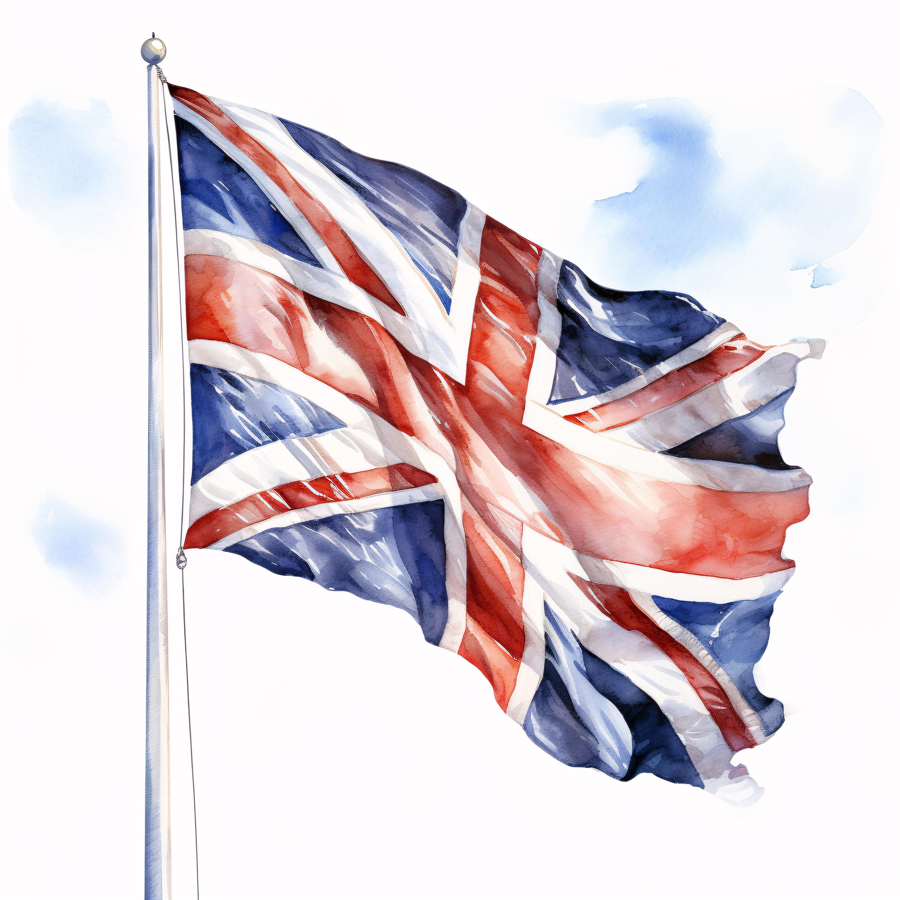 UK Flag Clipart, British Union Jack Images, 10 Watercolor Clip Art, Printable JPGs, Instant Download, Commercial Use, Paper Craft