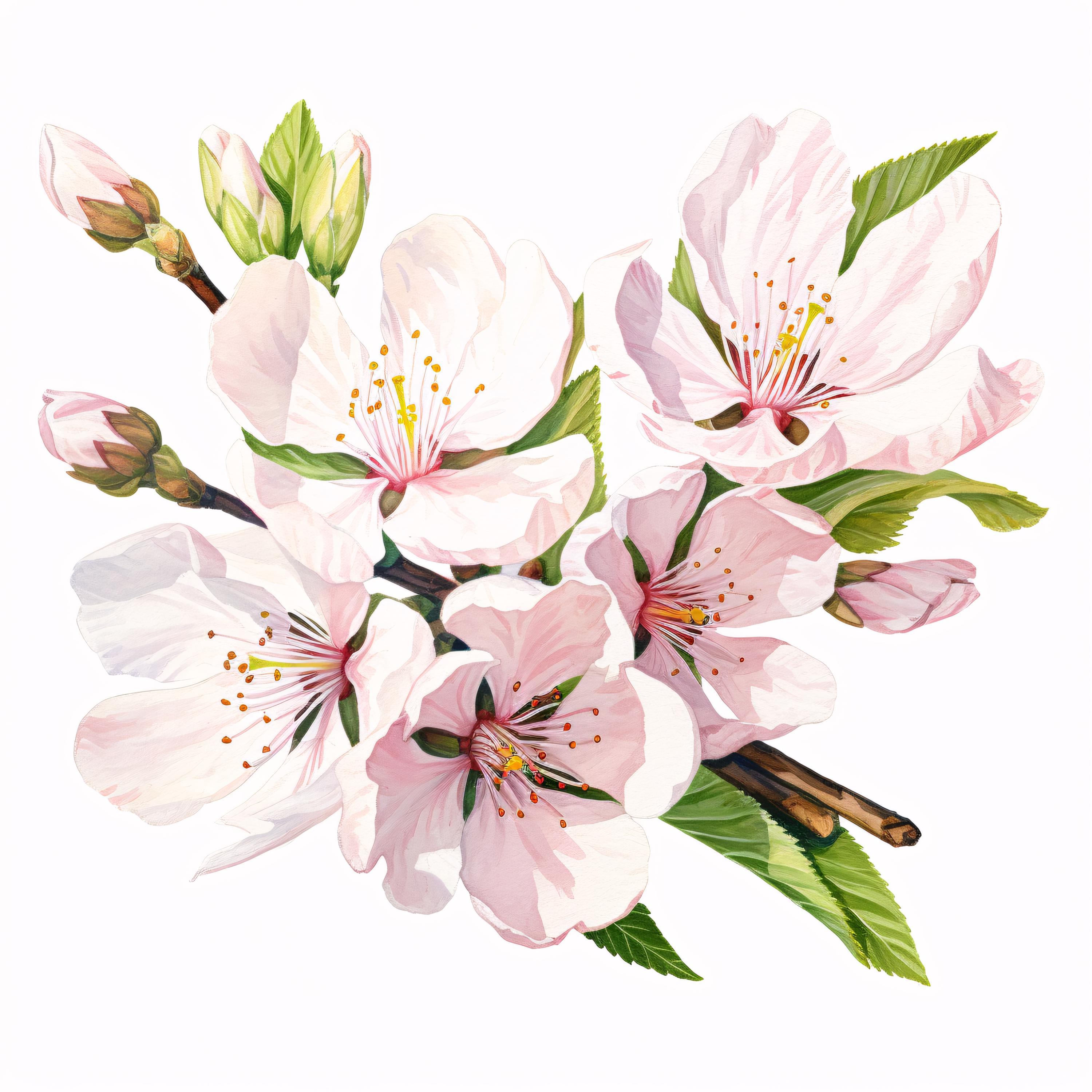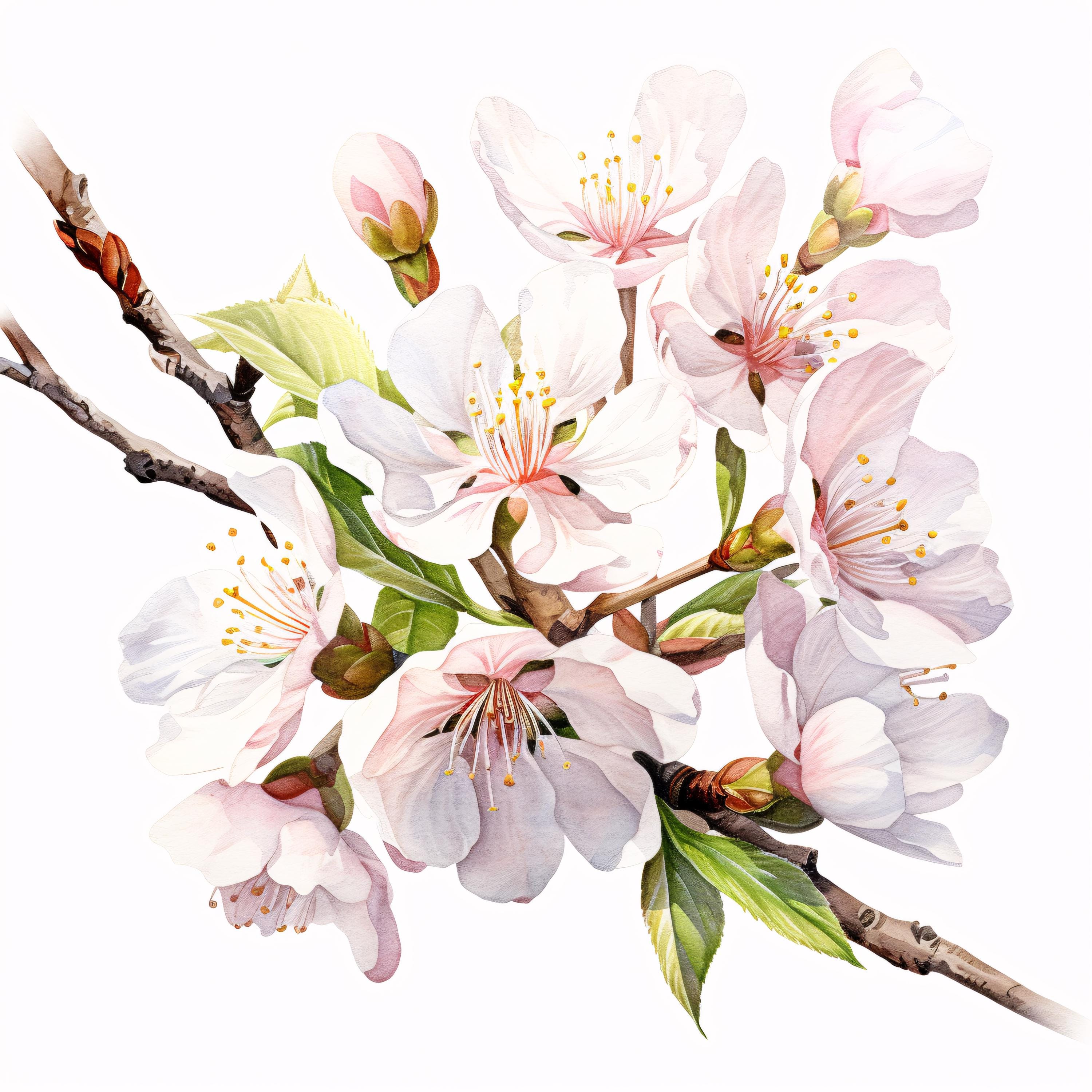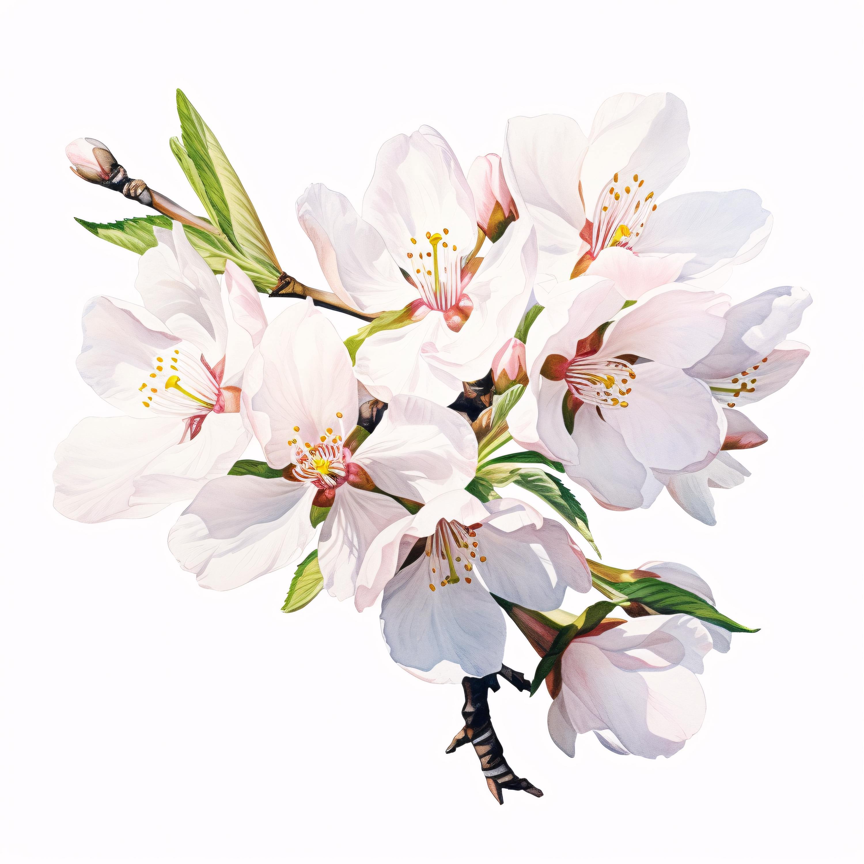 Cherry Blossom Clipart, White Floral Branch Images, 10 Watercolor Clip Art, Printable JPGs, Instant Download, Commercial Use, Paper Craft