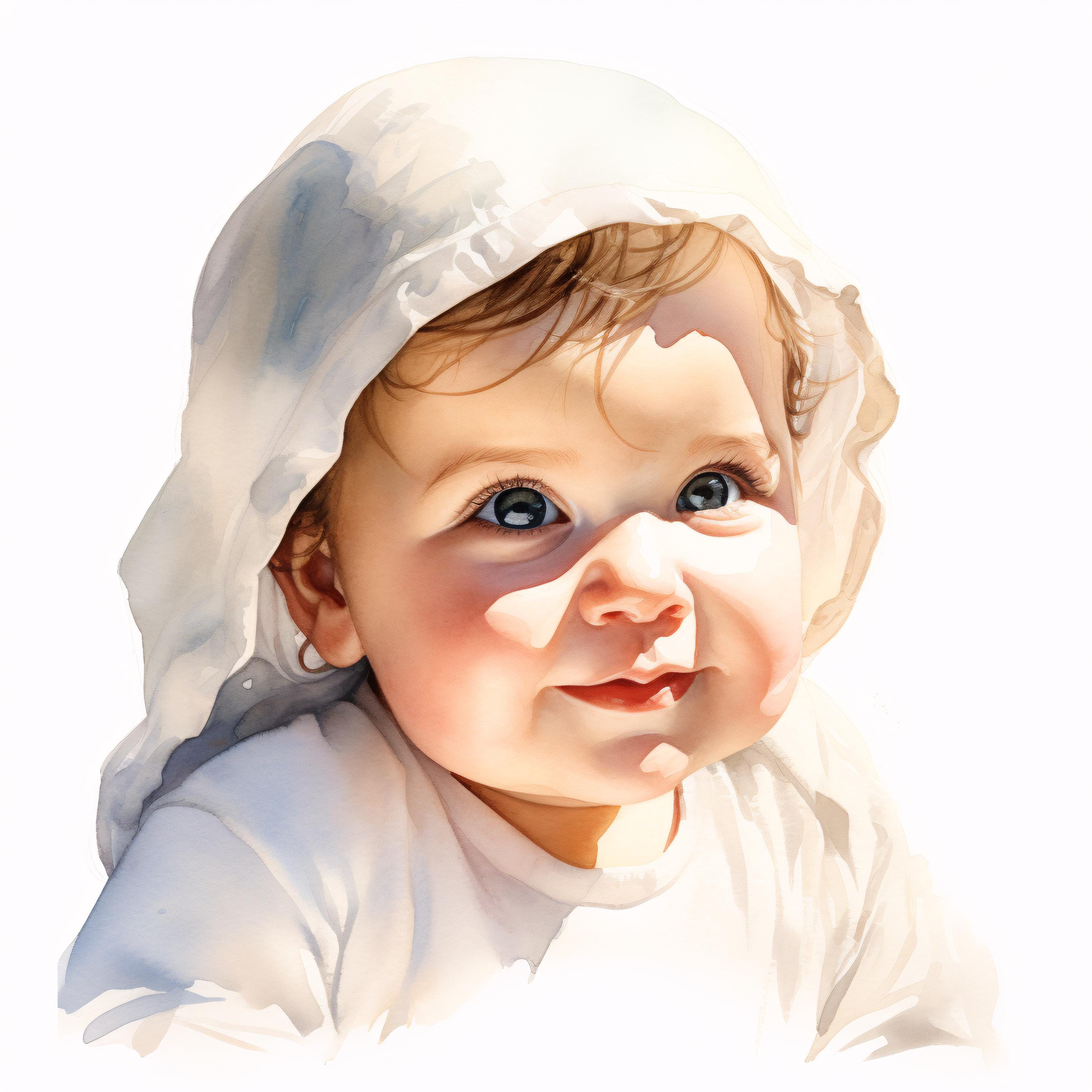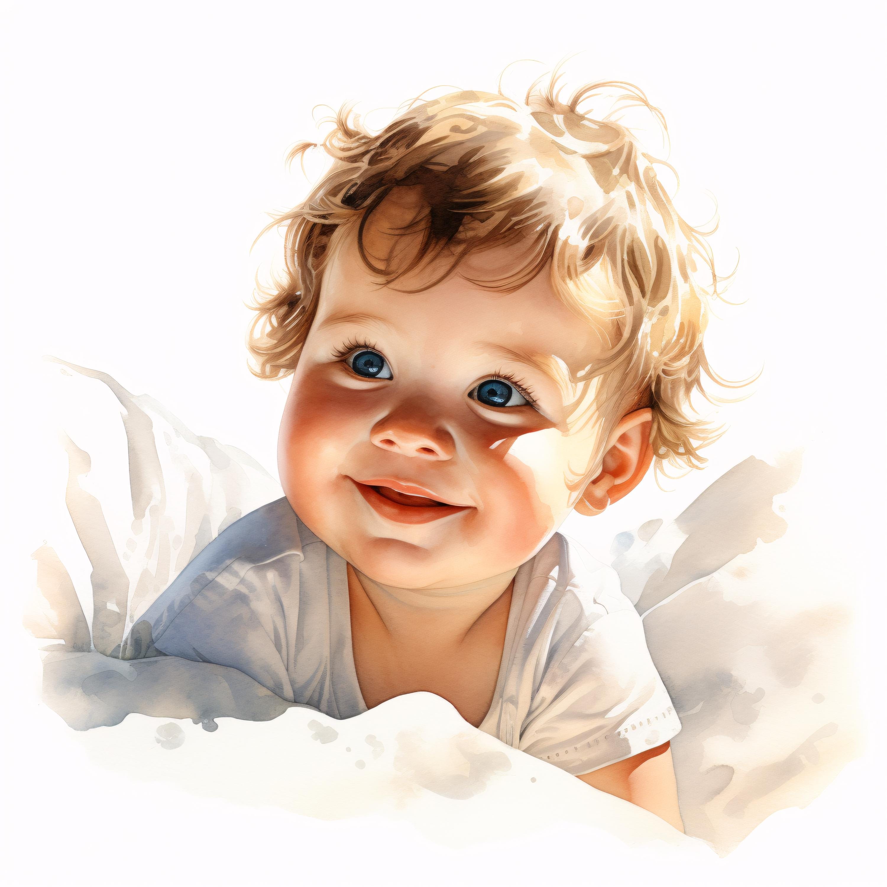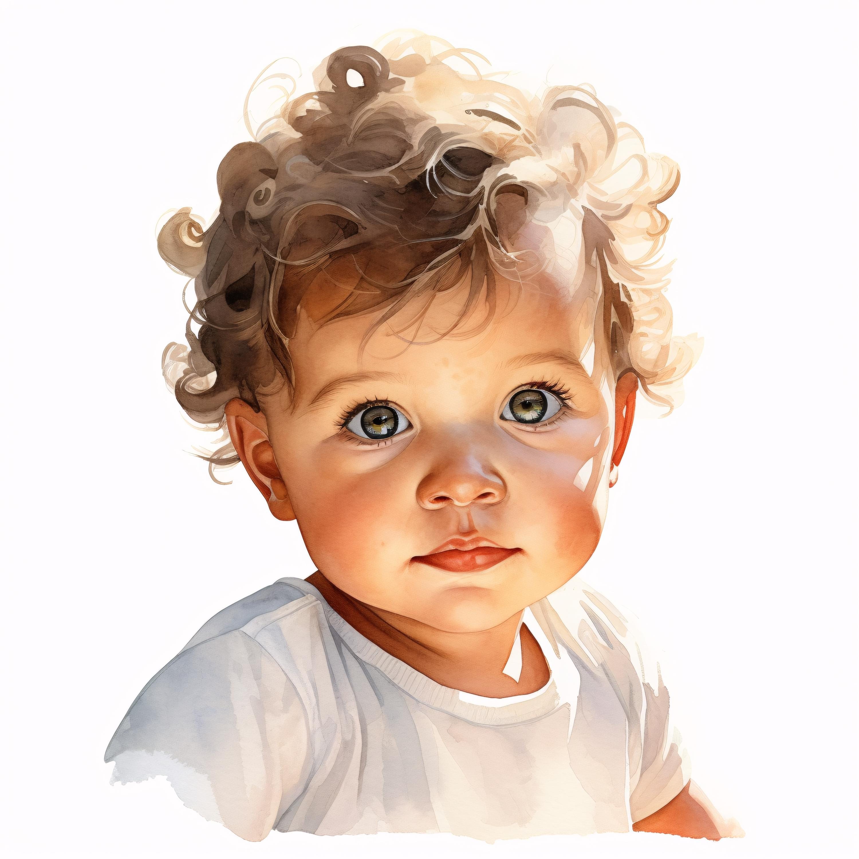 Baby Portrait Clipart, Child Images, 10 Watercolor Clip Art, Printable JPGs, Instant Download, Commercial Use, Paper Craft