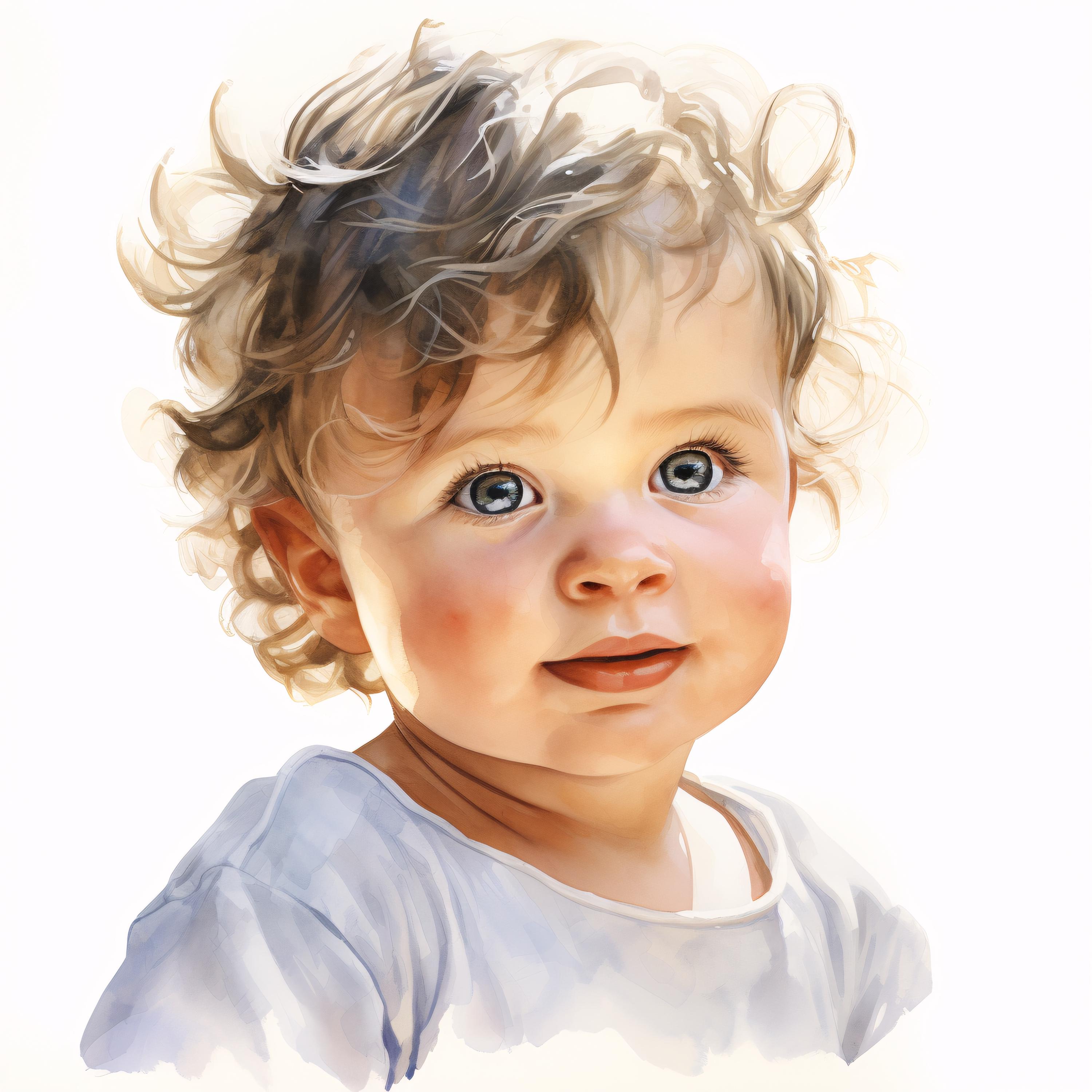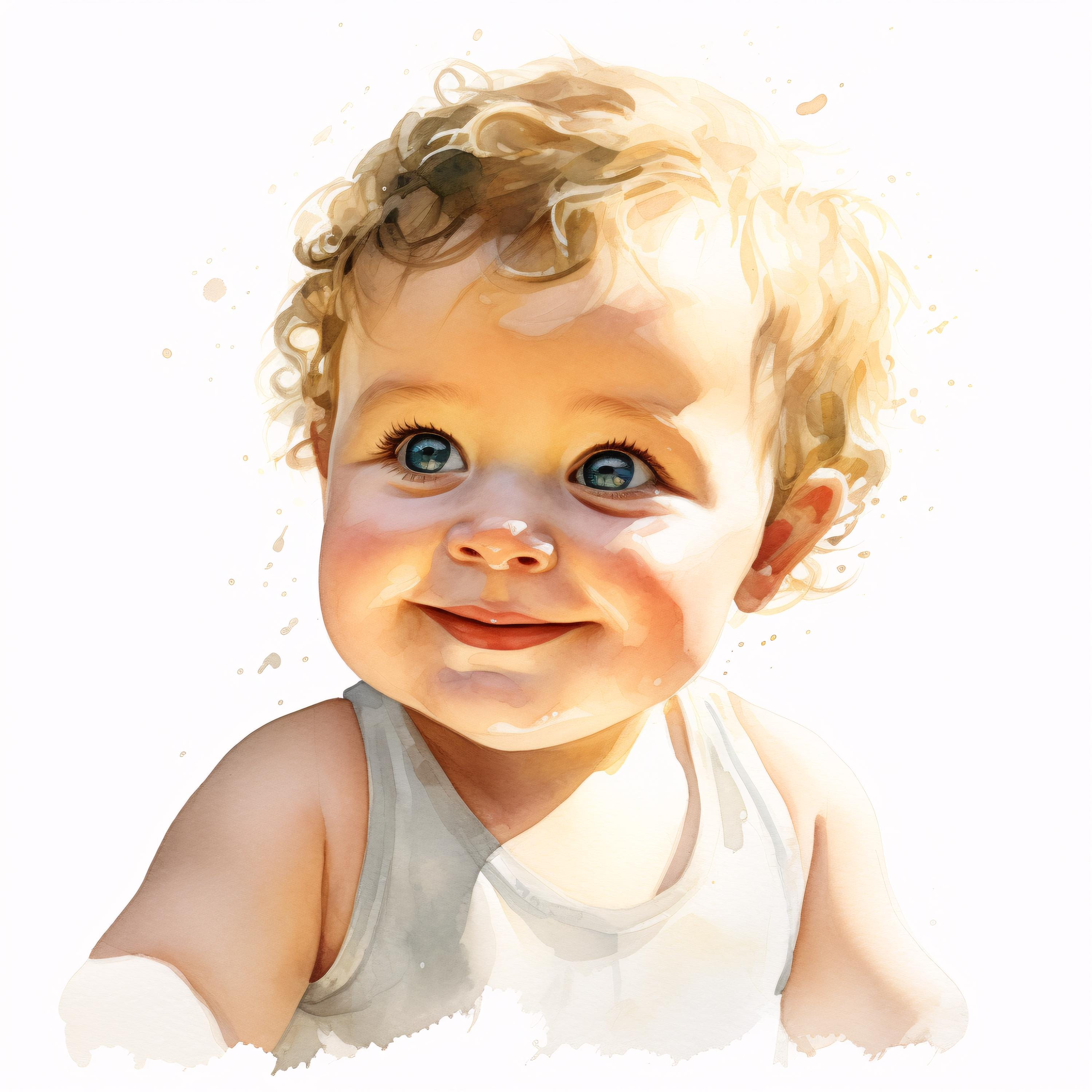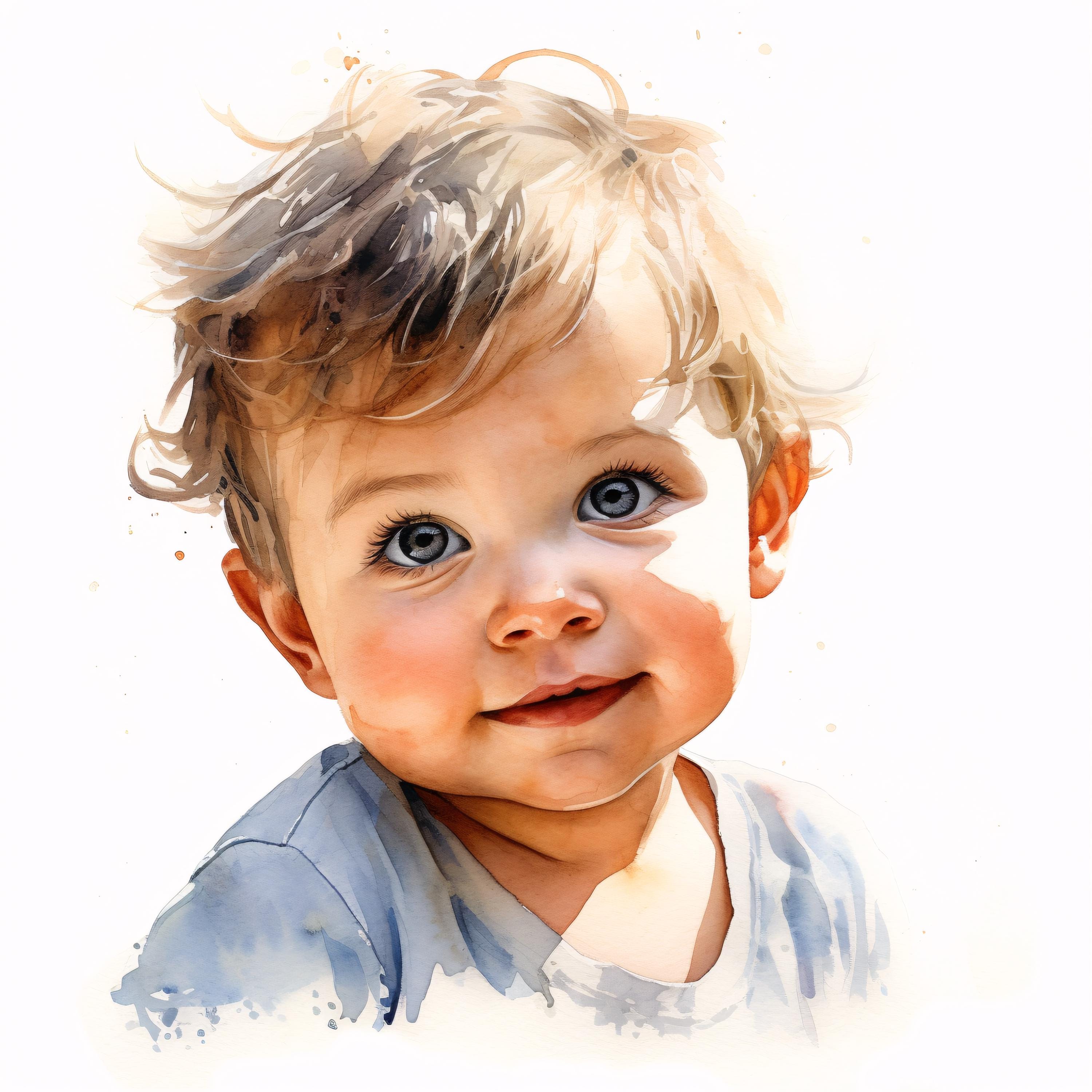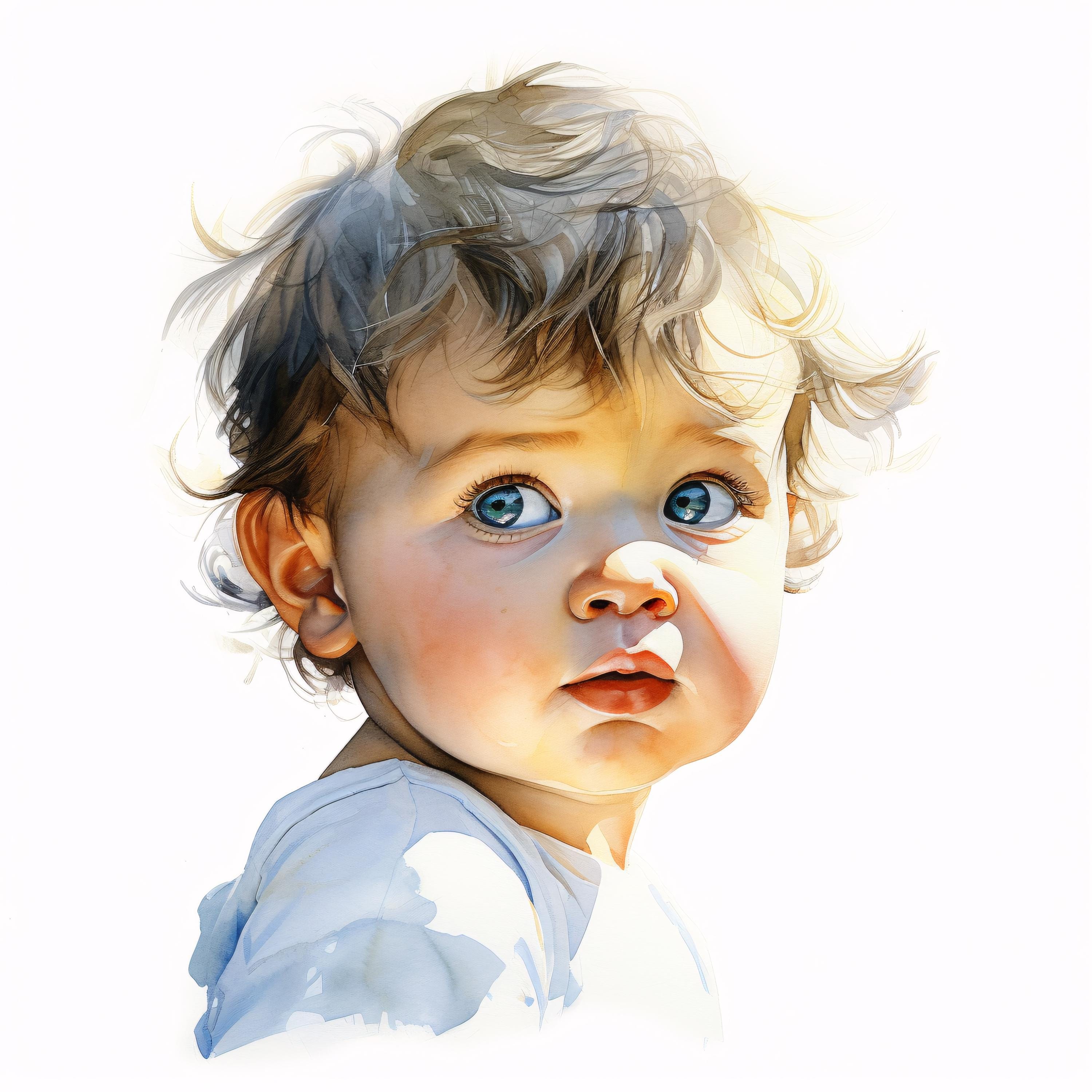 Baby Portrait Clipart, Child Images, 10 Watercolor Clip Art, Printable JPGs, Instant Download, Commercial Use, Paper Craft