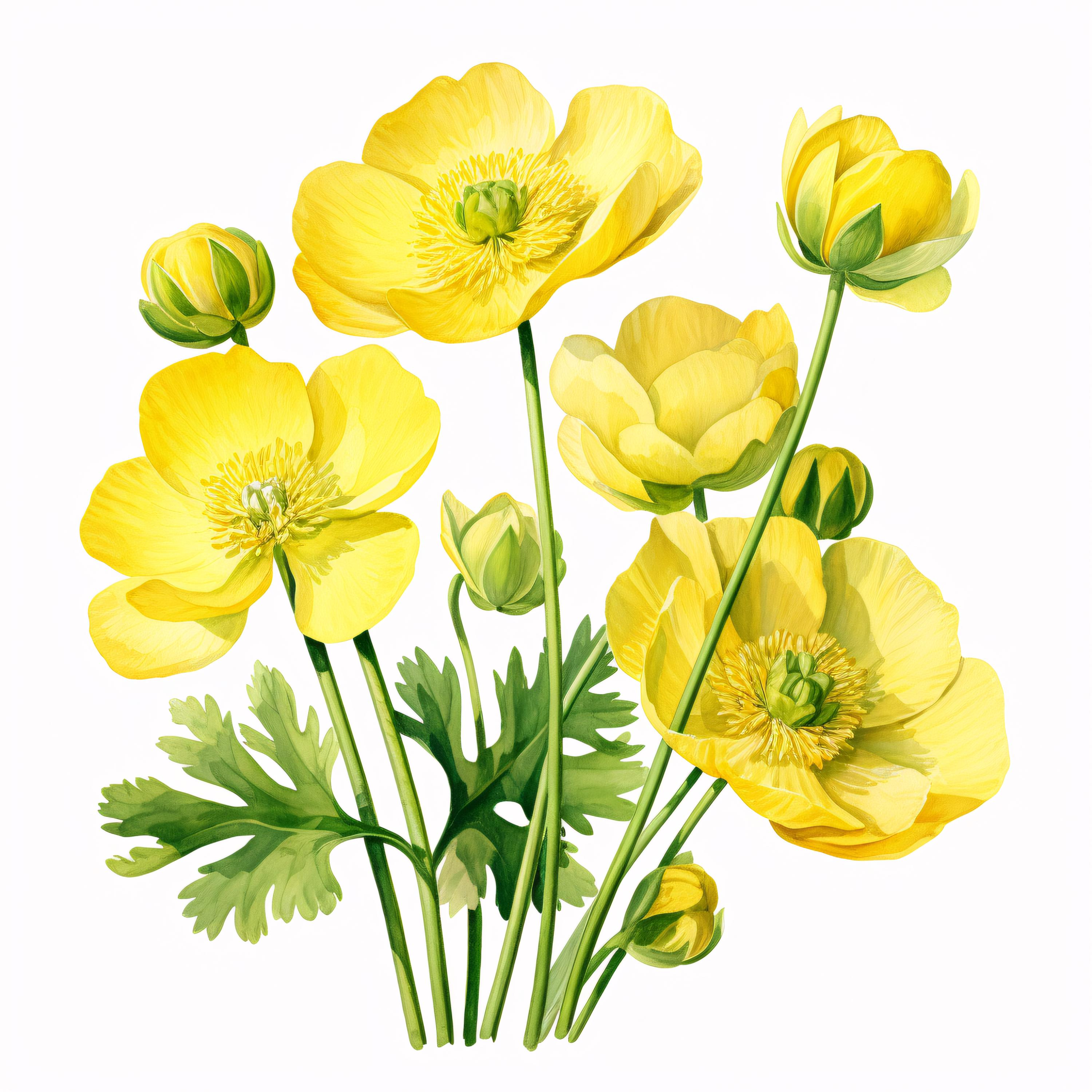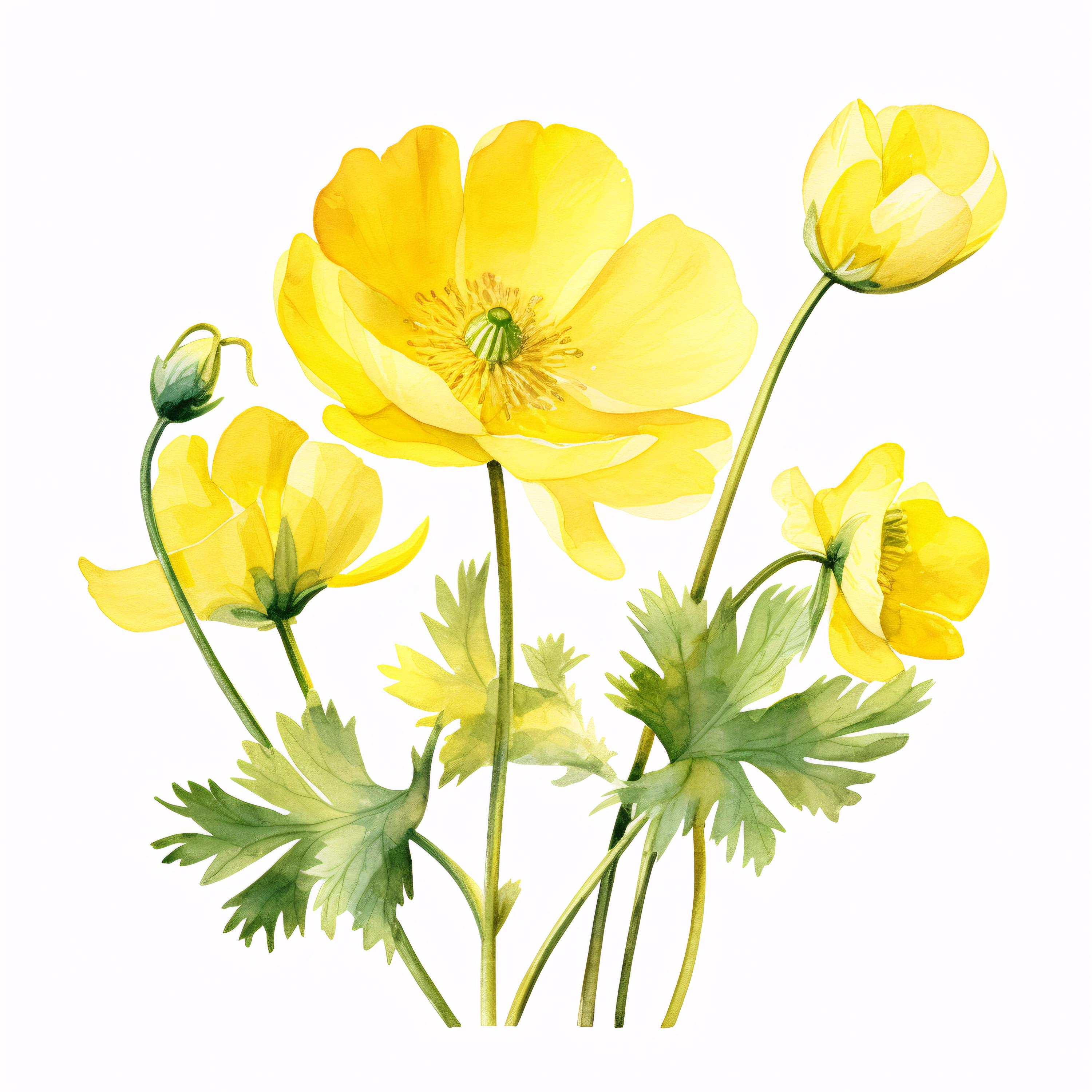 Buttercup Flower Clipart, Yellow Bloom Images, 10 Watercolor Clip Art, Printable JPGs, Instant Download, Commercial Use, Paper Craft