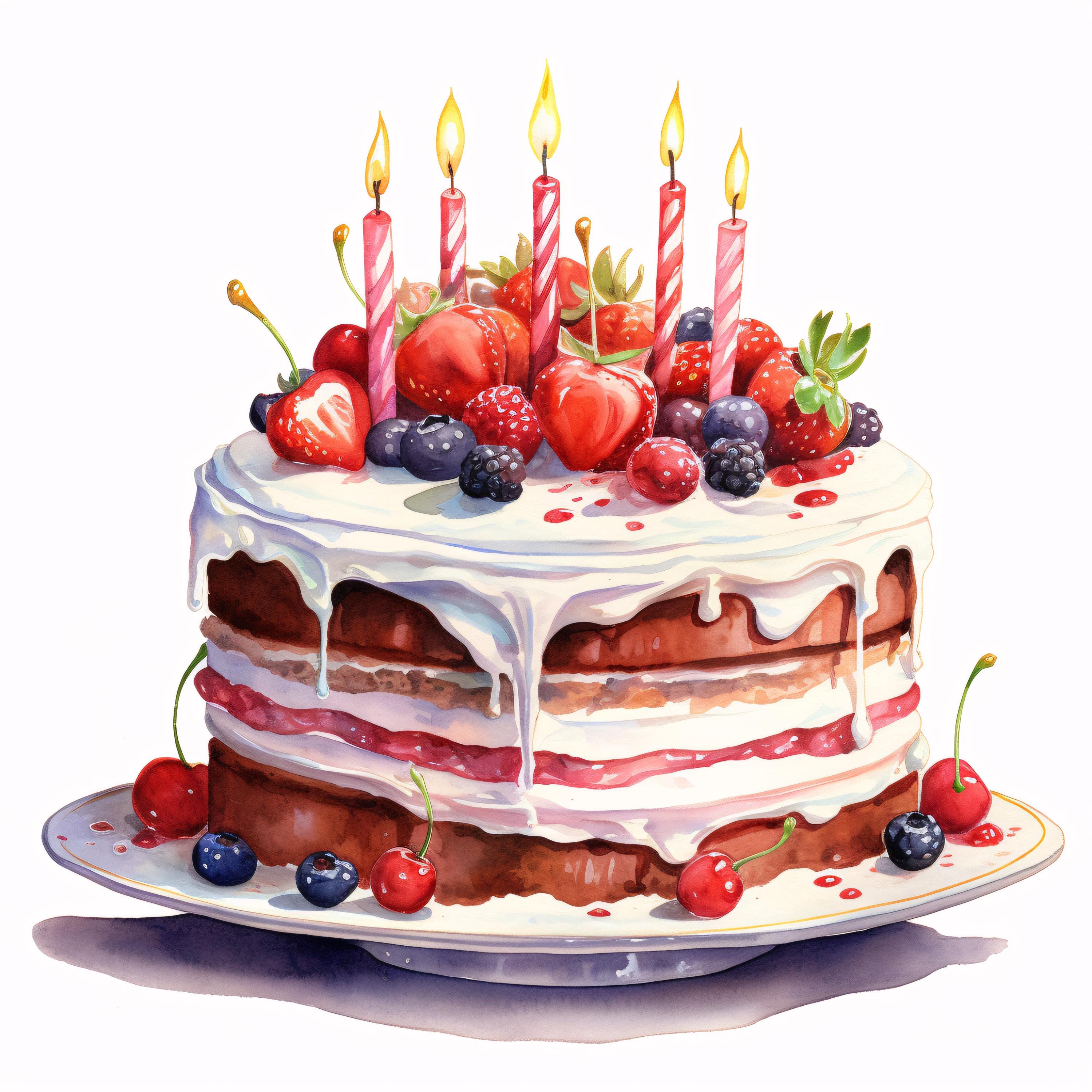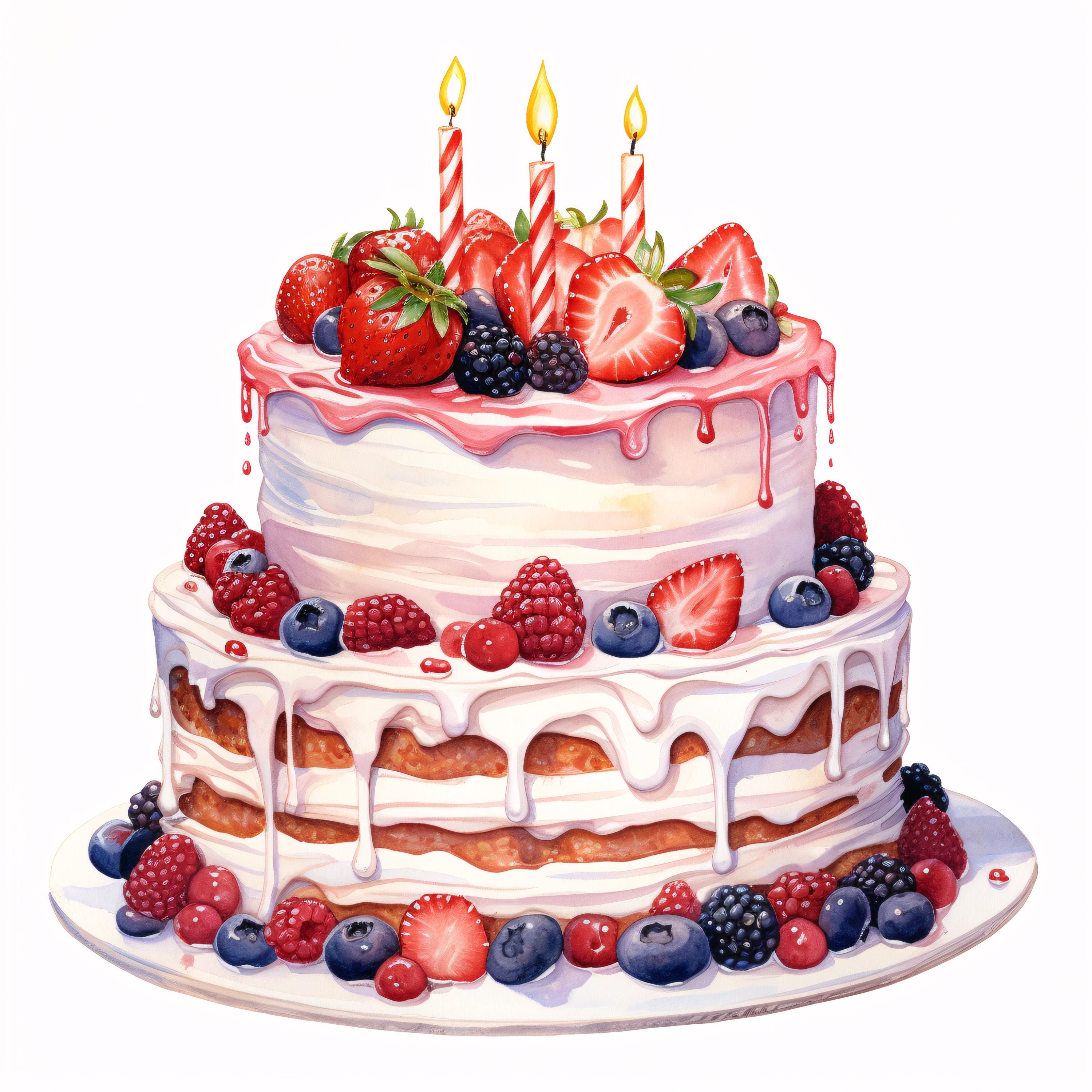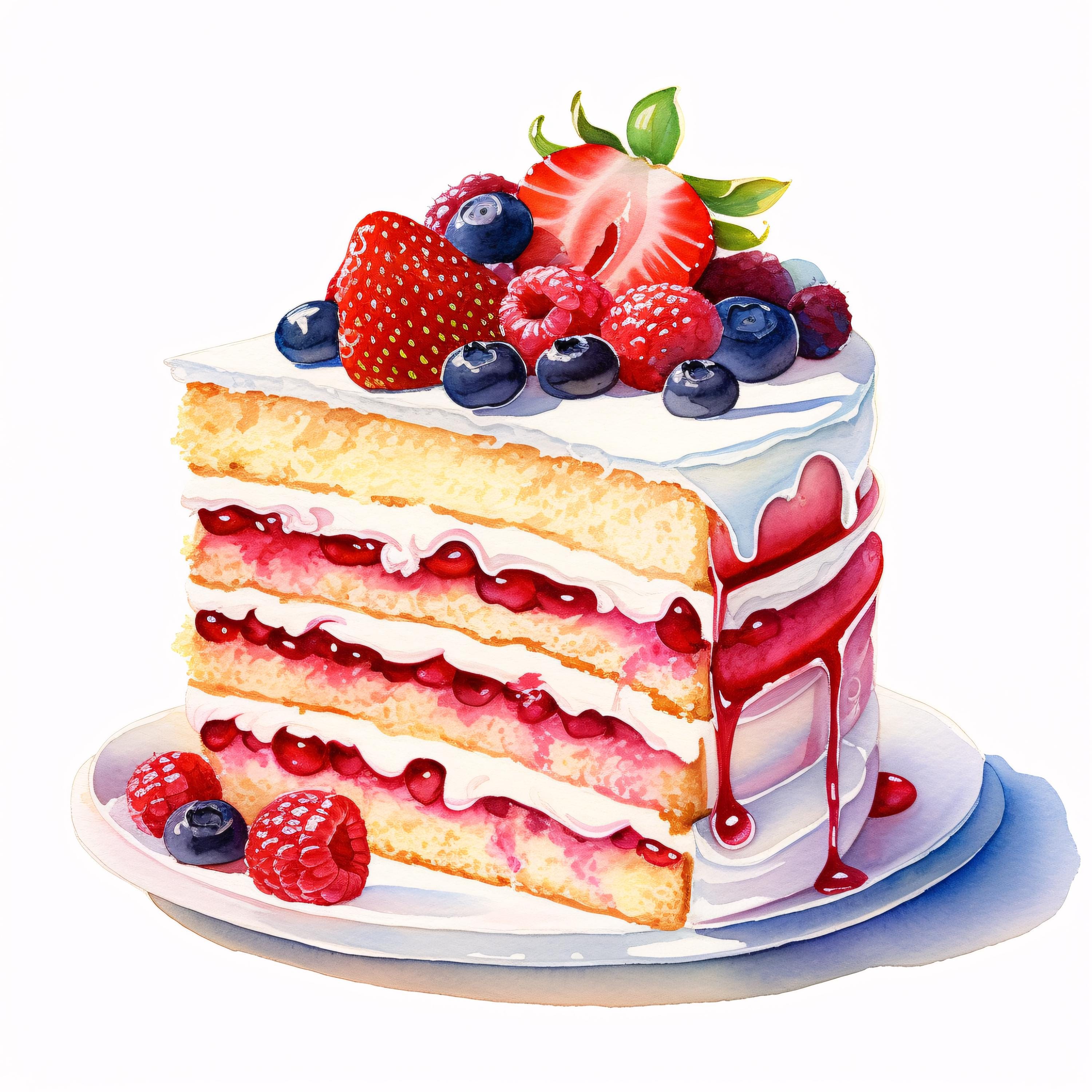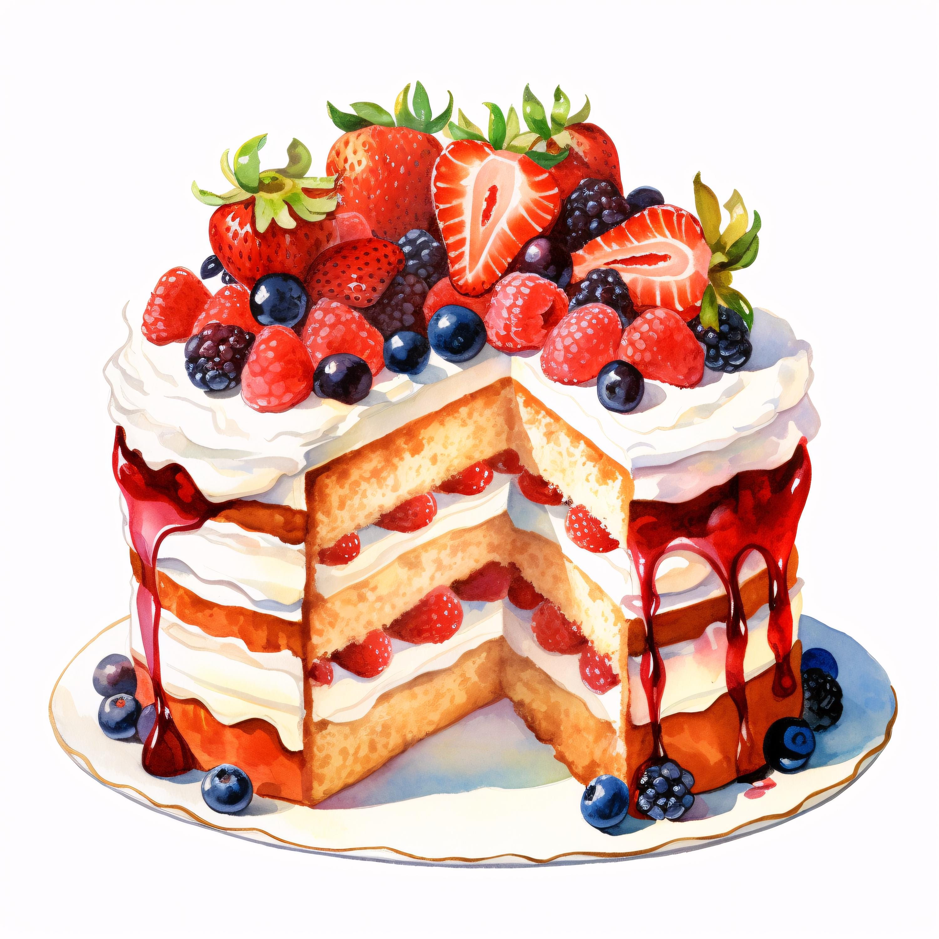 Berry Cake Clipart, Dessert Pastry Images, 10 Watercolor Clip Art, Printable JPGs, Instant Download, Commercial Use, Paper Craft