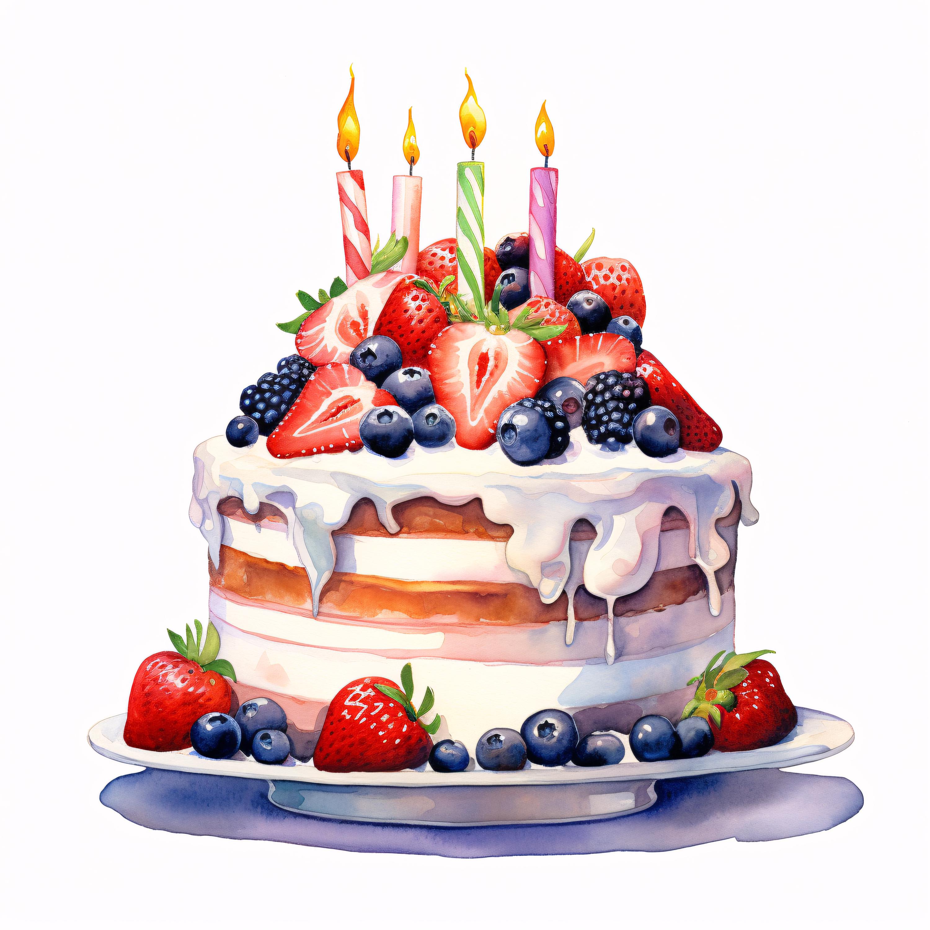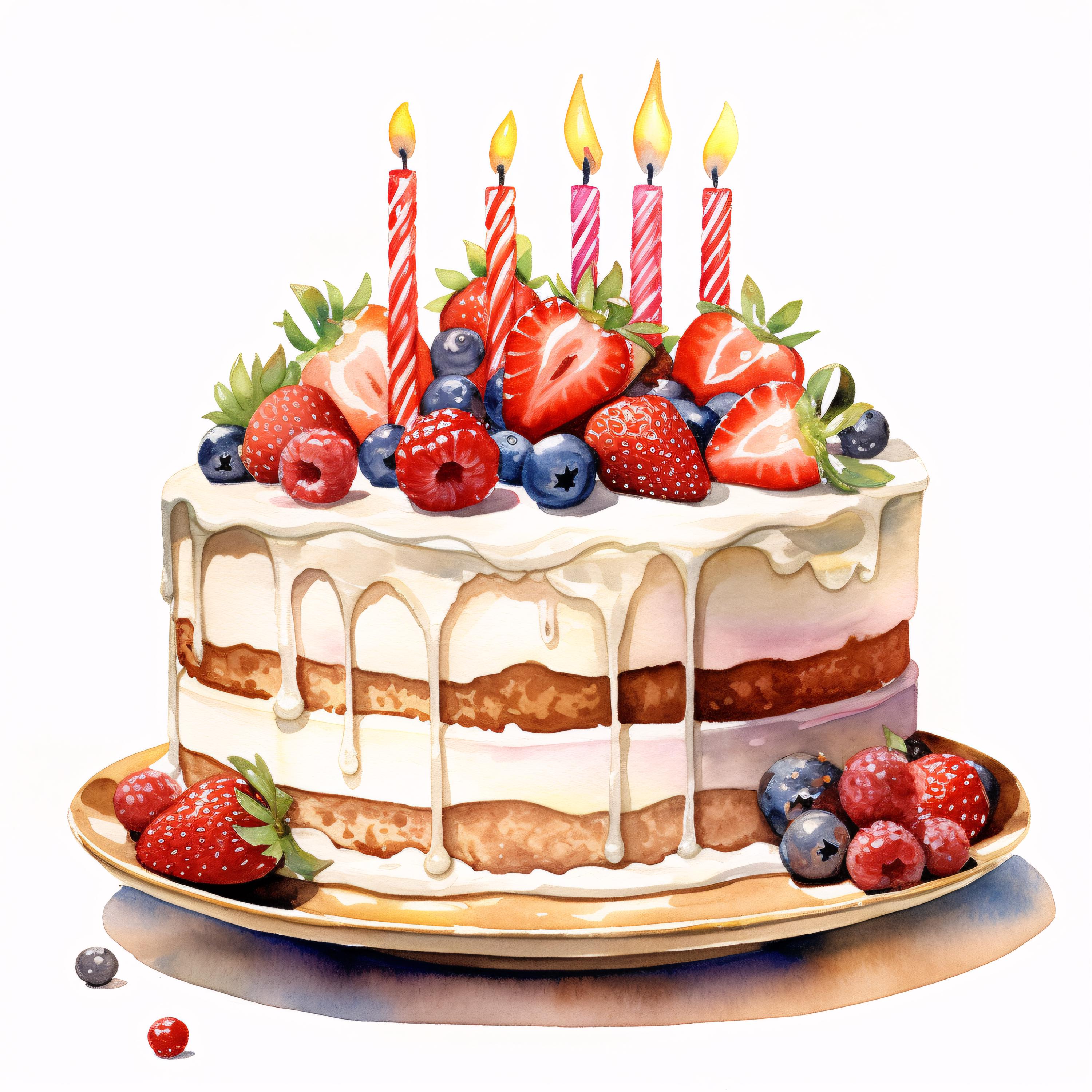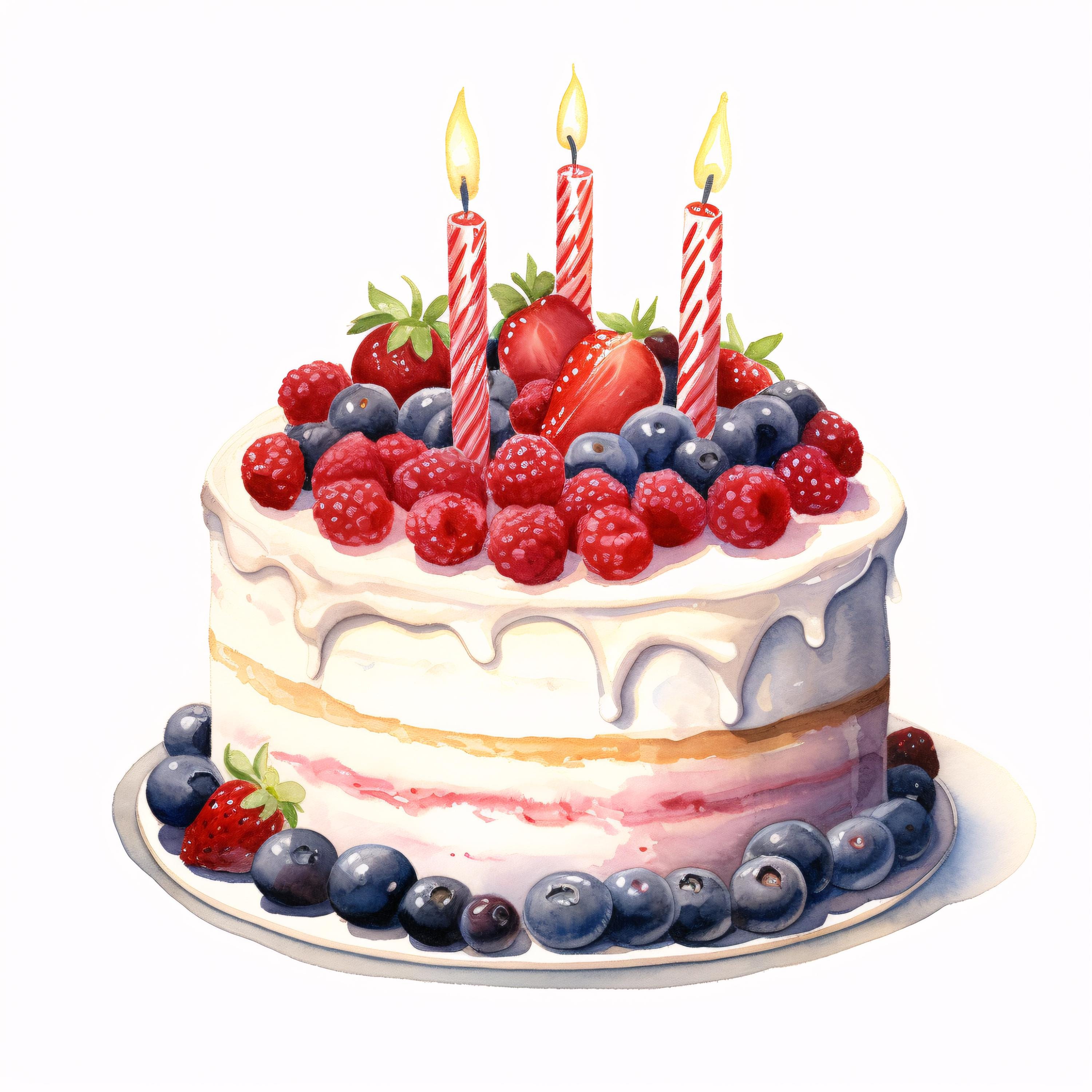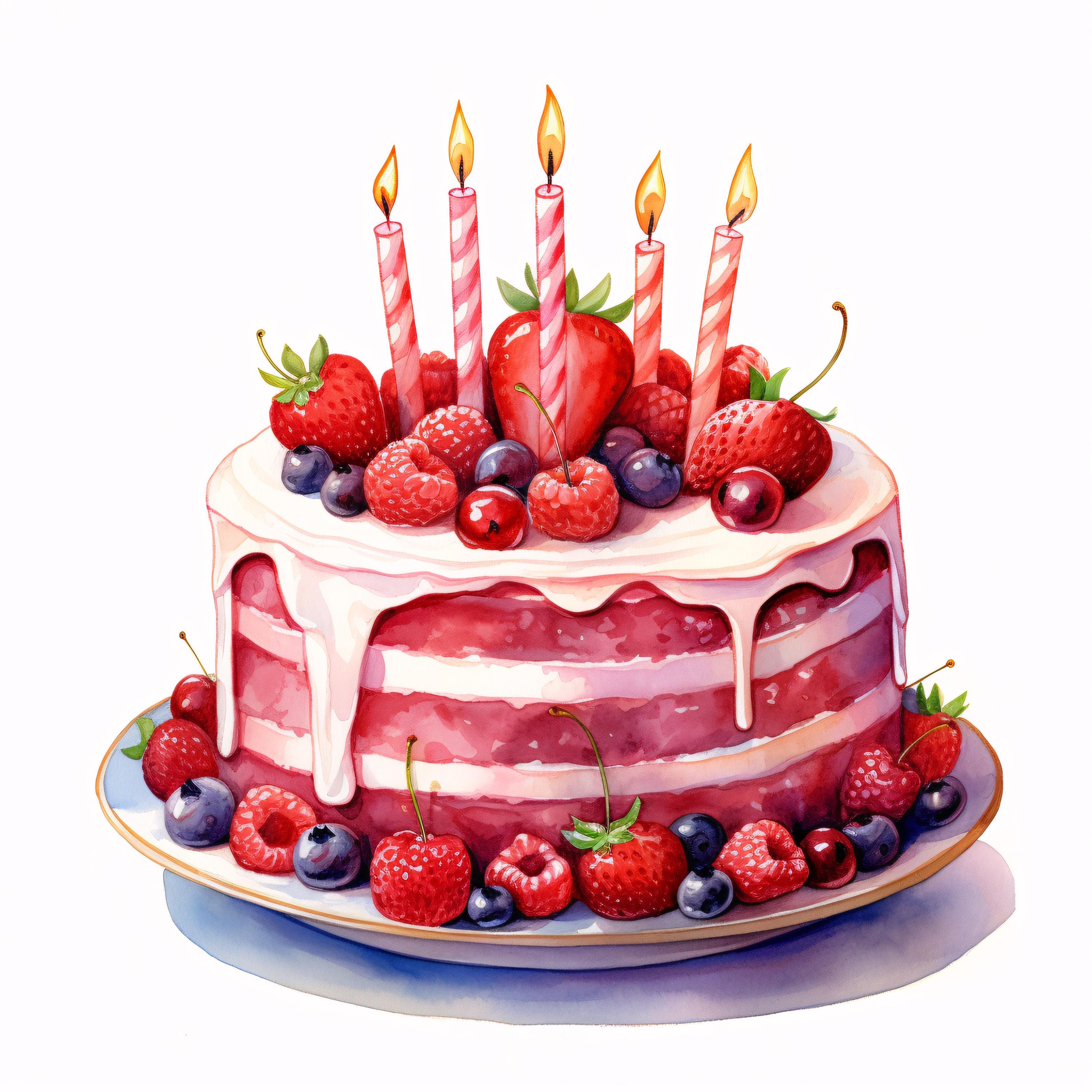 Berry Cake Clipart, Dessert Pastry Images, 10 Watercolor Clip Art, Printable JPGs, Instant Download, Commercial Use, Paper Craft